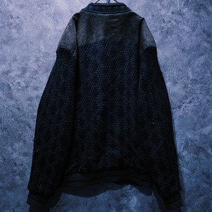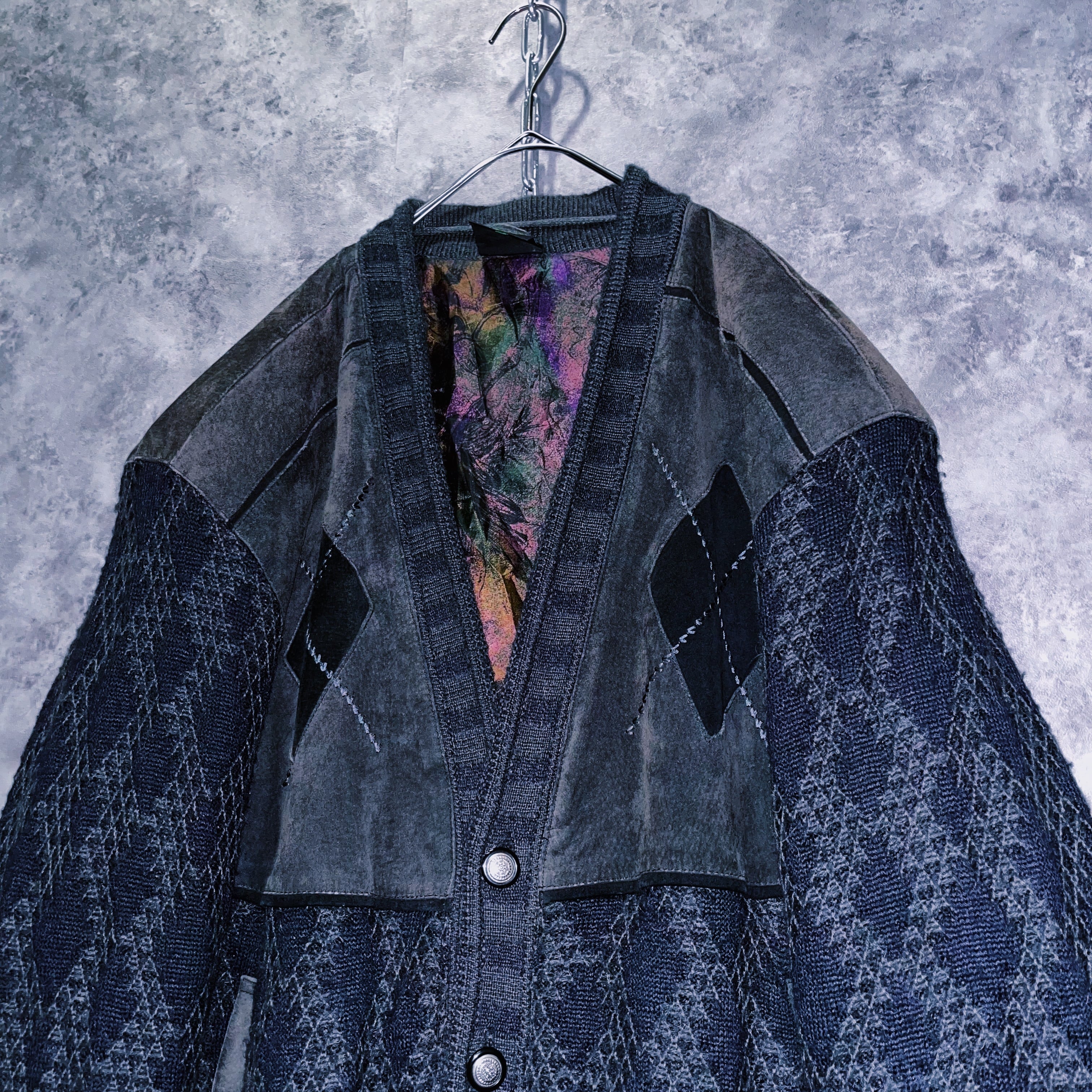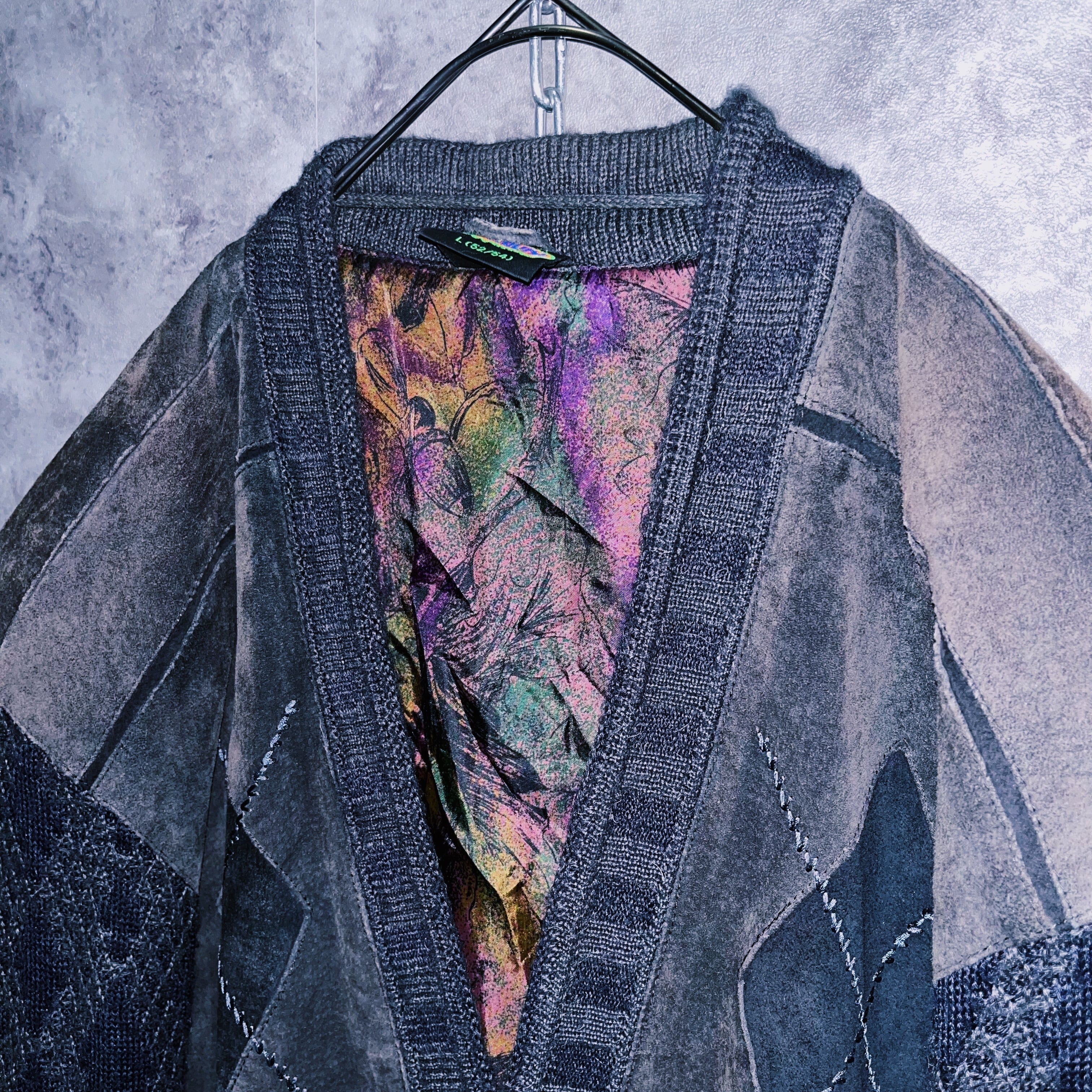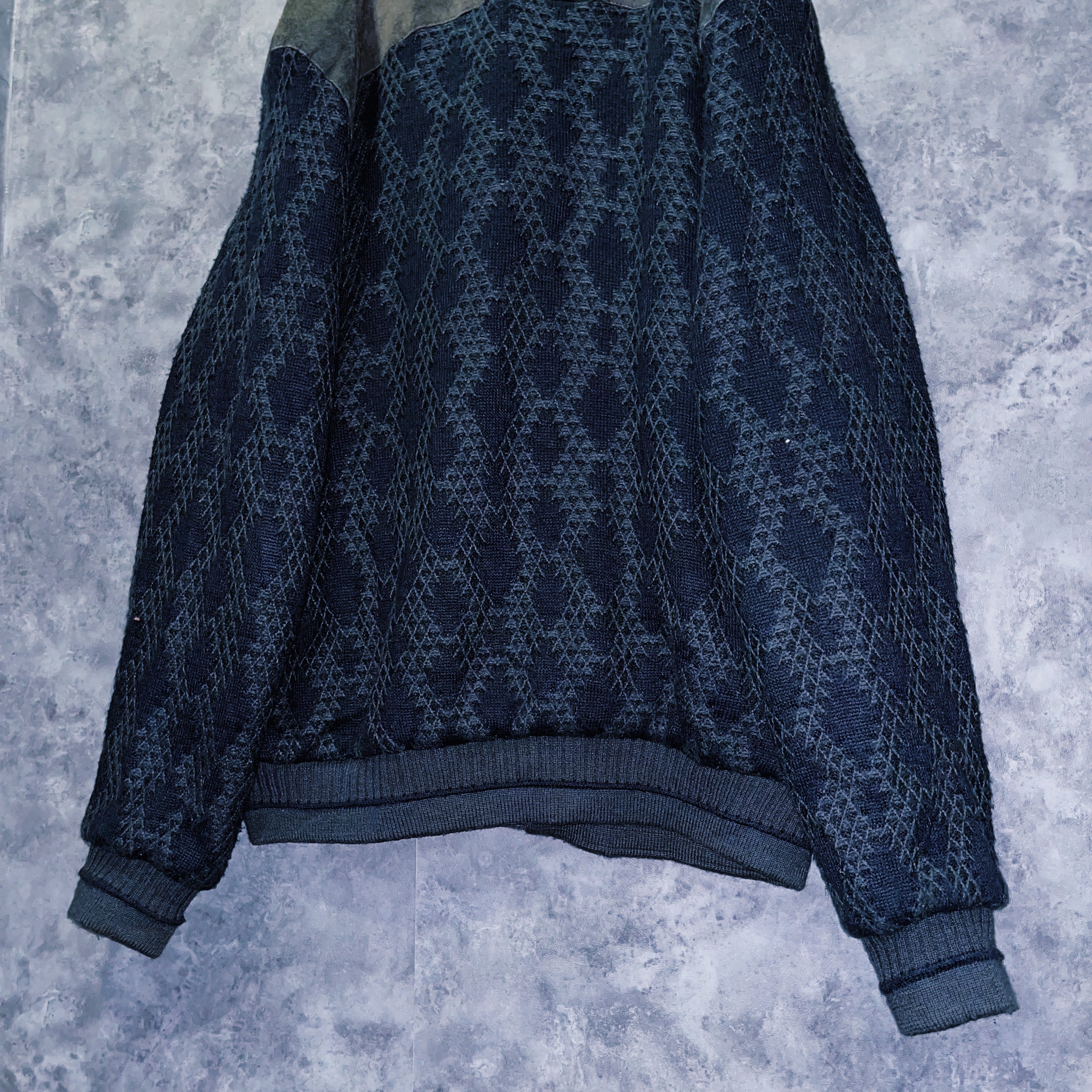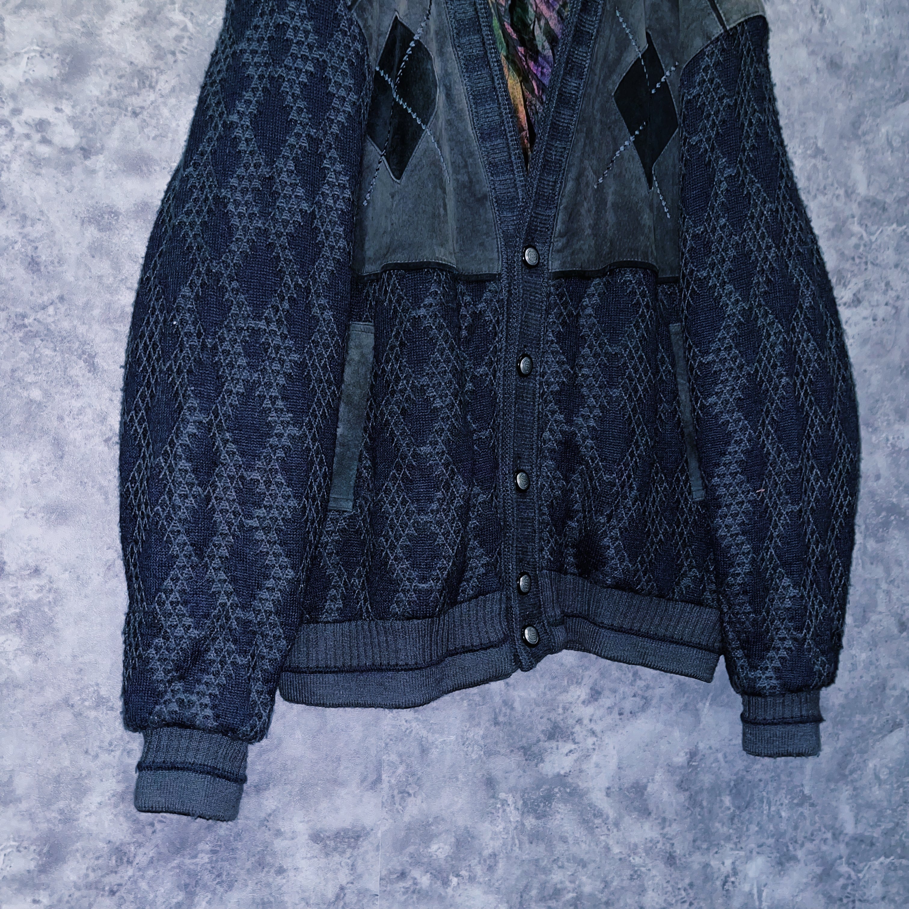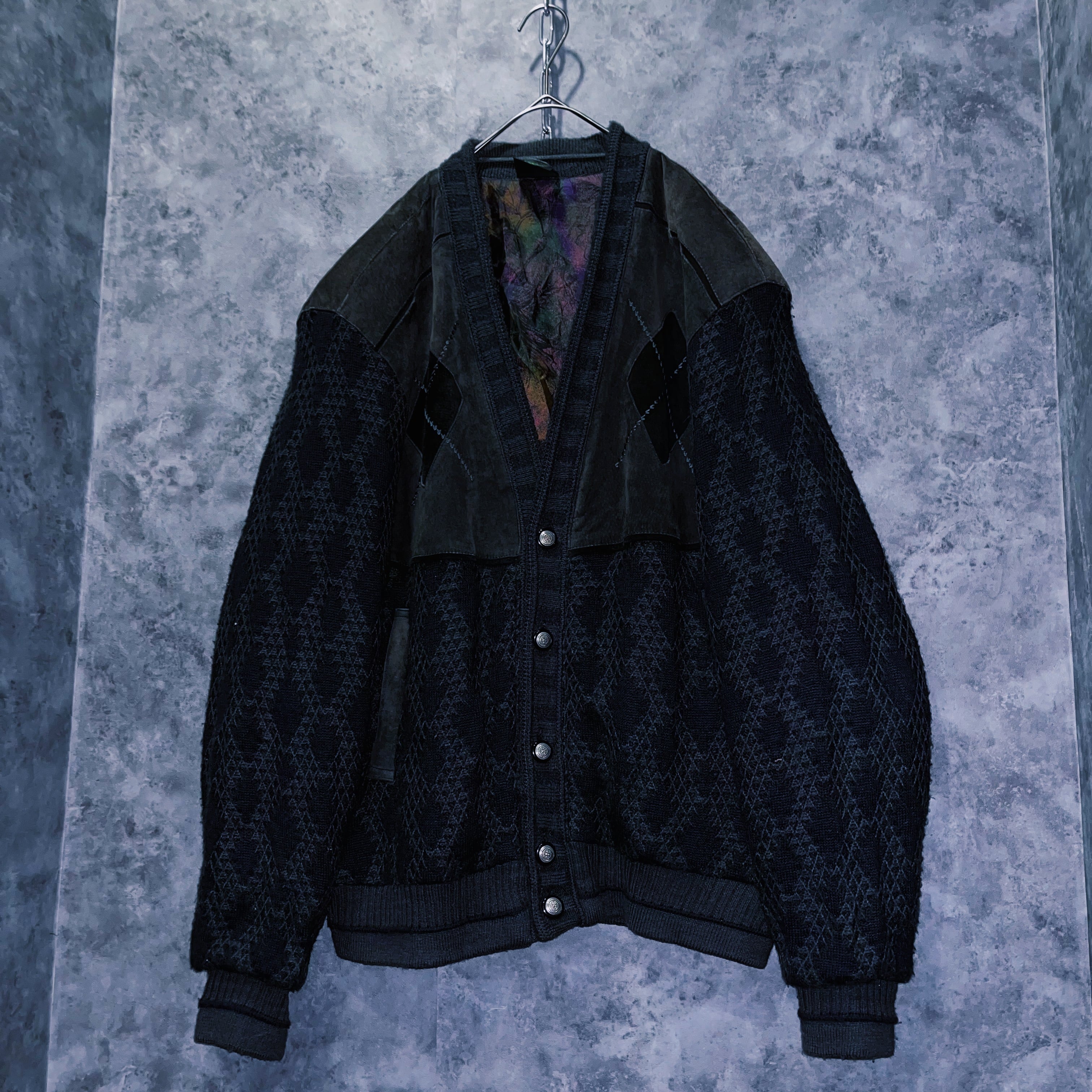 ヴィンテージスウェードレザースイッチングデザインニットカーディガンジャケット