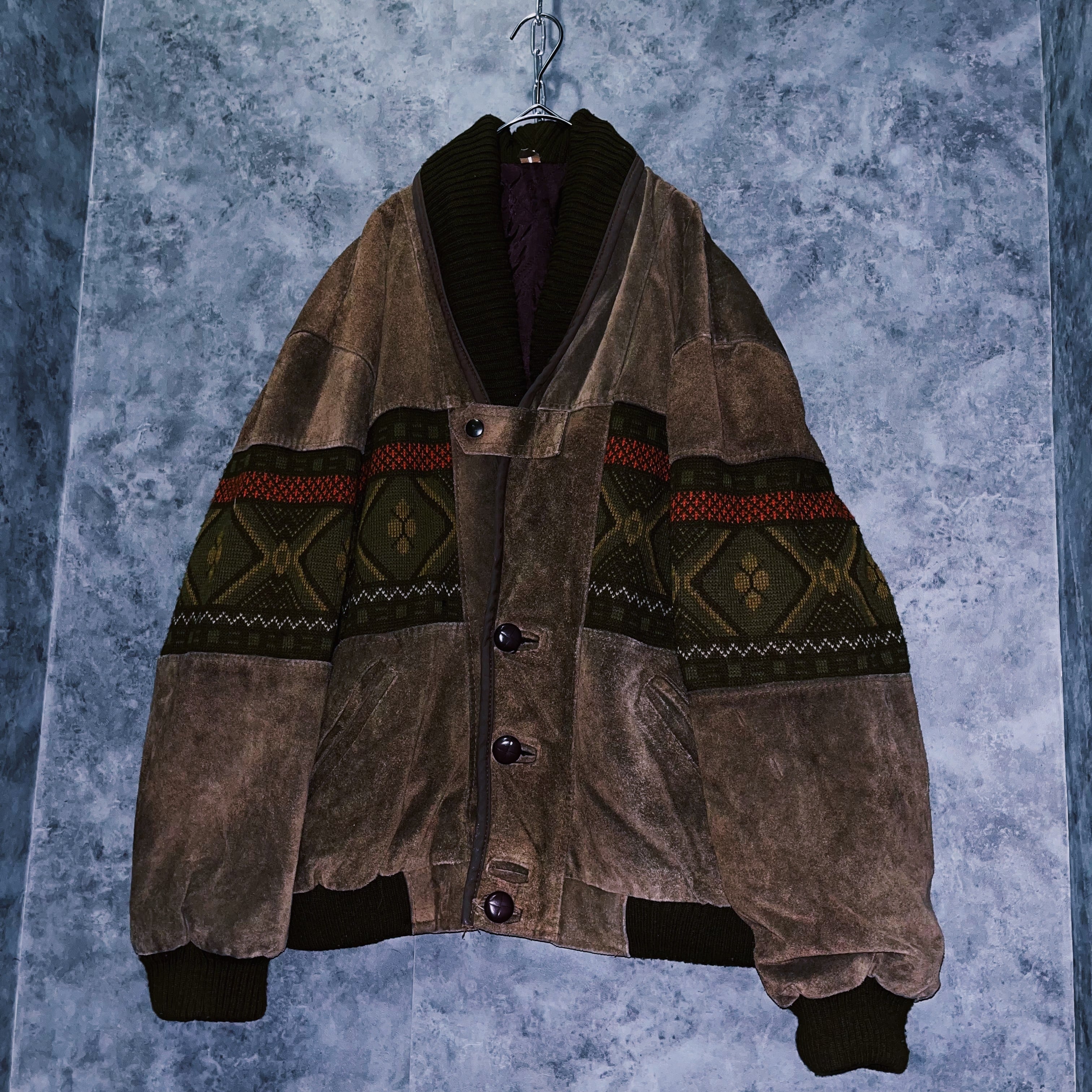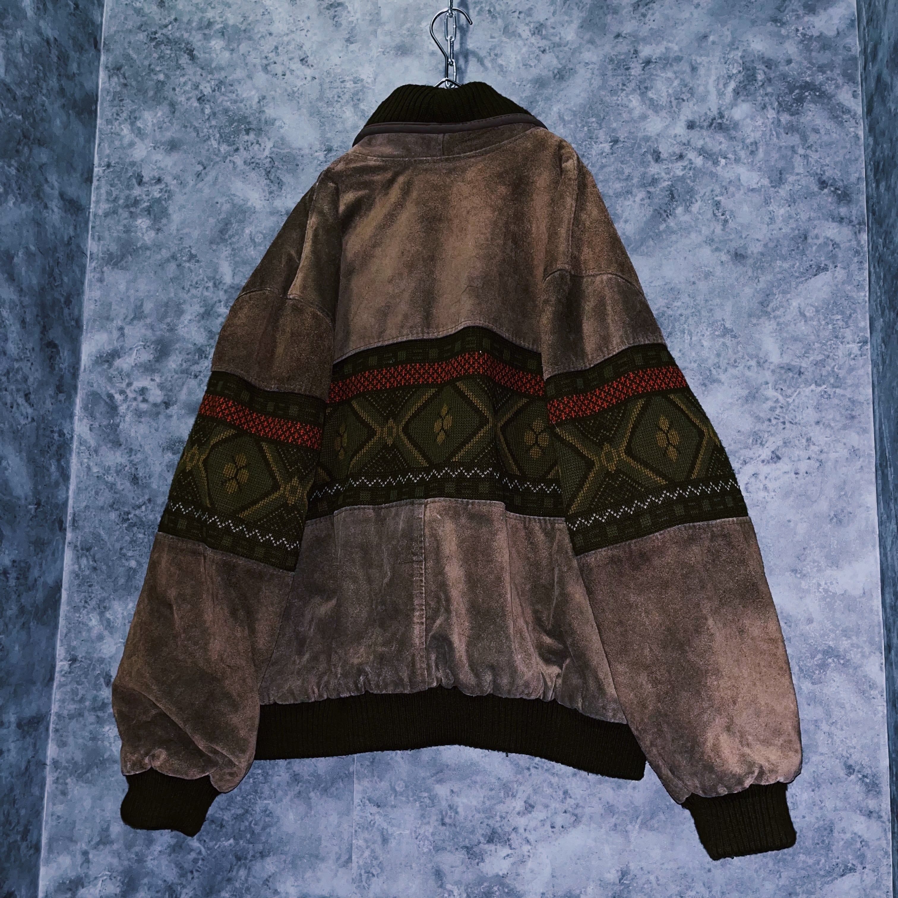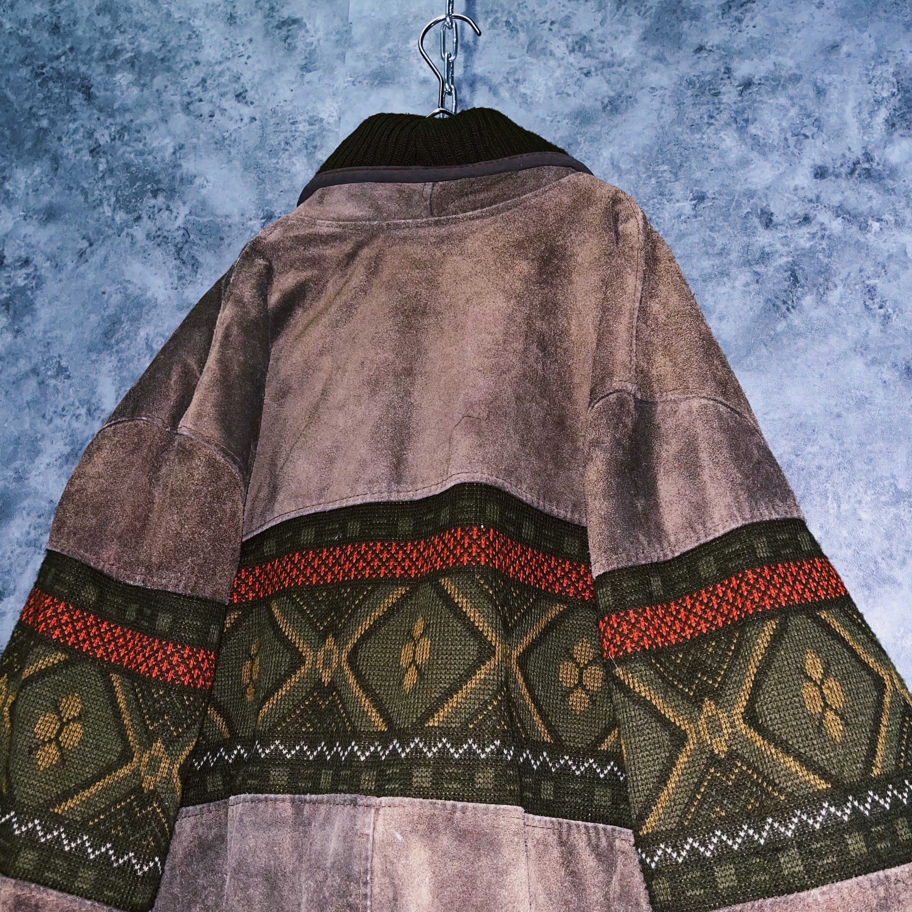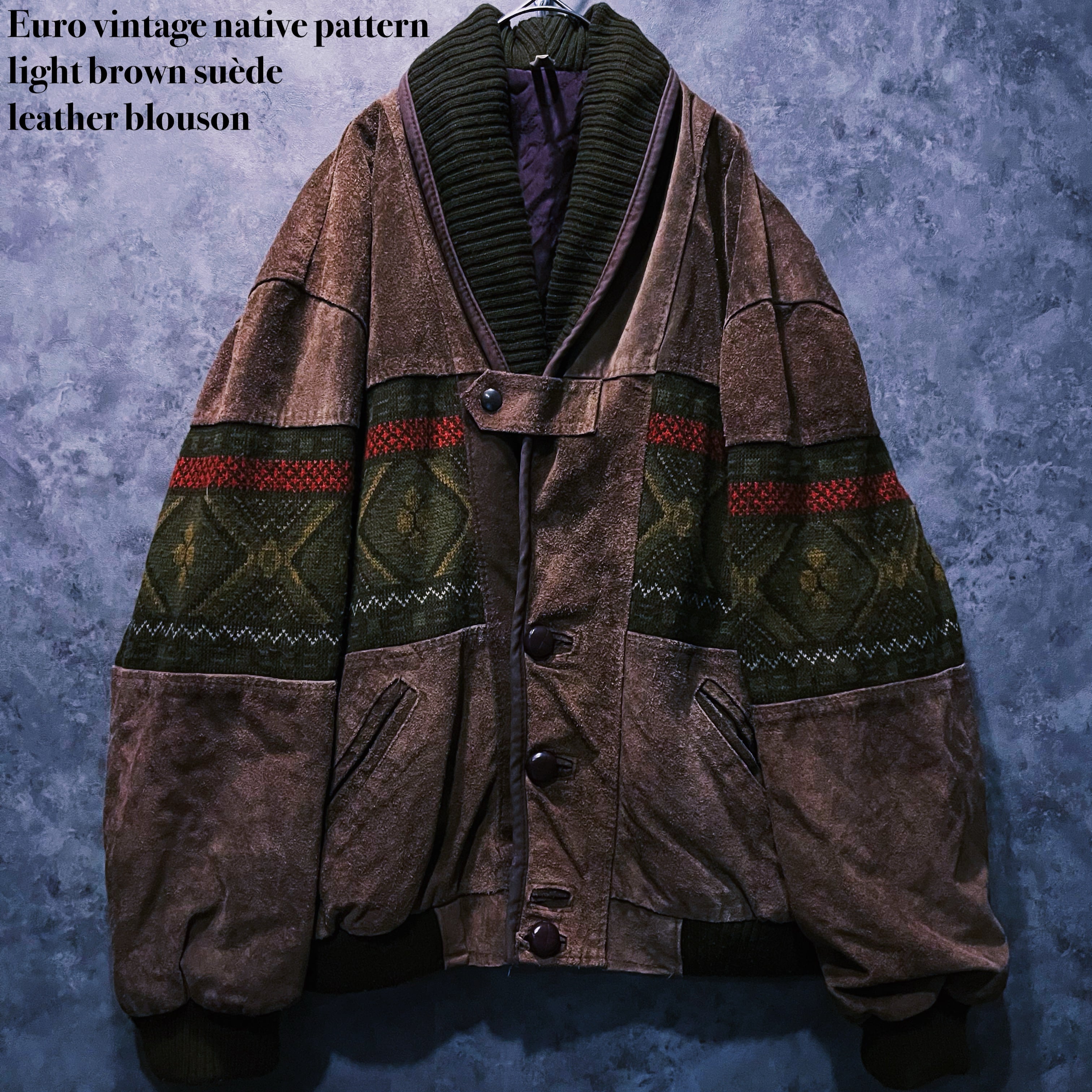 ユーロヴィンテージネイティブパターンライトブラウンスエードレザーブルゾン