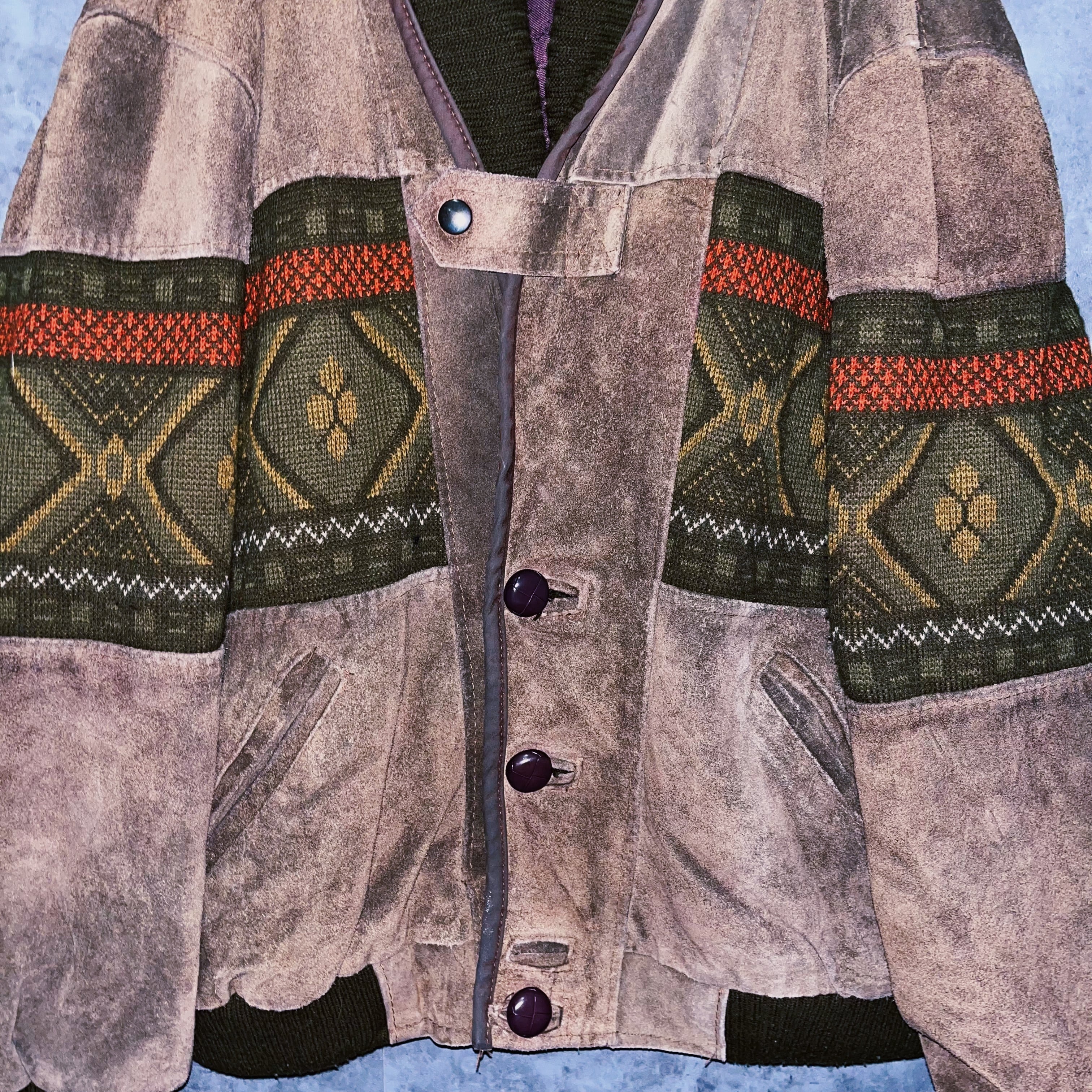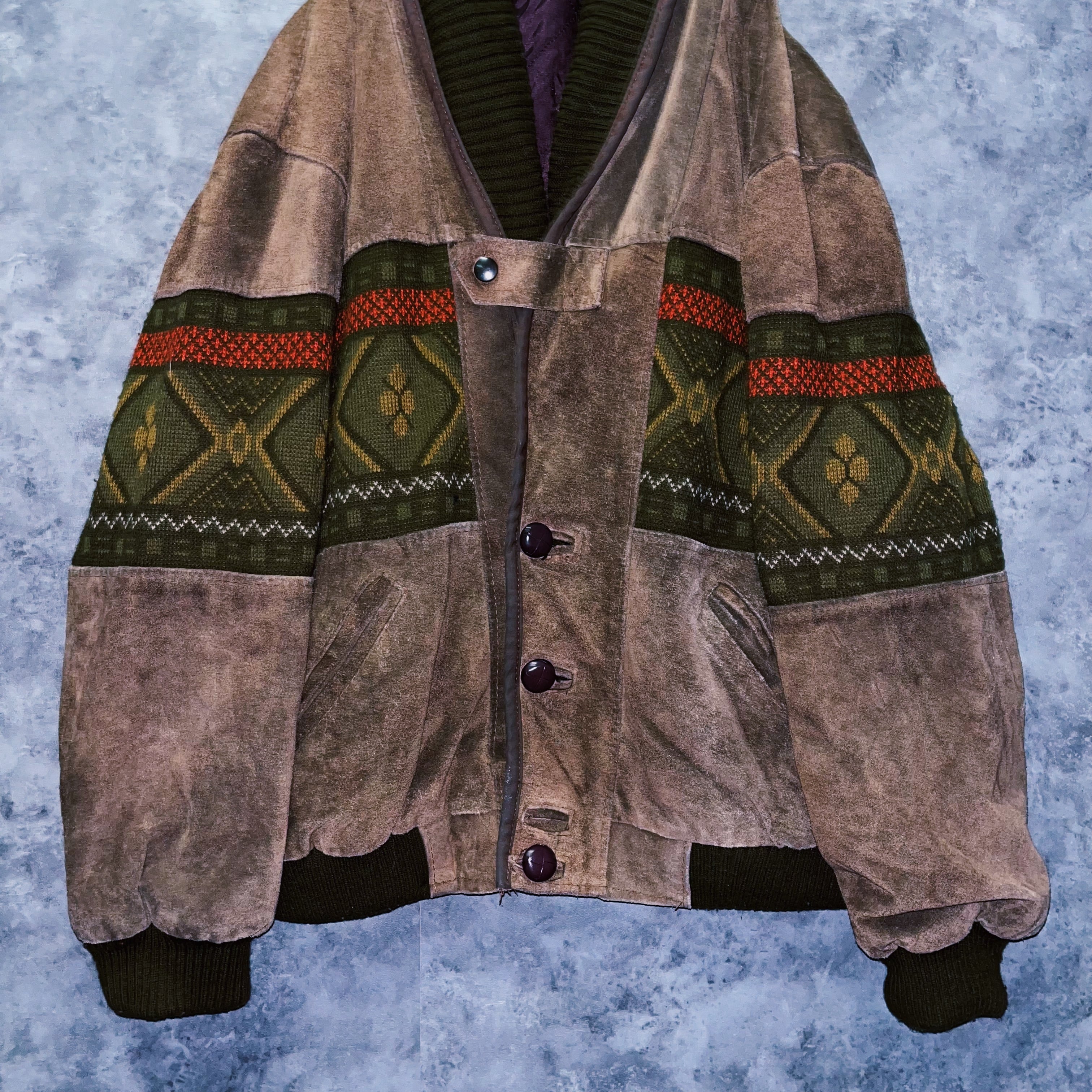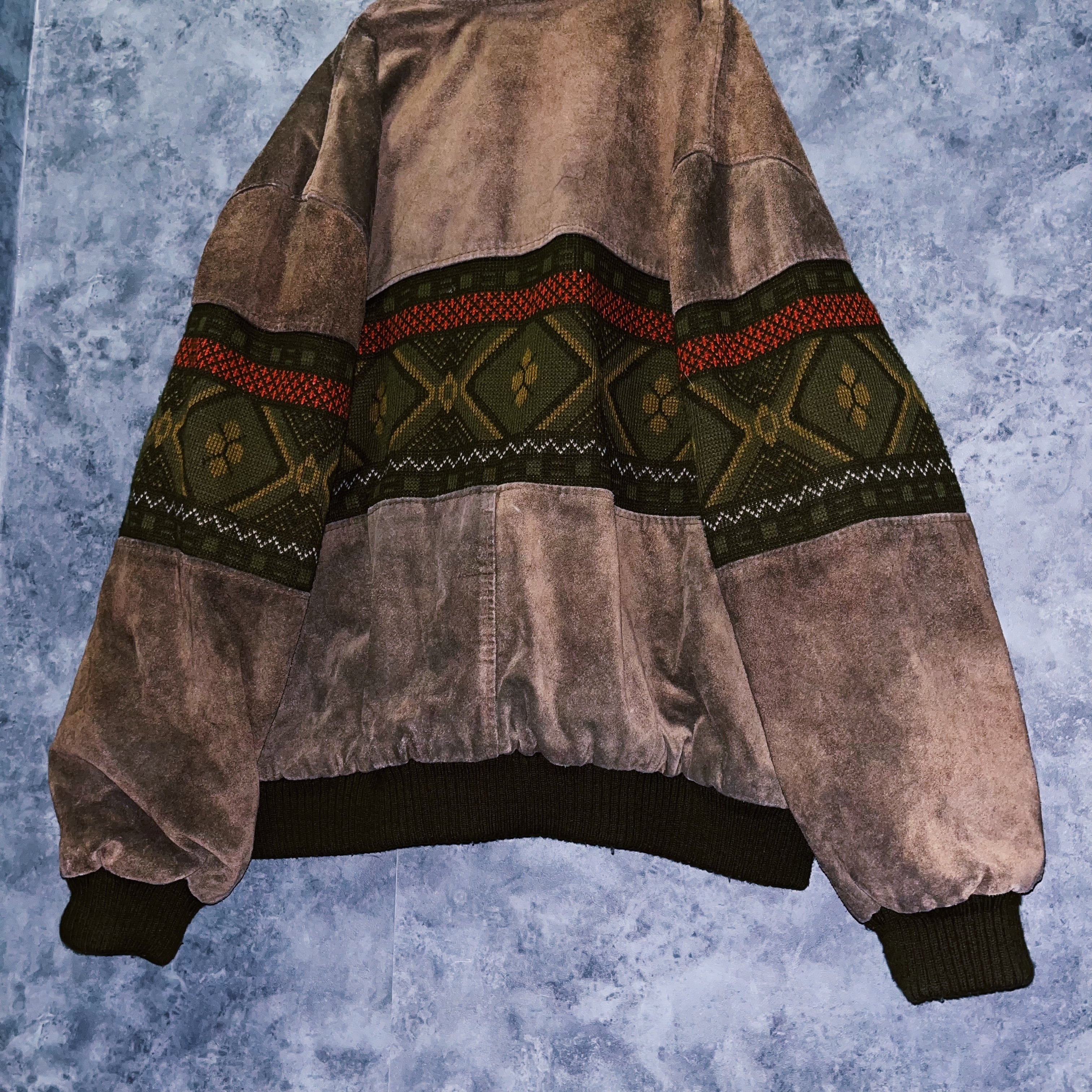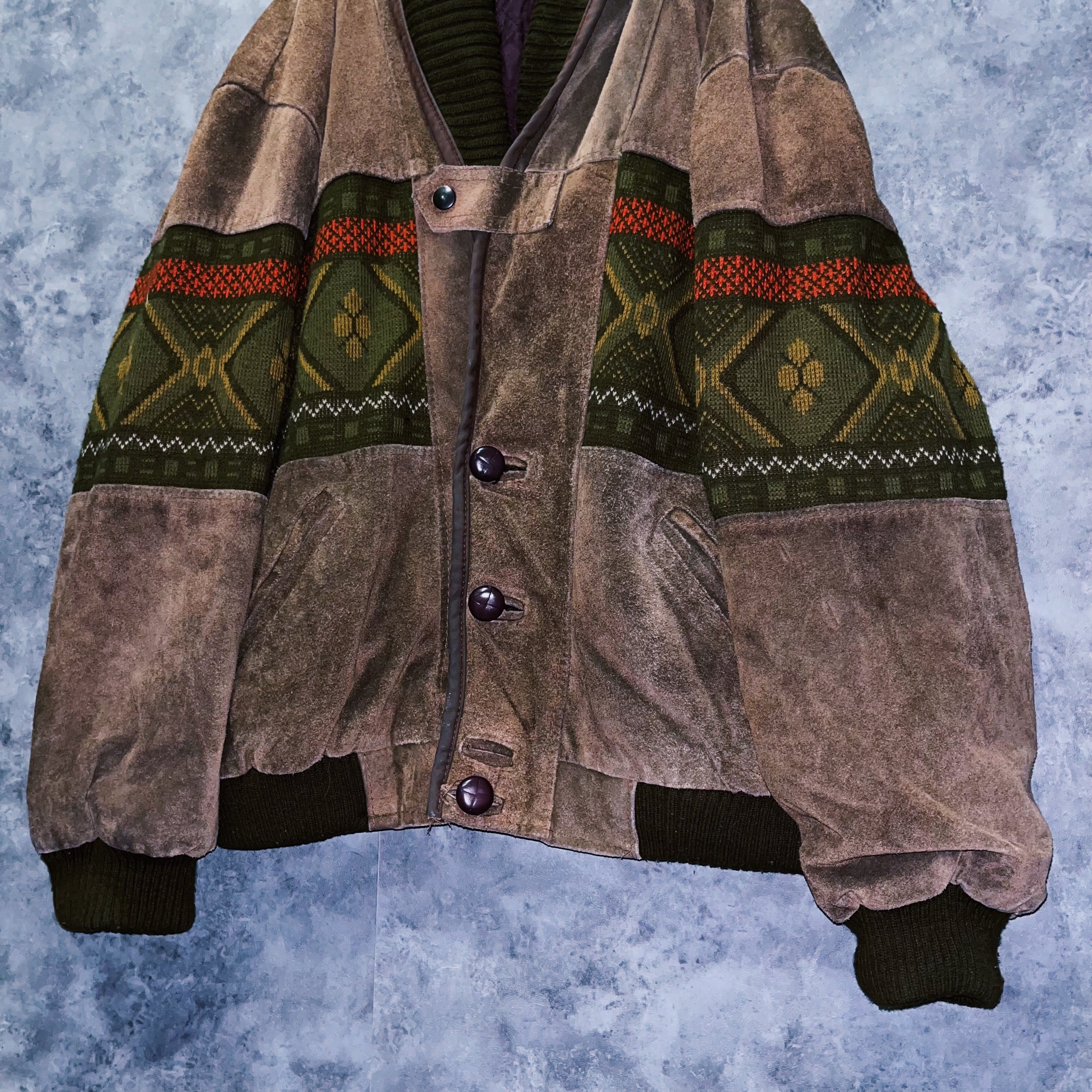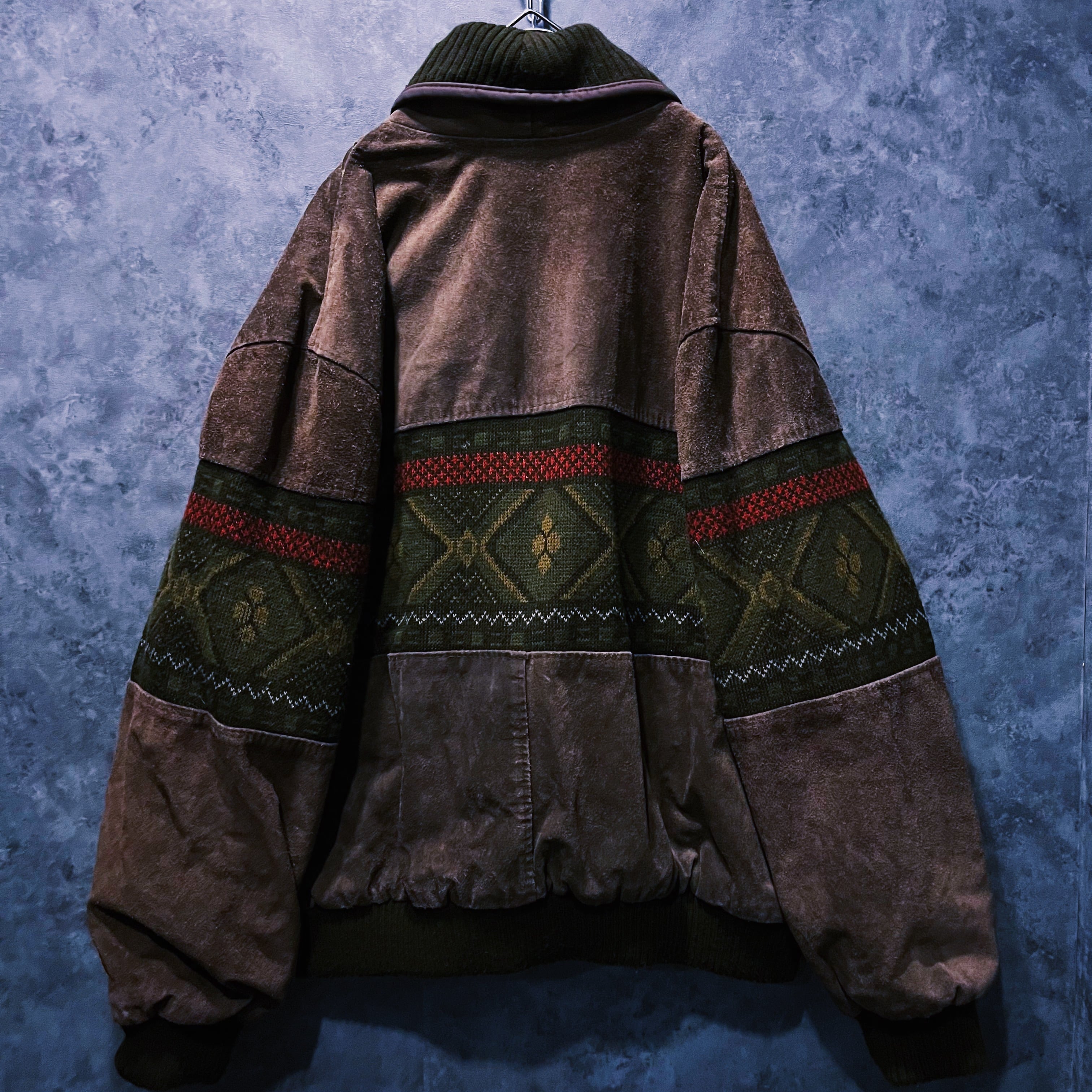 ユーロヴィンテージネイティブパターンライトブラウンスエードレザーブルゾン