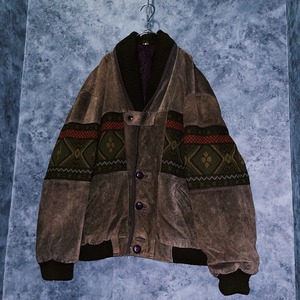 【doppio】Euro vintage native pattern light brown suède leather blouson