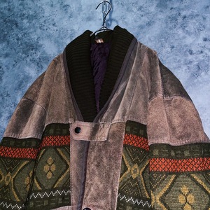 ニット素材のネイティブパターンはかなりの存在感。なにより、ライトブラウンカラーのスエードと切り替えしのデザインになっており渋さがマシマシの雰囲気がたまりませんね。