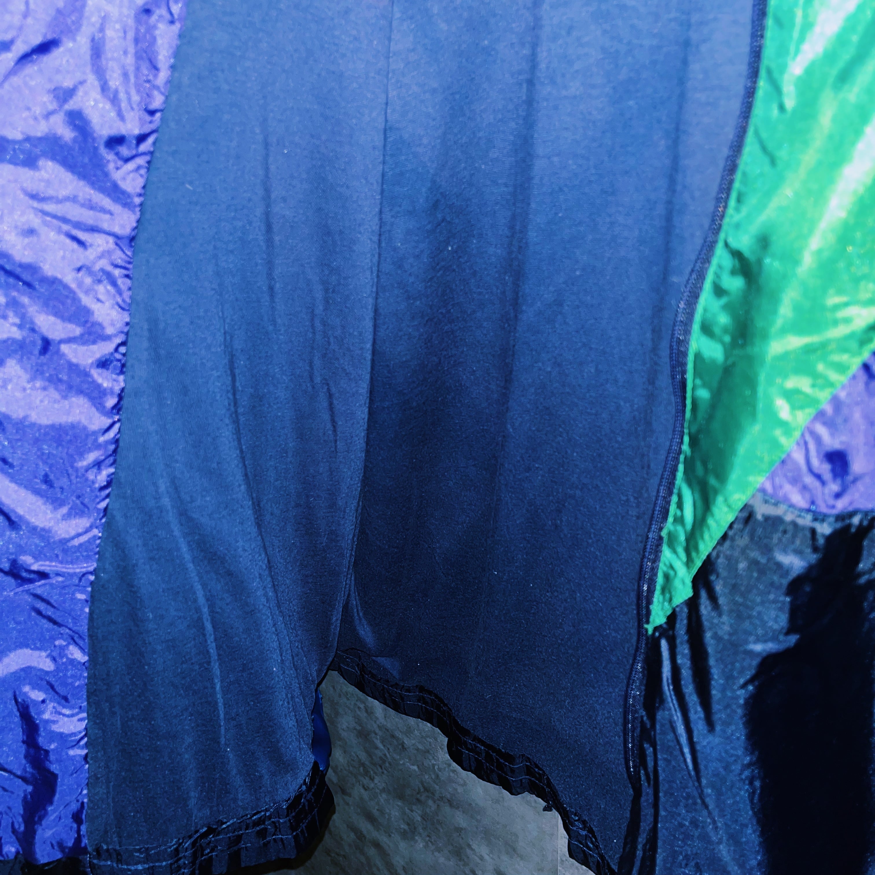 光をしっかり反射するナイロン素材でどのカラーも宝石のような輝きを見せてくれるデザイン。フロントにブラックカラーを置いたことで全体に締まりが与えられ、V字に入ったグリーンカラーもエッジの効いたデザインに。