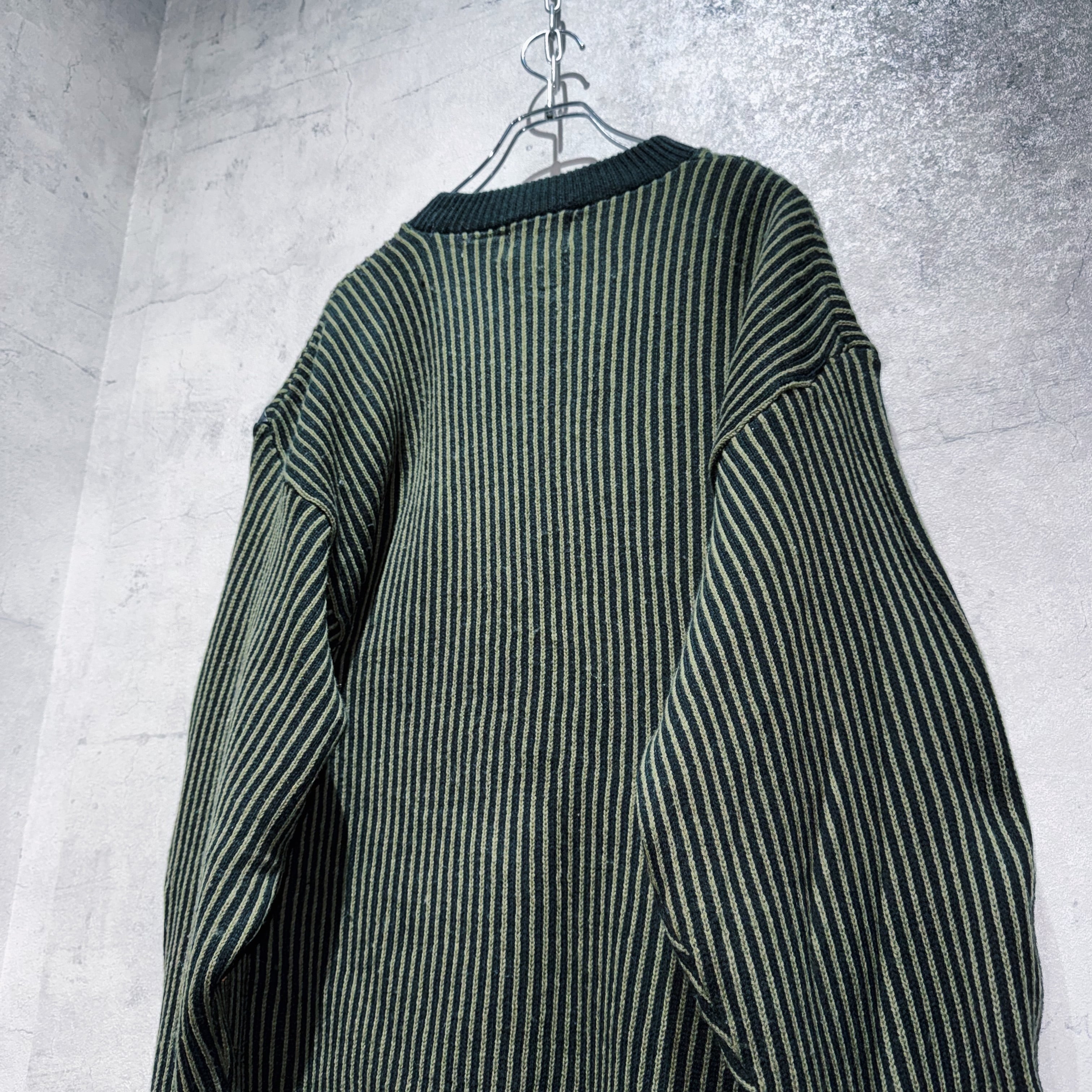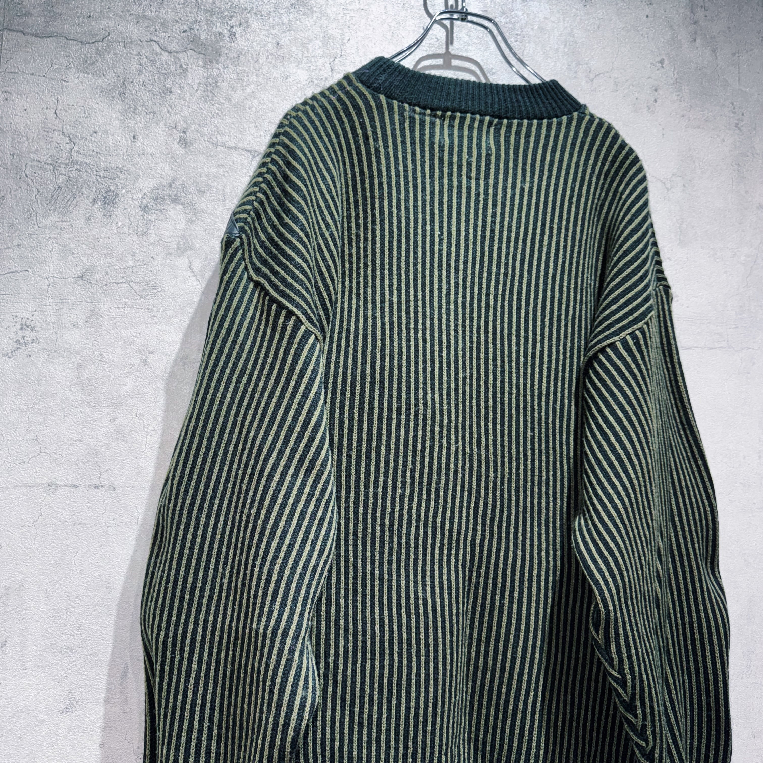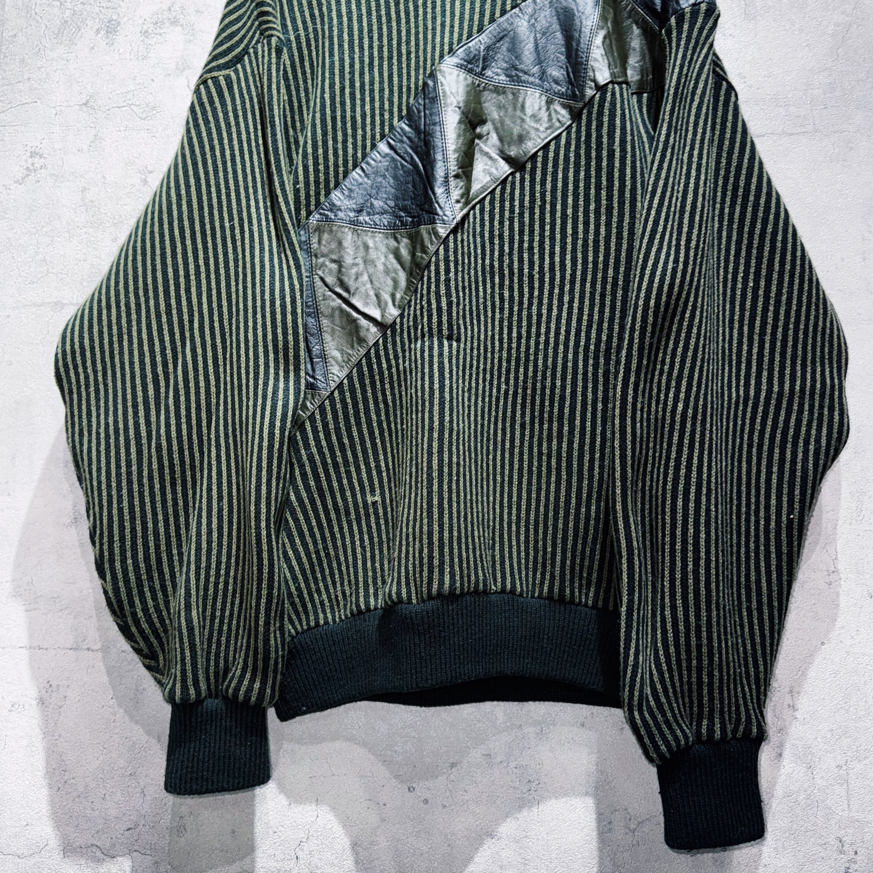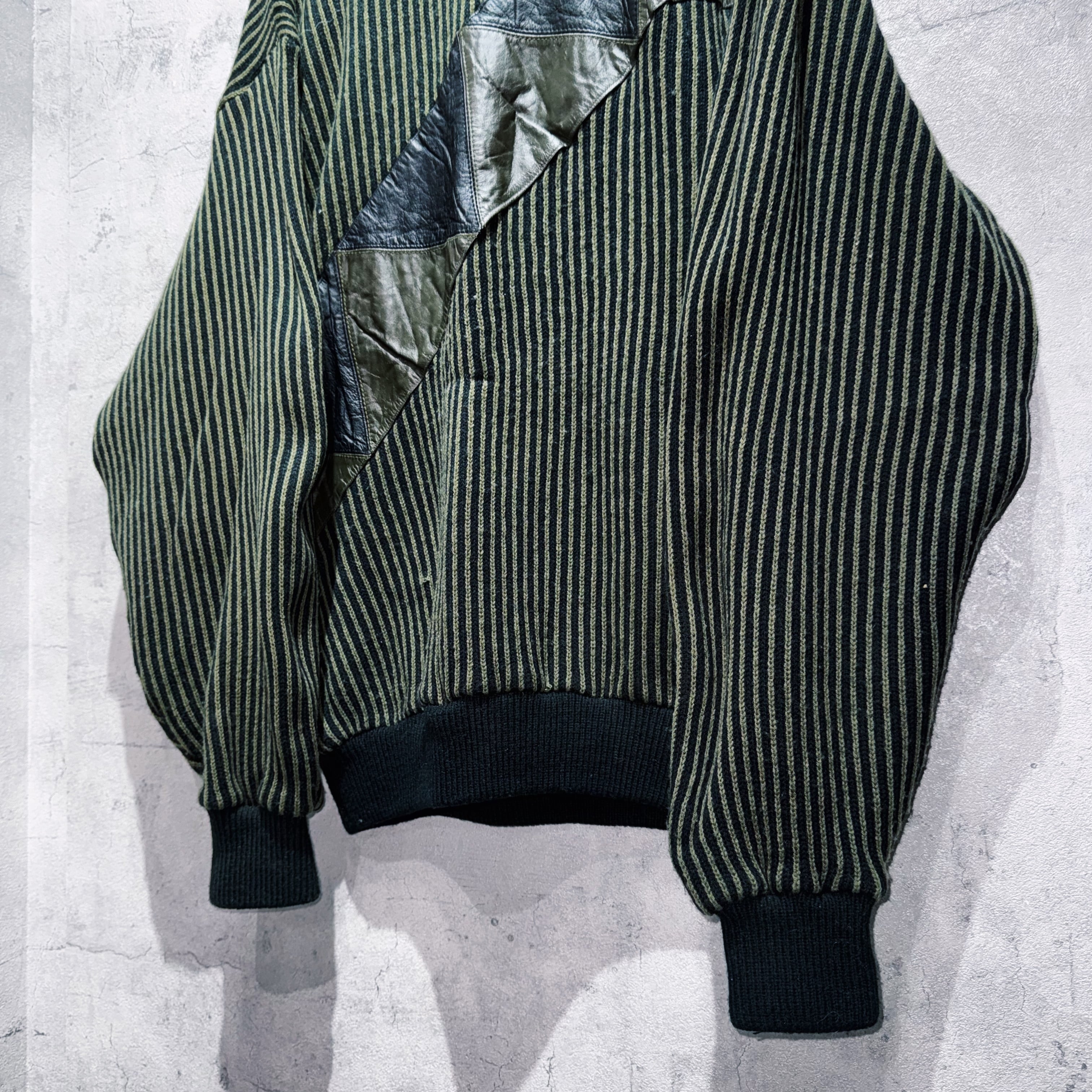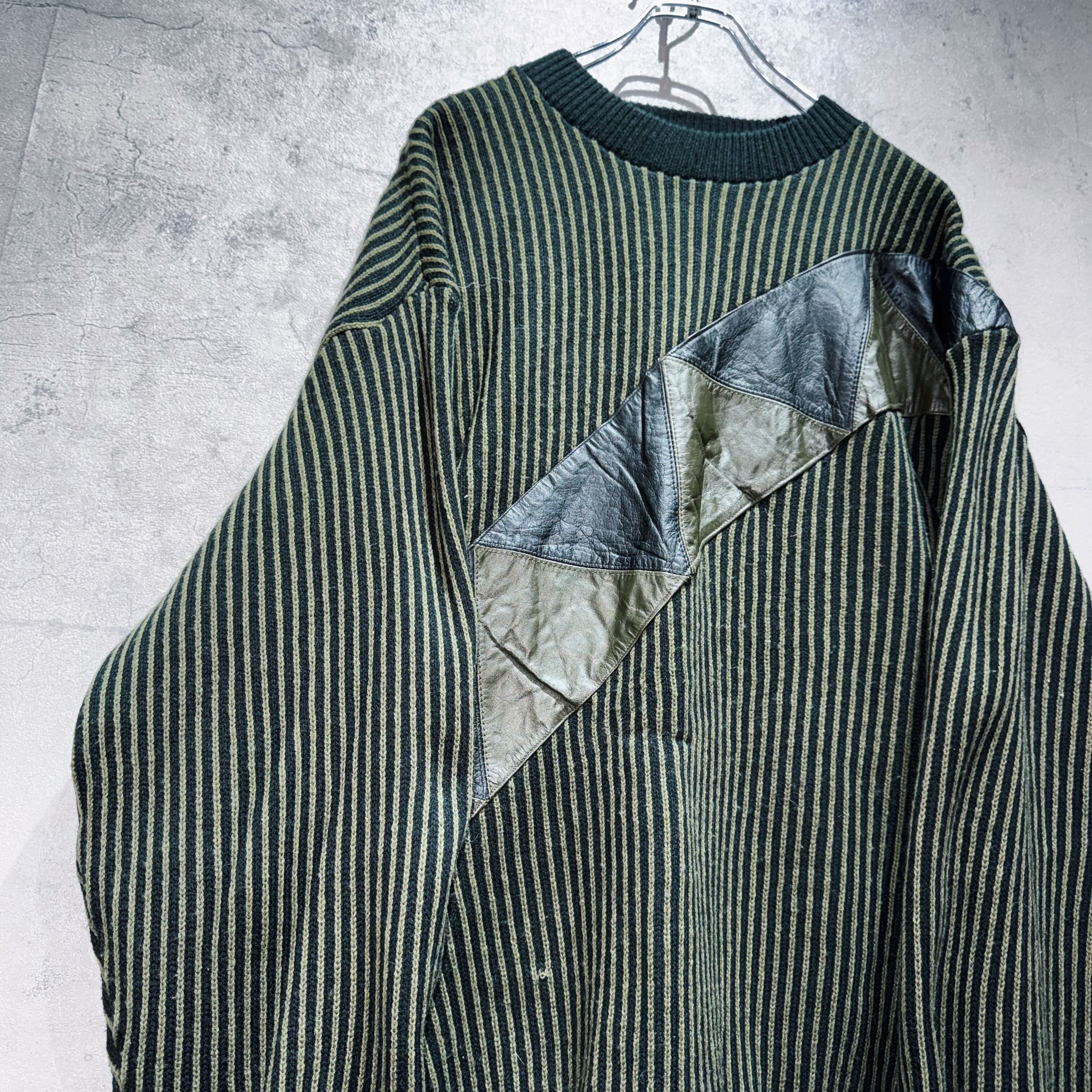 vintage leather switching design stripe pattern knit