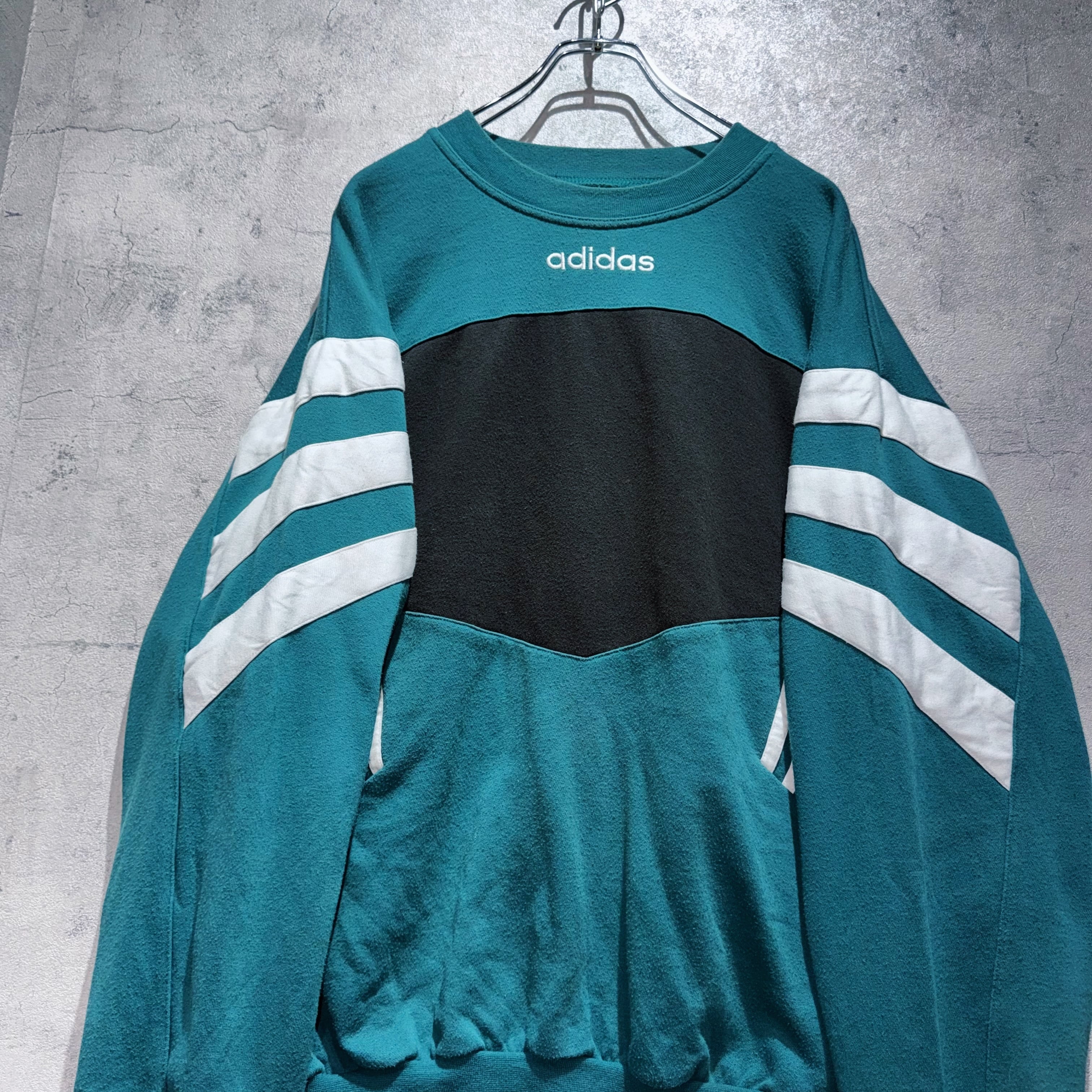 80年代"アディダス"ユーロヴィンテージスイッチングカラーデザインプルオーバースウェット