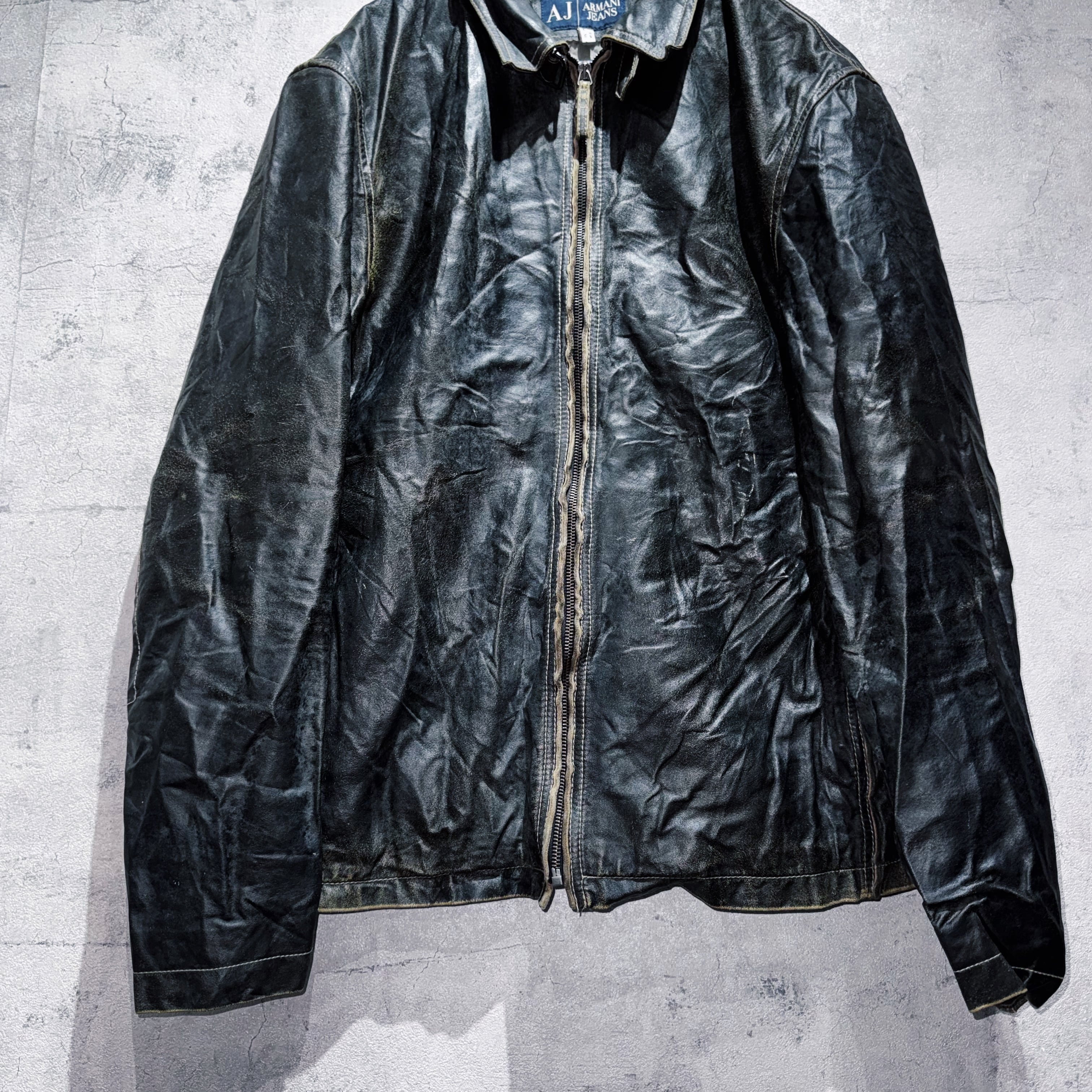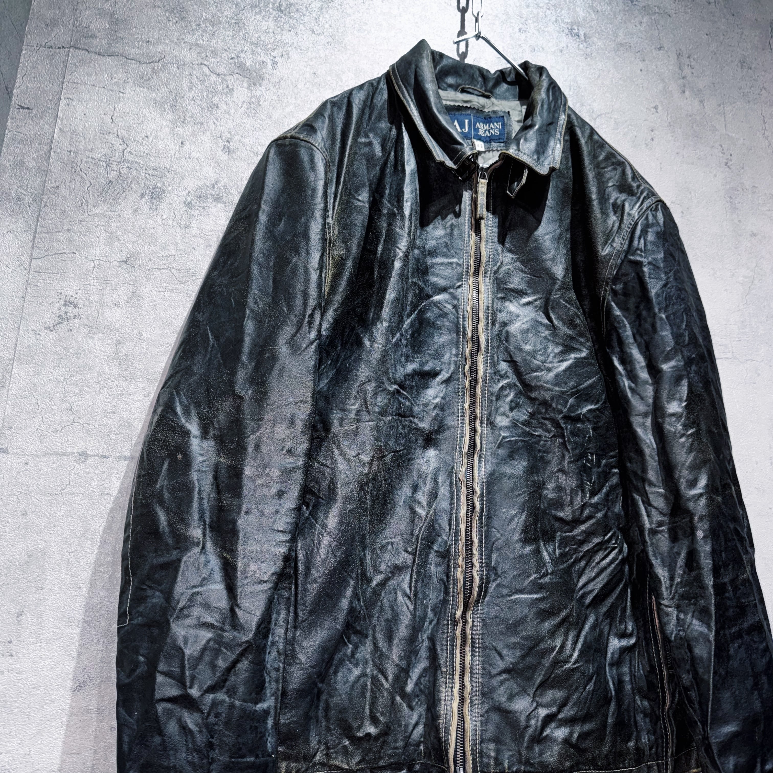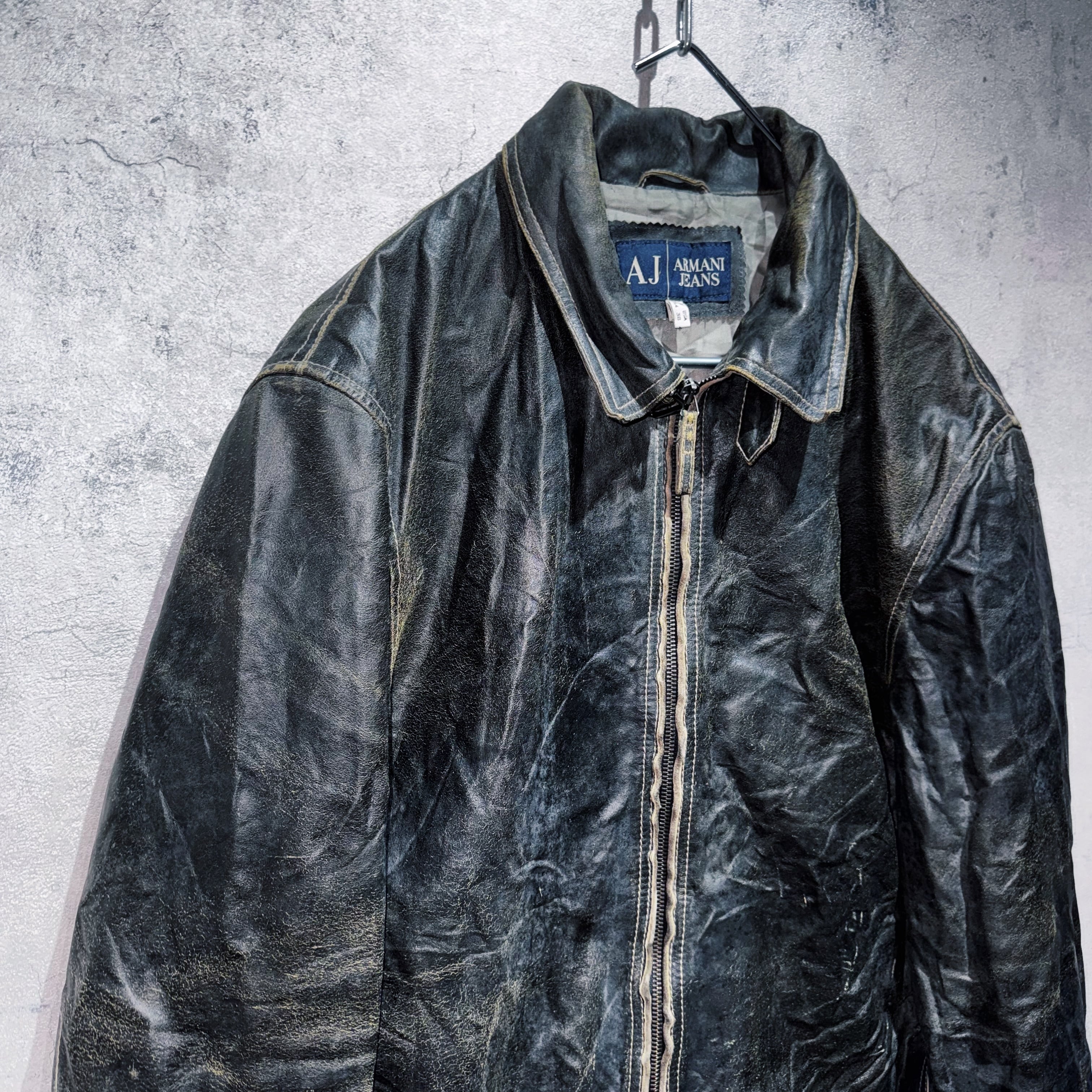 1981年にジョルジオアルマーニから発表された高品質且つラグジュアリーでモダンなデザインを意識した"EMPORIO ARMANI”のカジュアルライン"ARMANI JEANS"からスペシャルなレザージャケットをご紹介。