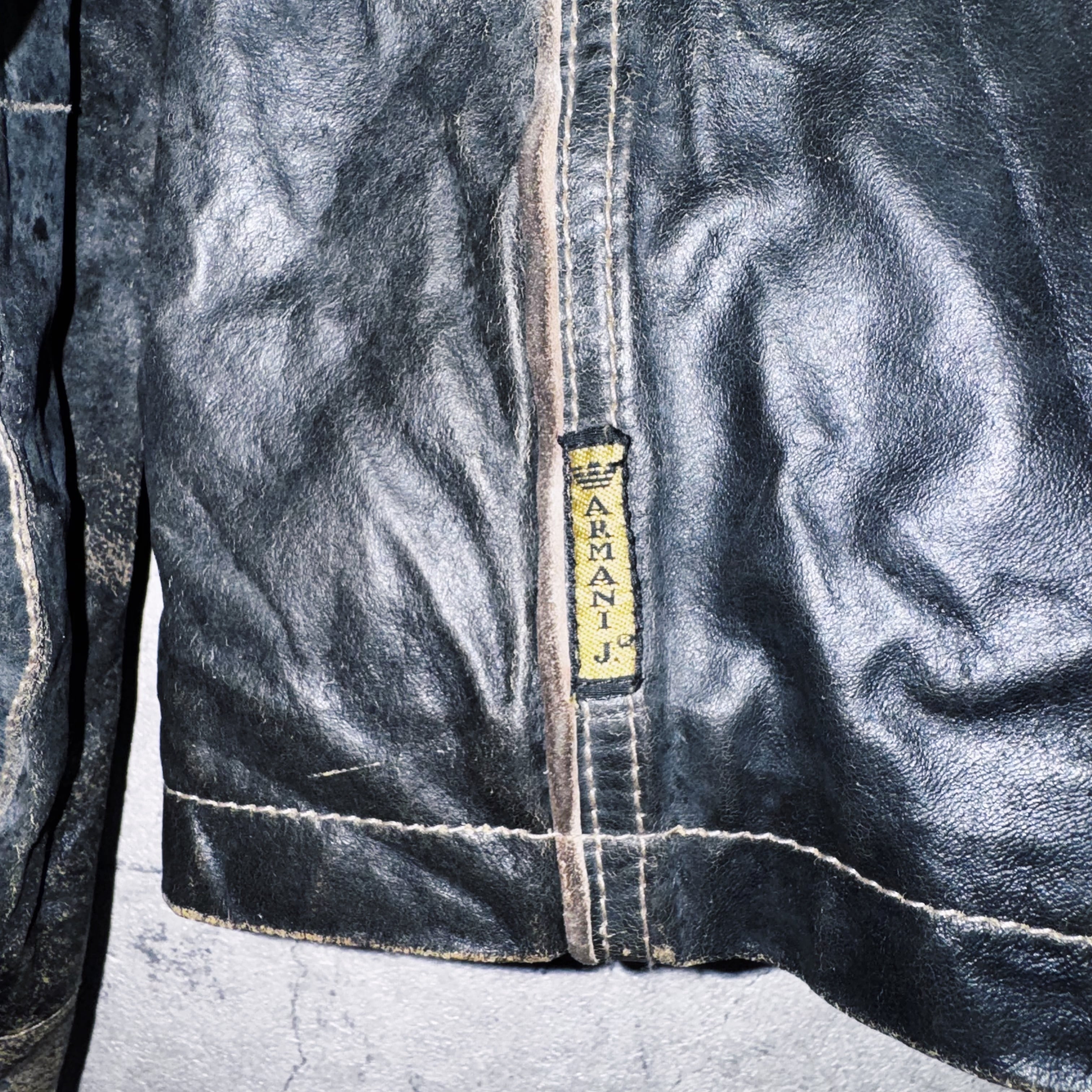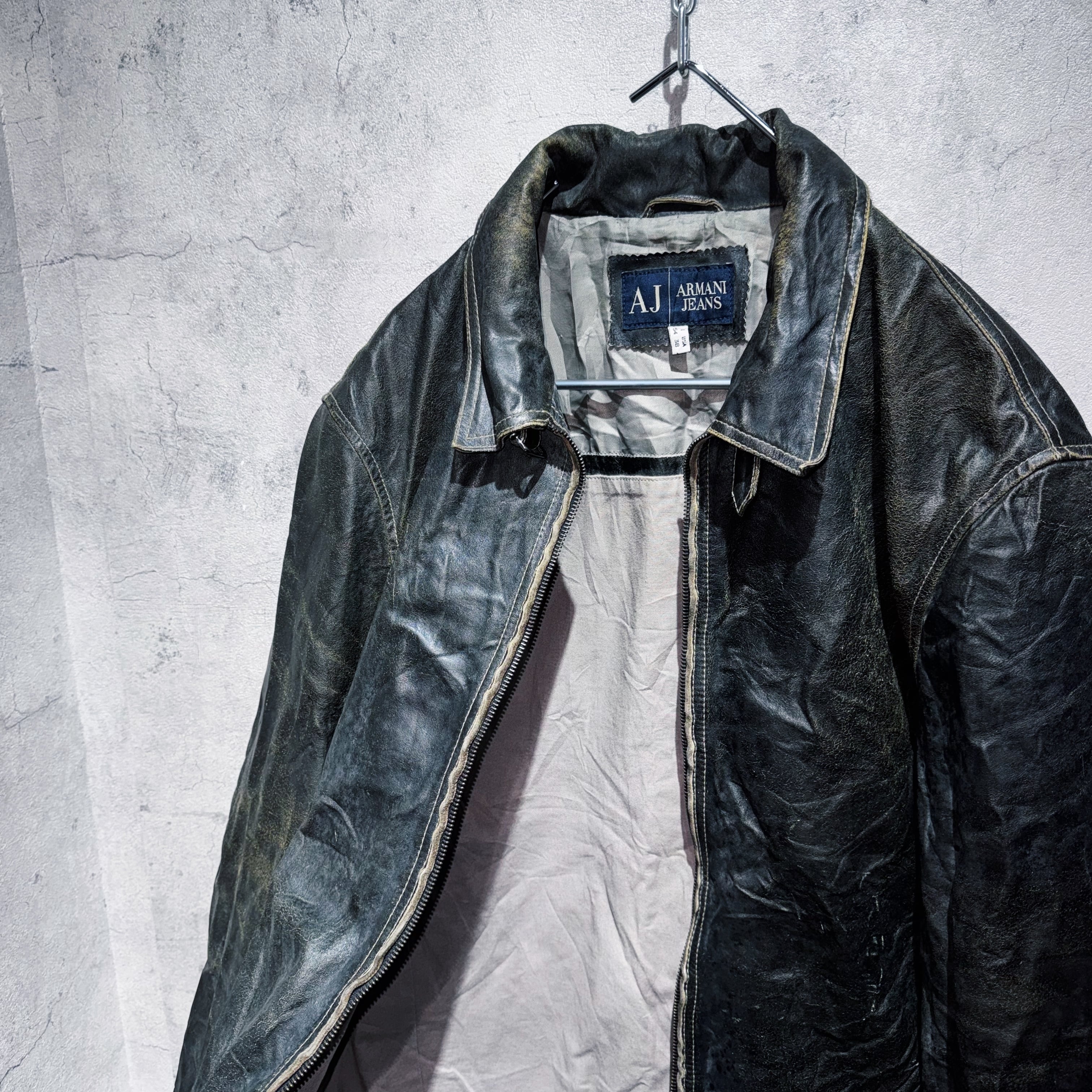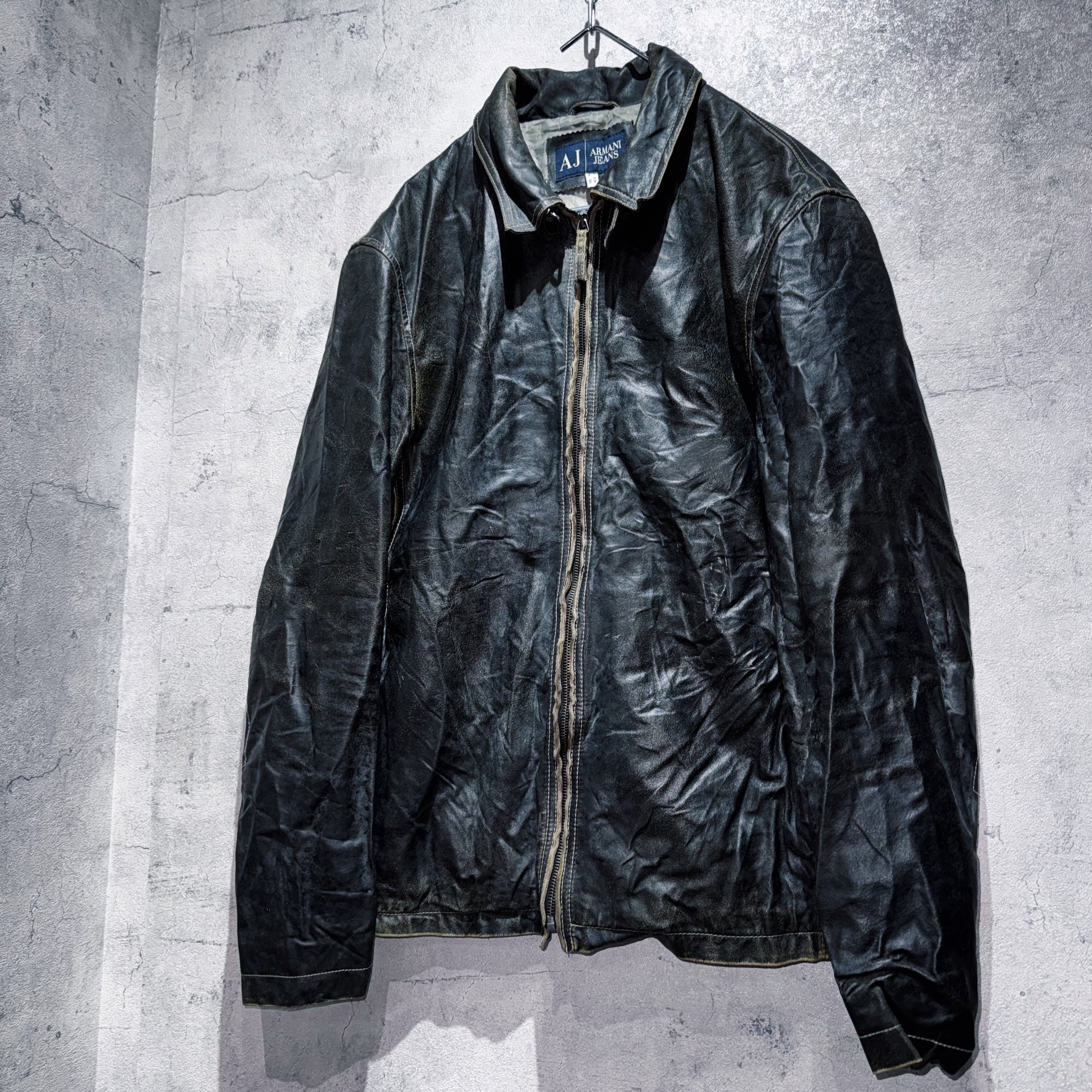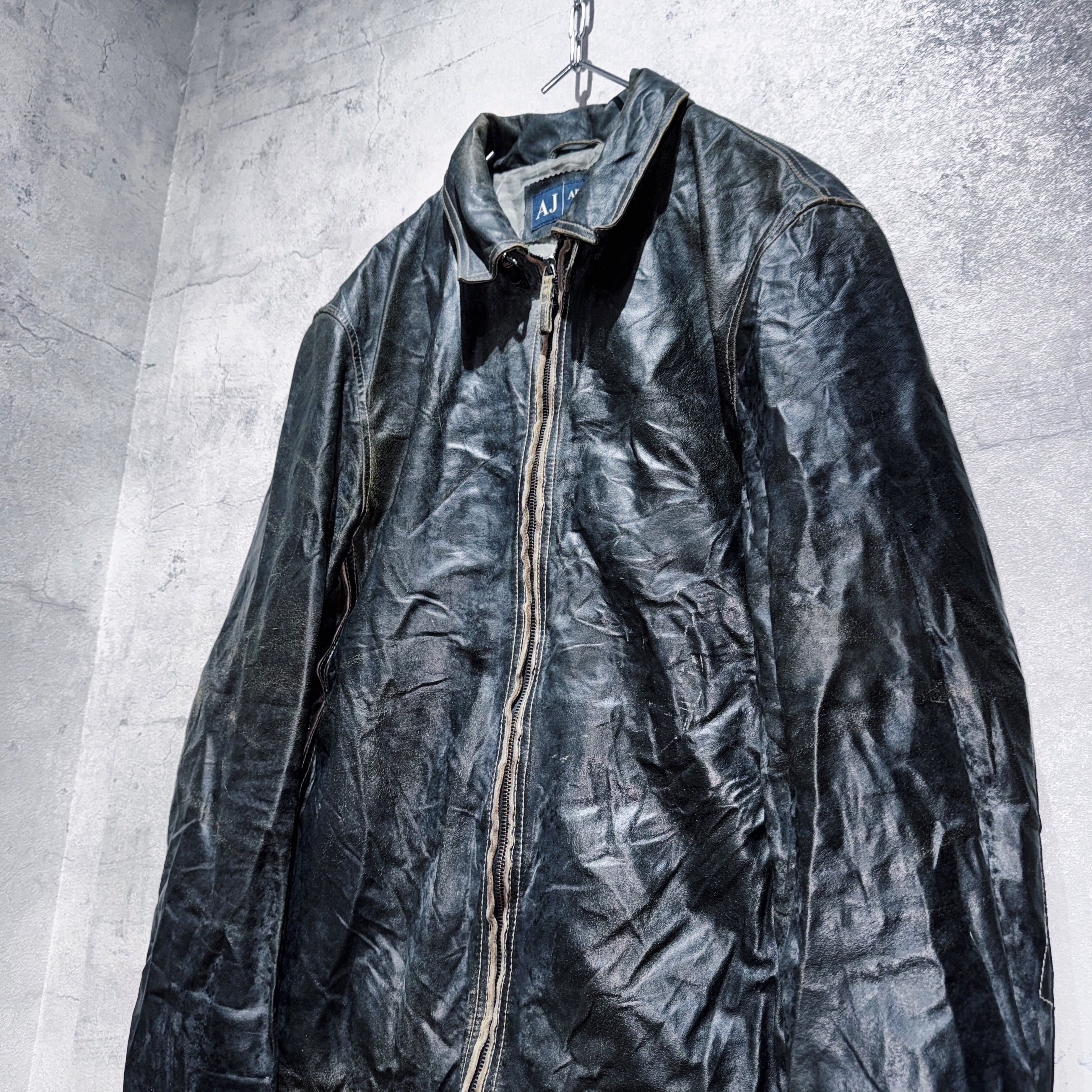 1981年にジョルジオアルマーニから発表された高品質且つラグジュアリーでモダンなデザインを意識した"EMPORIO ARMANI”のカジュアルライン"ARMANI JEANS"からスペシャルなレザージャケットをご紹介。