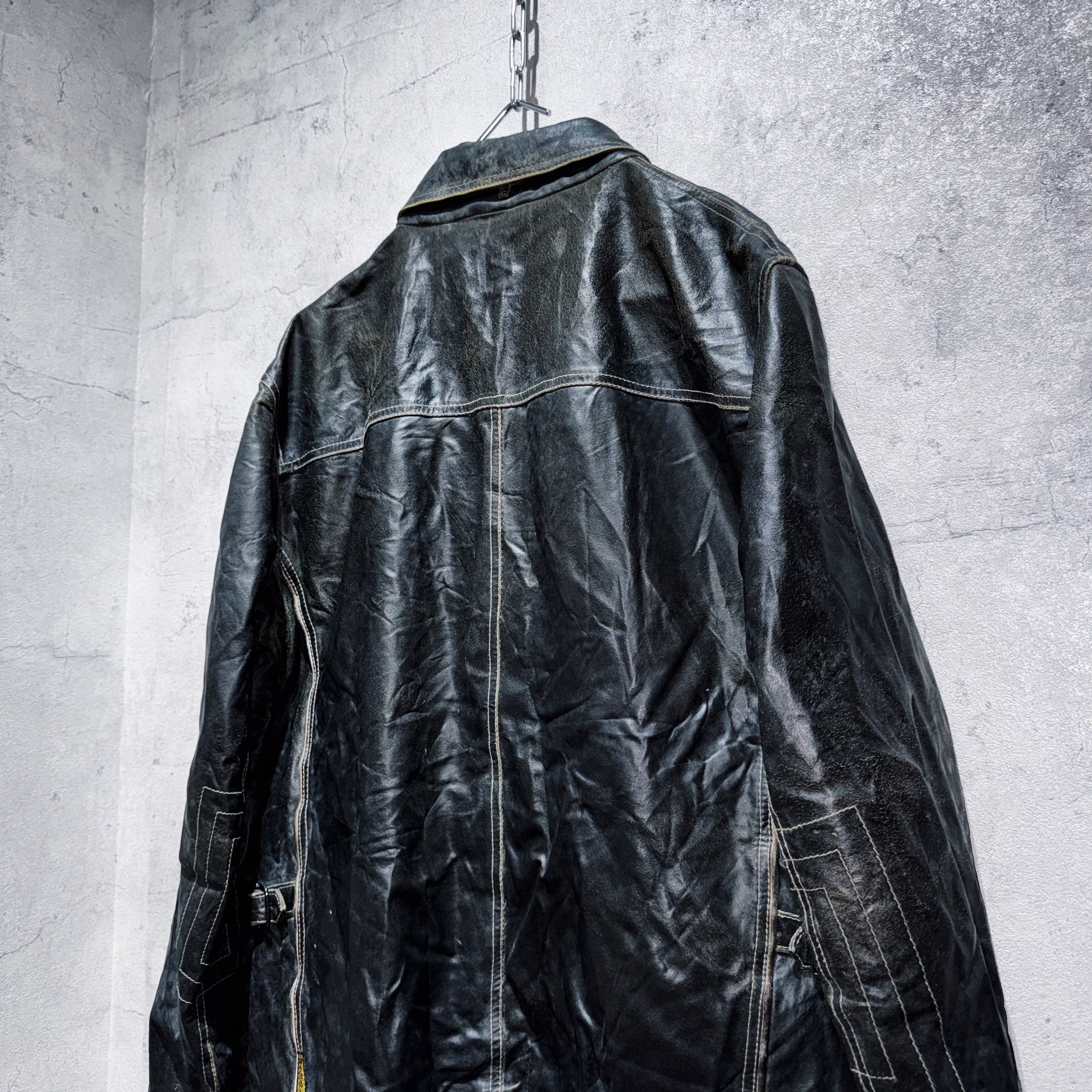スペシャル"アルマーニジーンズ"2ウェイカラーデザインレザージャケット
