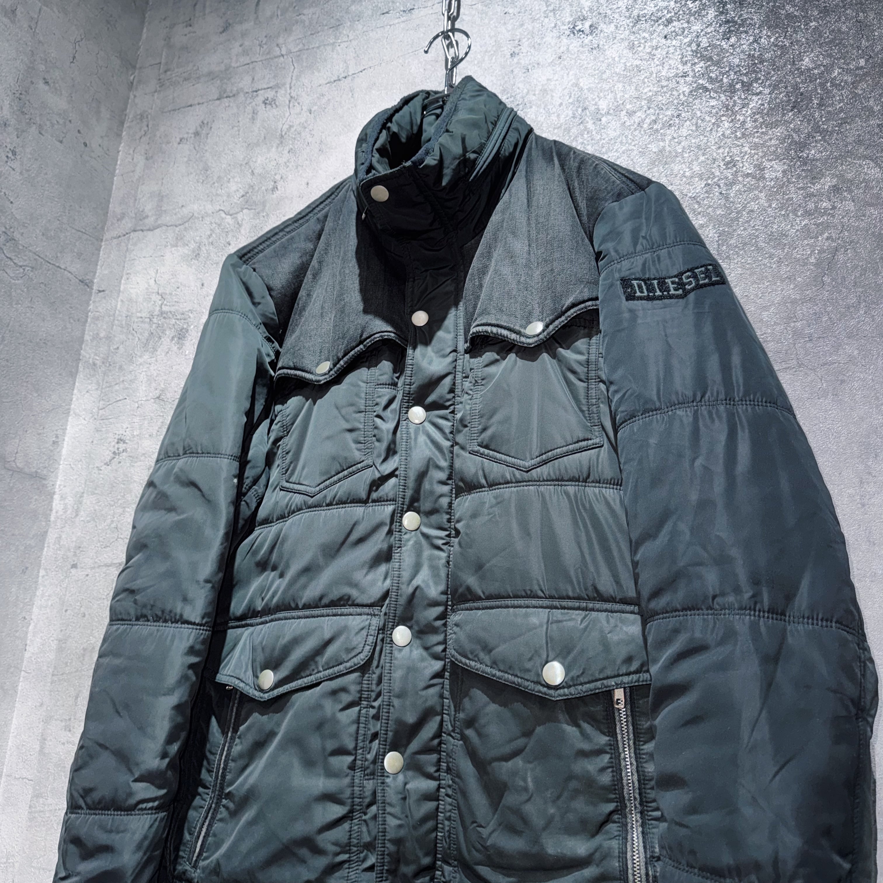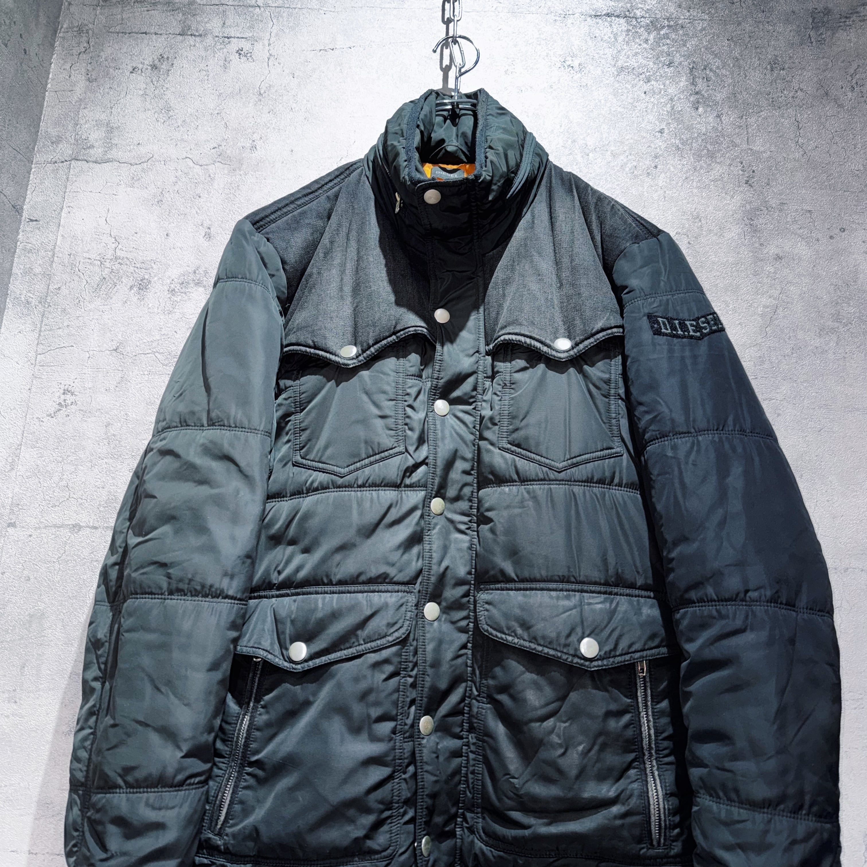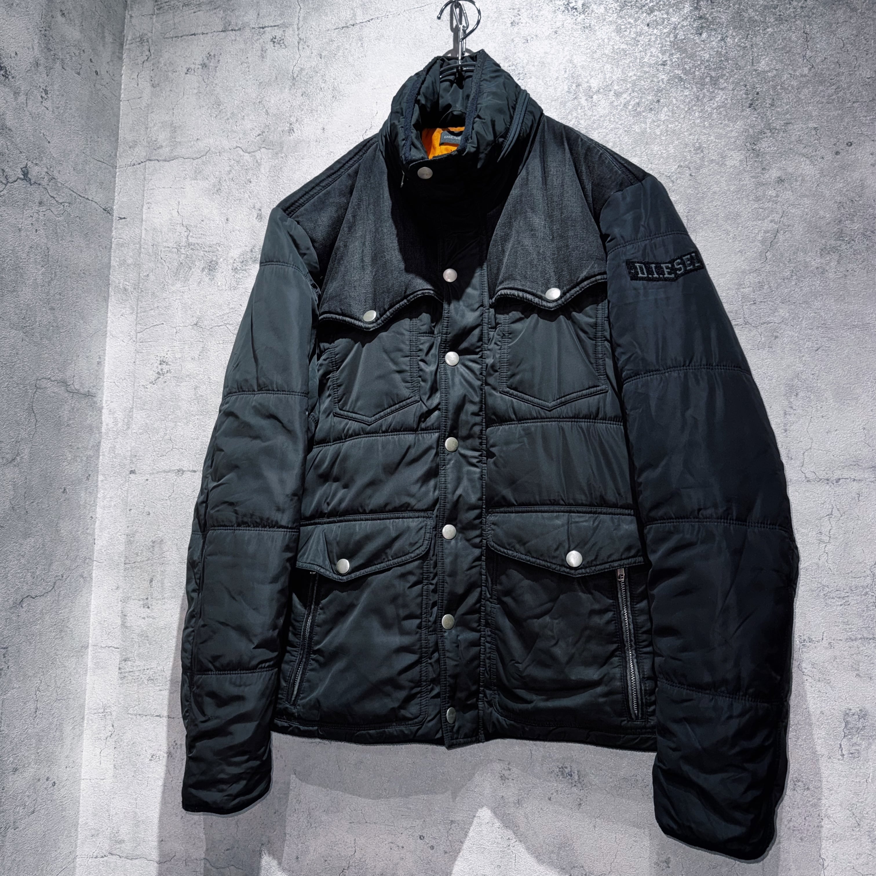 "ディーゼル"デニムマテリアルスイッチングデザインダウンジャケット