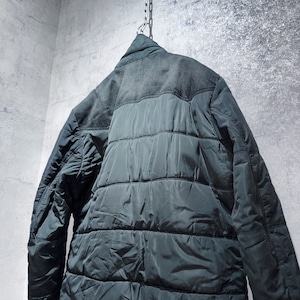 スタンドネックでフロントには4つのポケット、M-65のようなディテールのダウンジャケット。ヨークの部分はデニム素材に切り替わっており重厚感を演出。