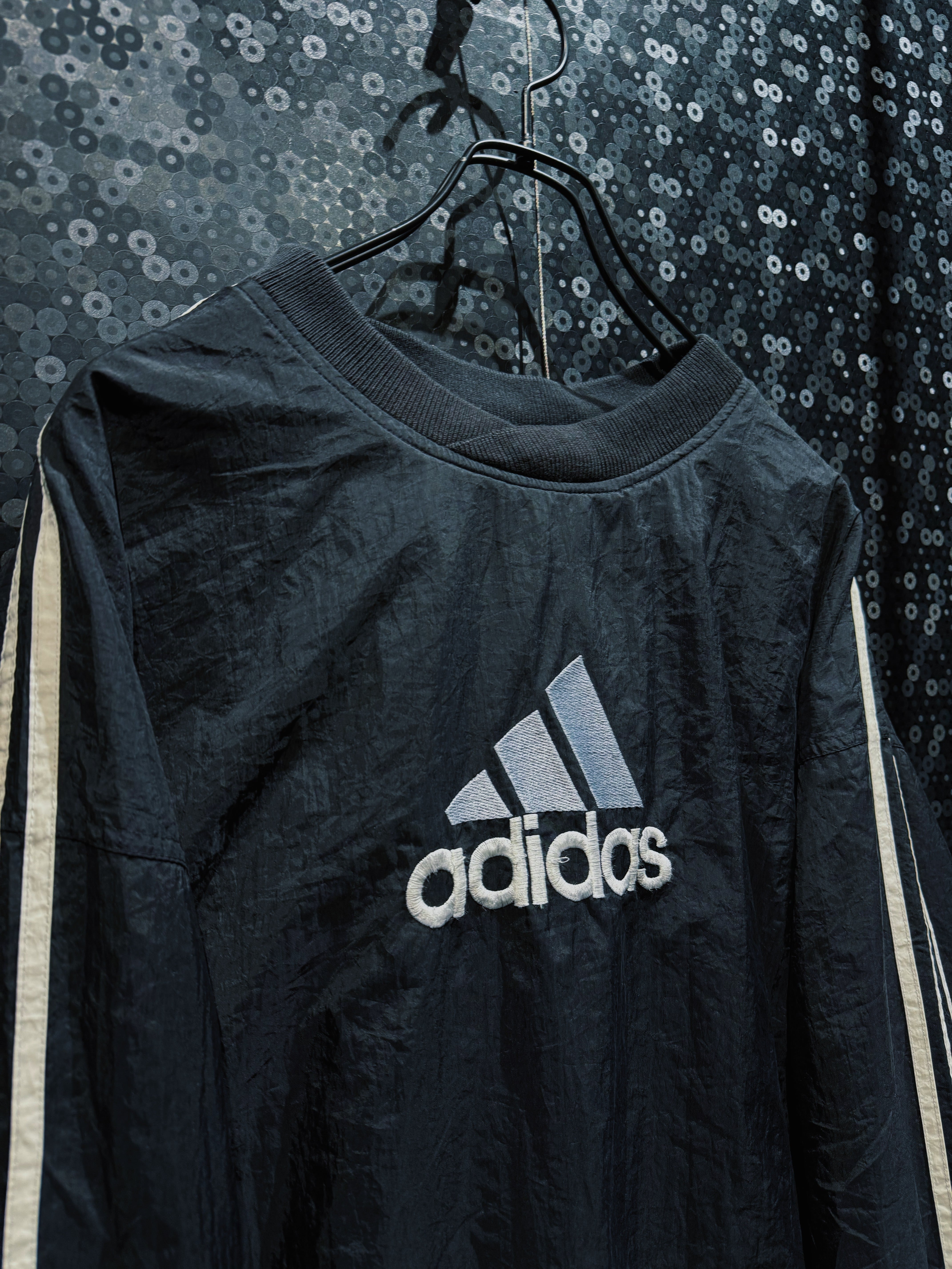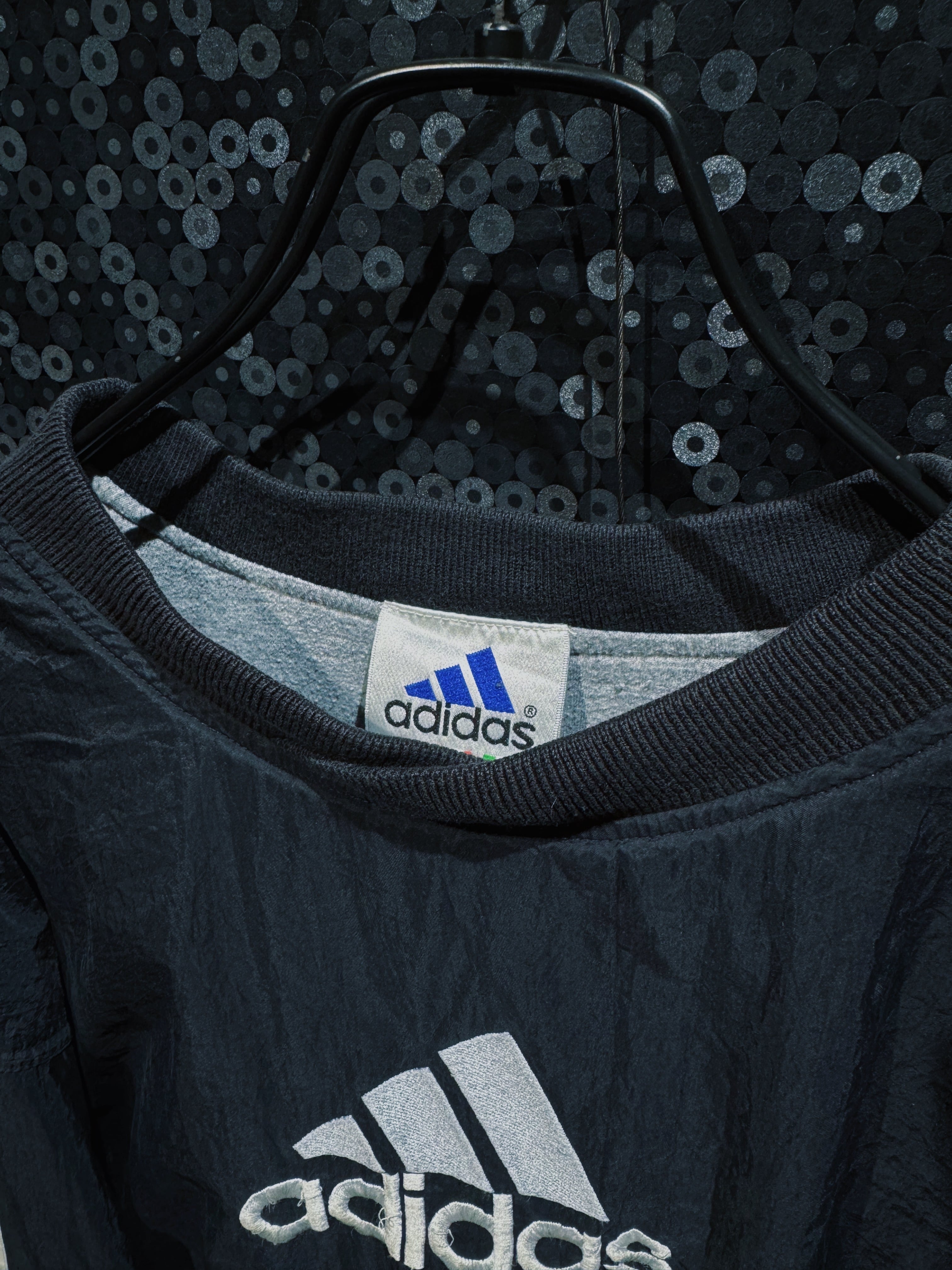 90s〜Y2Kのスポーツ×ストリート文脈を象徴するようなアイテムで、一枚で主役になるのはもちろん、インナー使いでもロゴがしっかり映える。今のスタイリングに落とし込んでも違和感なくハマる、adidasヴィンテージらしい完成度の高いプルオーバー。