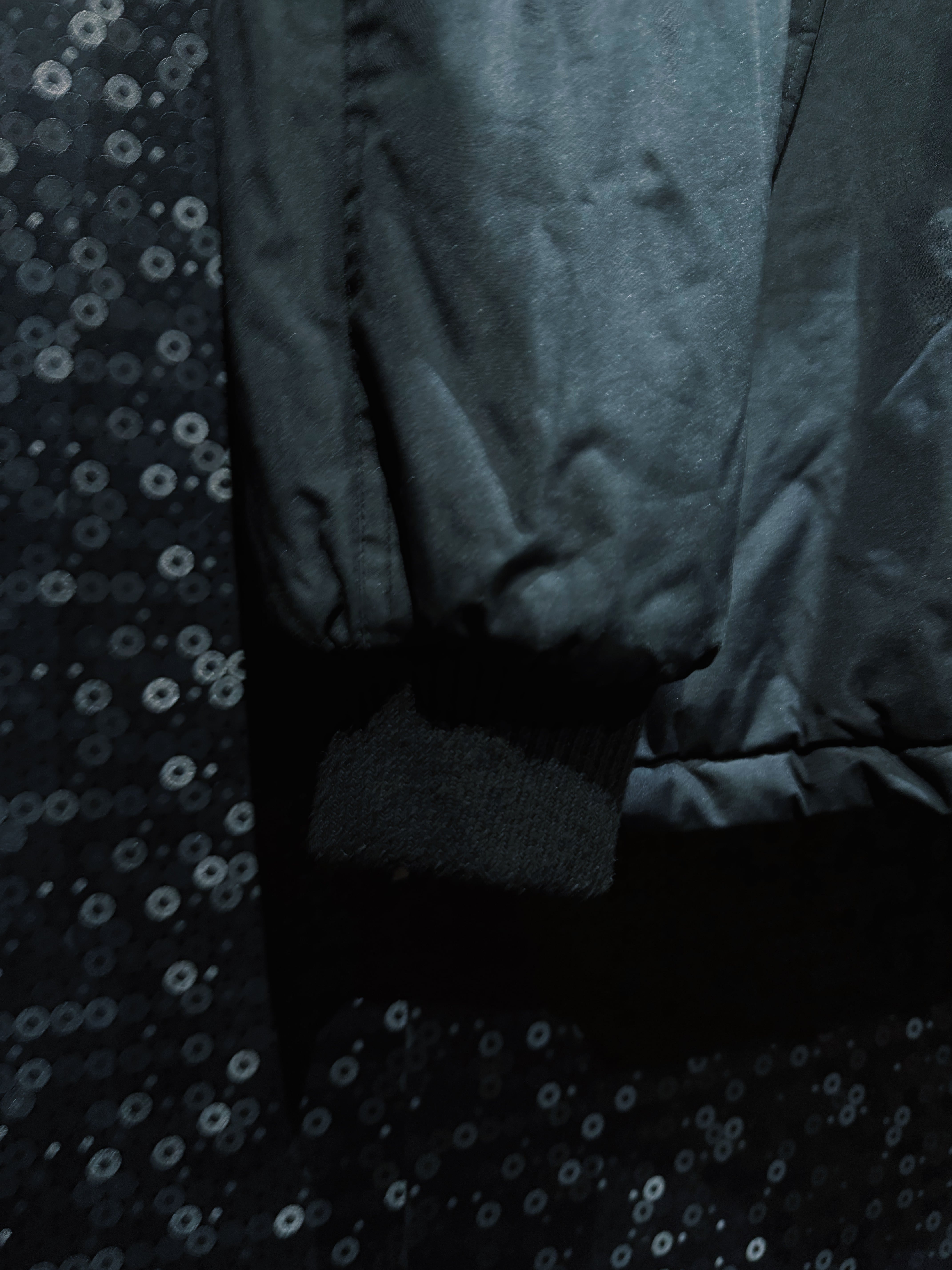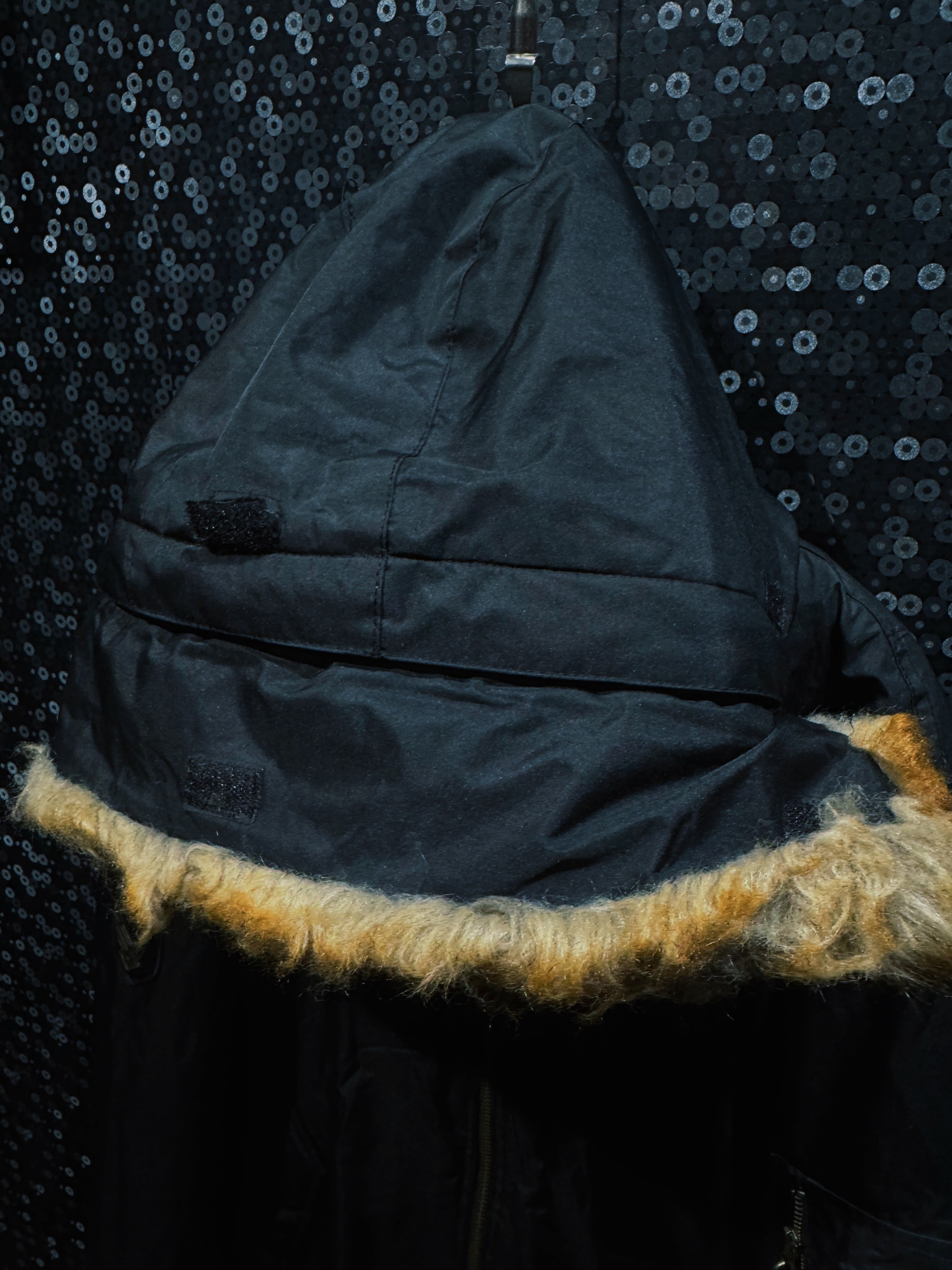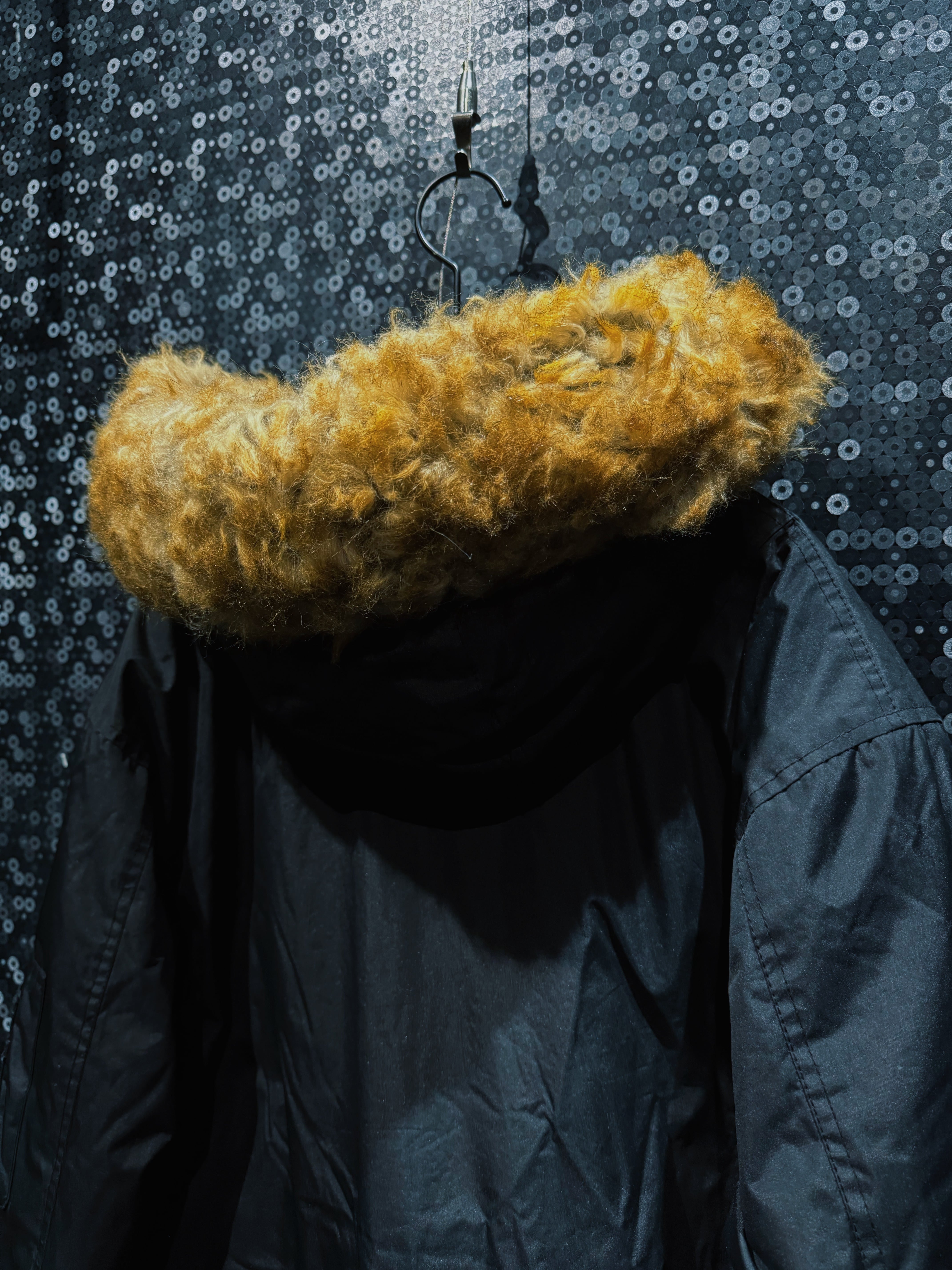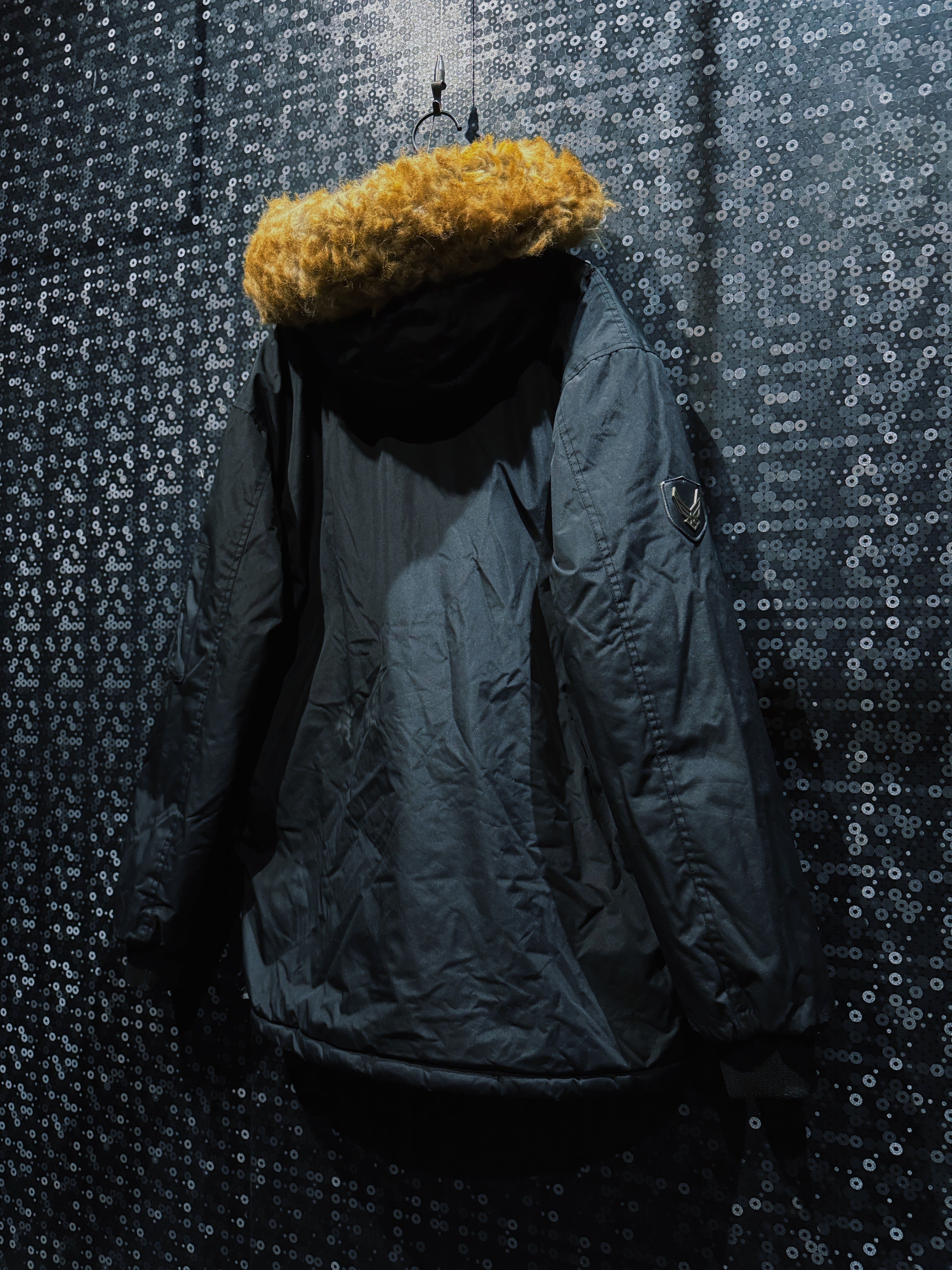 1984年創業のブランド SPIRE によるフライトジャケットタイプの一着。ミリタリー由来の無骨なシルエットをベースに、重厚感のある中綿ボディとオレンジライニングを組み合わせた、王道でありながらも存在感の強い仕上がり。フード周りにはボリュームのあるファーがあしらわれ、防寒性とビジュアルの両面でインパクトを放つ。