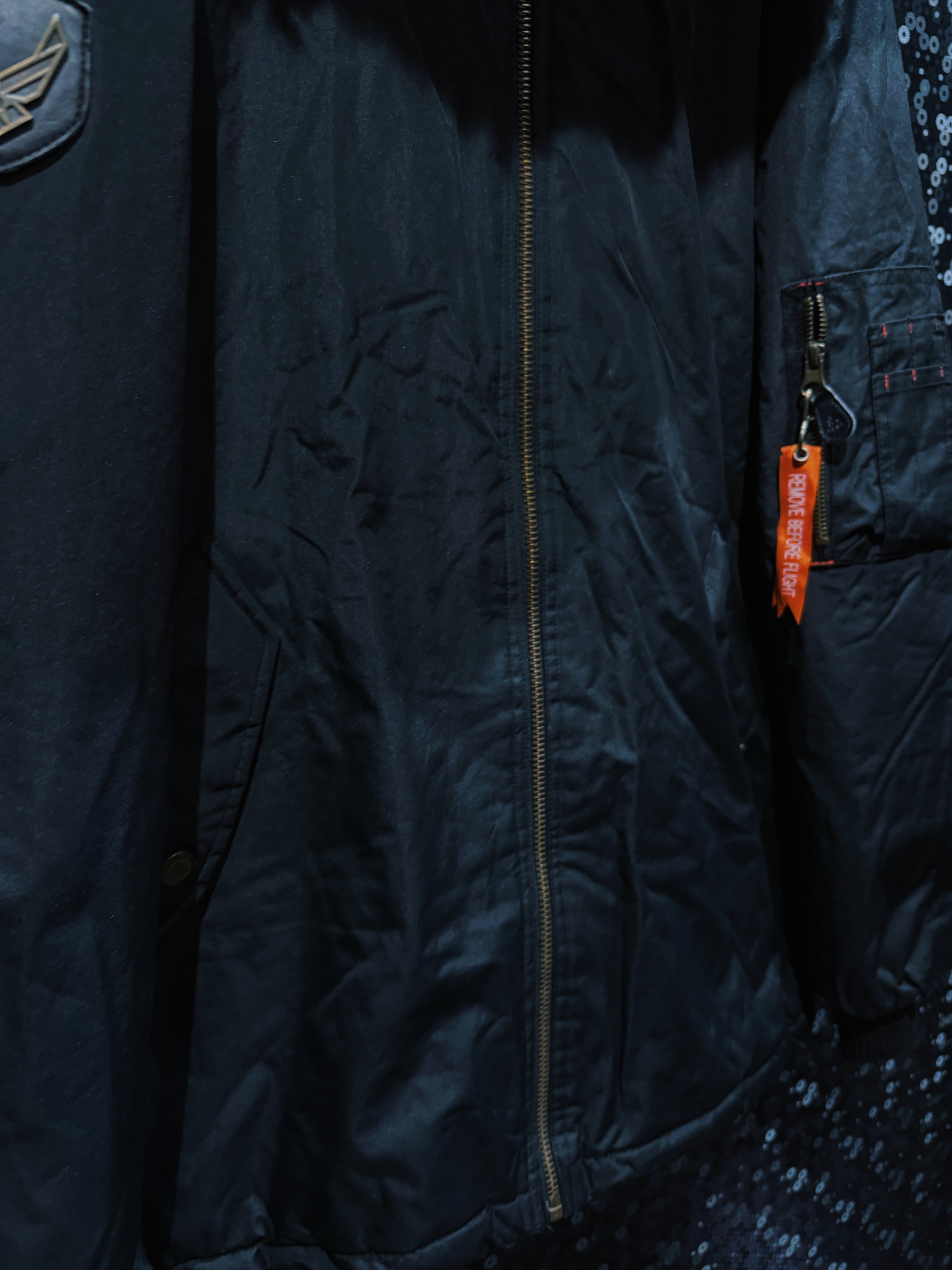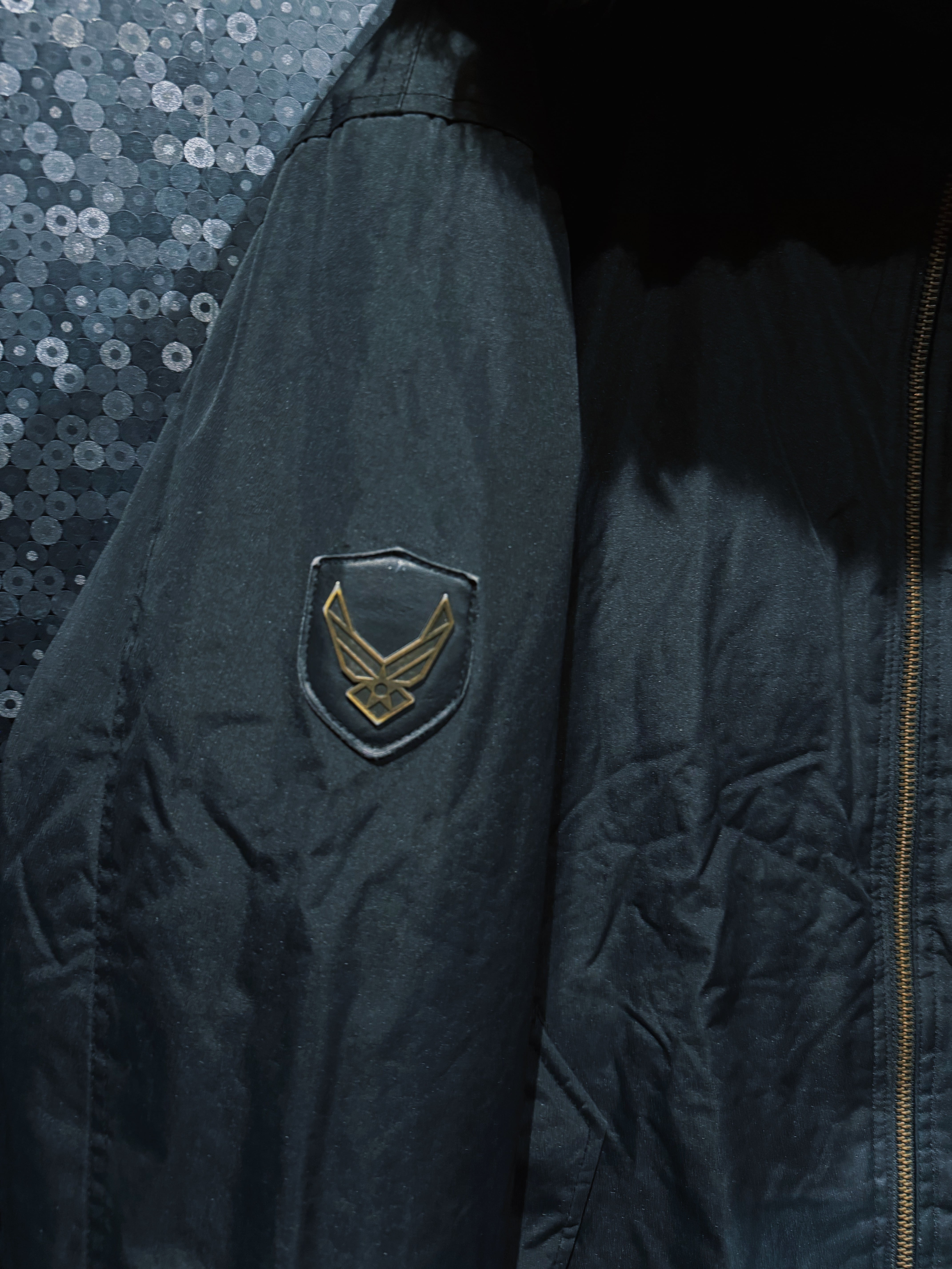 袖にはエアフォースを想起させるエンブレムワッペン、アームポケットにはフライトジャケットらしいユーティリティディテールを配置。着込まれたことで生まれたシワやフェード感が、現行品には出せないヴィンテージならではの空気をまとっている。