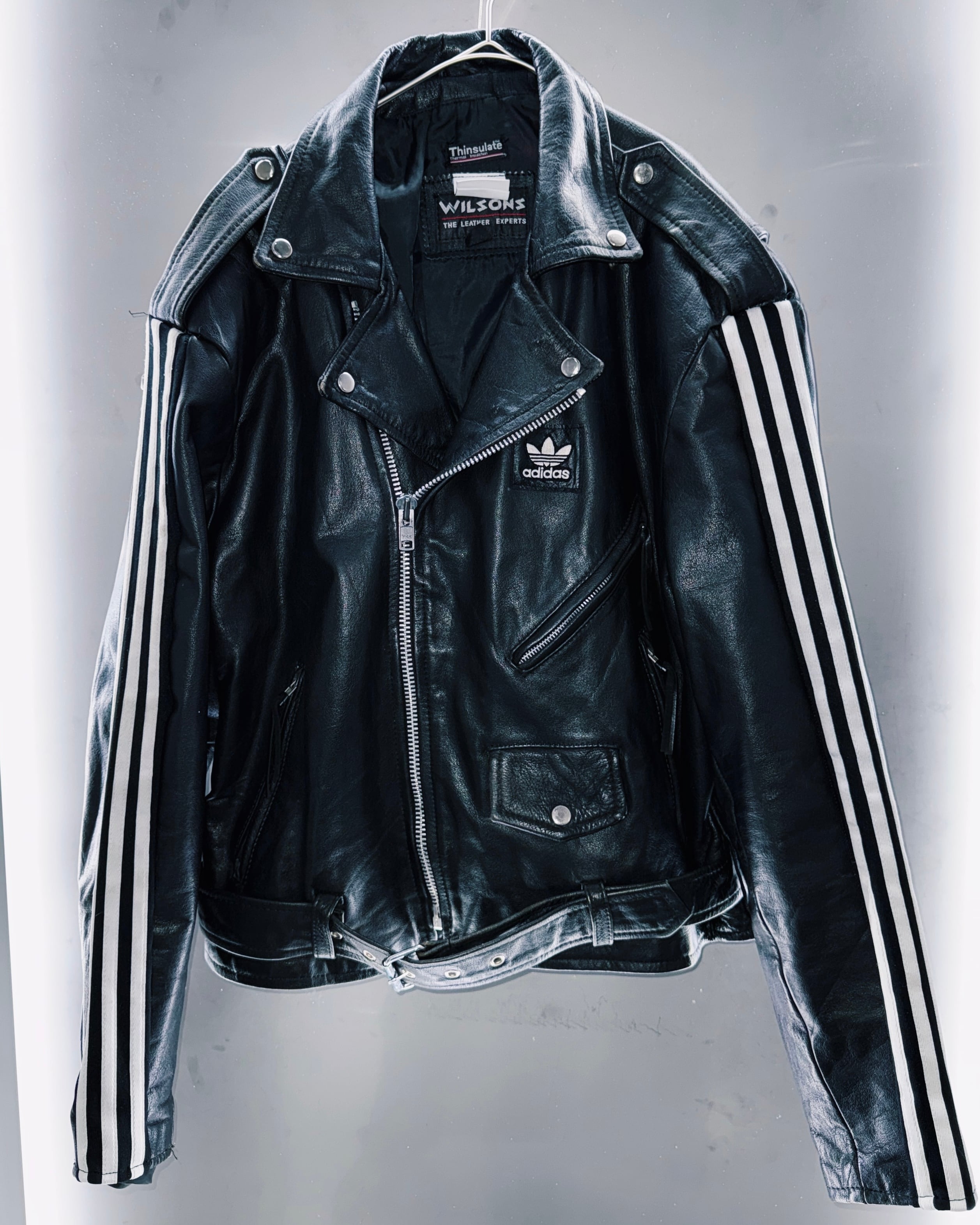 special "original re:meke" vintage "adidas"x vintage double riders leather jacket three strip edition