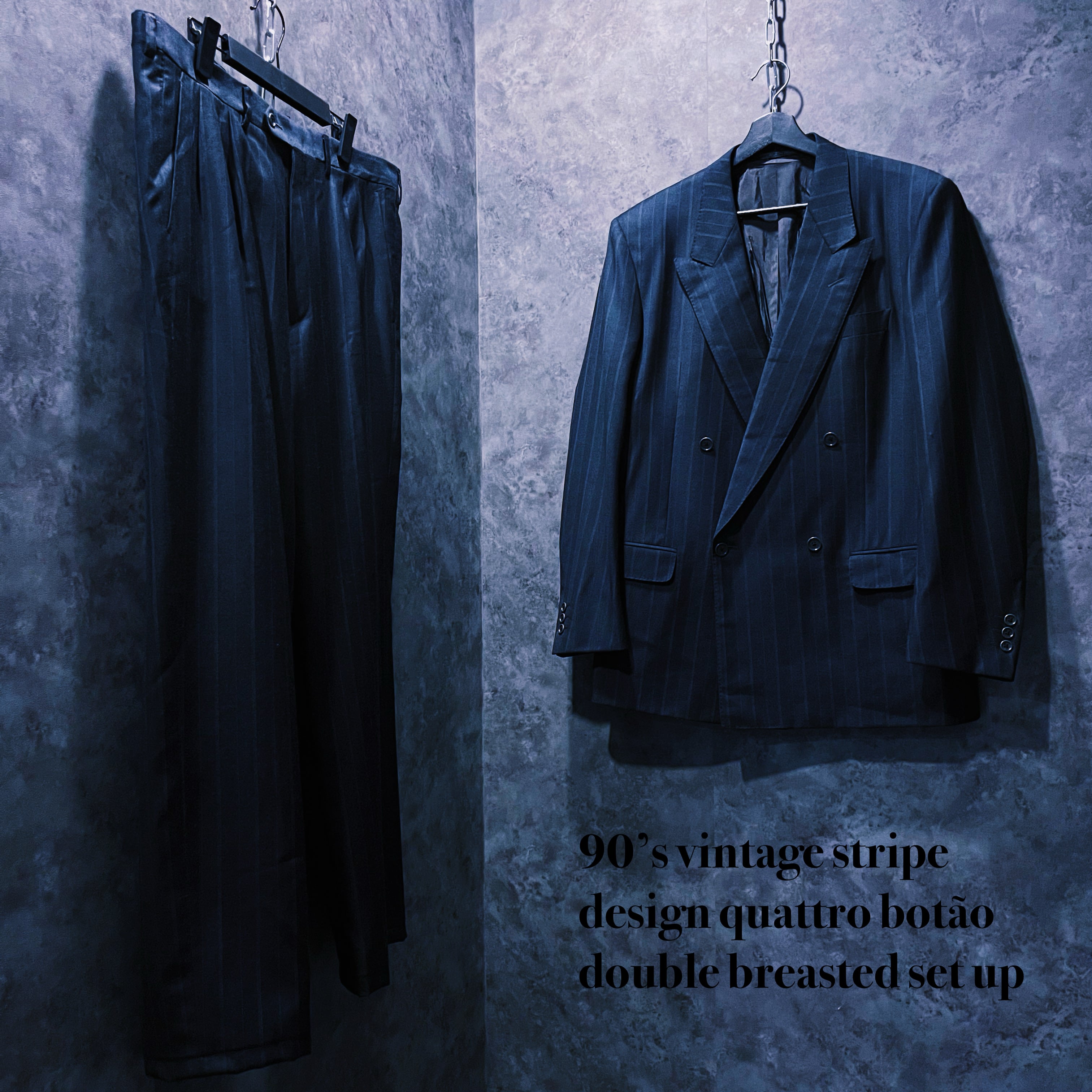 90’sヴィンテージストライプデザインクアトロボタンダブルブレストセットアップ