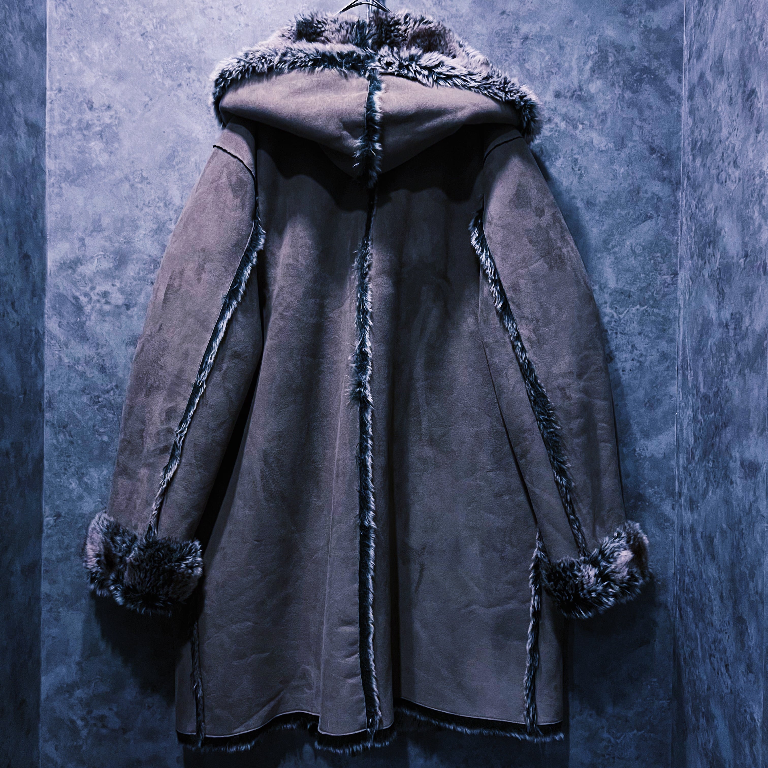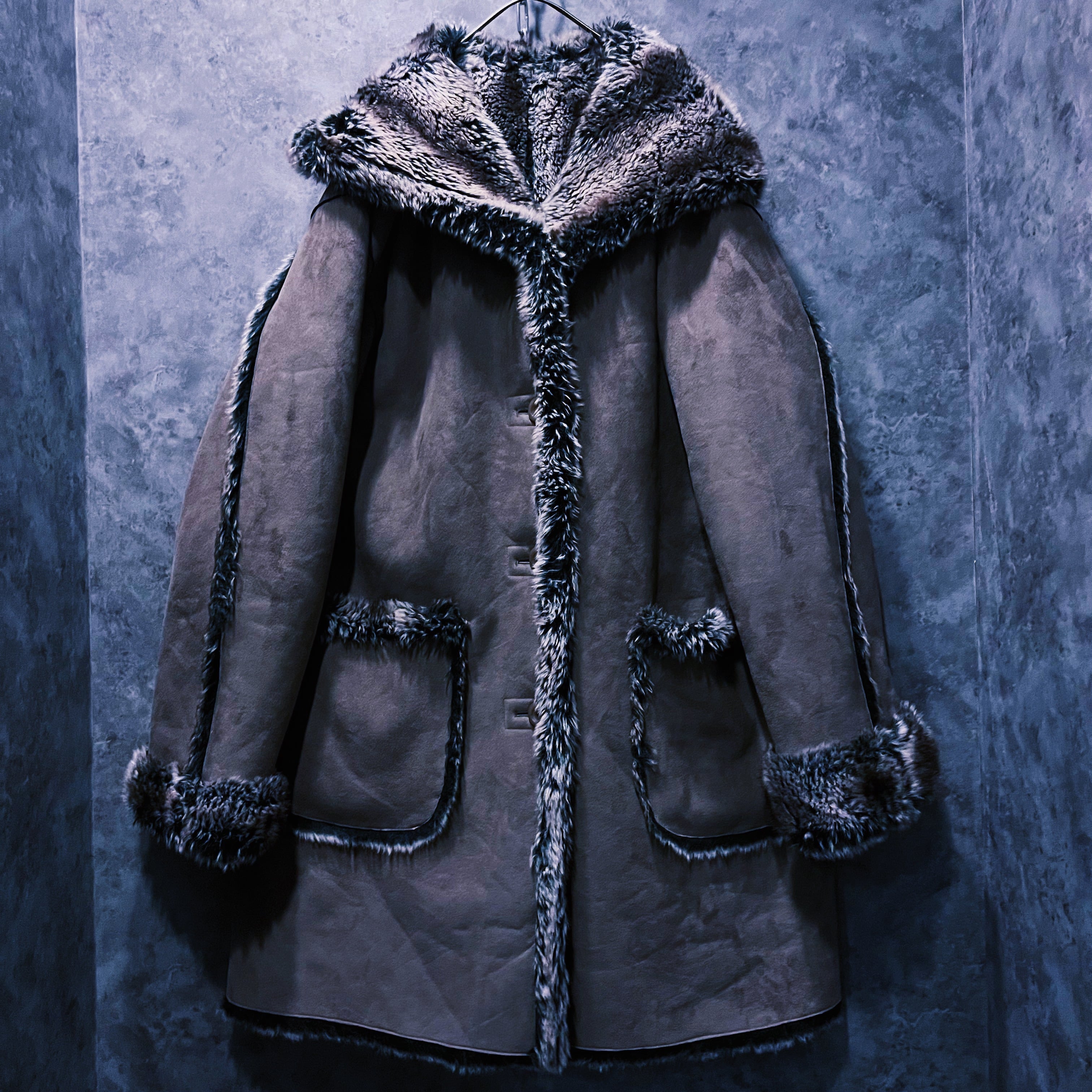 ヴィンテージストライプデザインリバーシブルフェイクファーコート