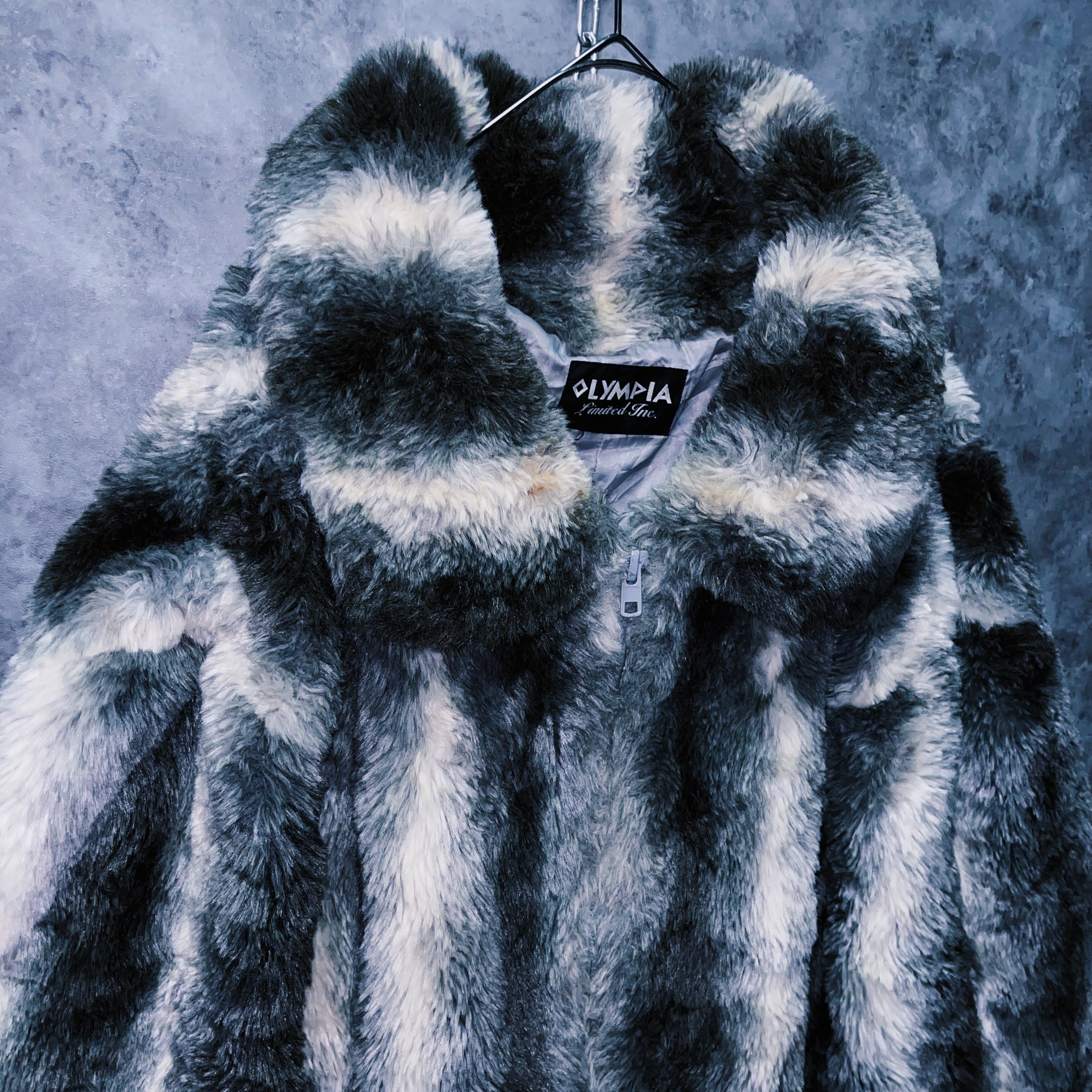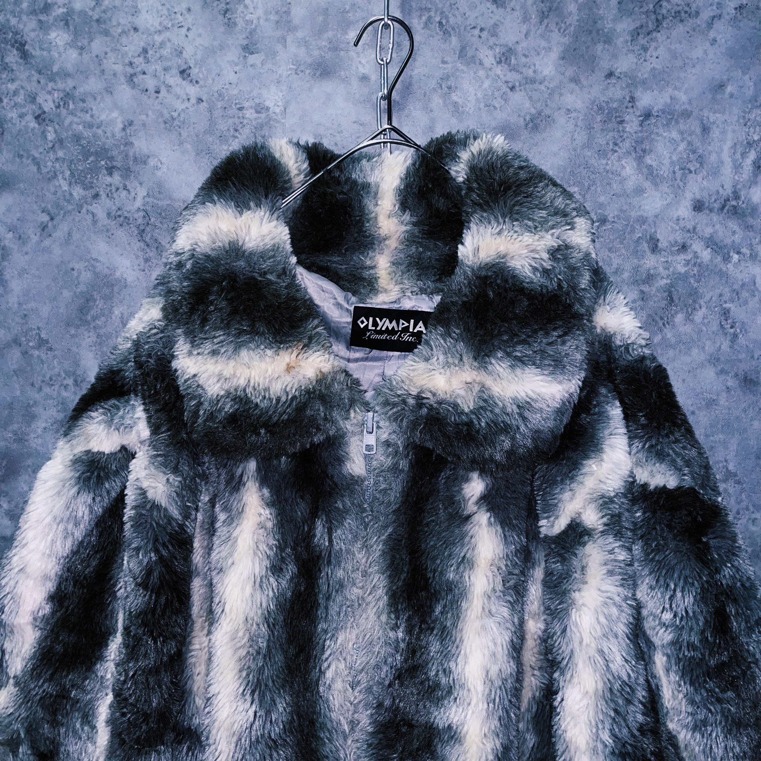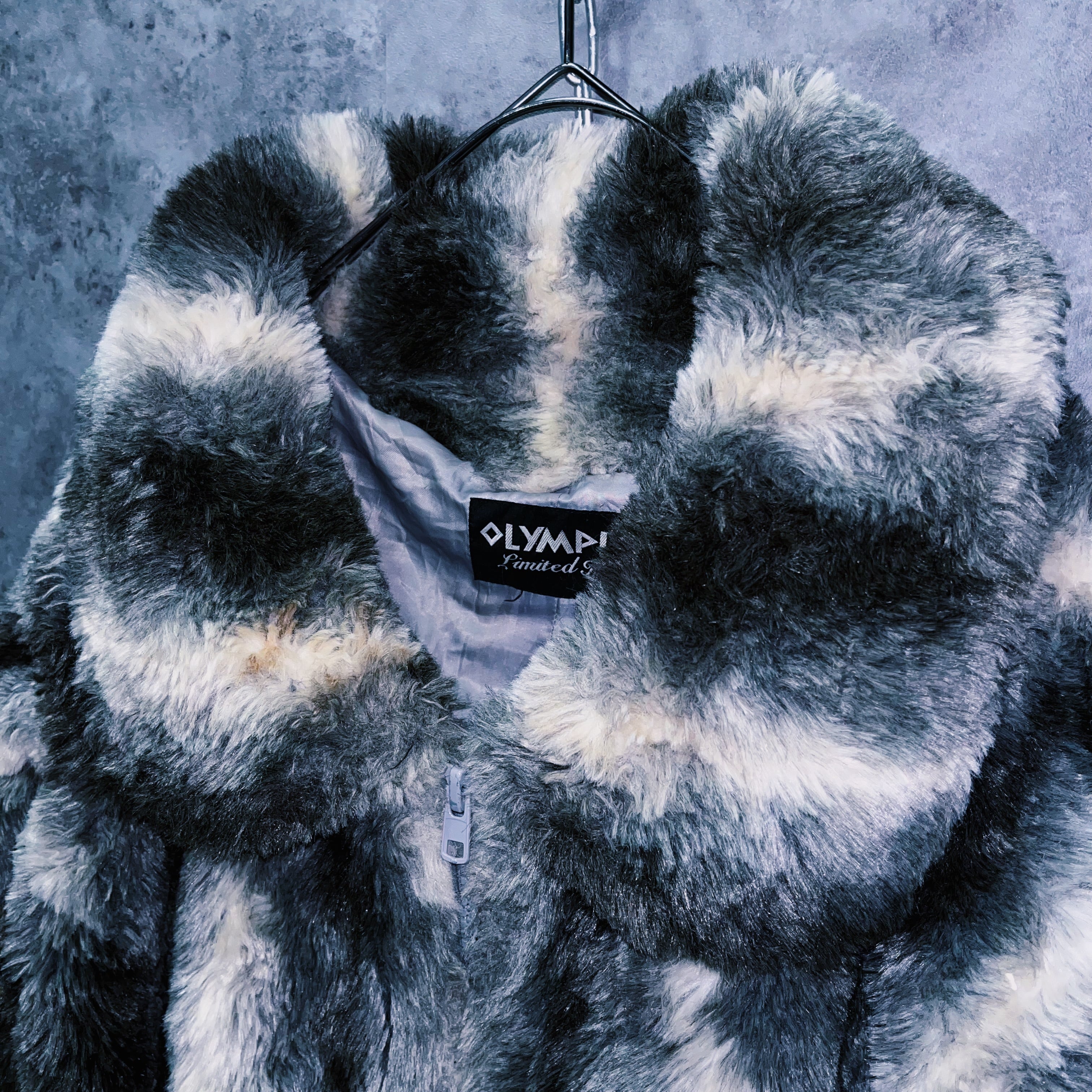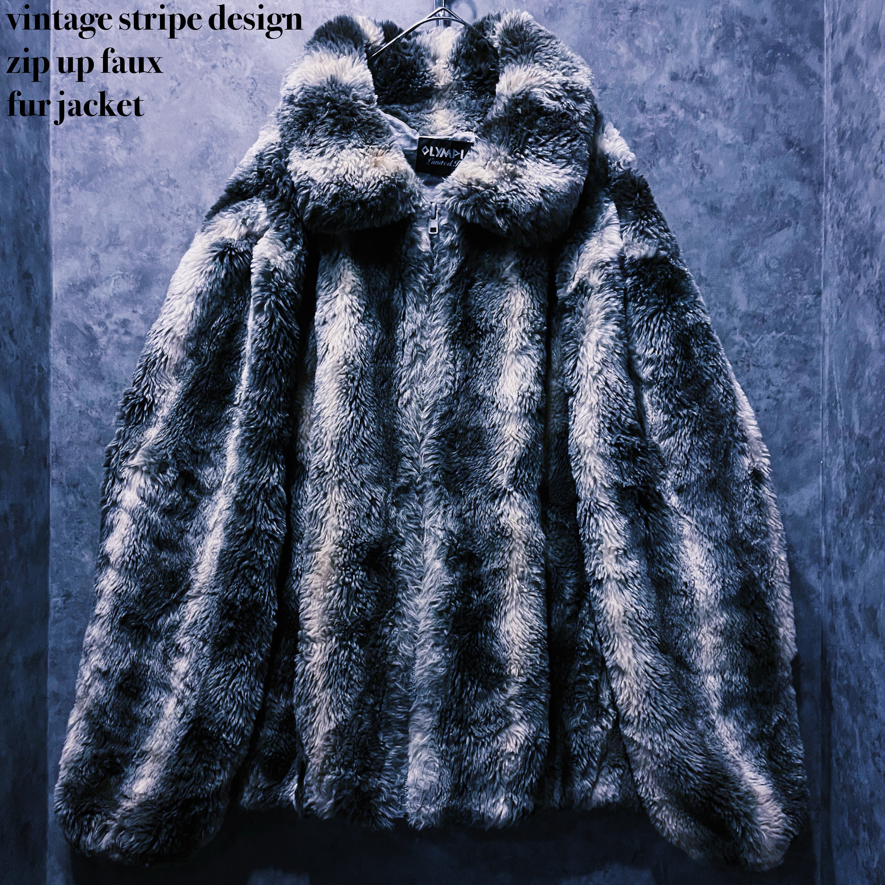 ヴィンテージストライプデザインジップアップフェイクファージャケット
