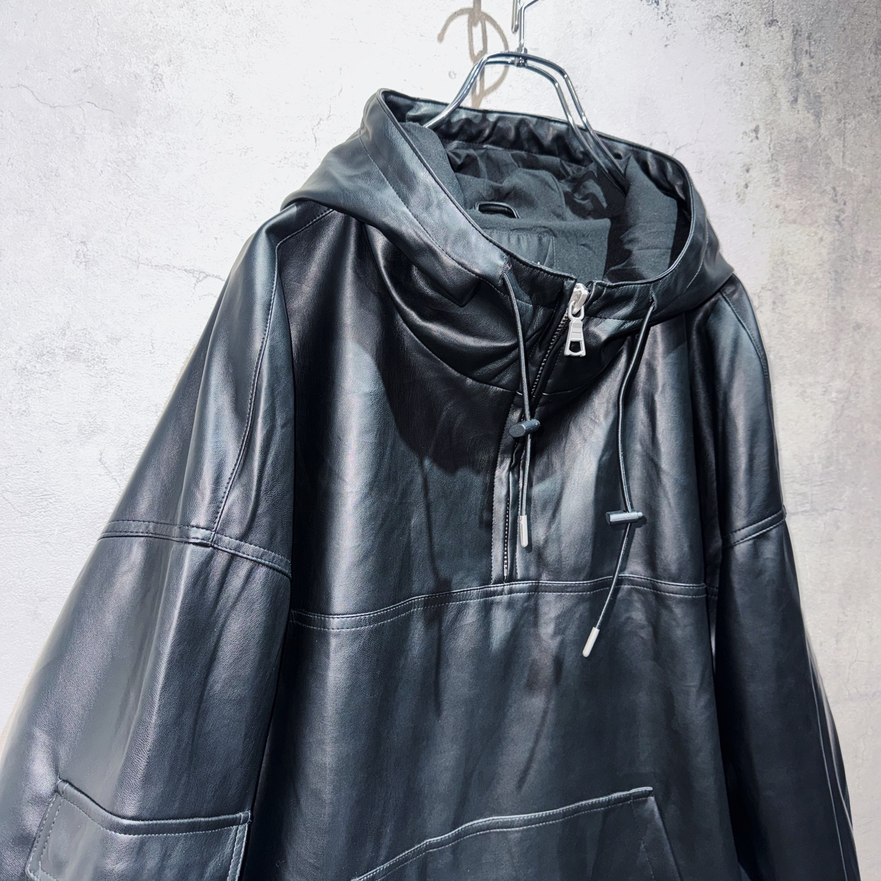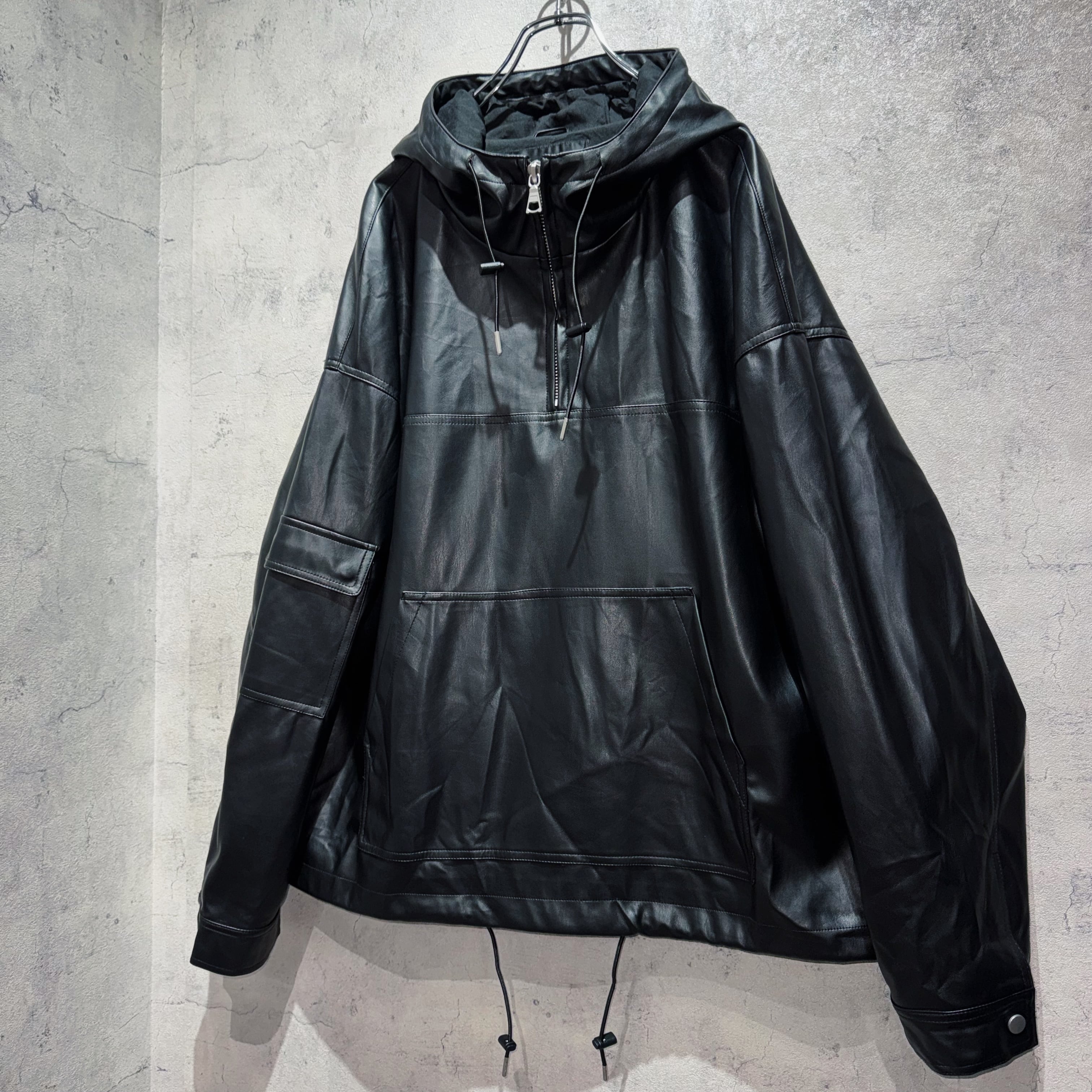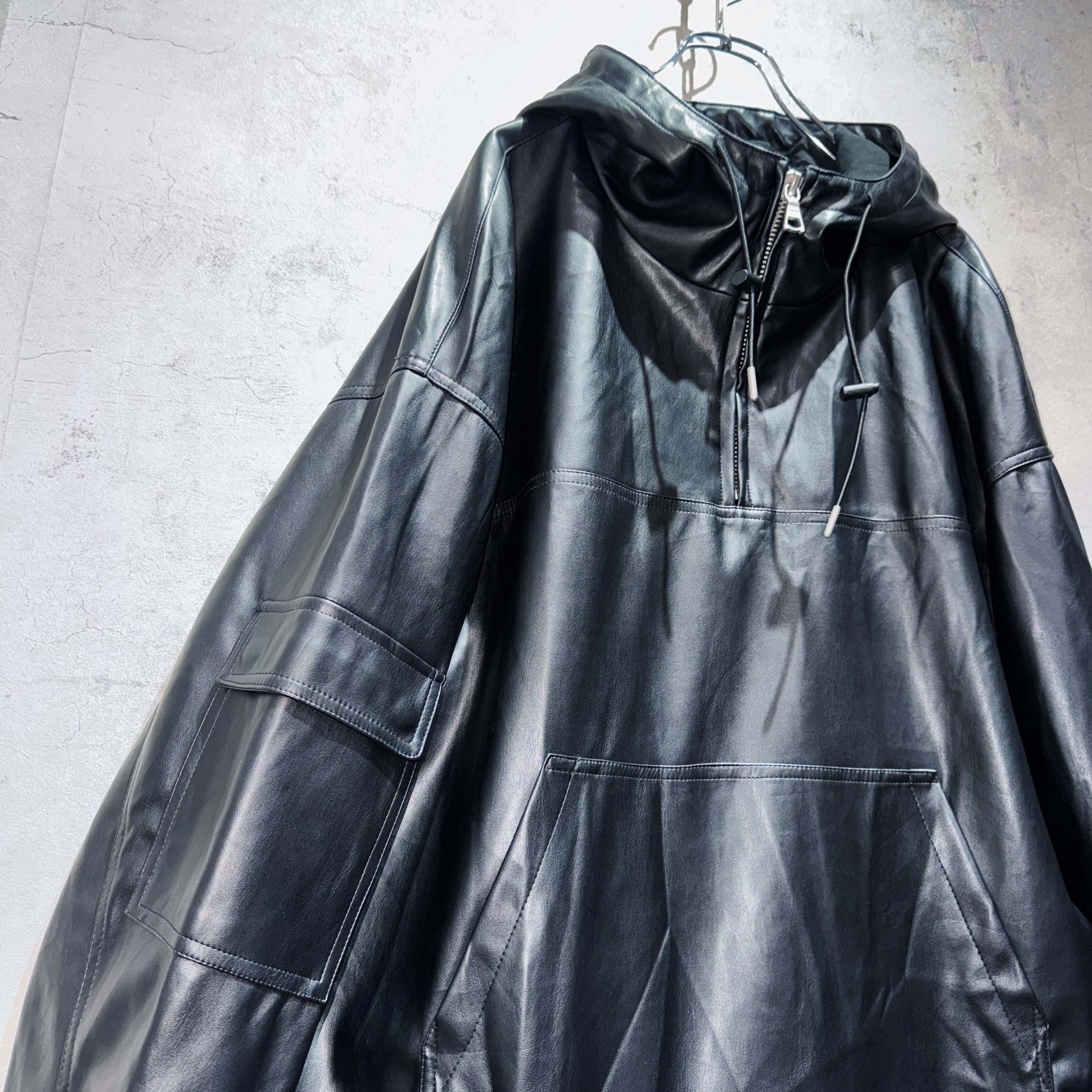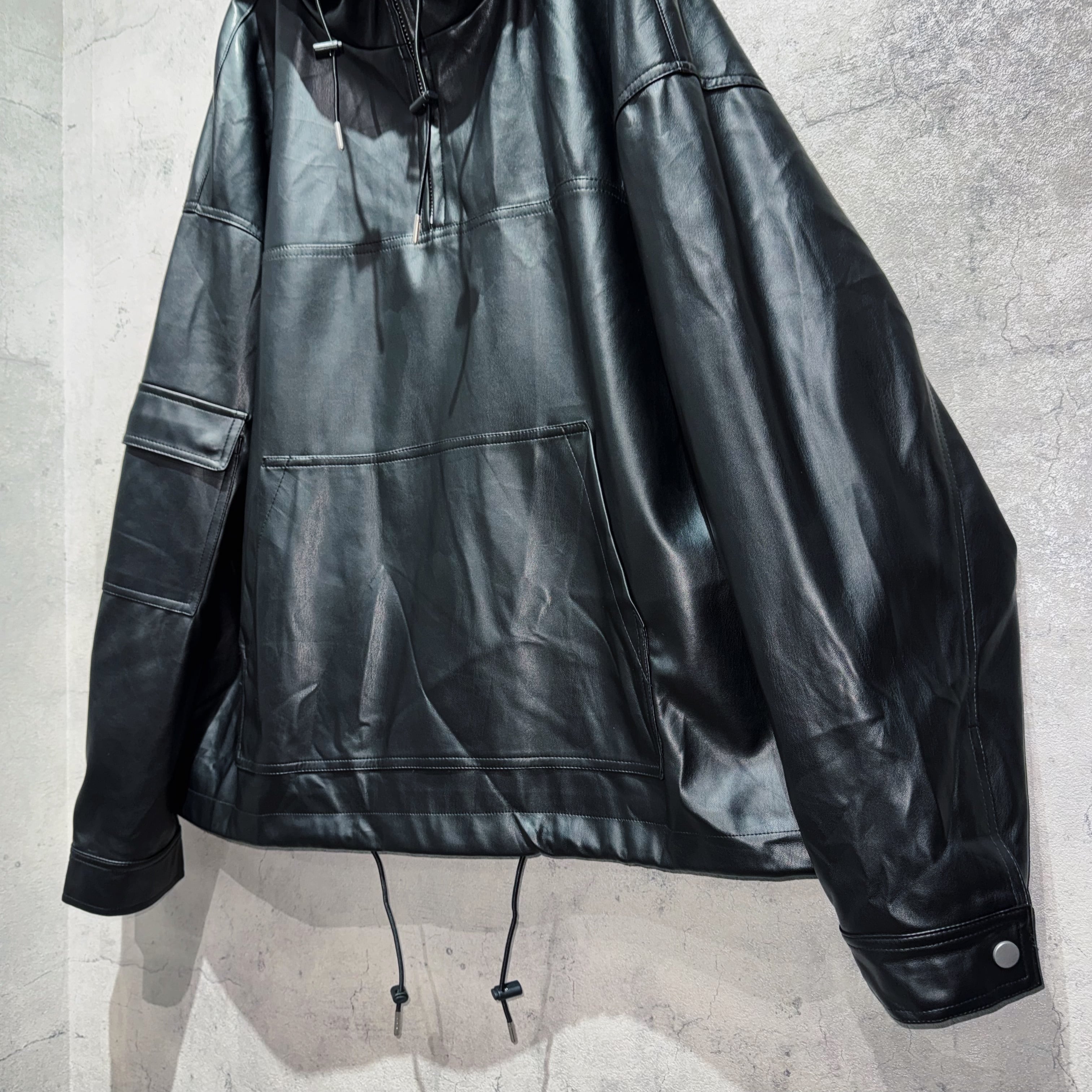 フェイクレザーマテリアルルーズシルエットマウンテンパーカー