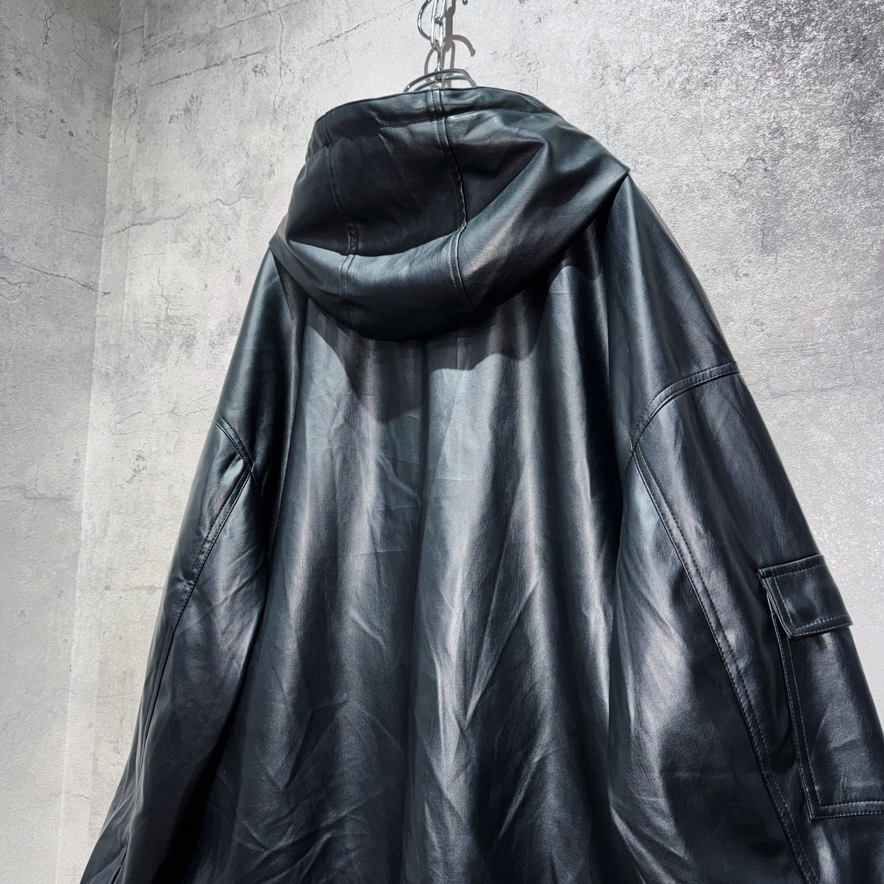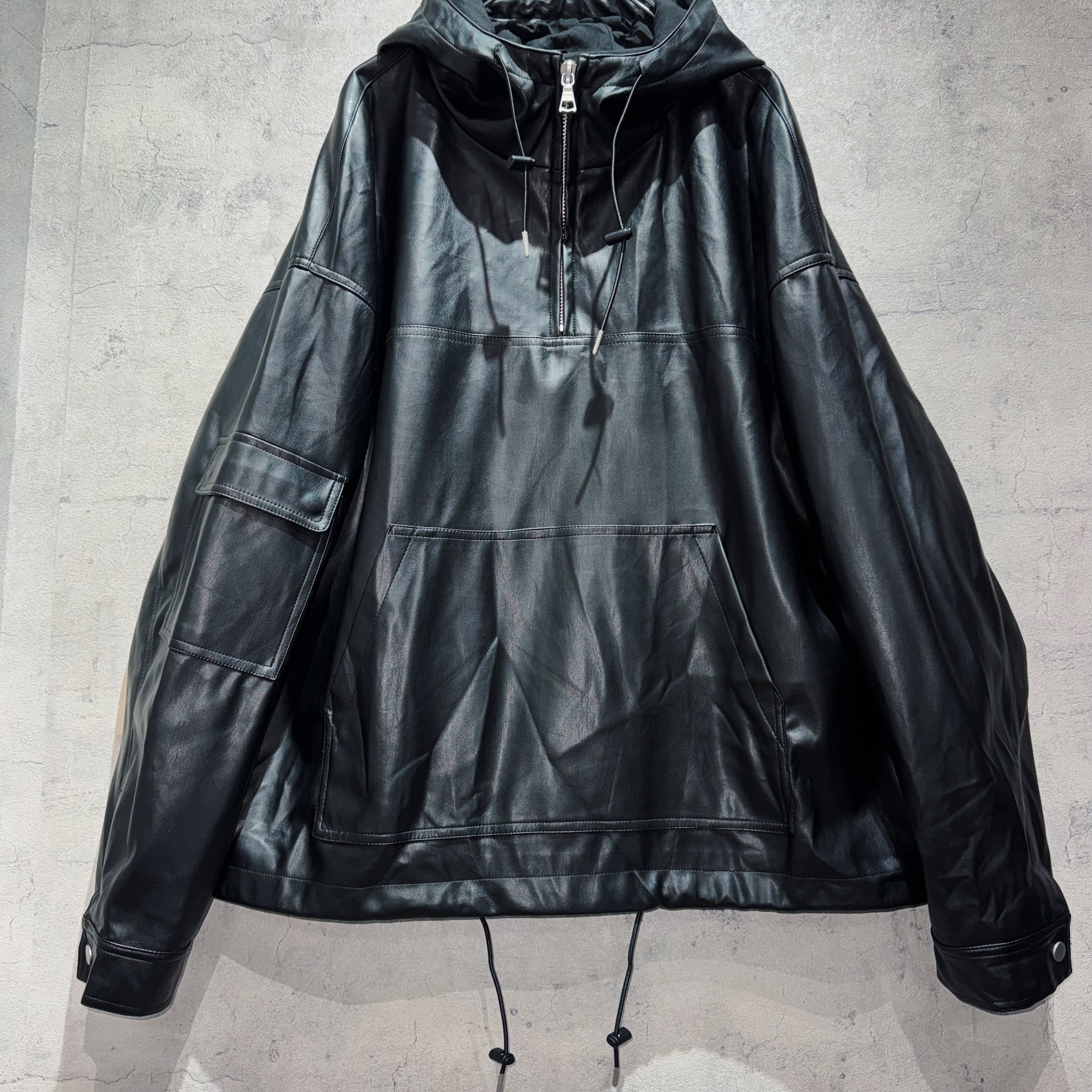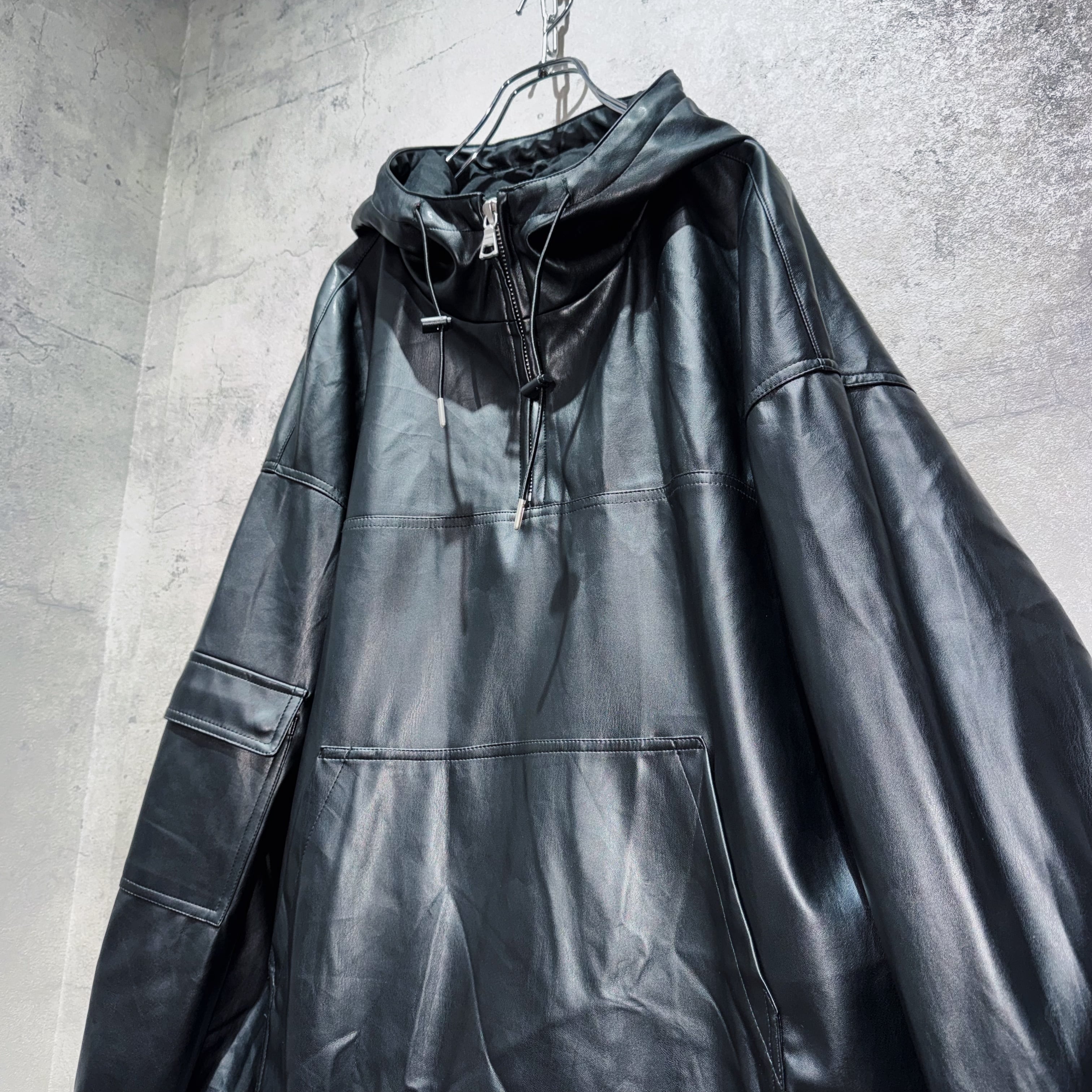フェイクレザーマテリアルルーズシルエットマウンテンパーカー