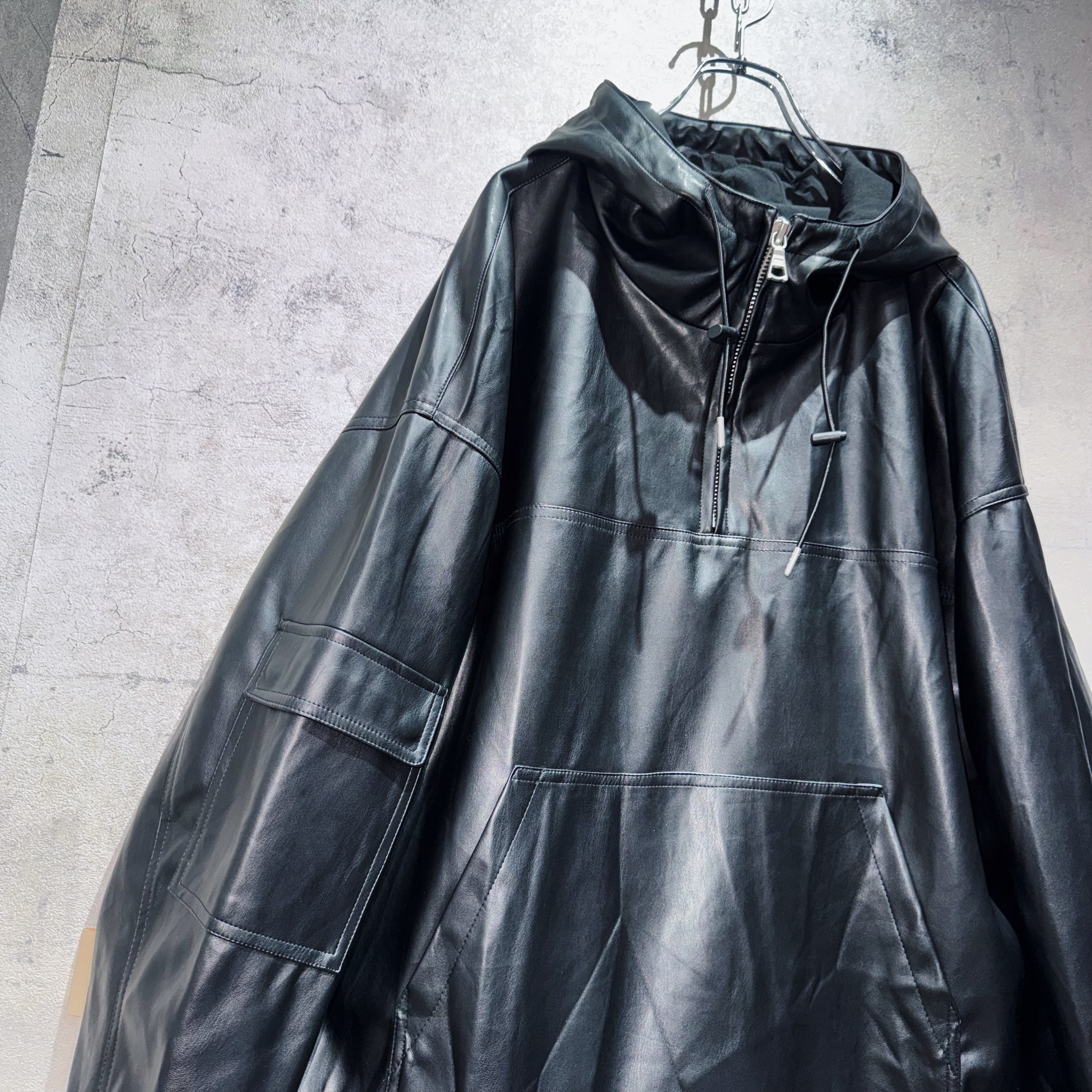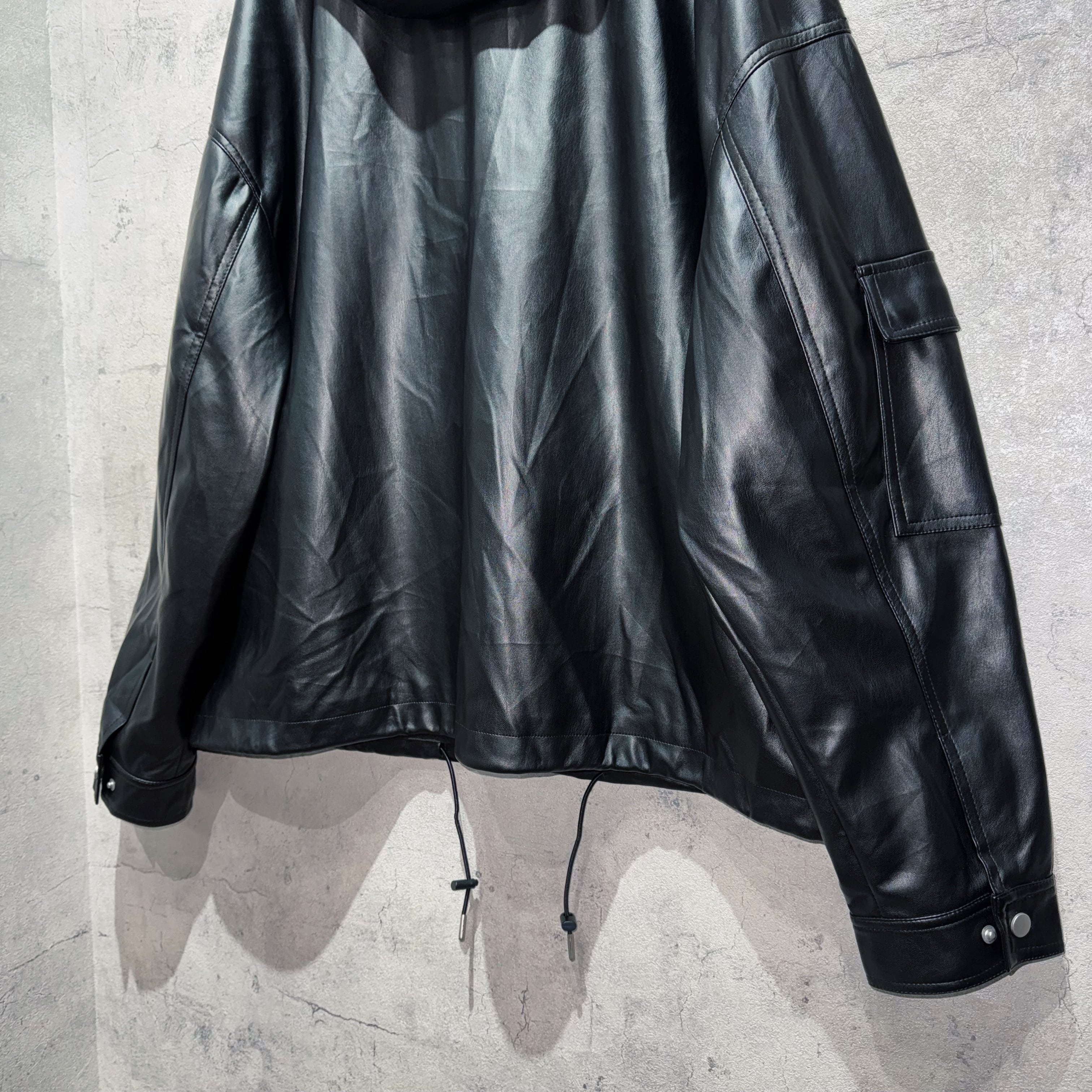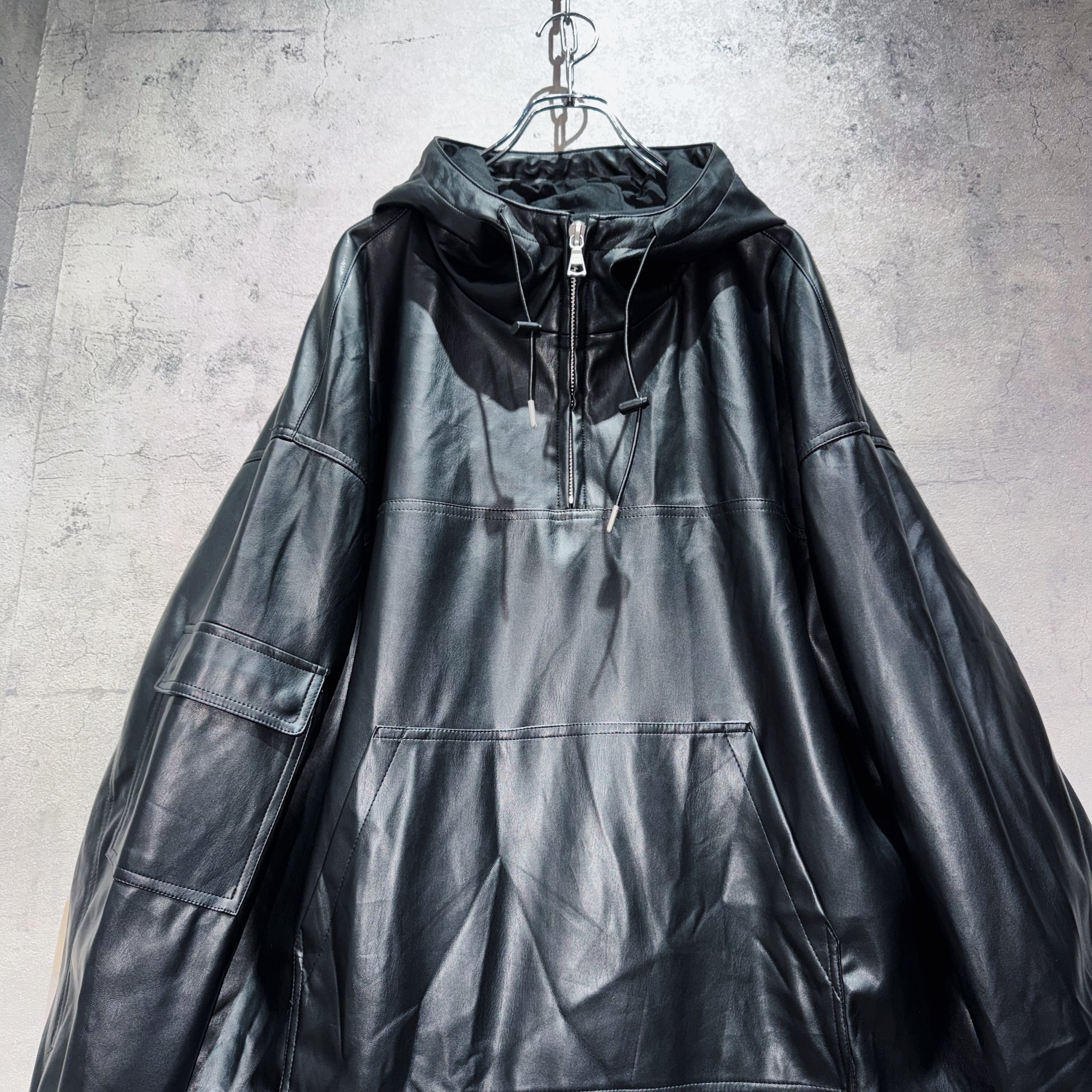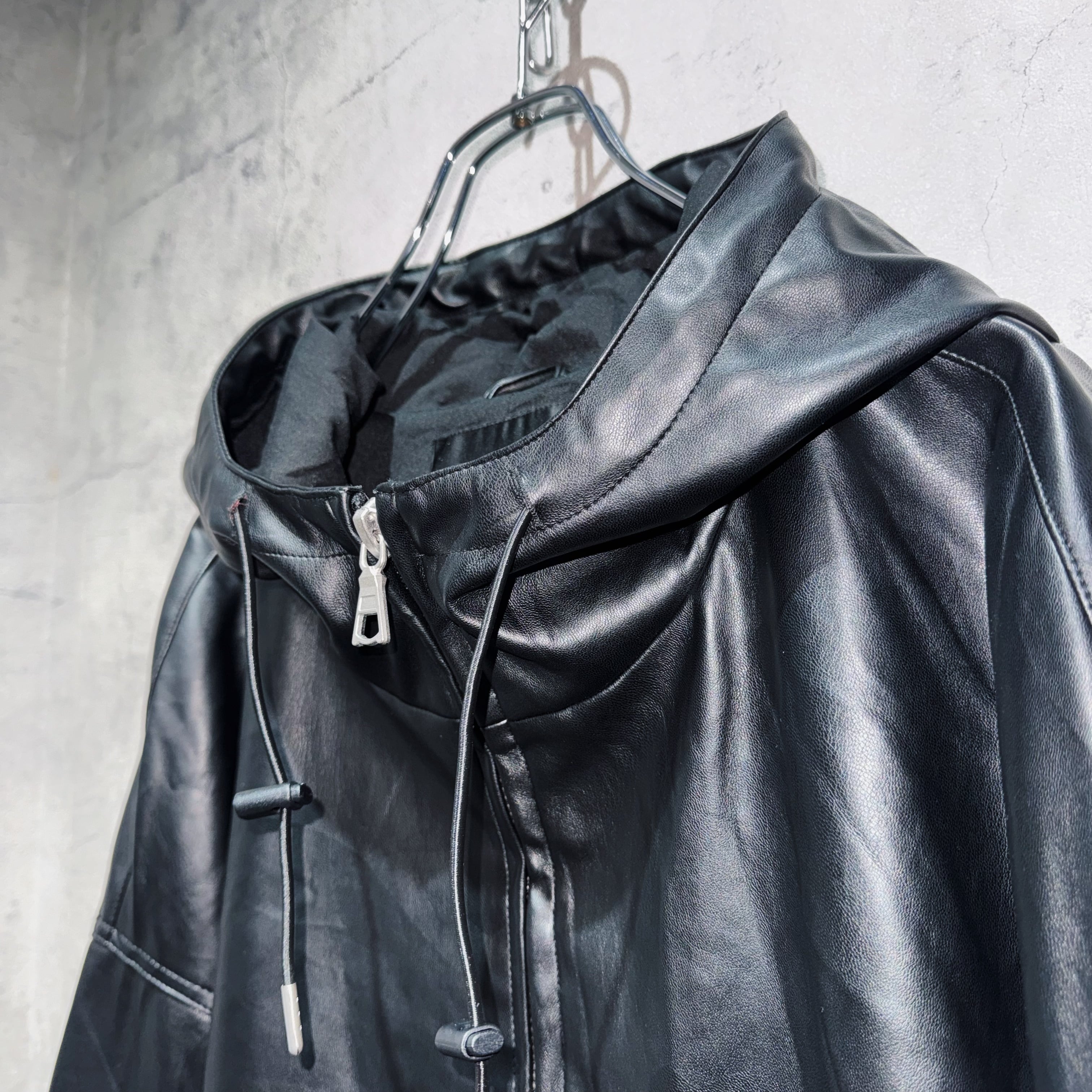フェイクレザーマテリアルルーズシルエットマウンテンパーカー