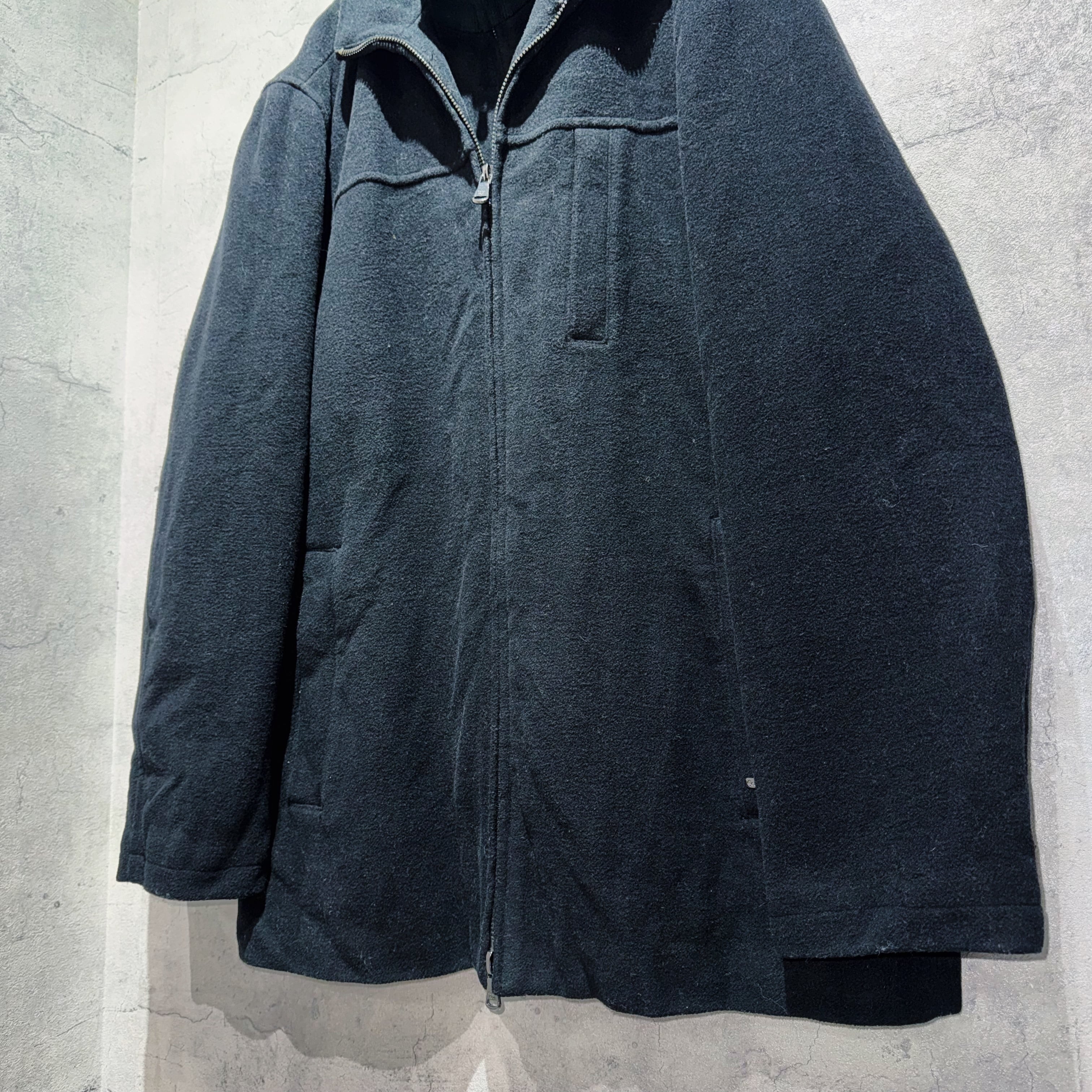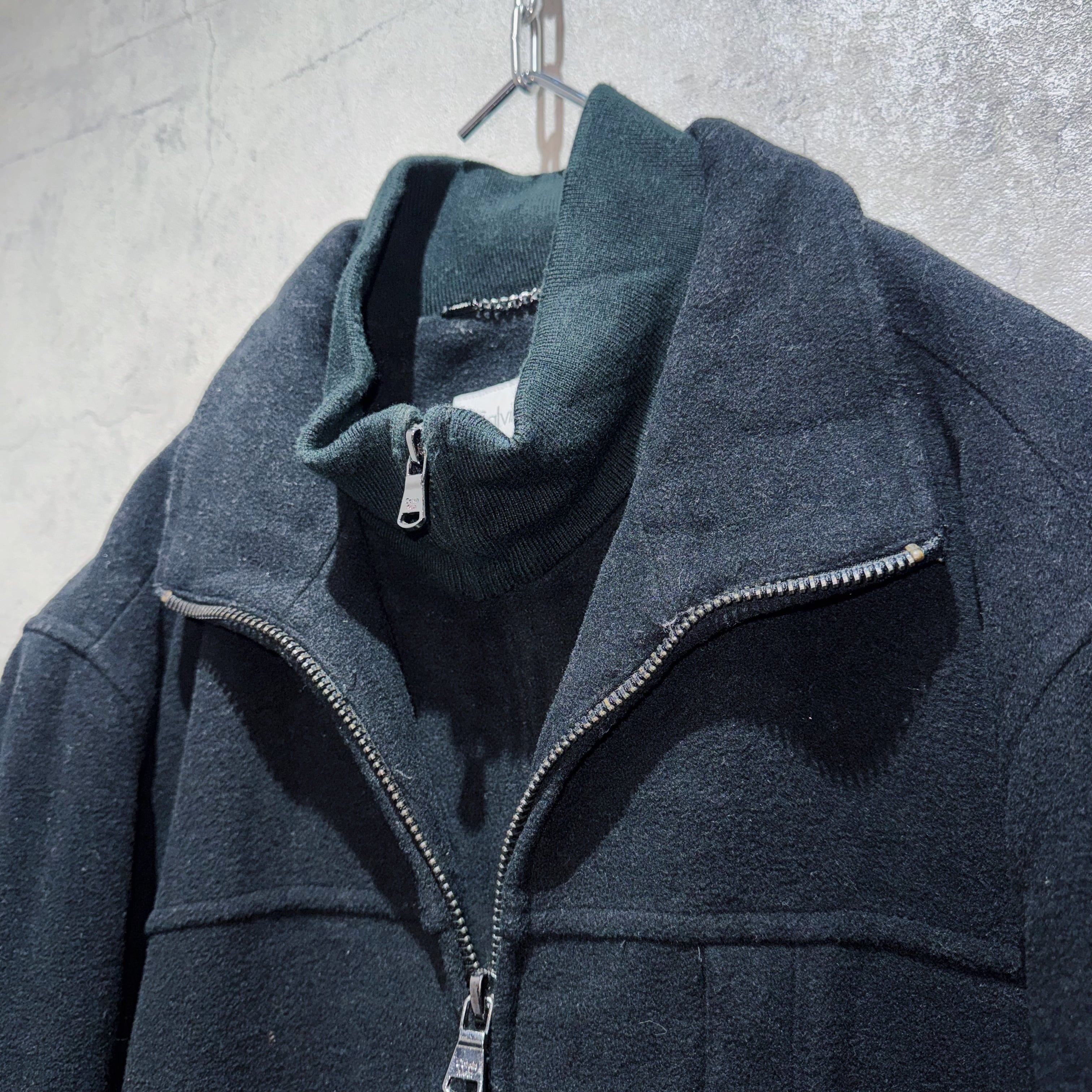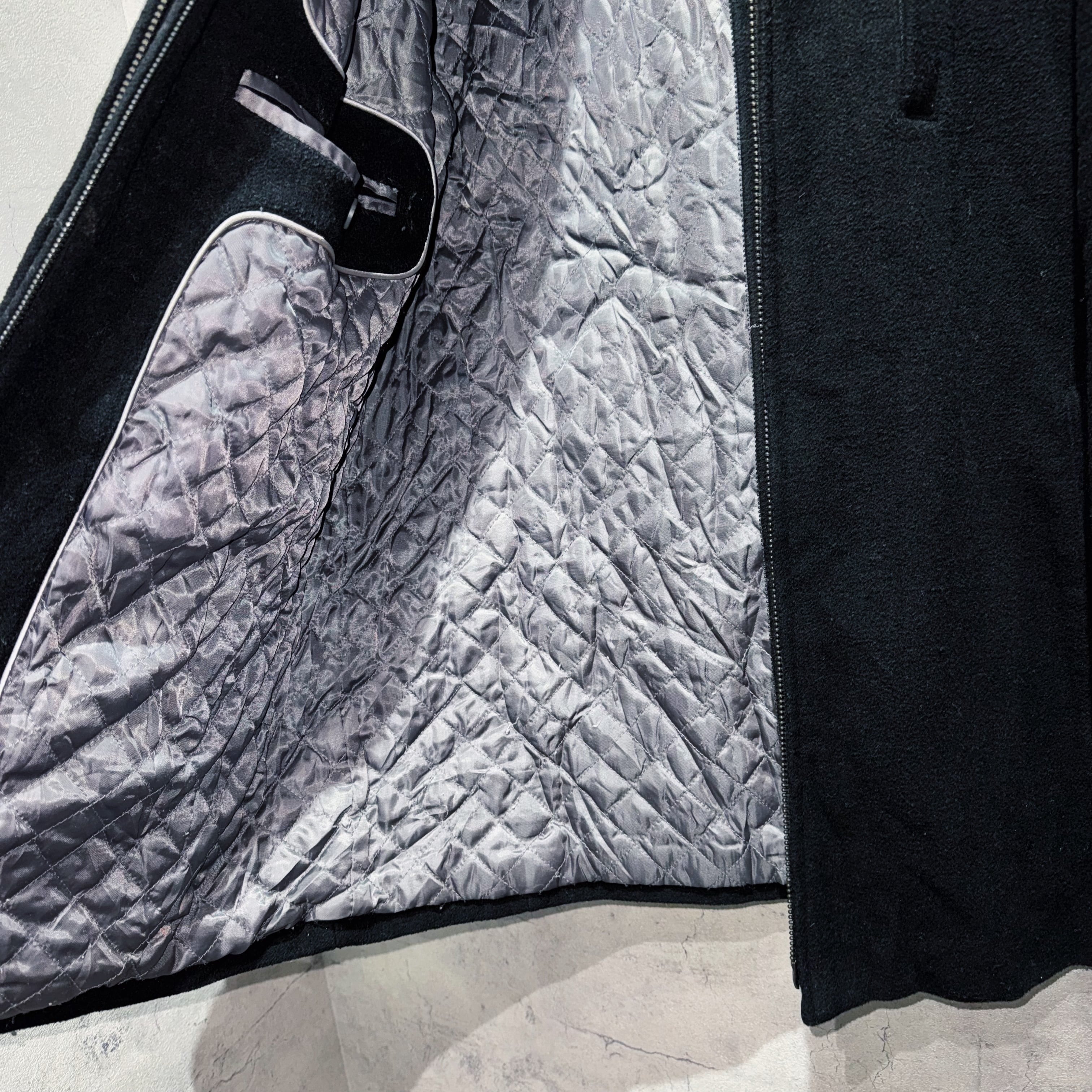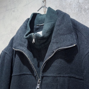 2重にレイヤードされたネックはジップの開け閉めで表情が変わります。裏地はキルティングで防寒性も申し分無しかと。