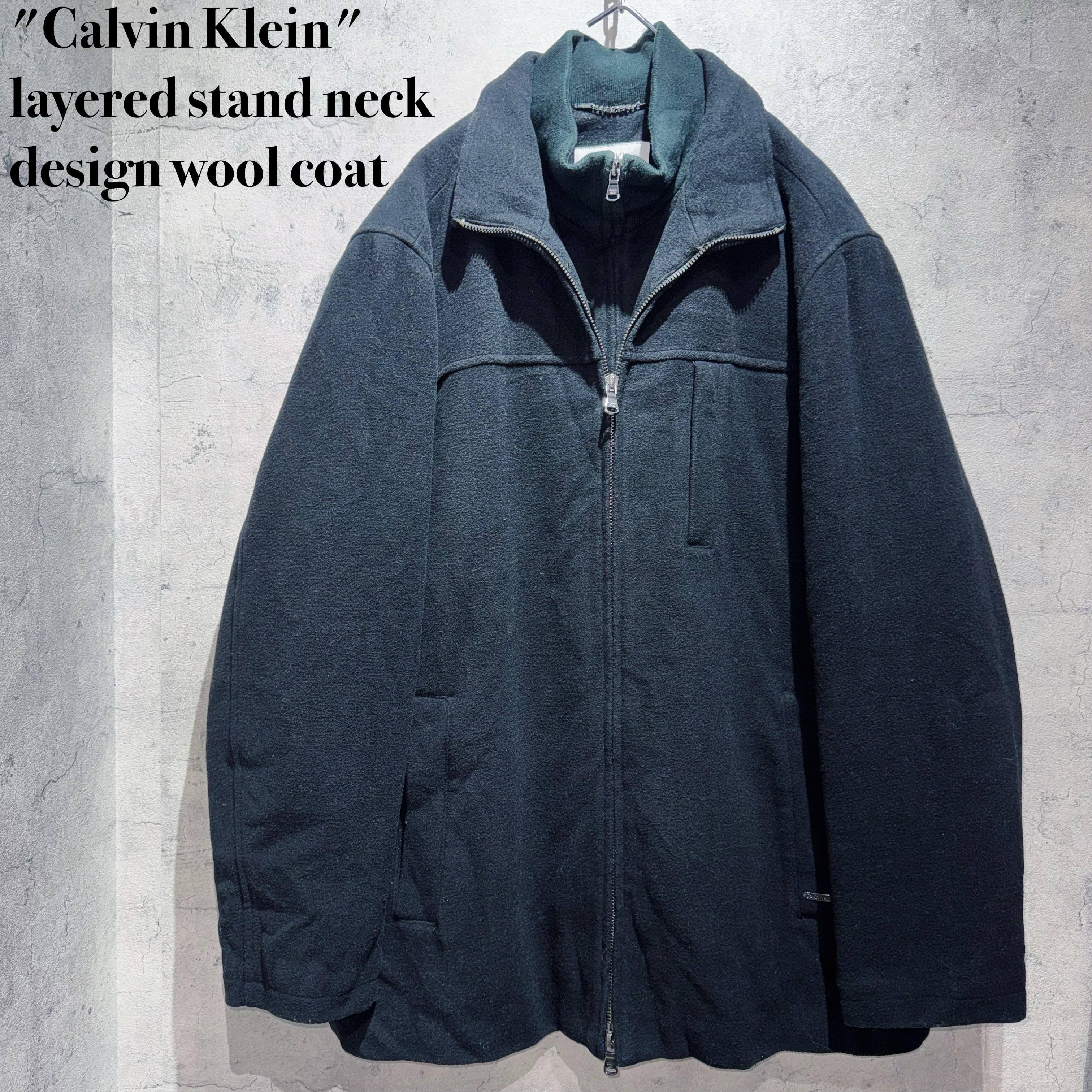 "カルバンクライン"レイヤードスタンドネックデザインウールコート
