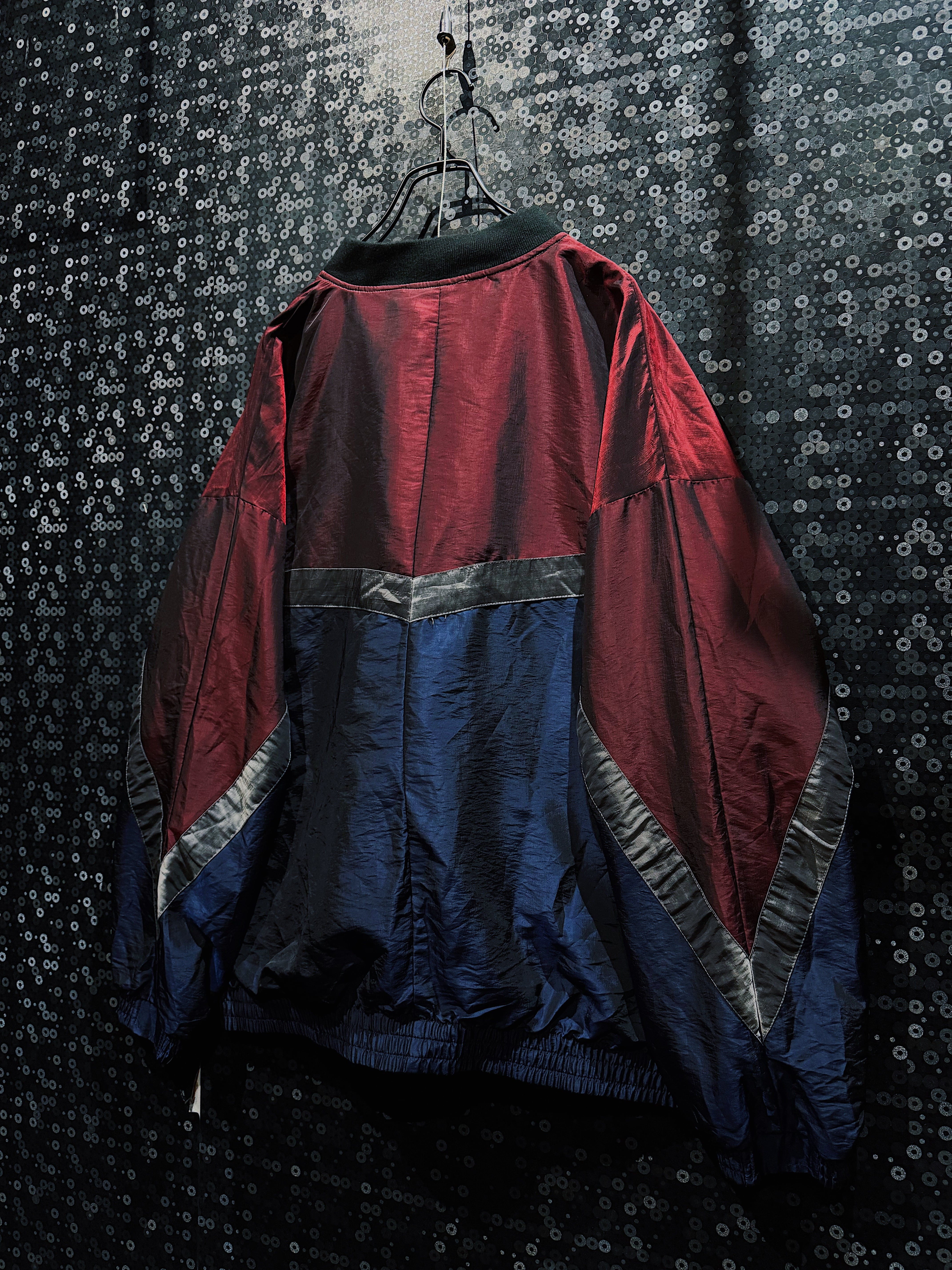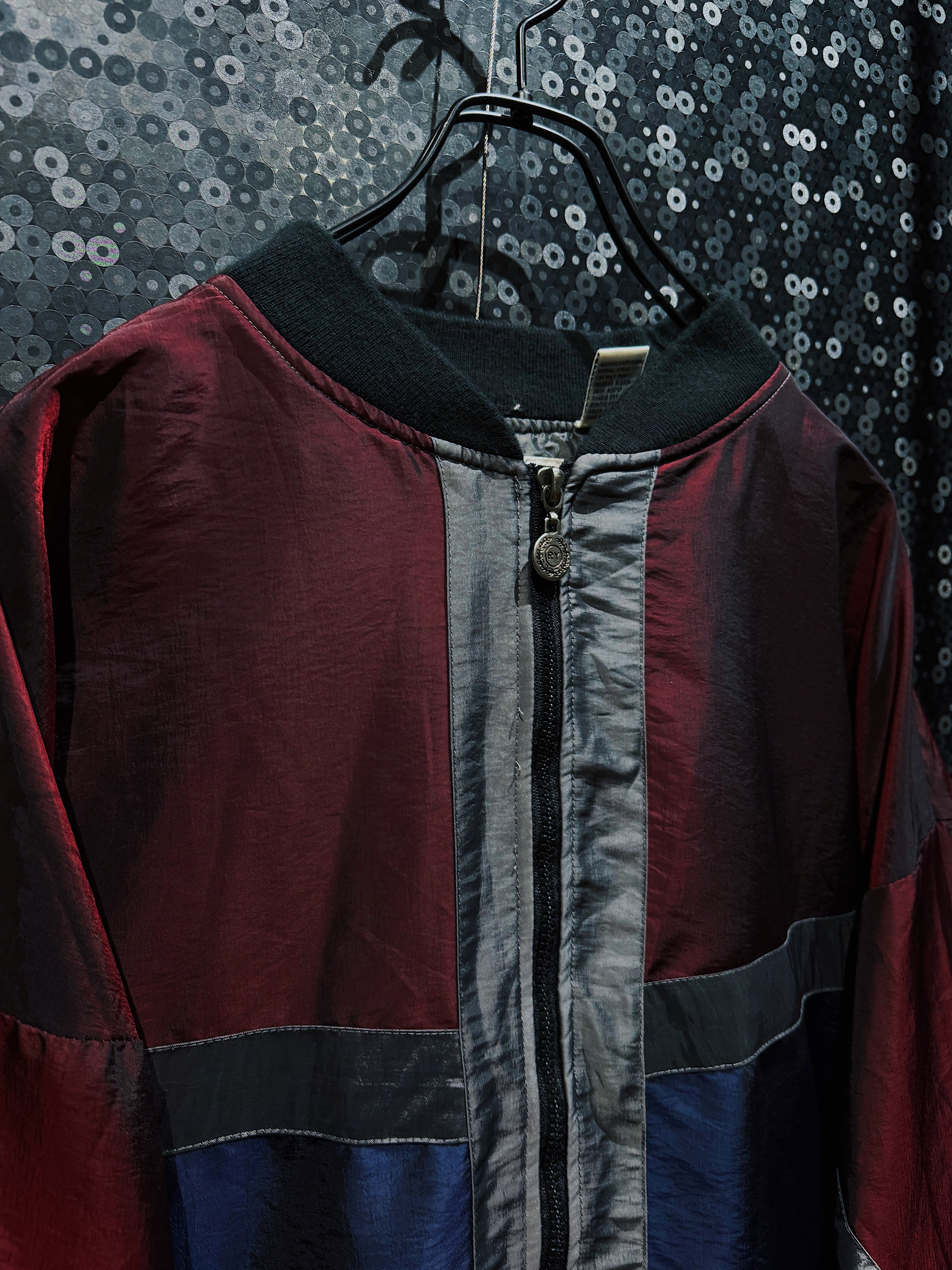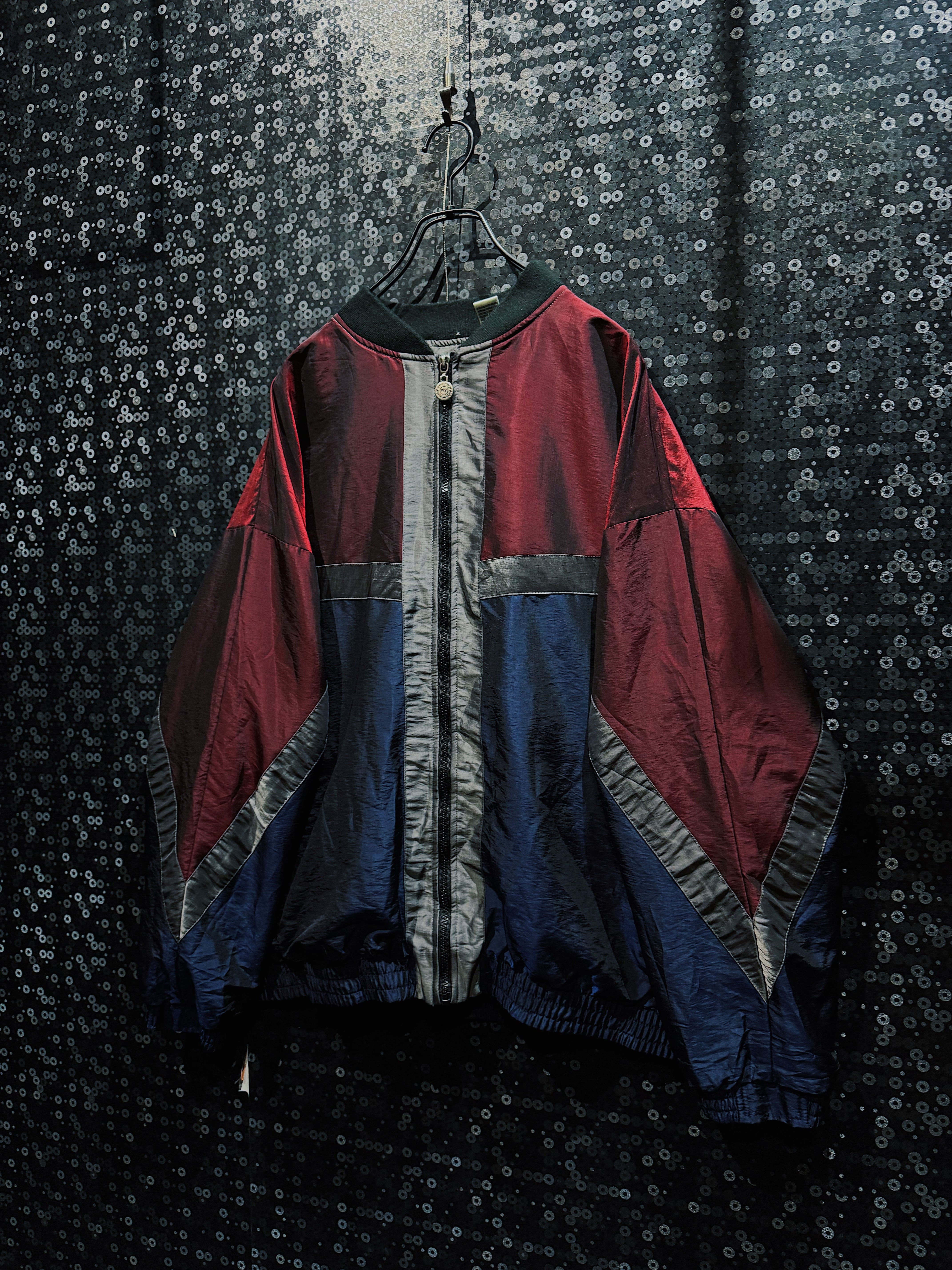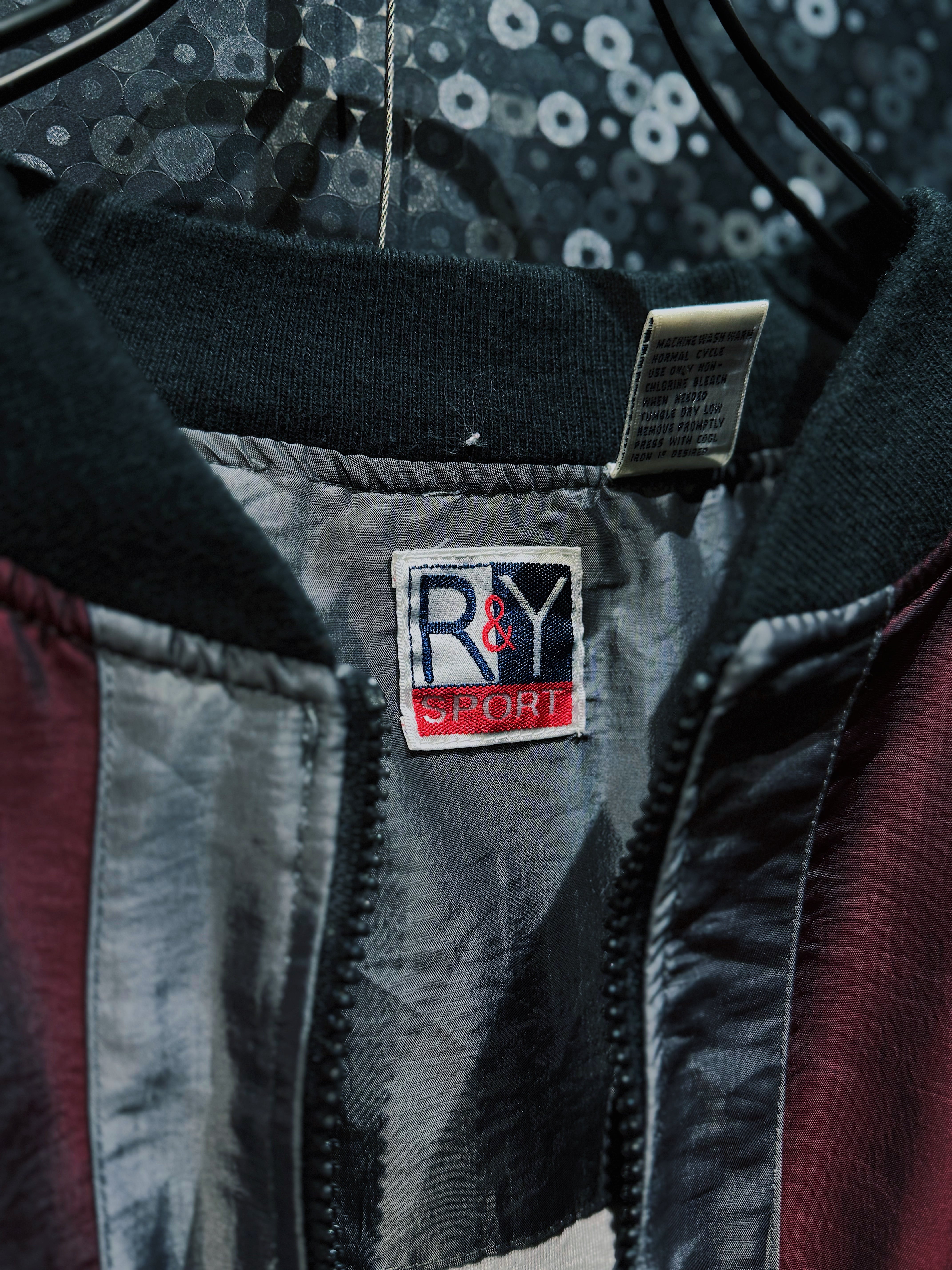 ワインレッド、ネイビー、グレーを軸に構成された90s感の強いスイッチング配色が目を引く、R&Y SPORTのヴィンテージナイロンブルゾン。