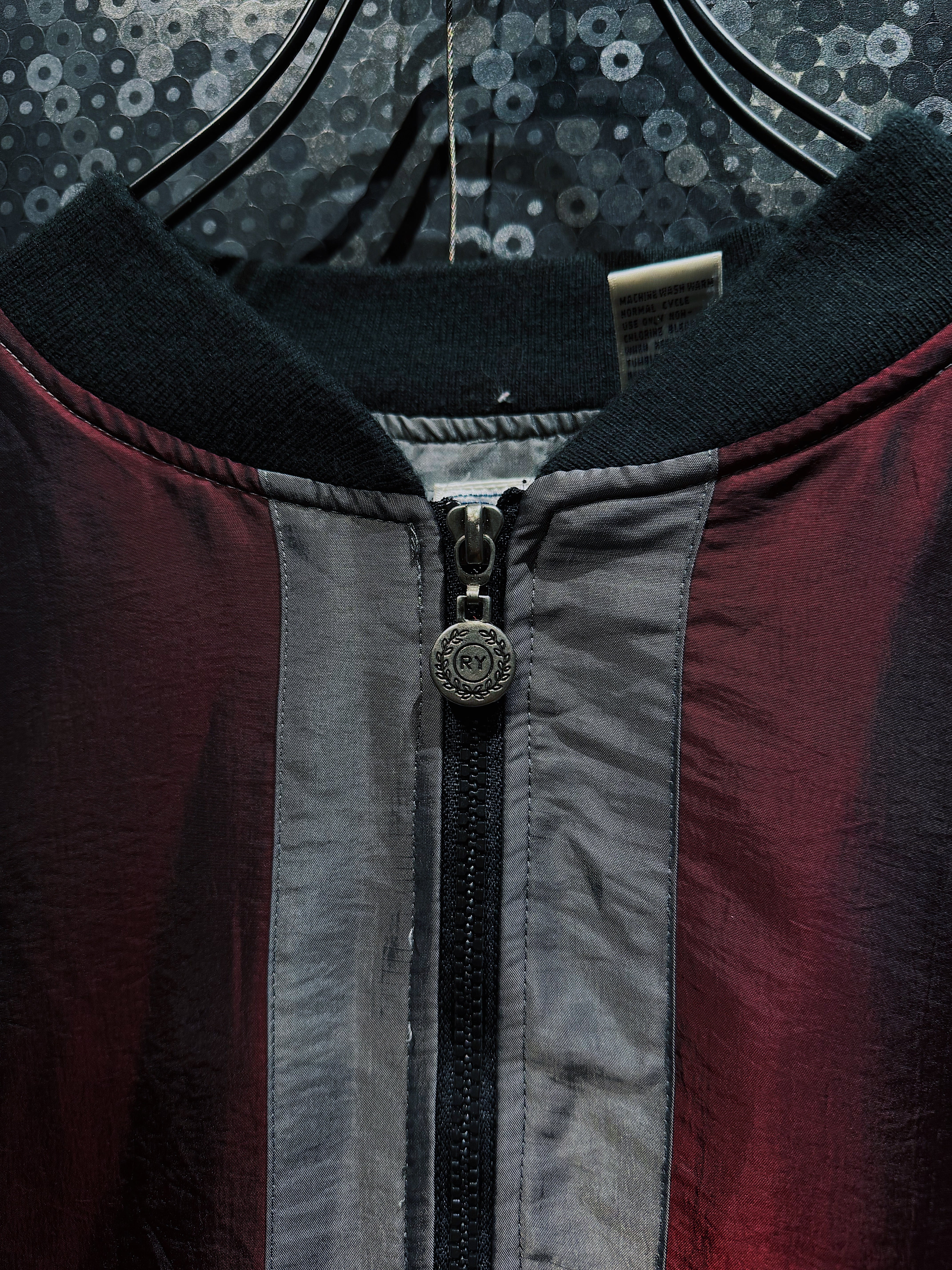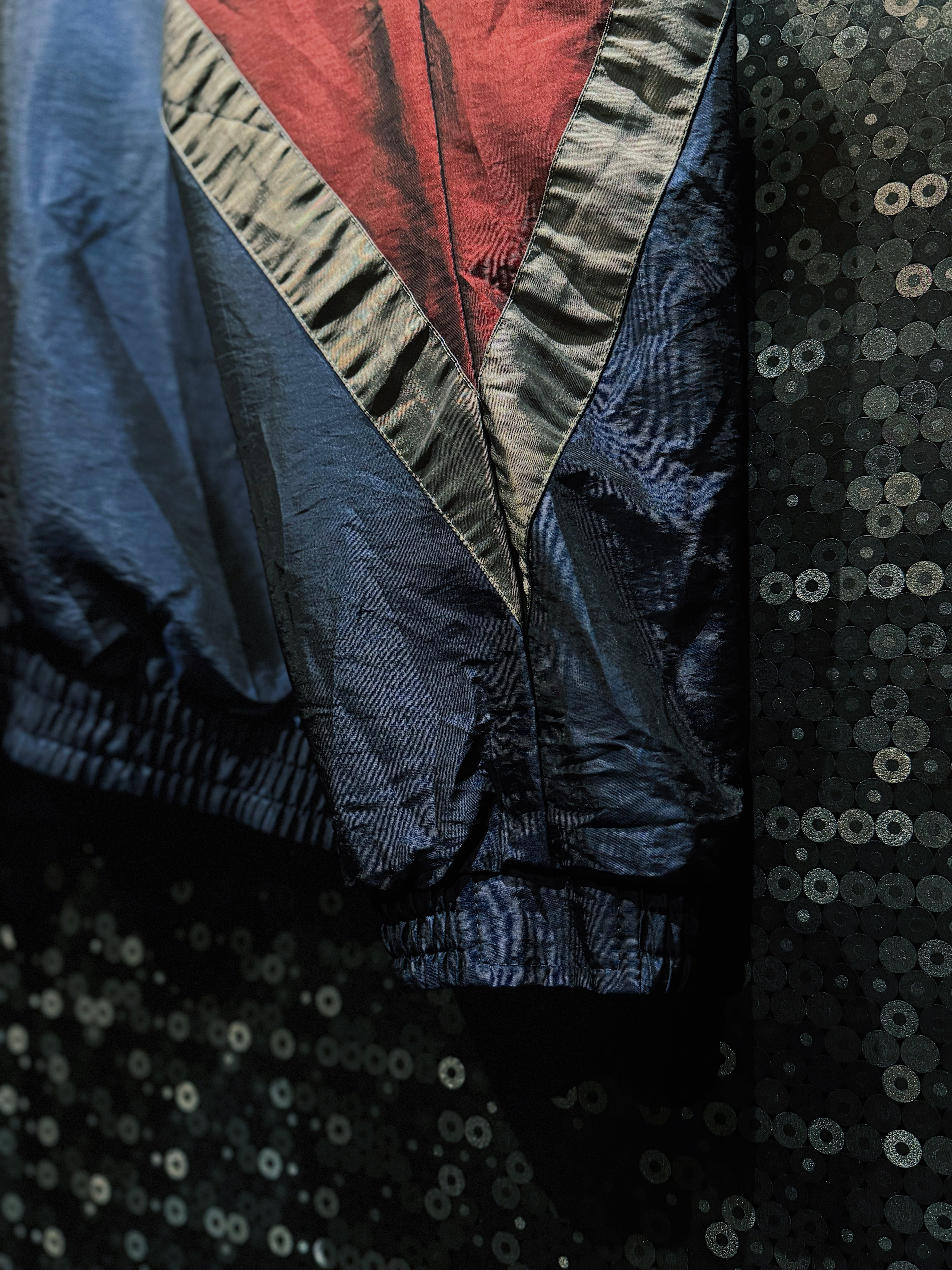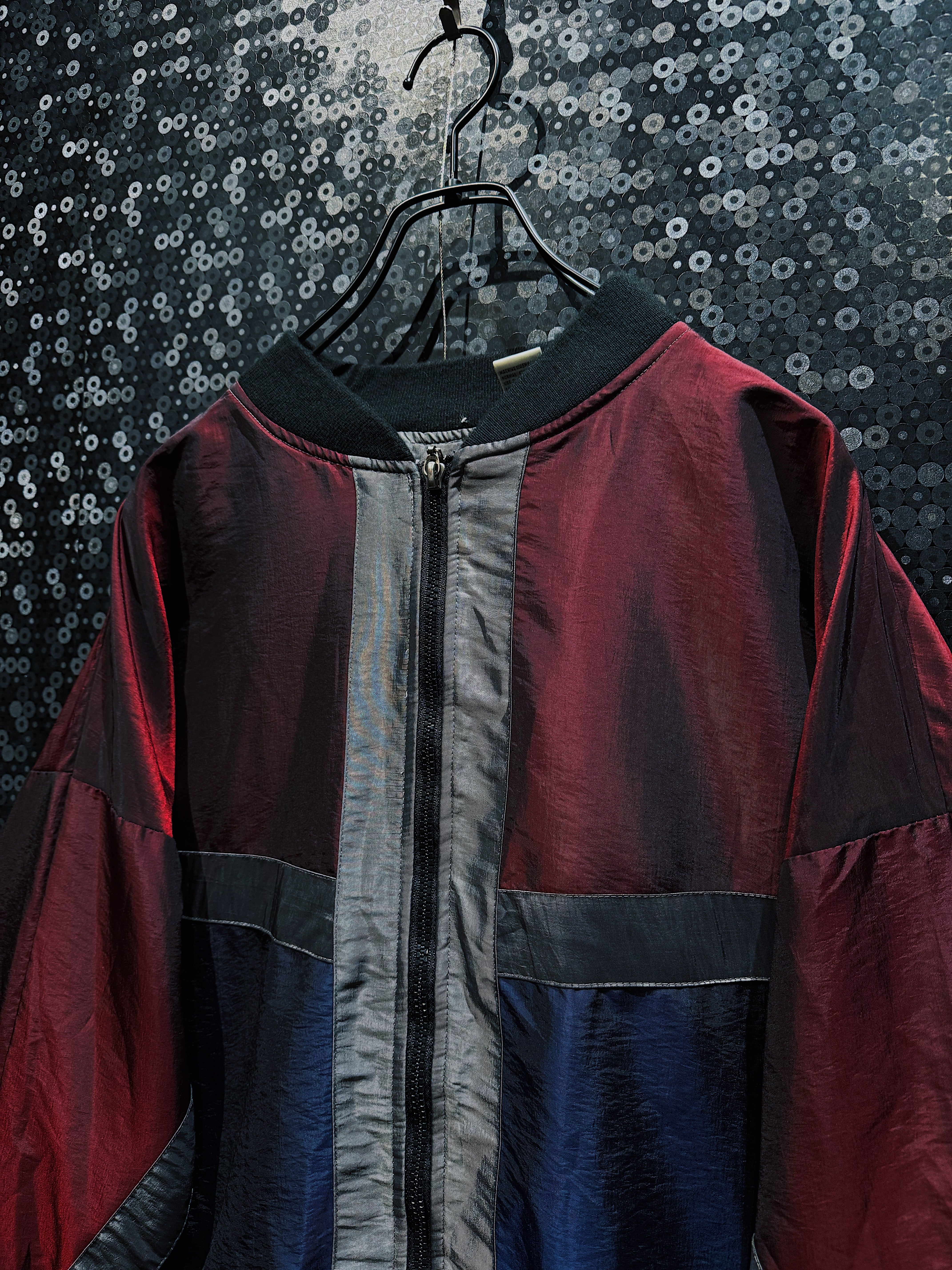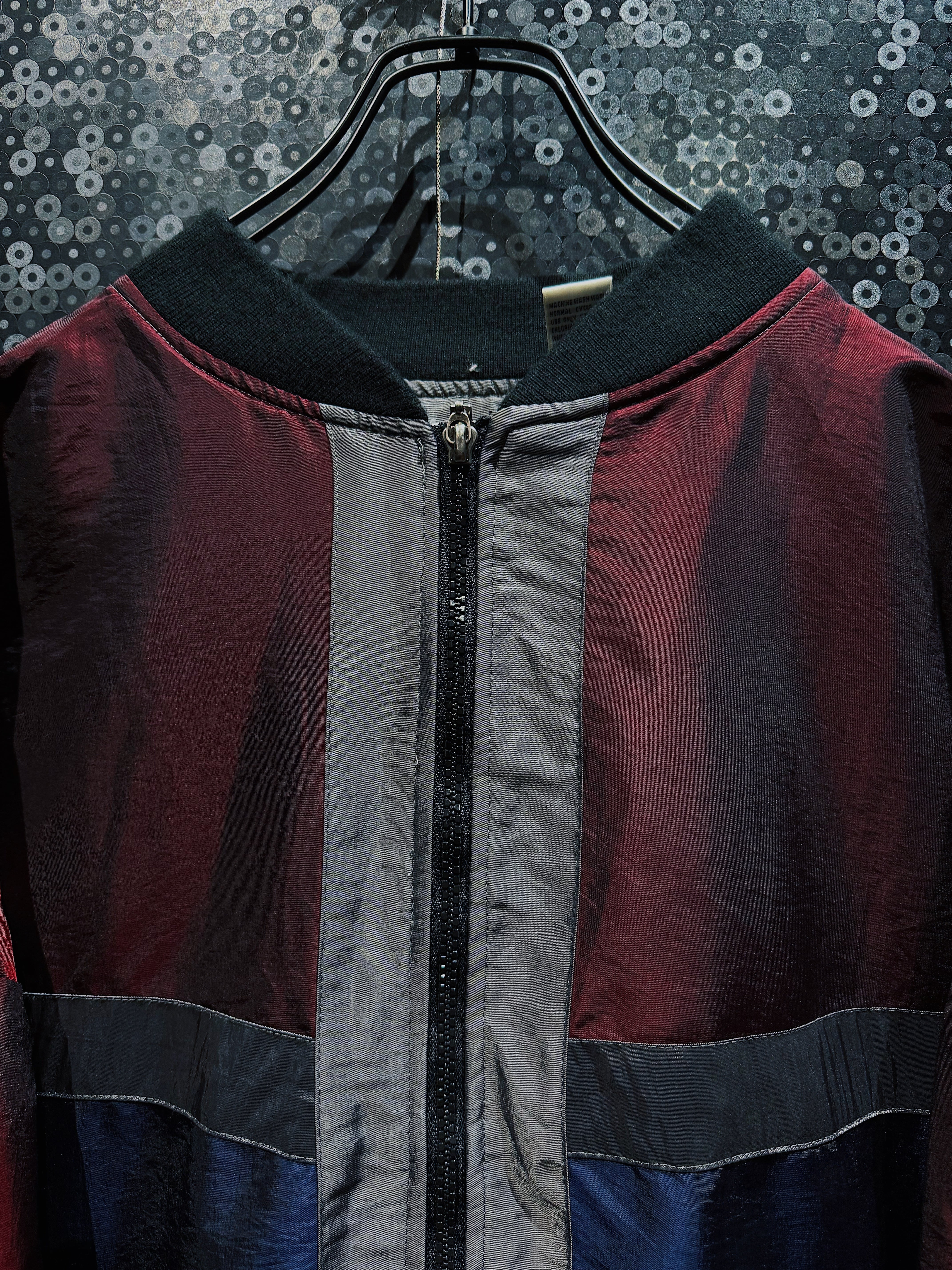 ワインレッド、ネイビー、グレーを軸に構成された90s感の強いスイッチング配色が目を引く、R&Y SPORTのヴィンテージナイロンブルゾン。