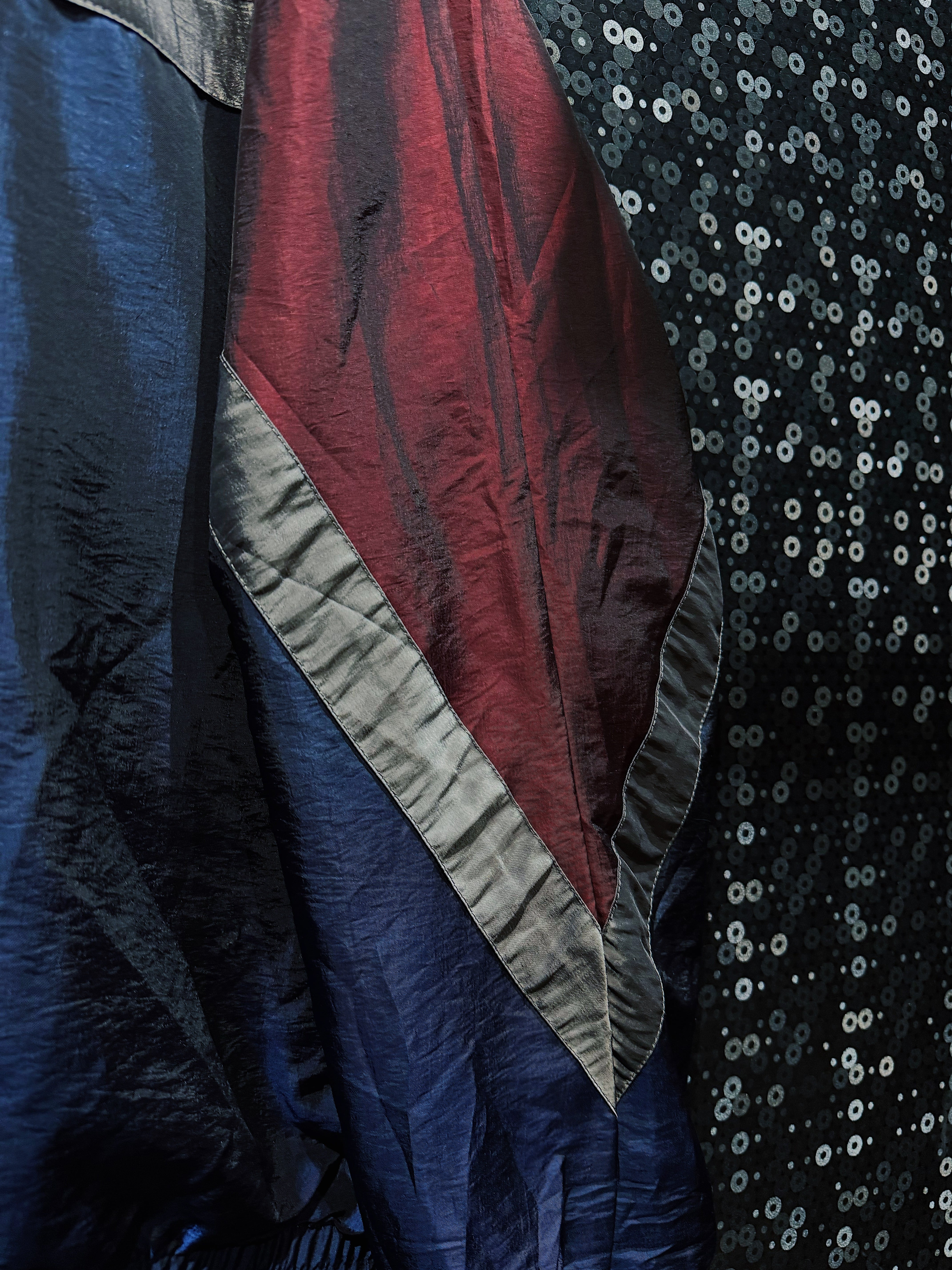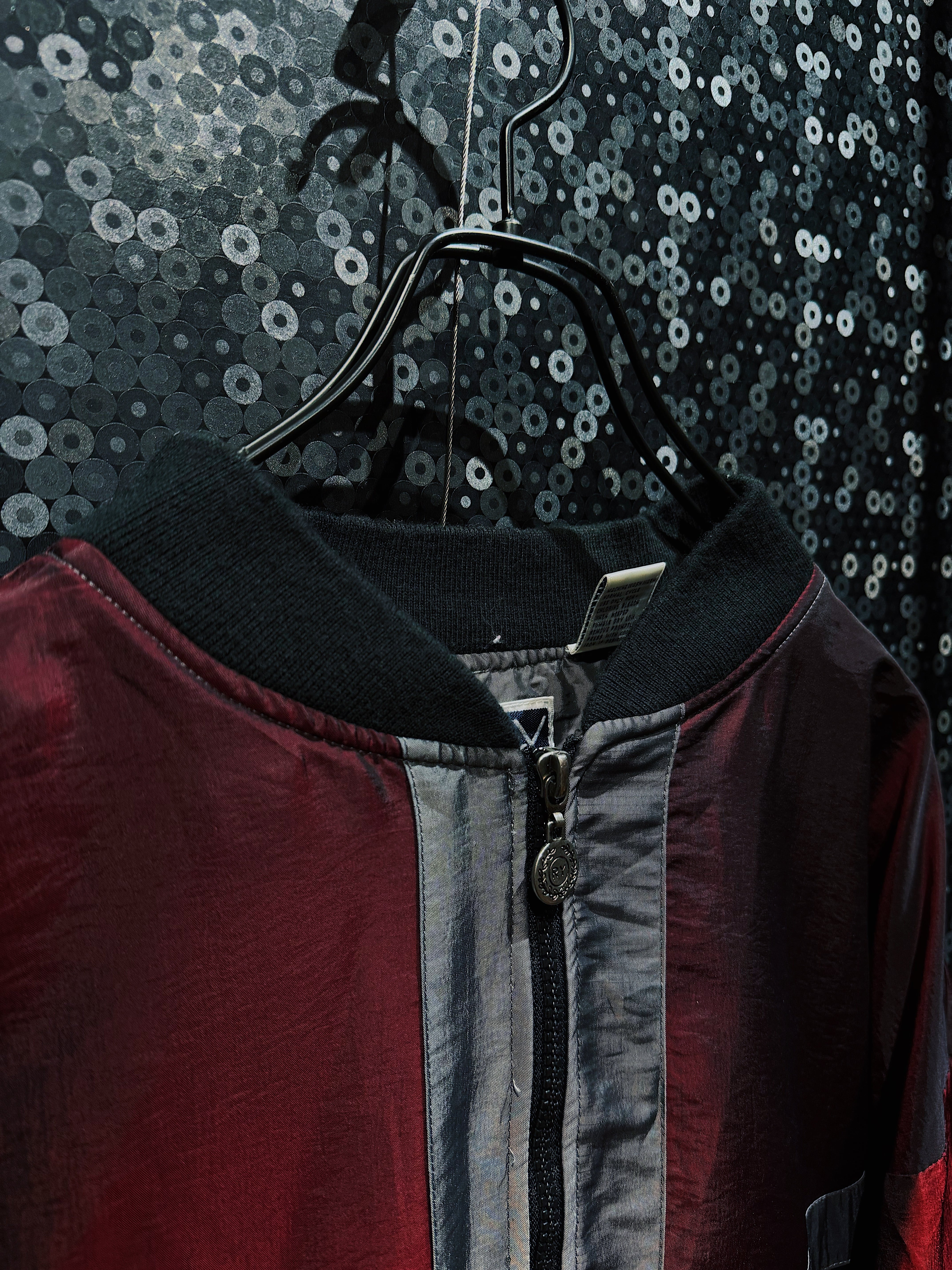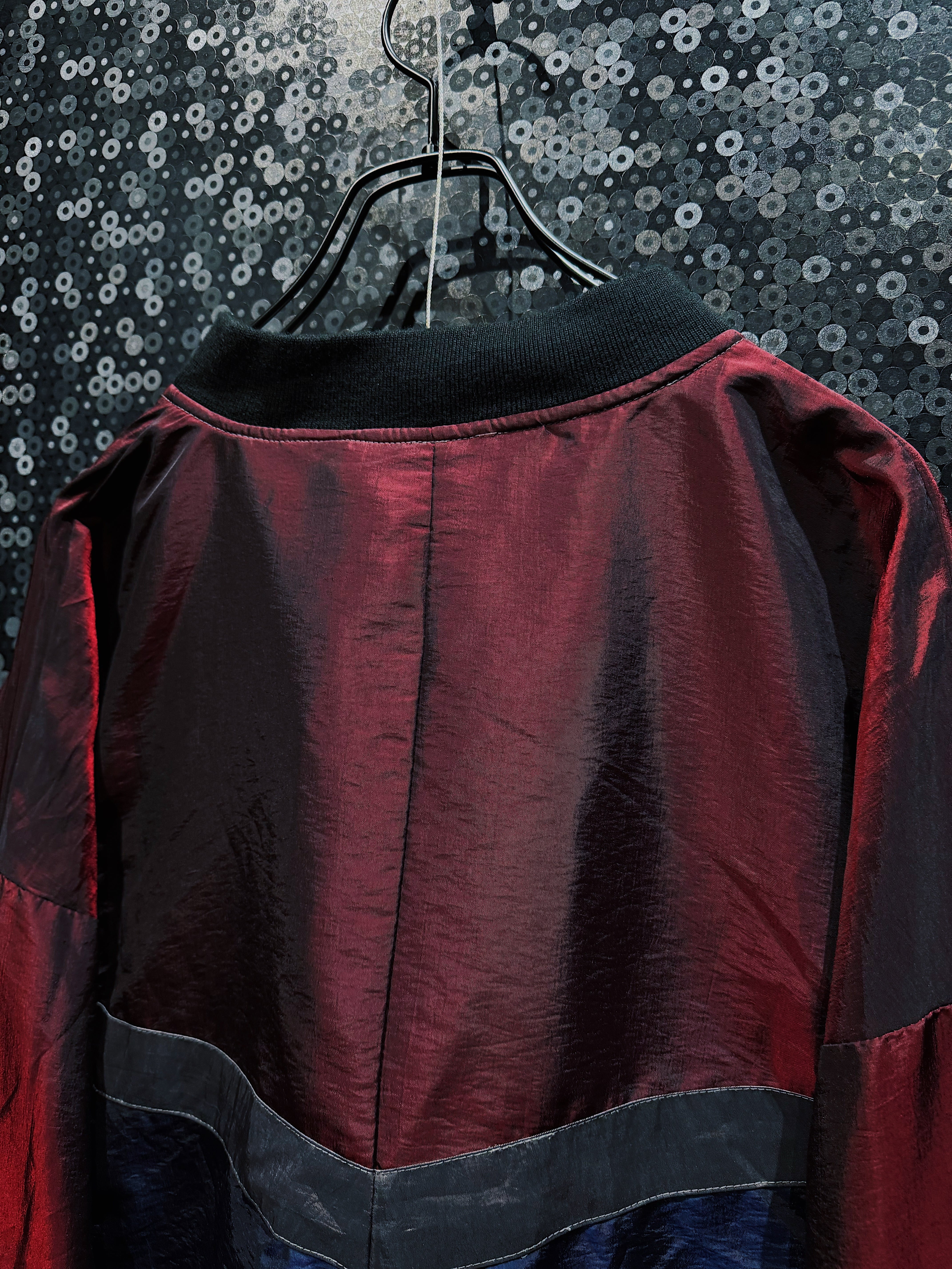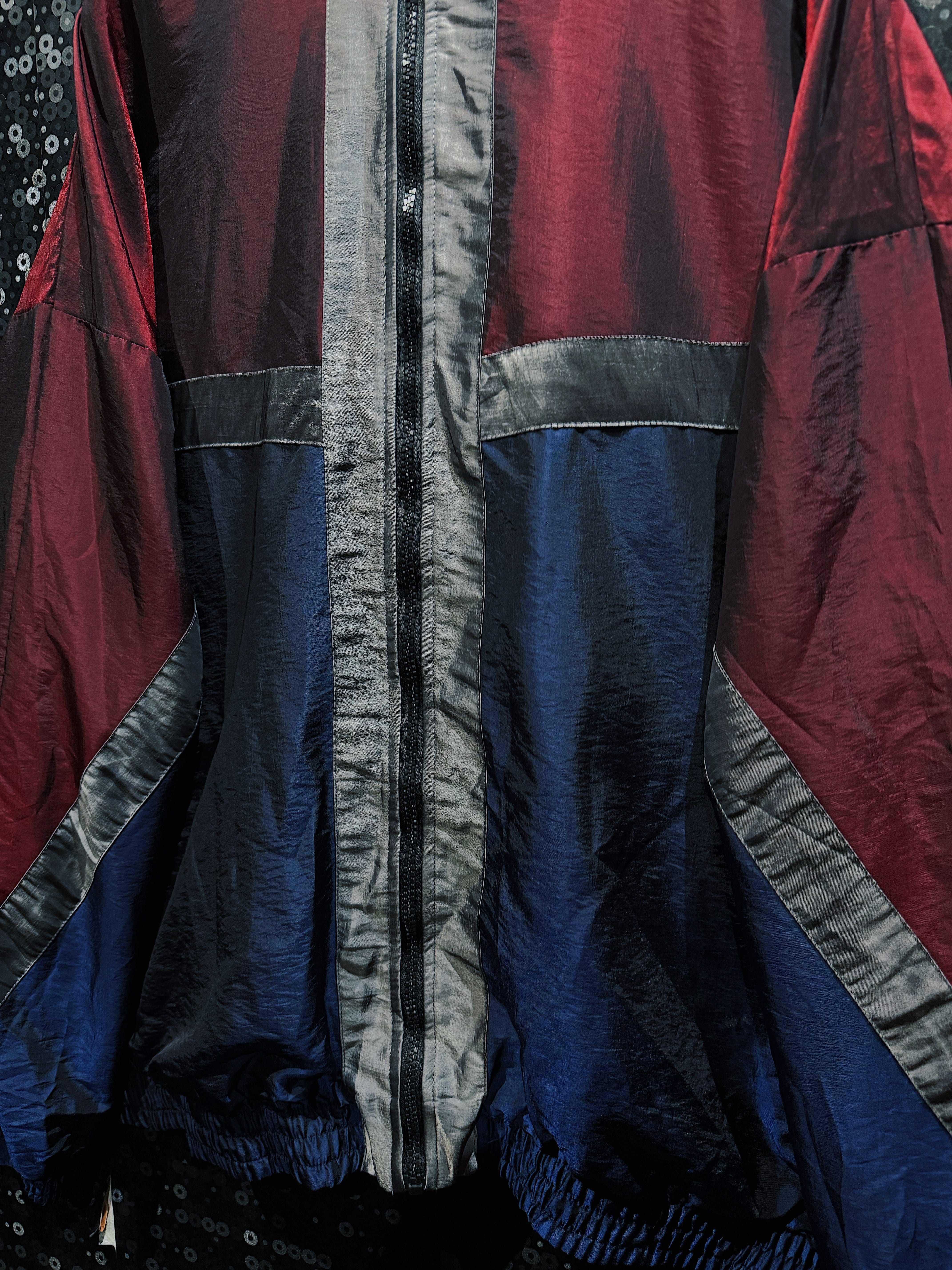 ワインレッド、ネイビー、グレーを軸に構成された90s感の強いスイッチング配色が目を引く、R&Y SPORTのヴィンテージナイロンブルゾン。