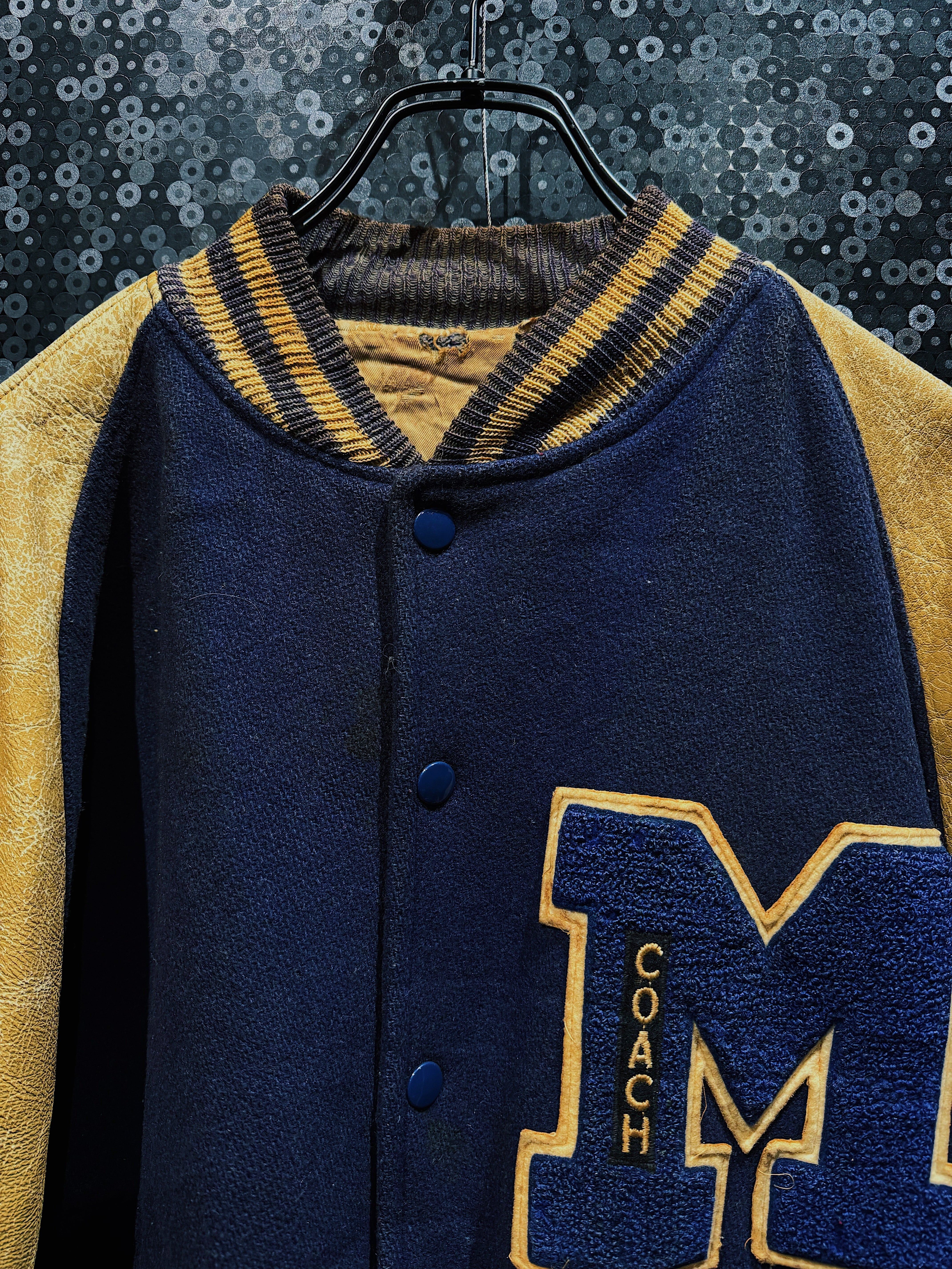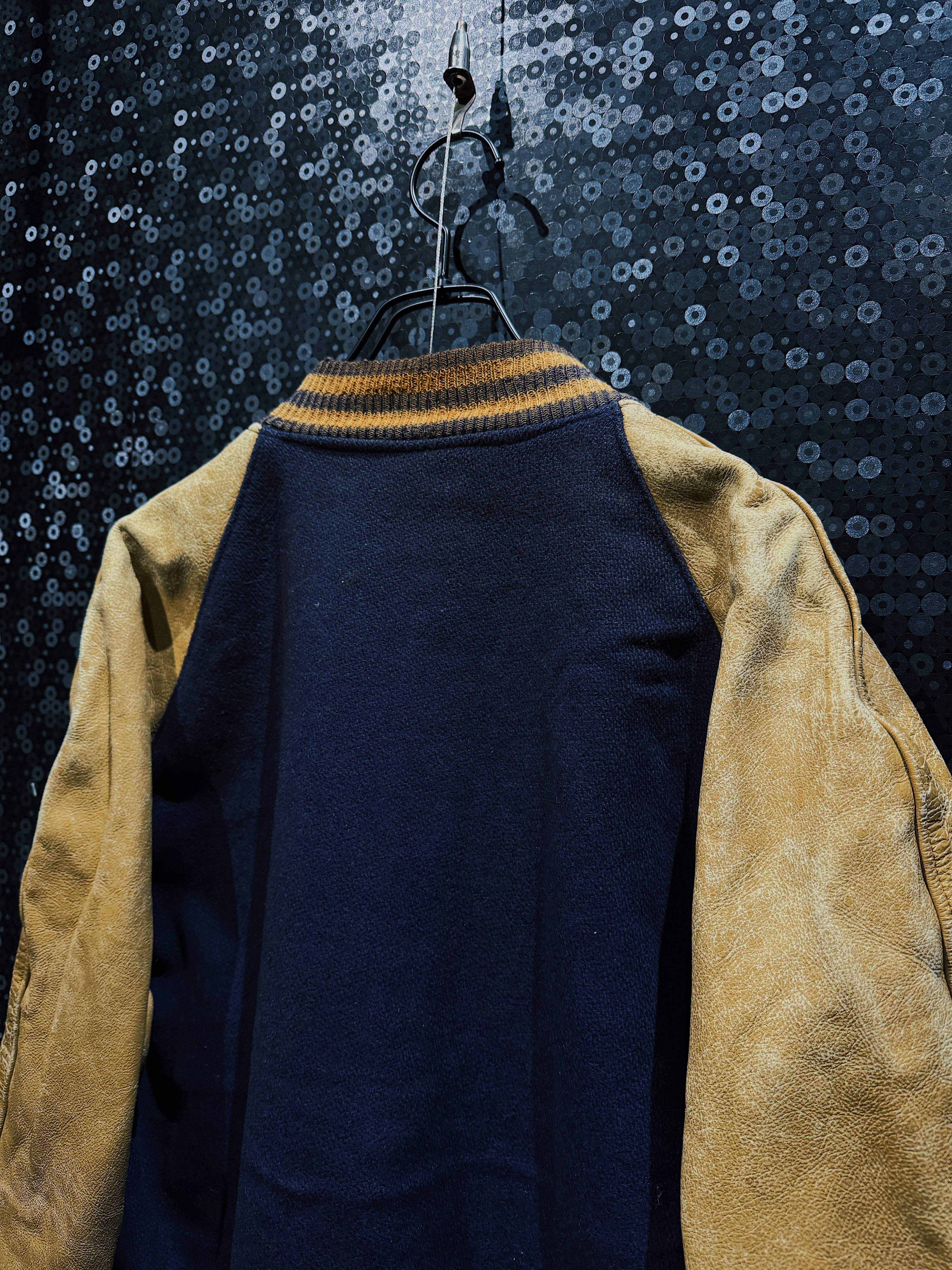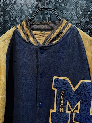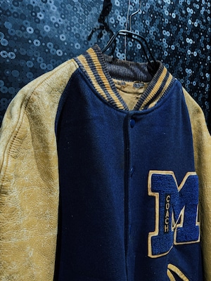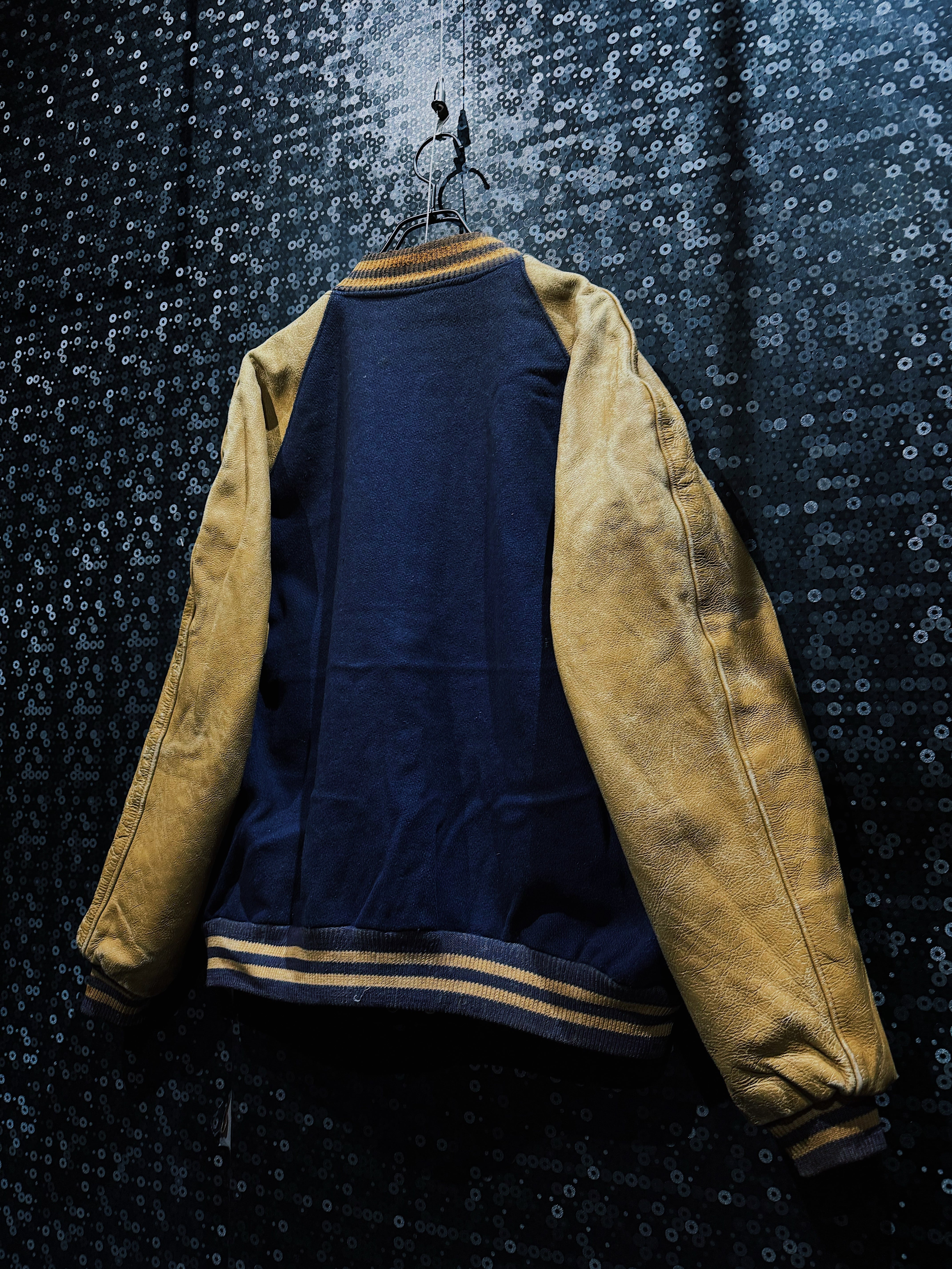 【ÆIEM】"COUCH"vintage M big detail leather sleeve varsity jacket navy × mustard