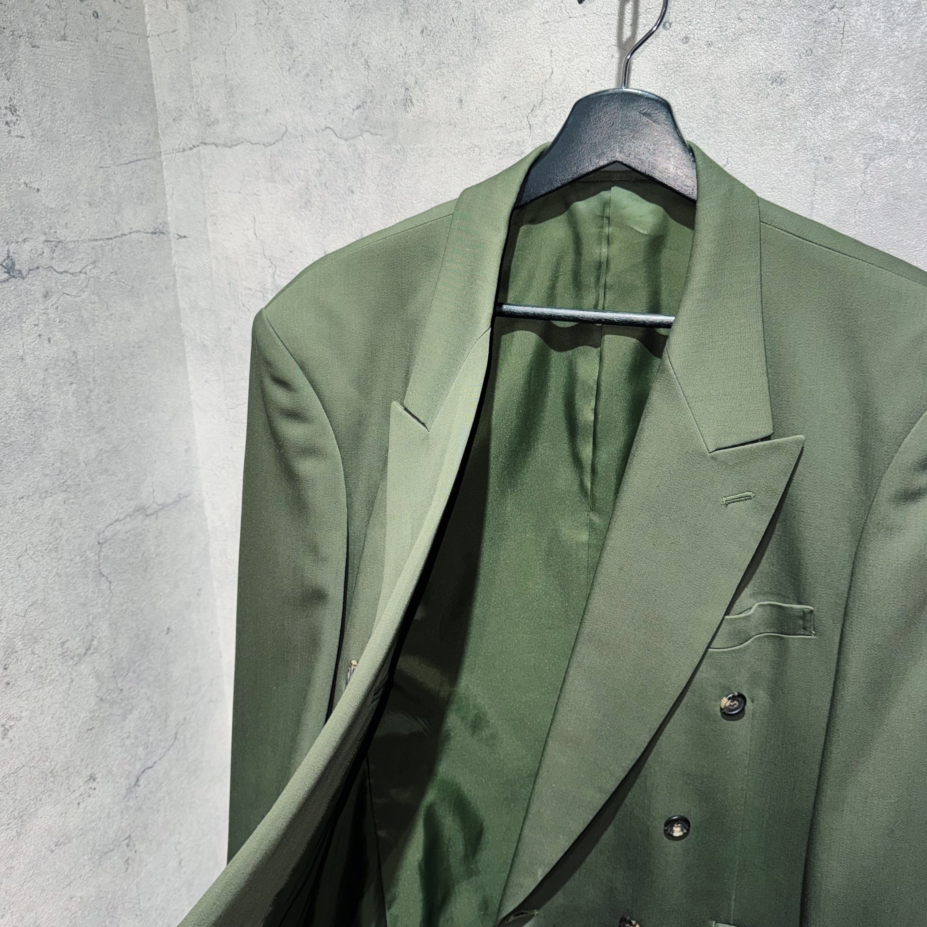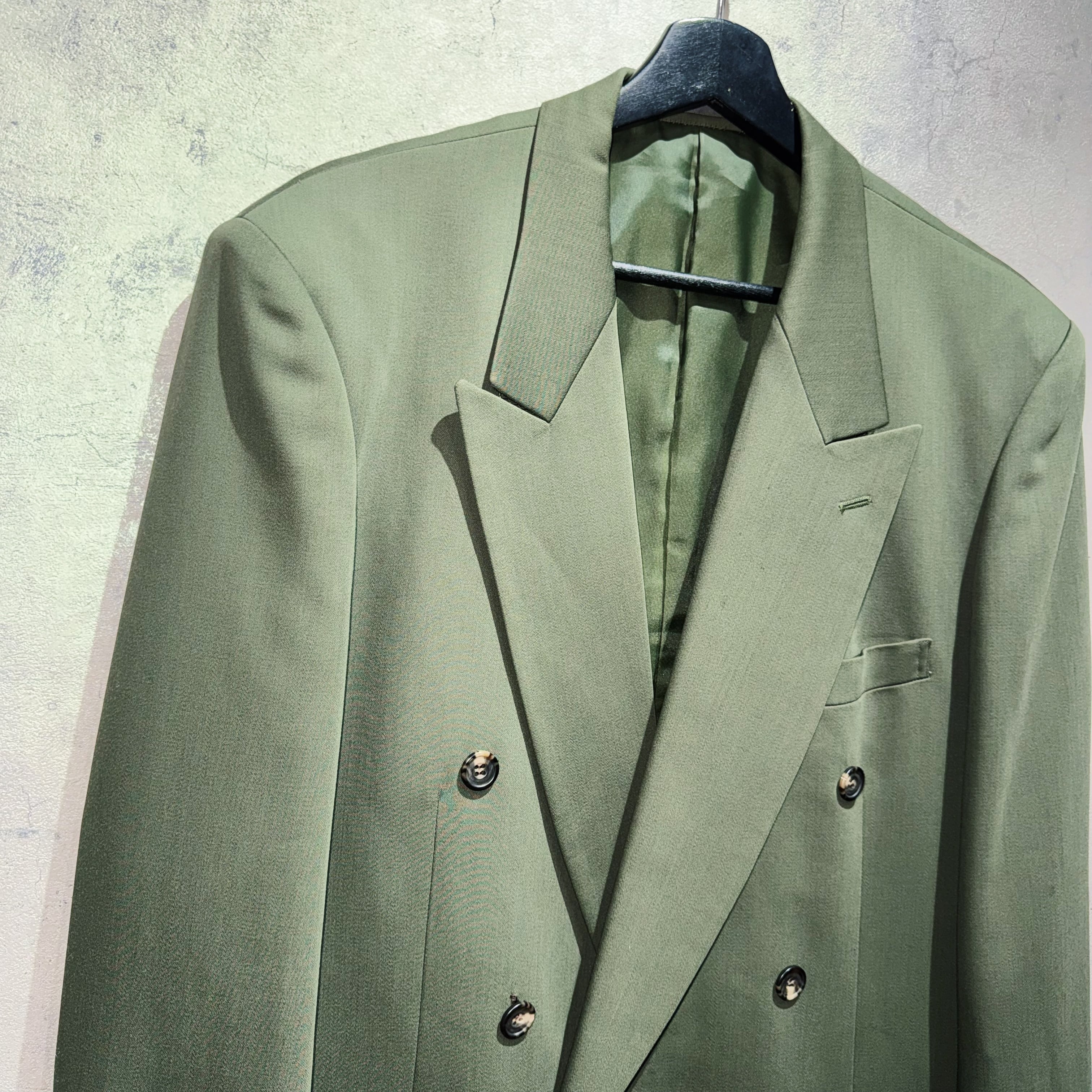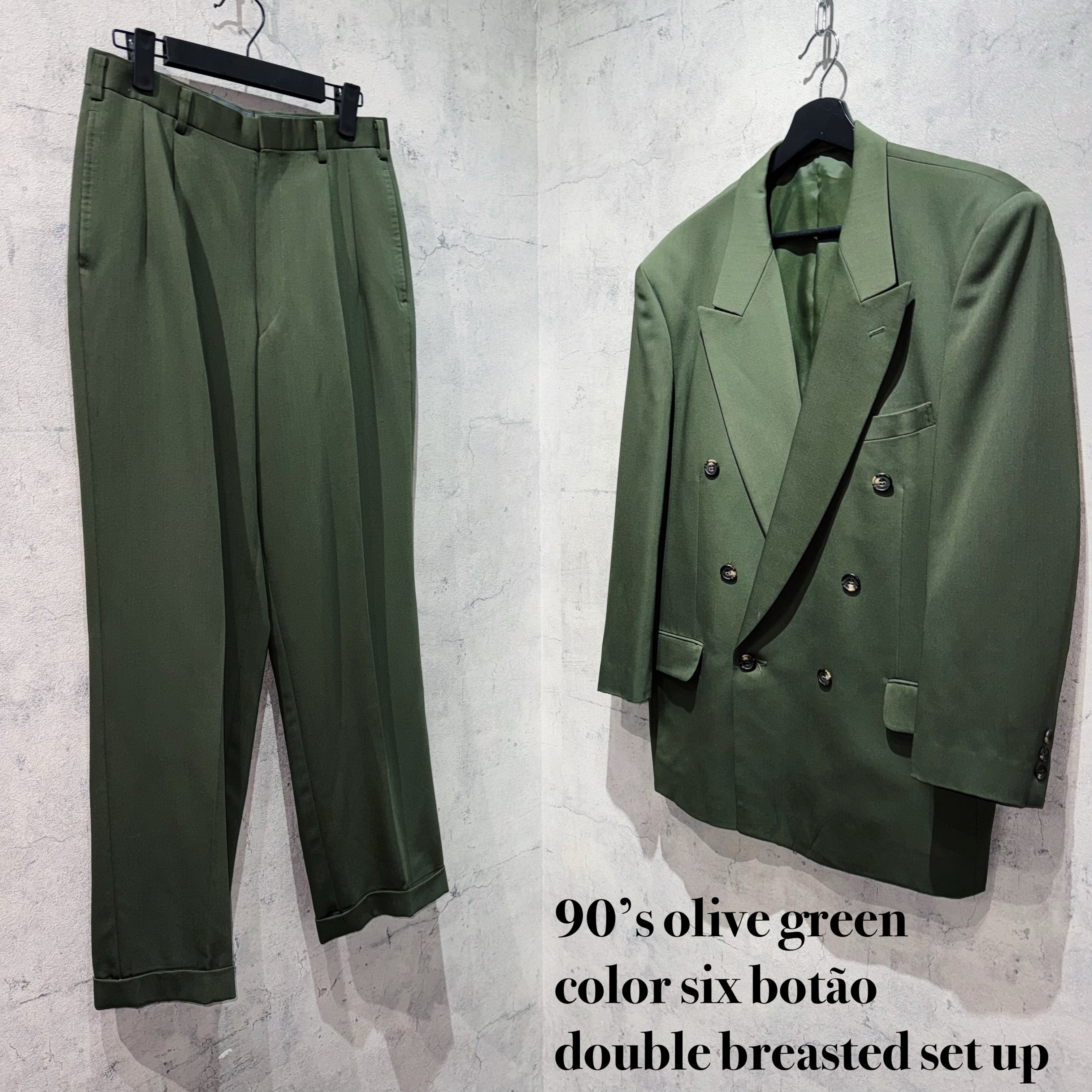 90年代オリーブグリーンカラーシックスボタンダブルブレストセットアップ