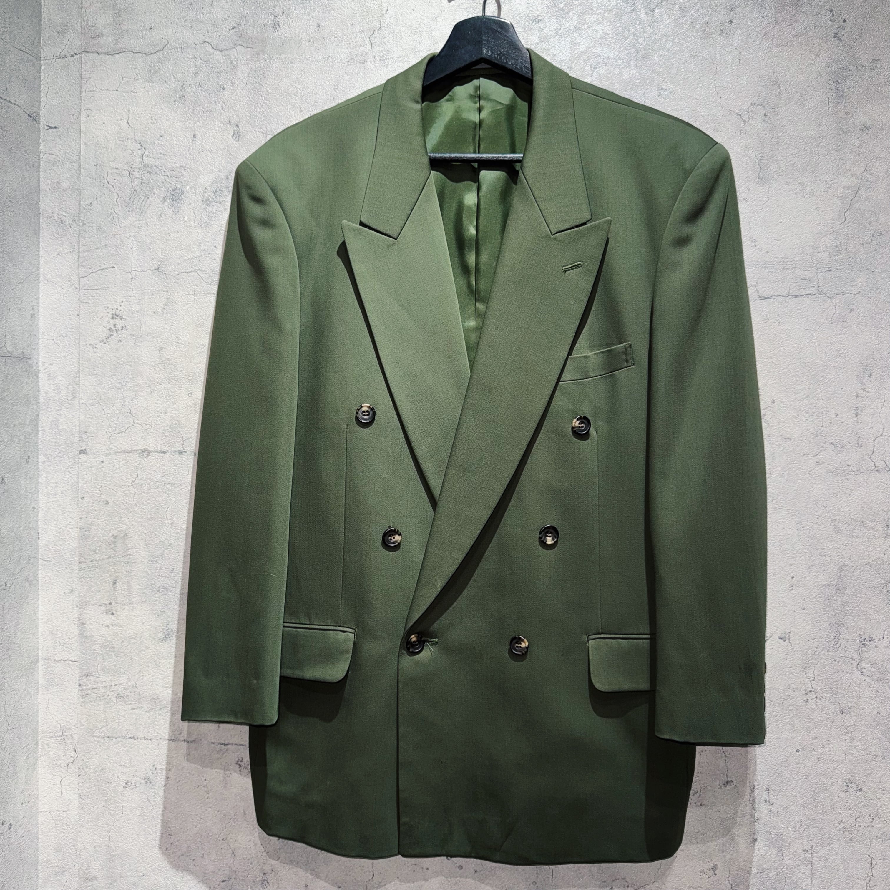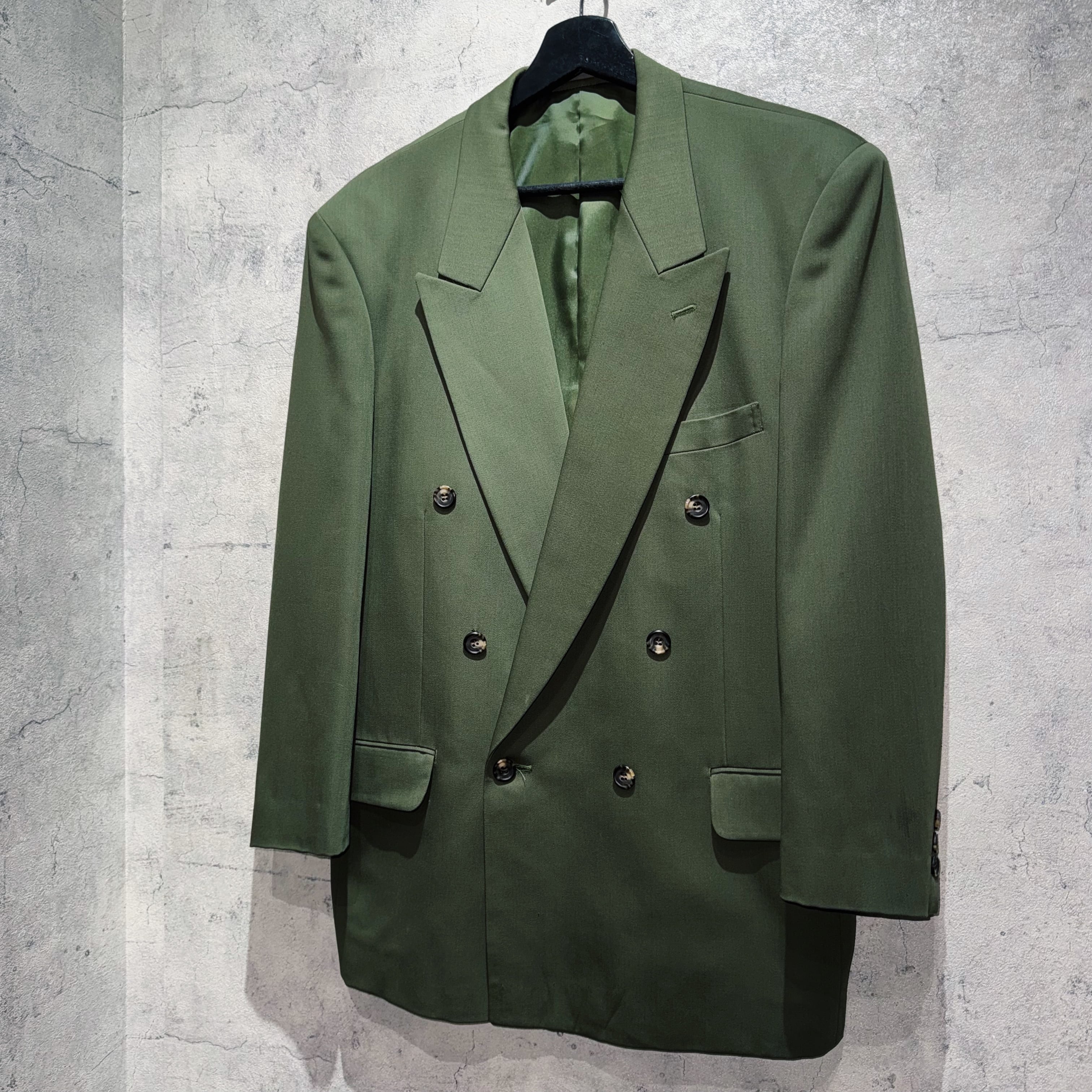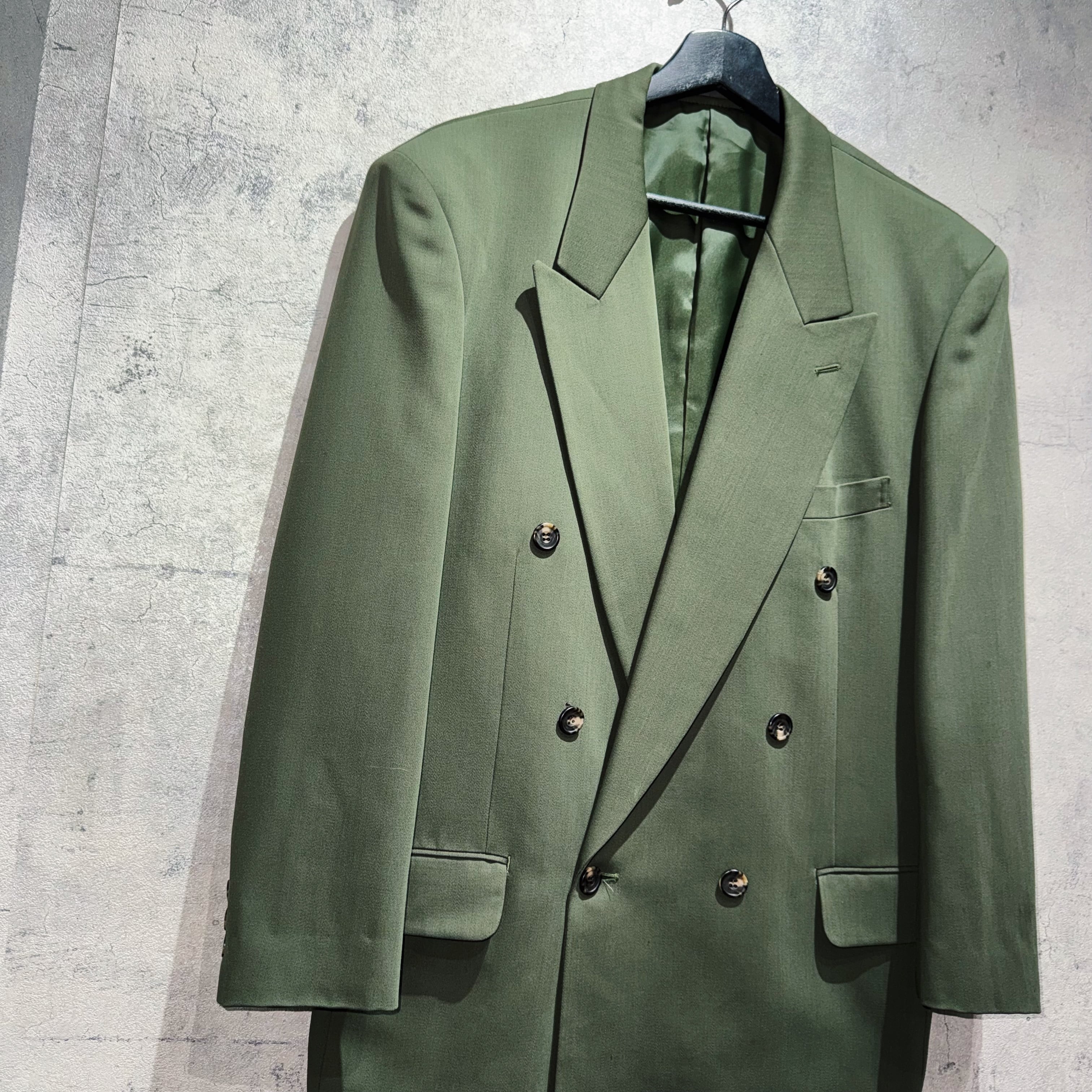 90年代オリーブグリーンカラーシックスボタンダブルブレストセットアップ
