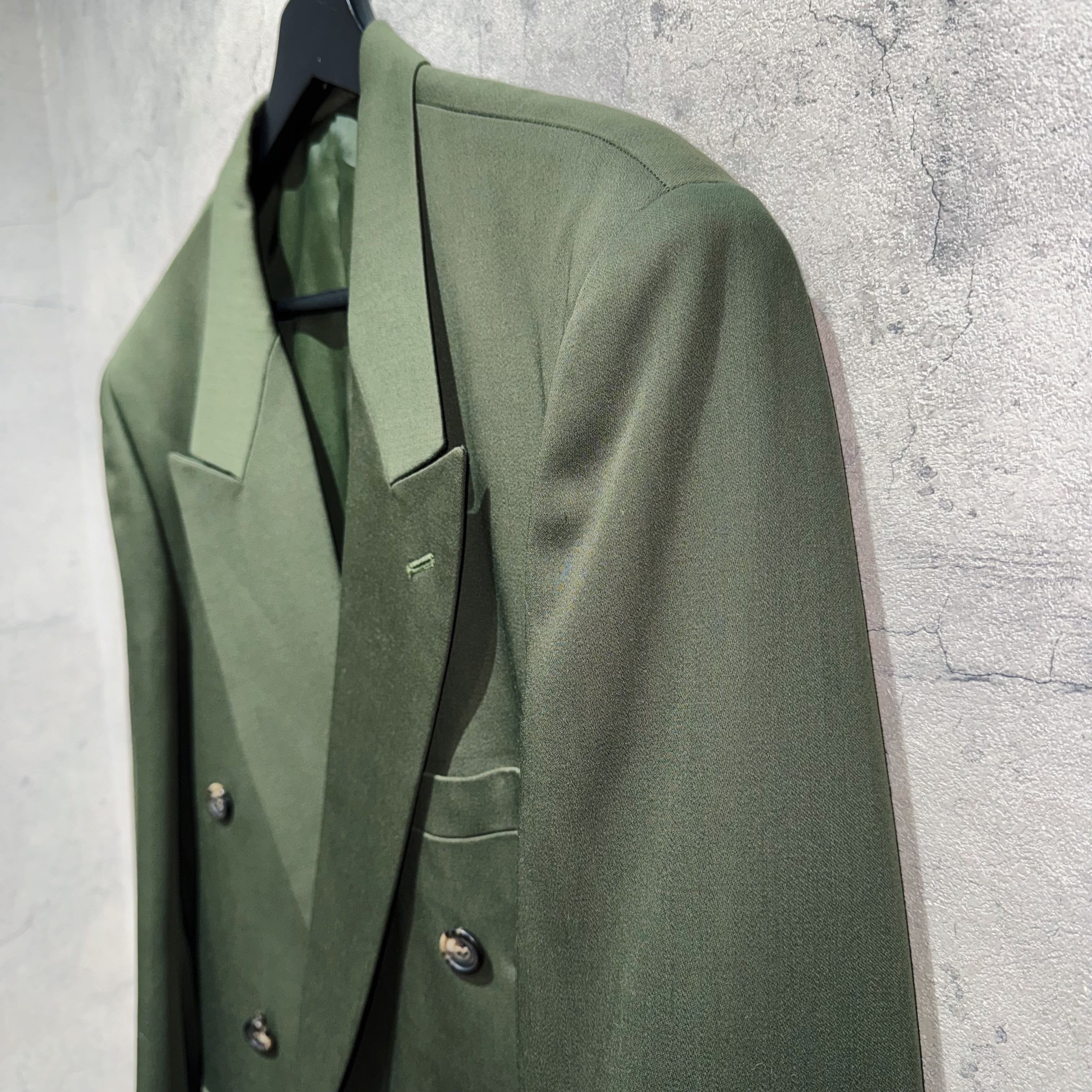かなり人気の高いオリーブグリーンのセットアップは当店ならではで、毎度入荷の都度即完が相次いでいます。シルエット、色味、素材感、どれをとっても素晴らしい、早い者勝ちの逸品です。