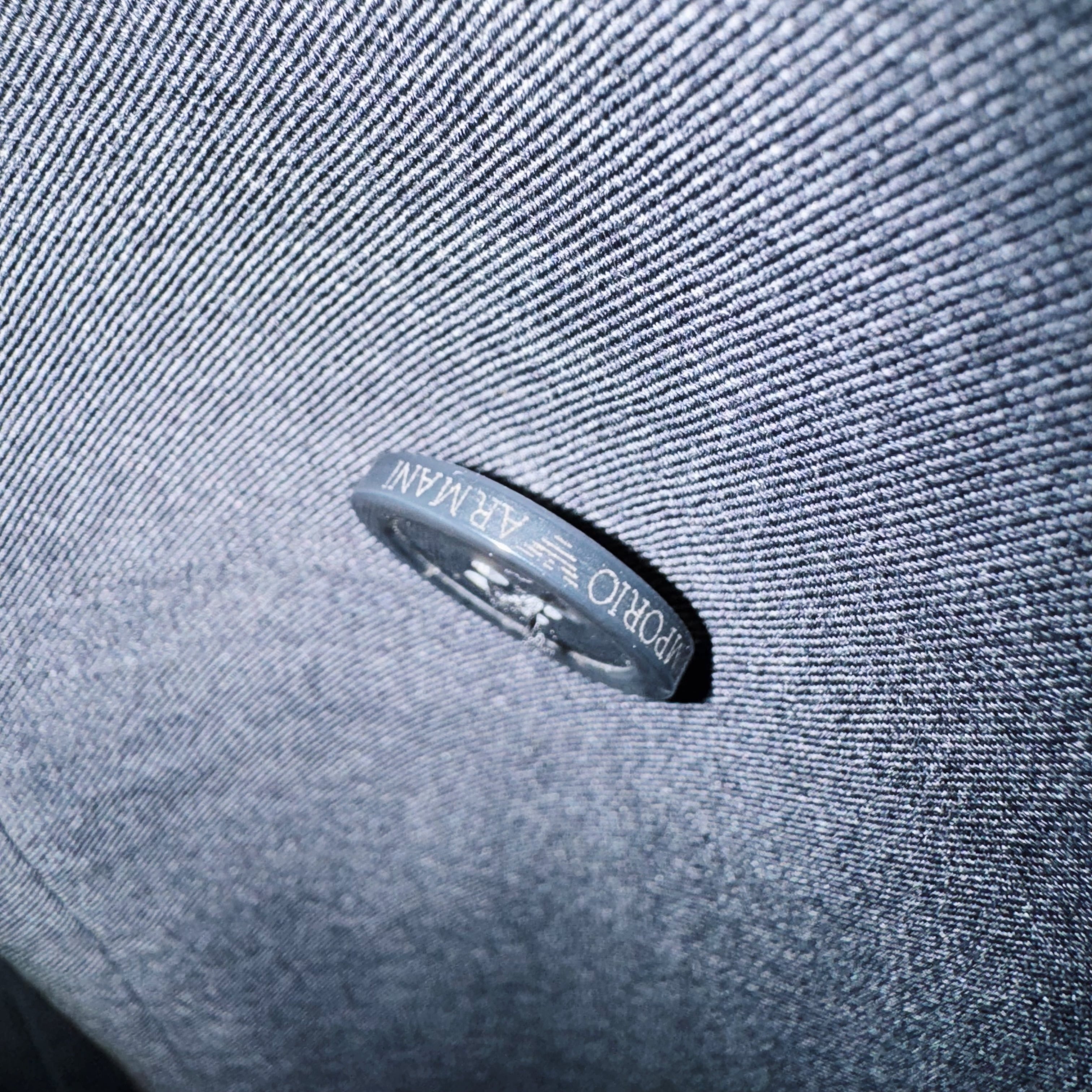 1981年にジョルジオアルマーニから発表された高品質且つラグジュアリーでモダンなデザインを意識した"EMPORIO ARMANI”のセットアップ。