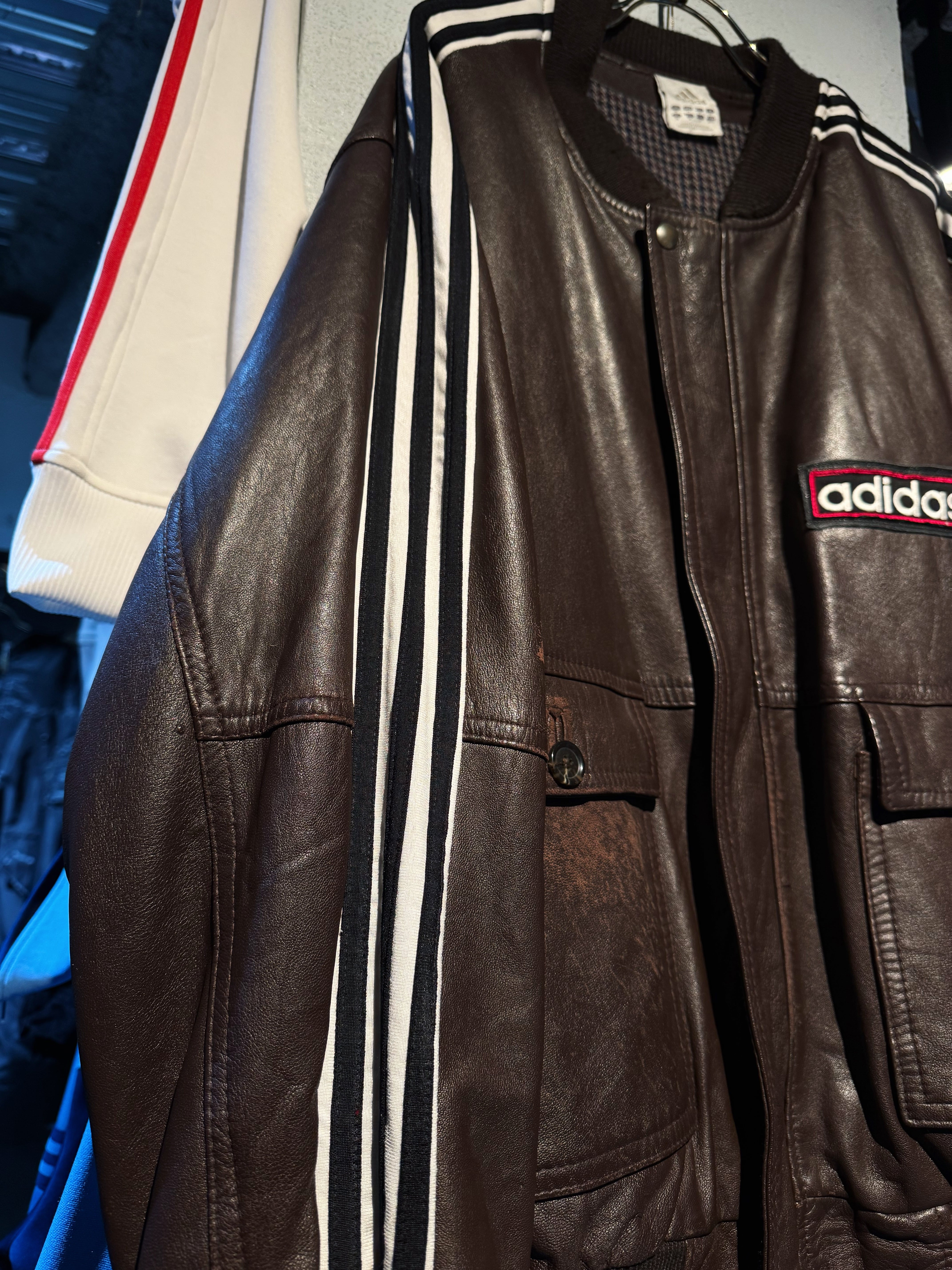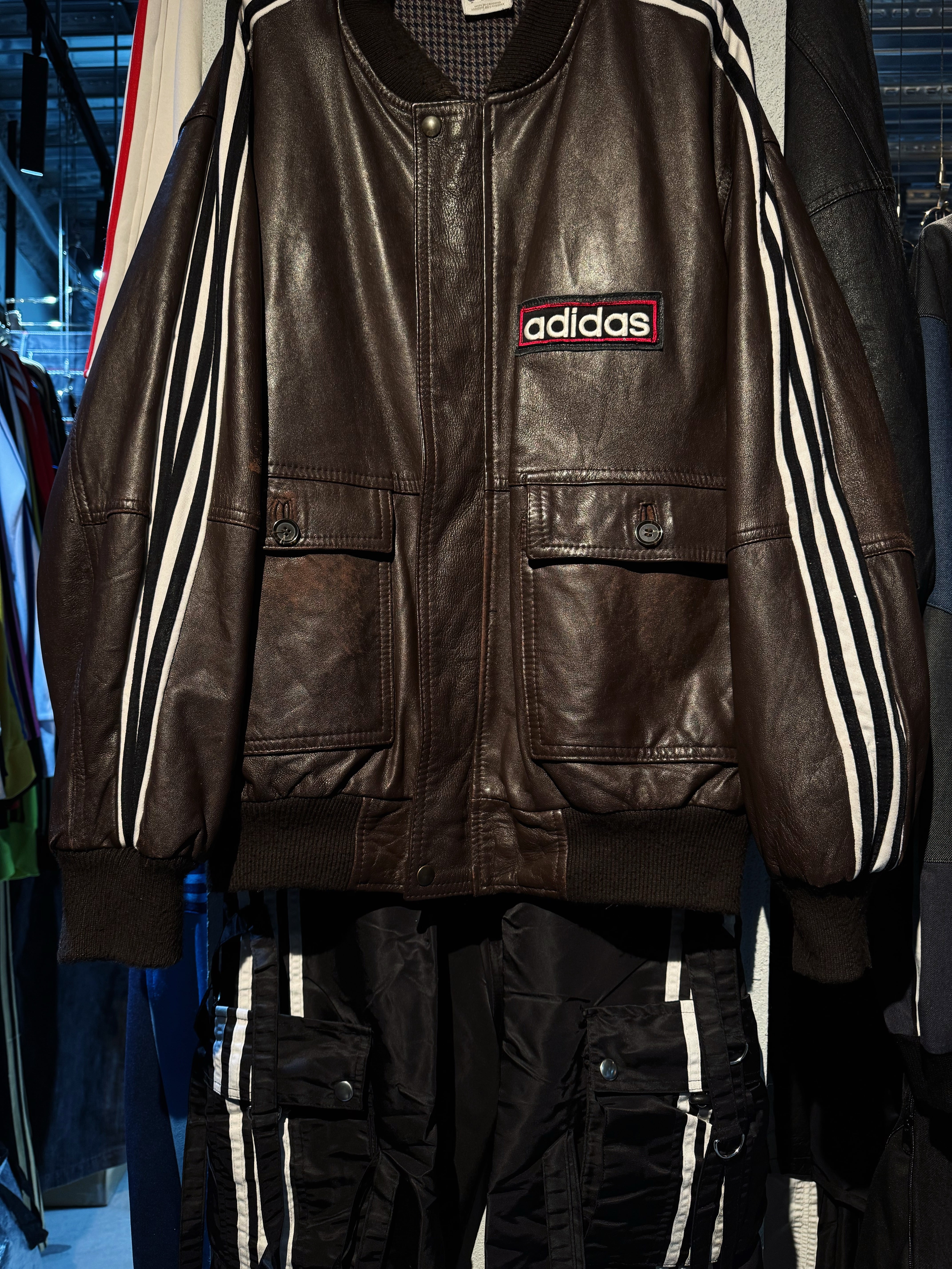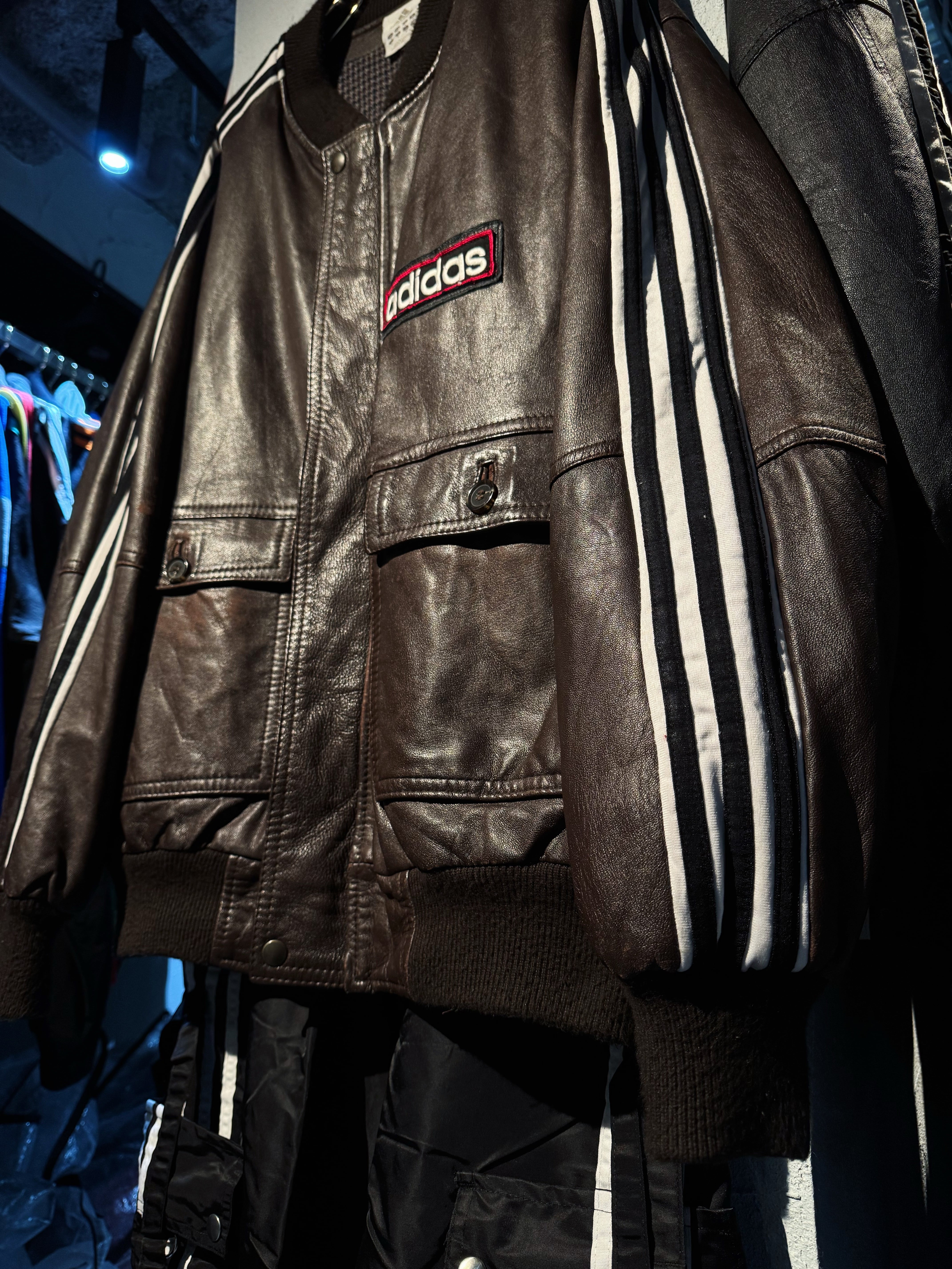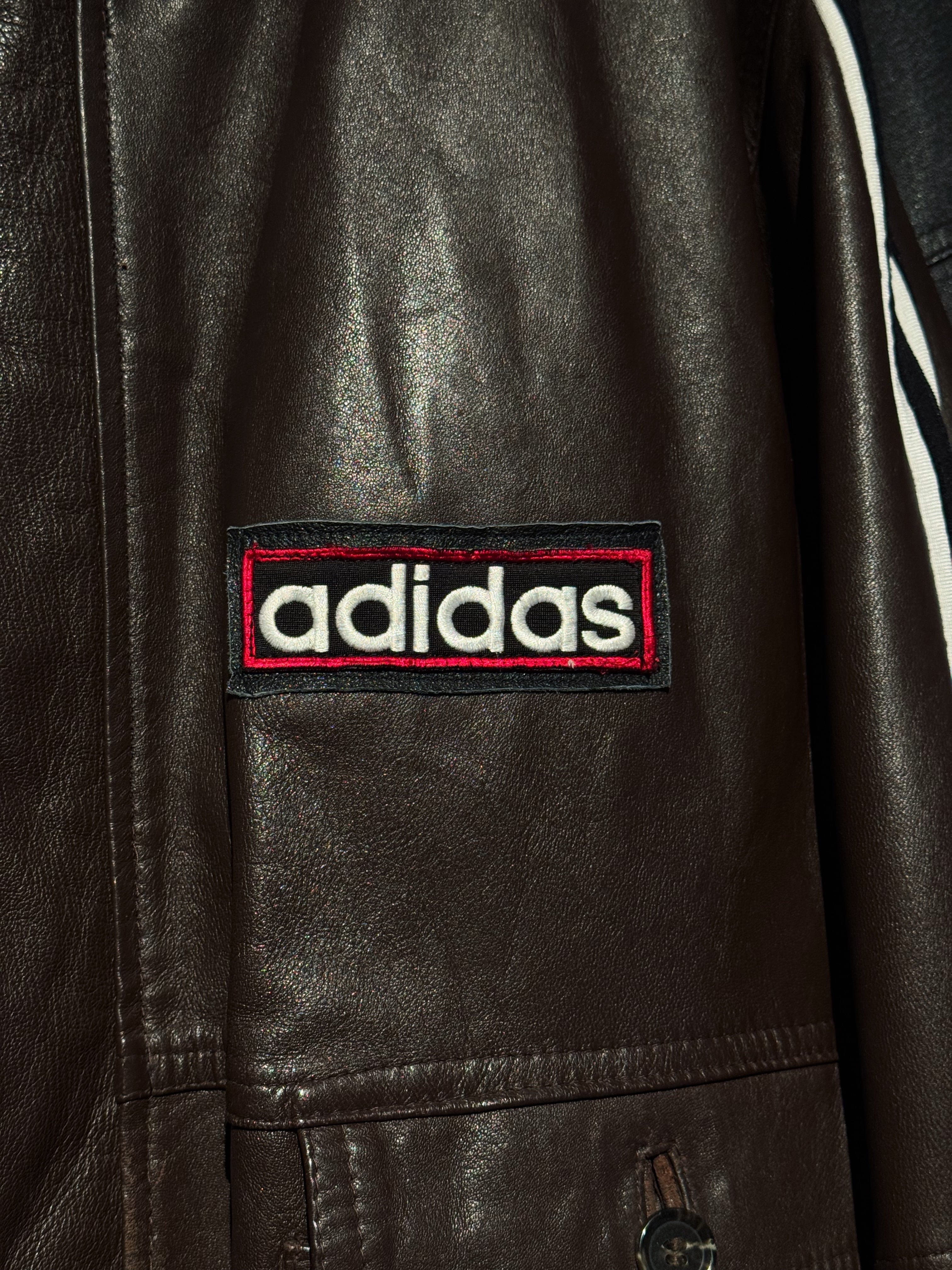 ハリがありモッチモチのレザージャケットにシティーポップでハイストリートなadidasのスリーストライプの上質なトラックテキスタイルを"融合"させてハイモード×ハイストリートなアイテムに。