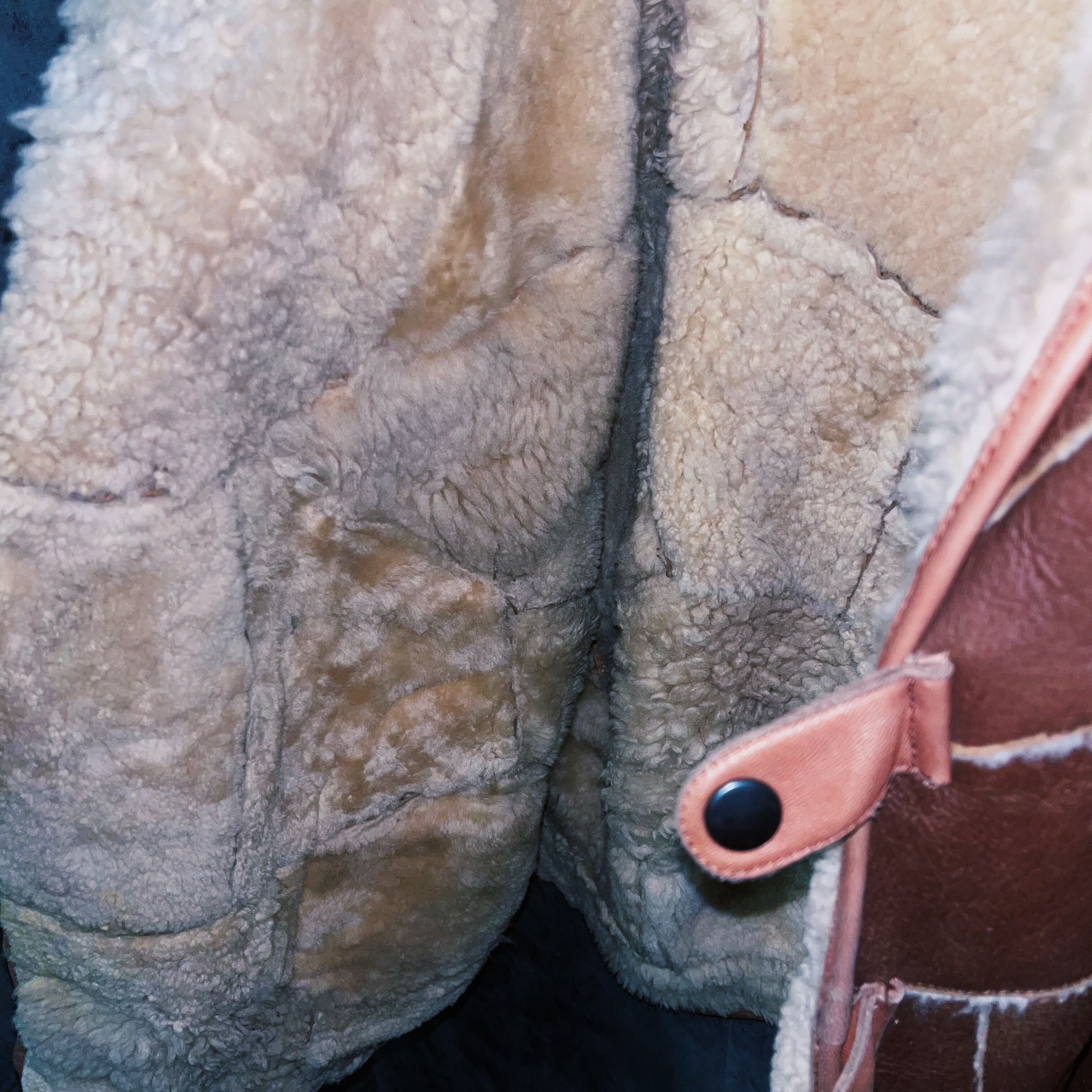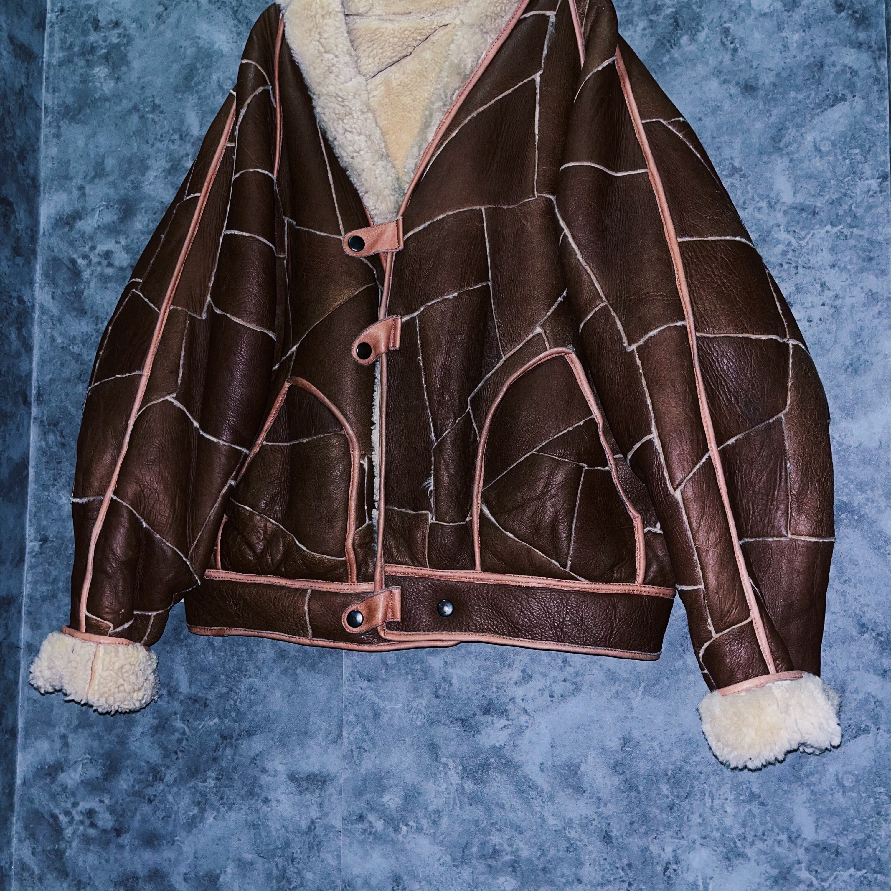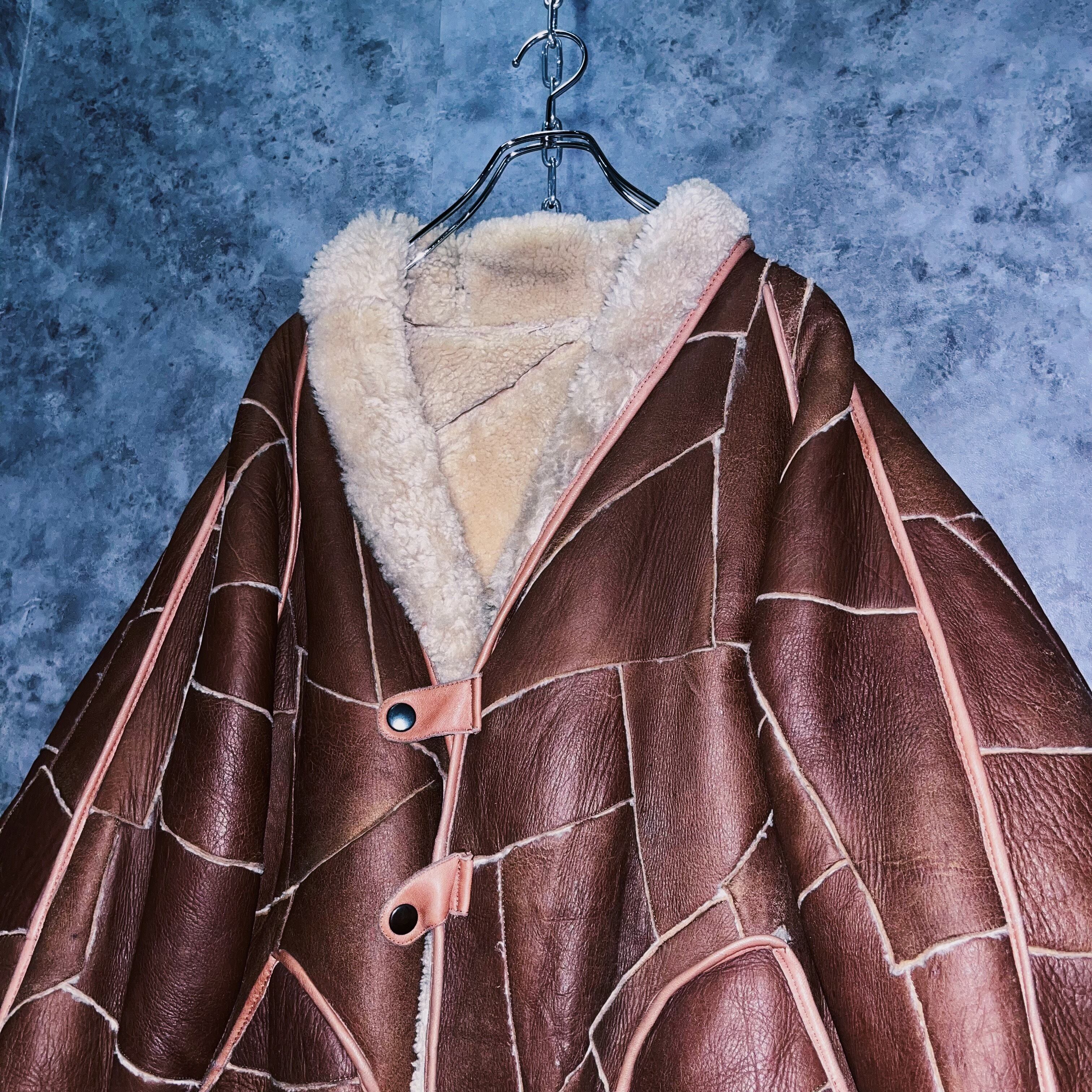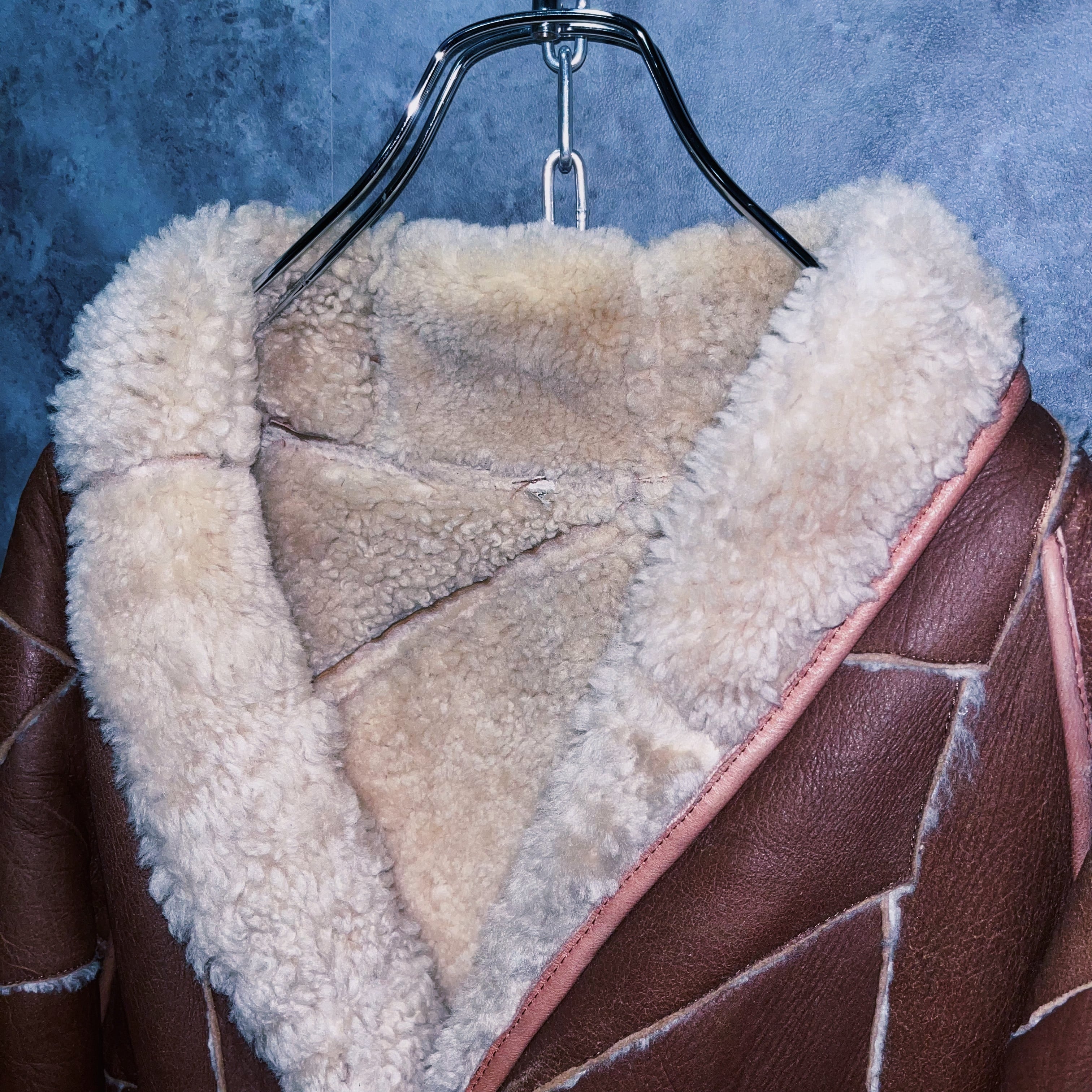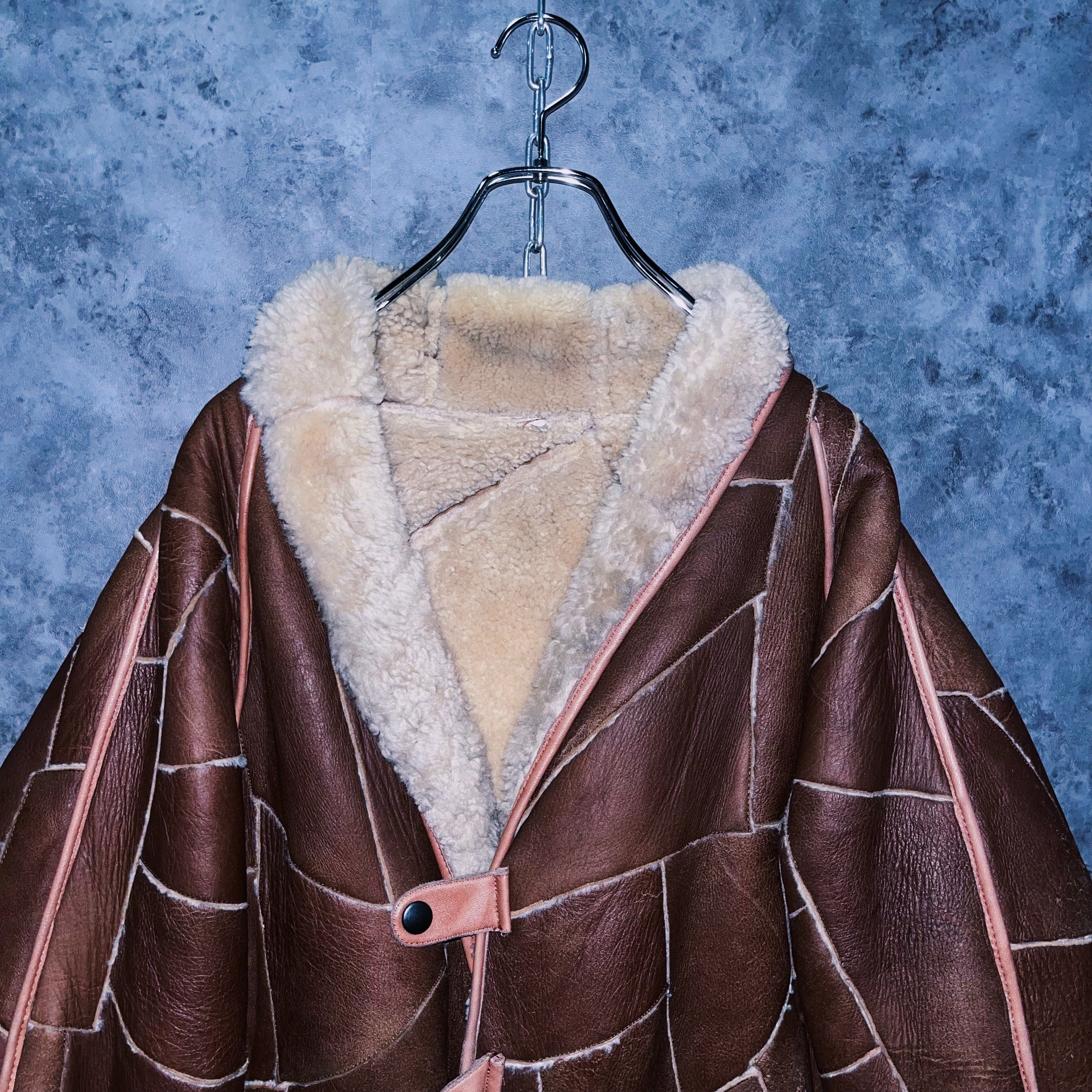 クラシカルなブラウンレザーをツギハギにデザインし、裏地にはふわふわのボアを施した一枚。