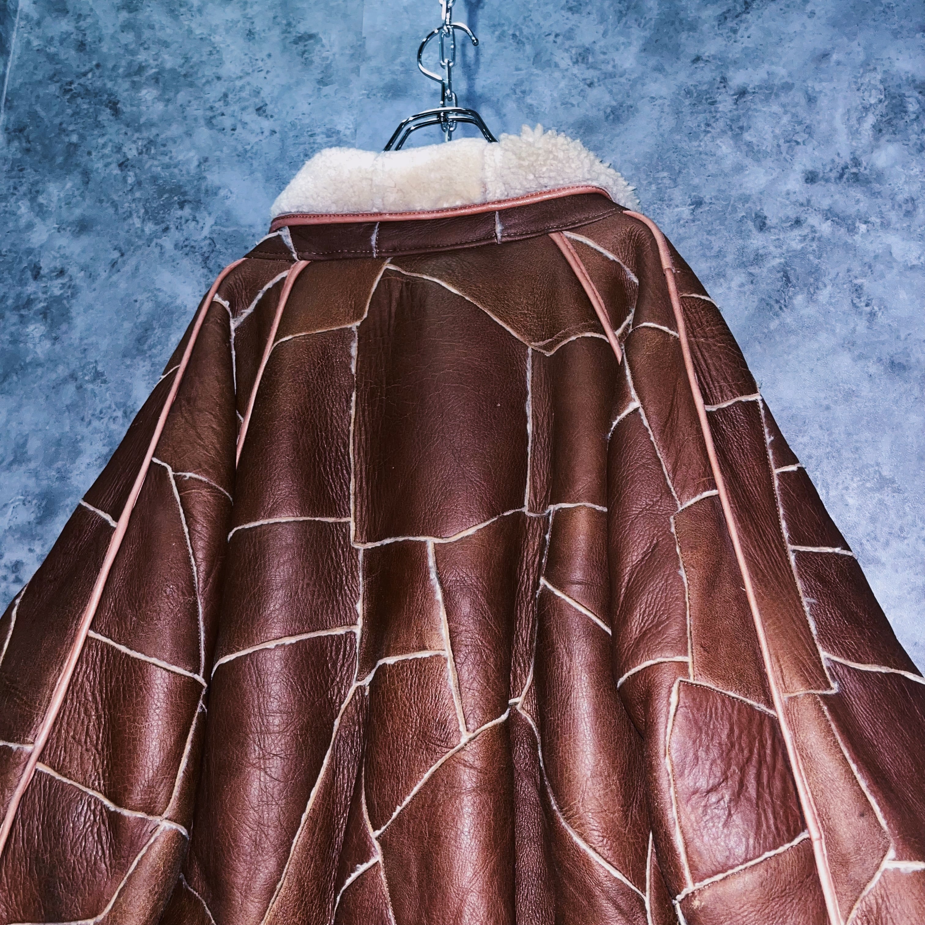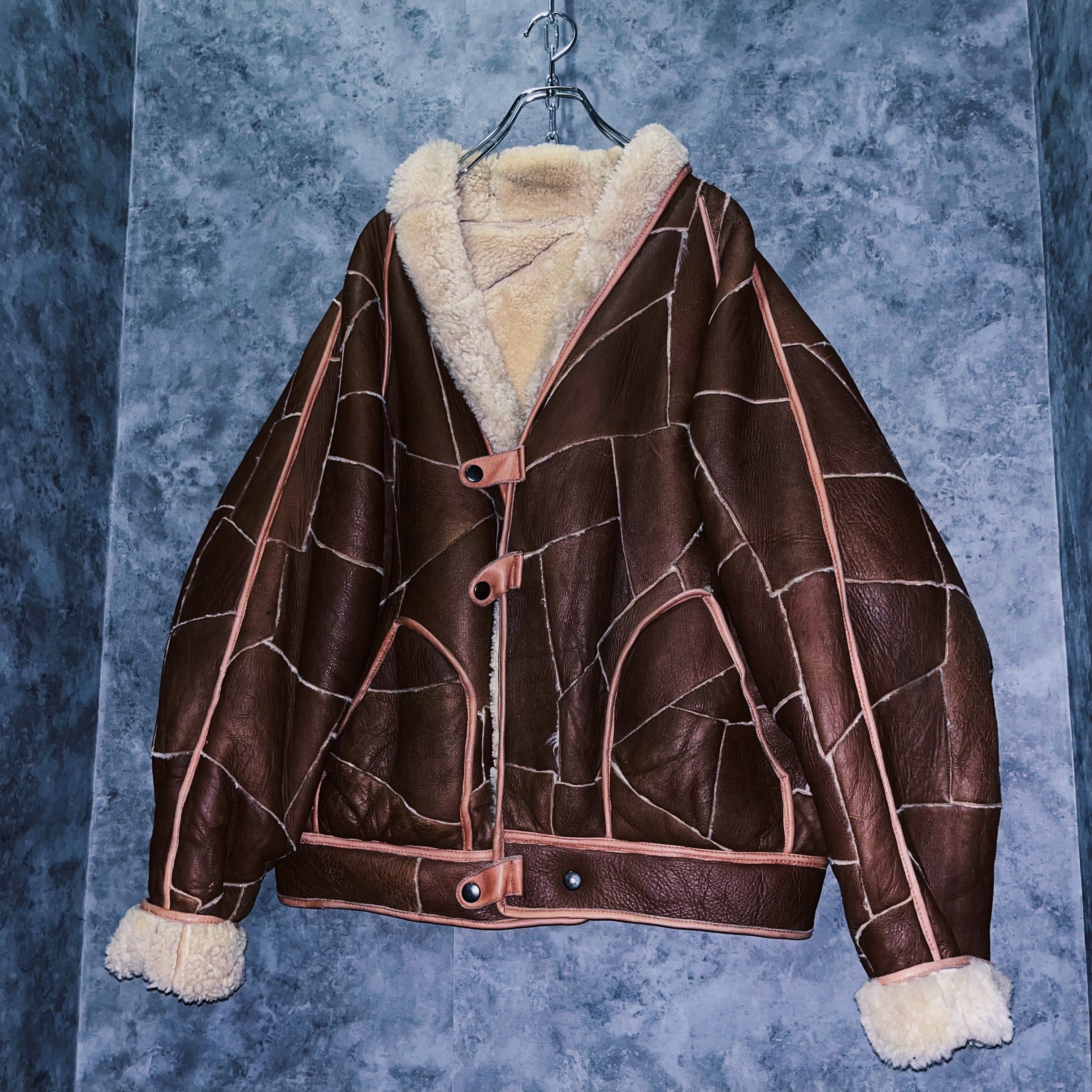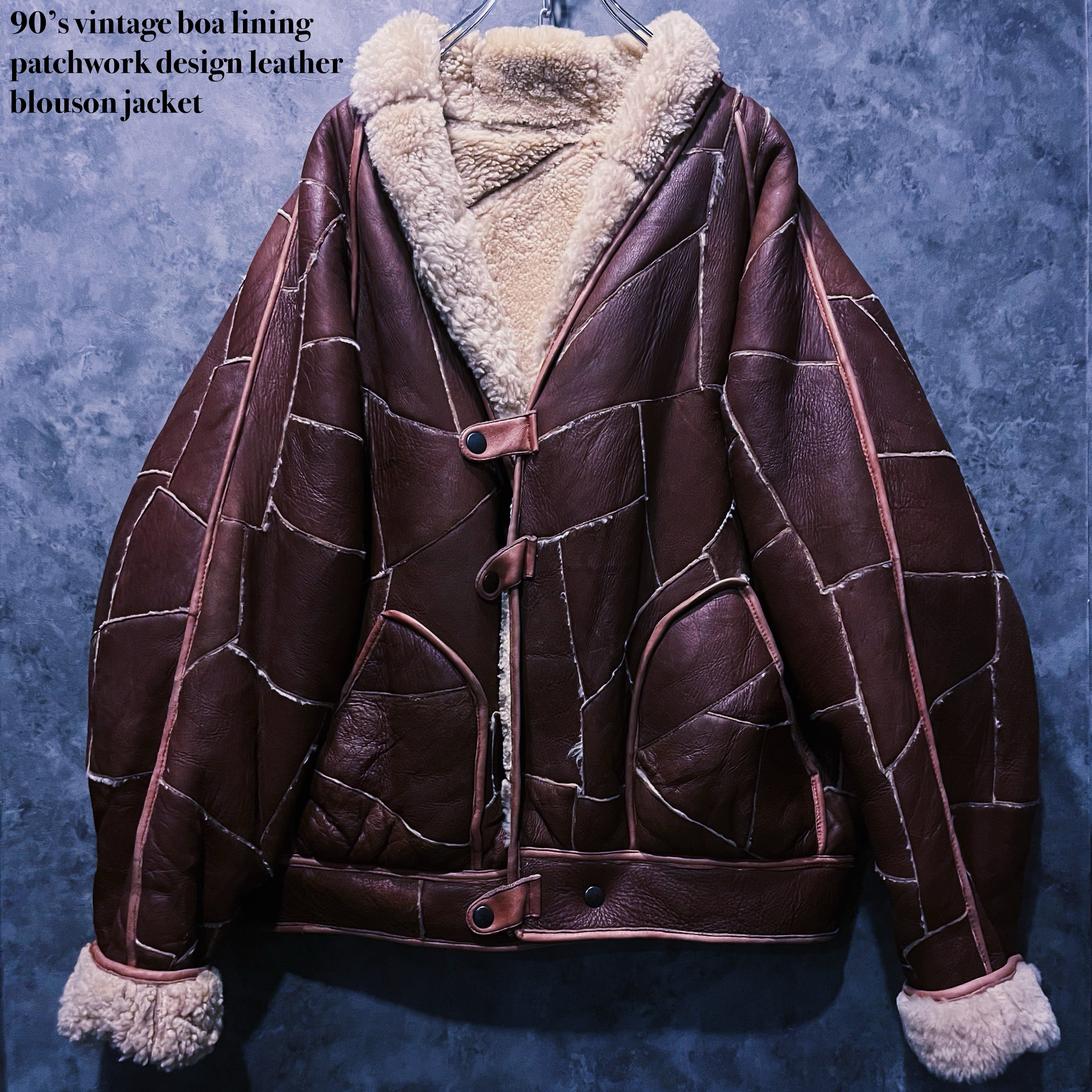 90’sヴィンテージボアライニングパッチワークデザインレザーブルゾンジャケット