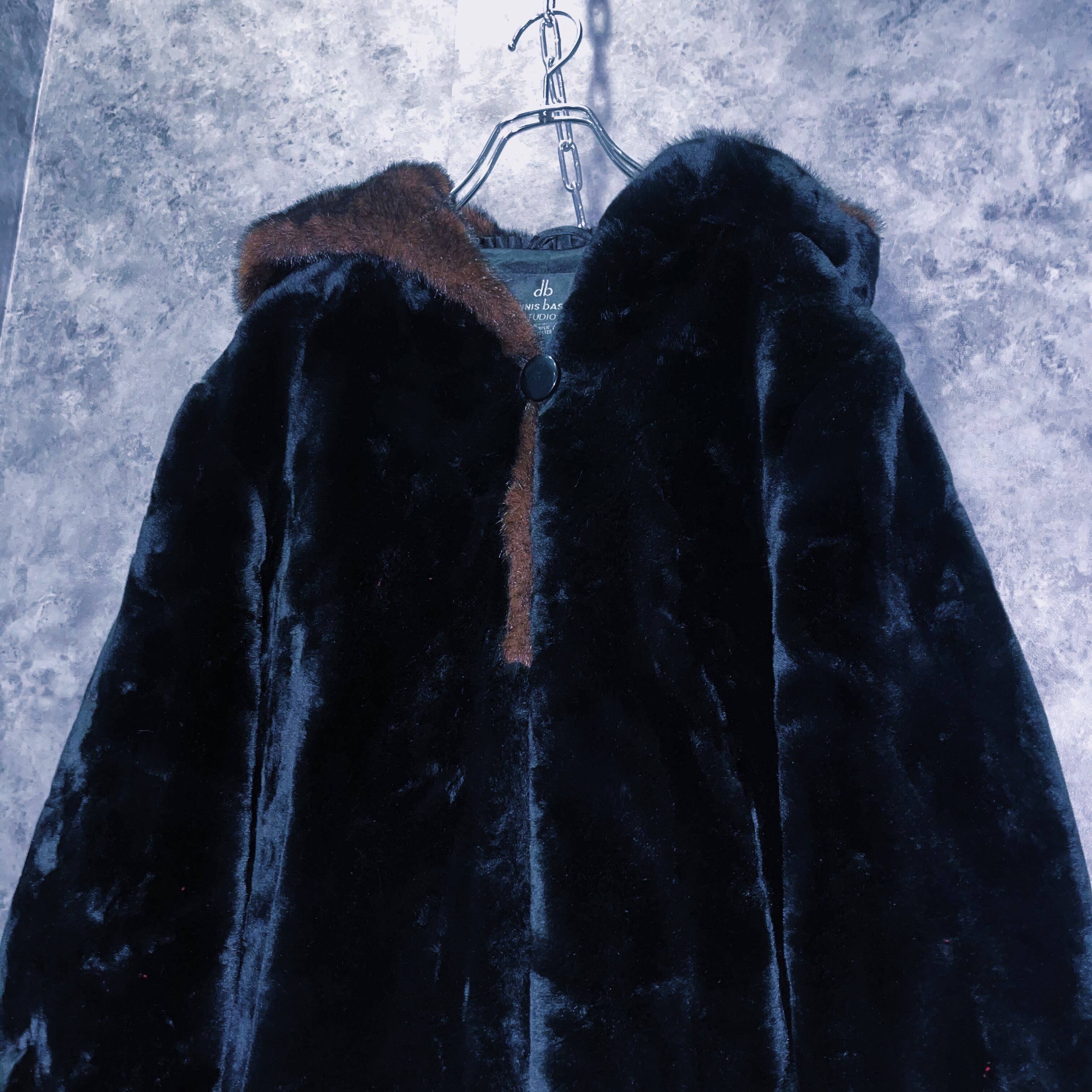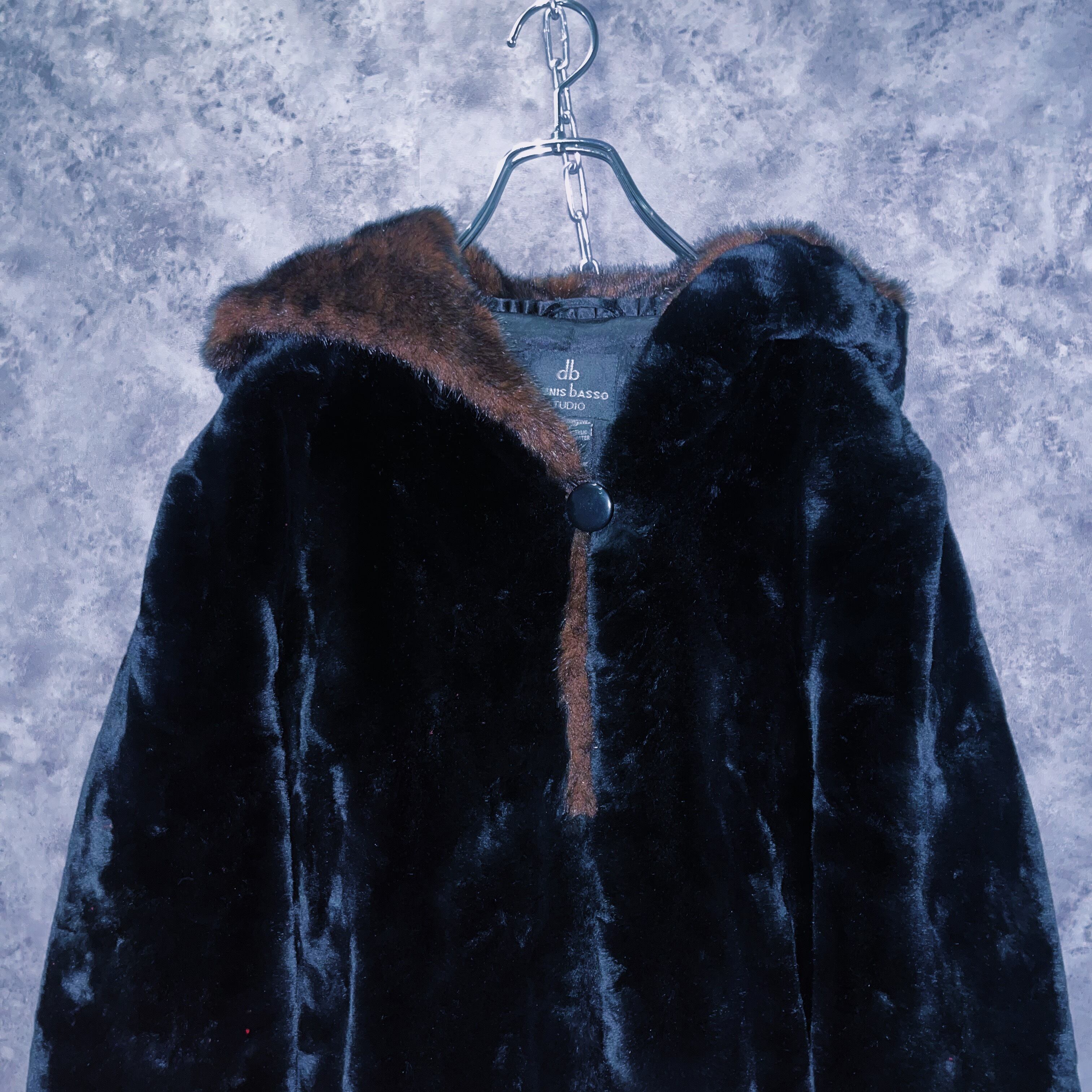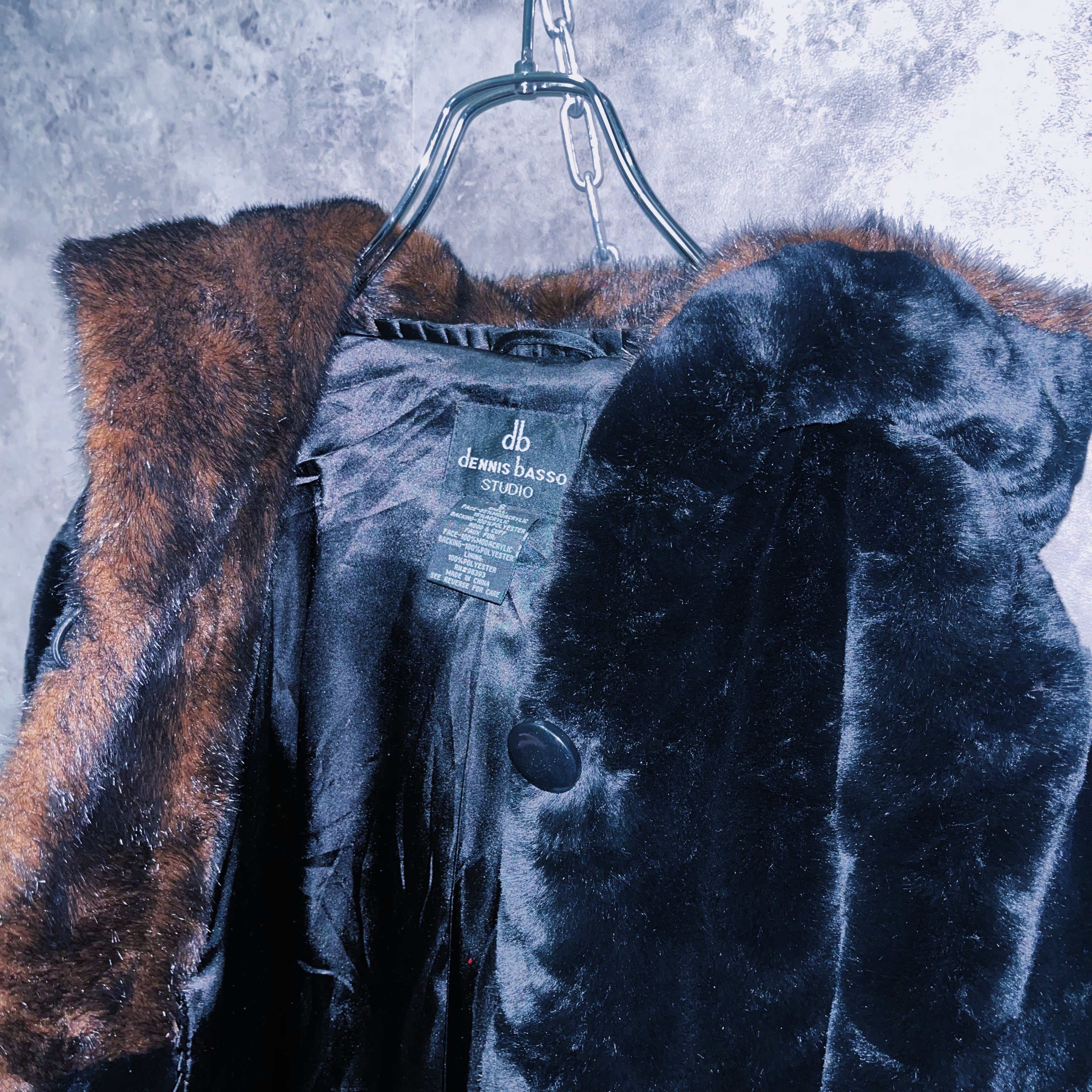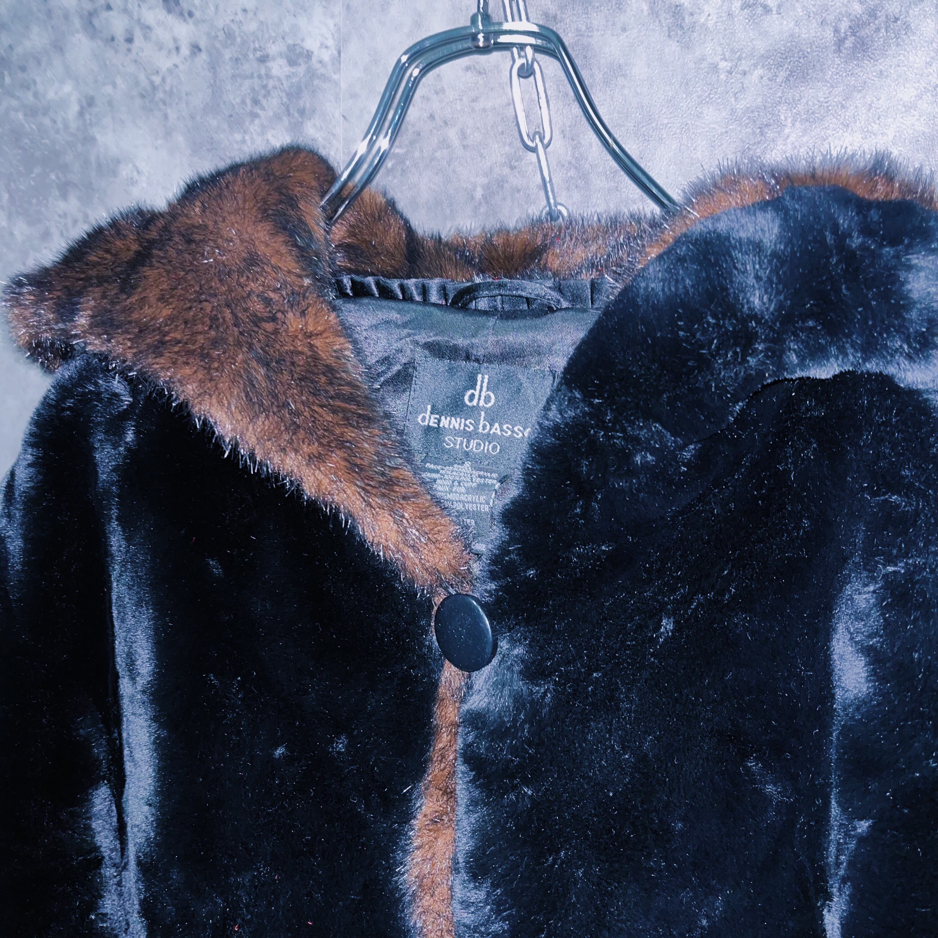 アンダーグラウンドな雰囲気をありありと感じるブラックカラーのファーに、ブラウンファーをスイッチングしたことでグッとゴージャスな仕上がりになっており、ファーの特有の光沢と相まって上品なデザイン。