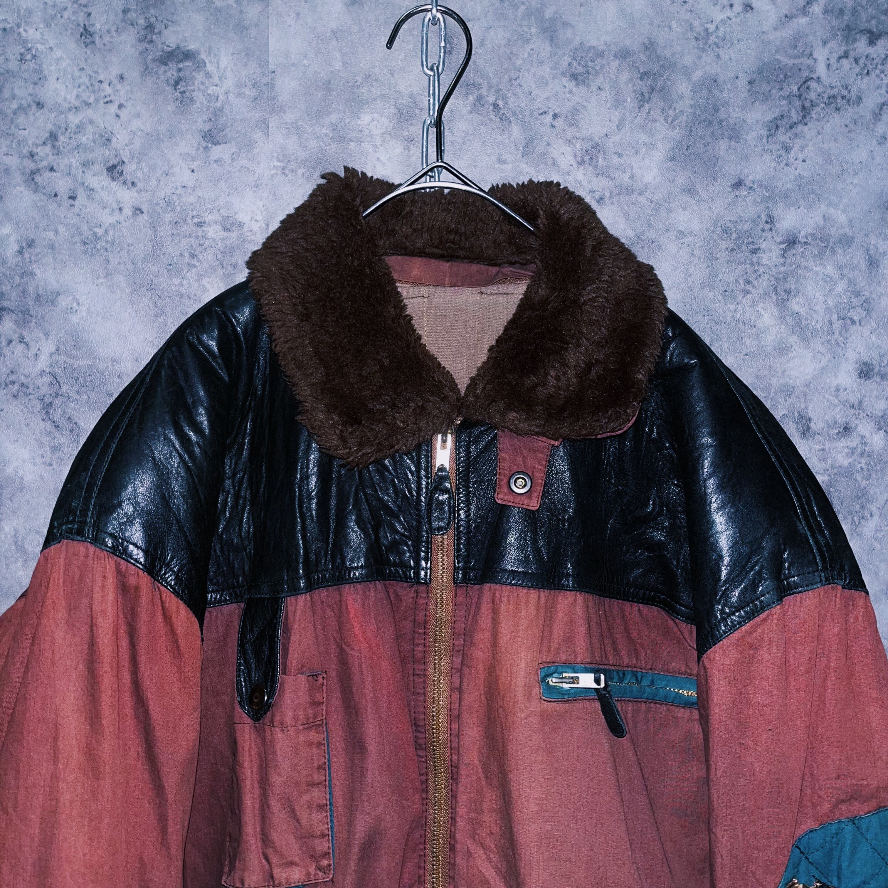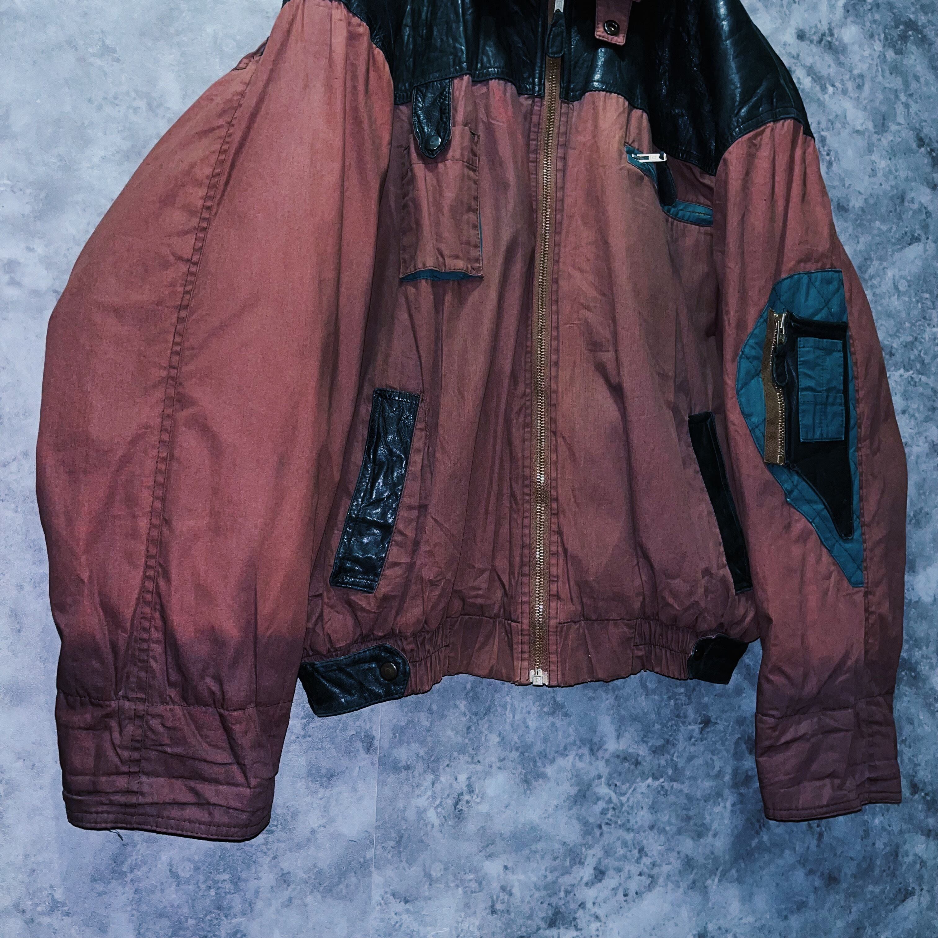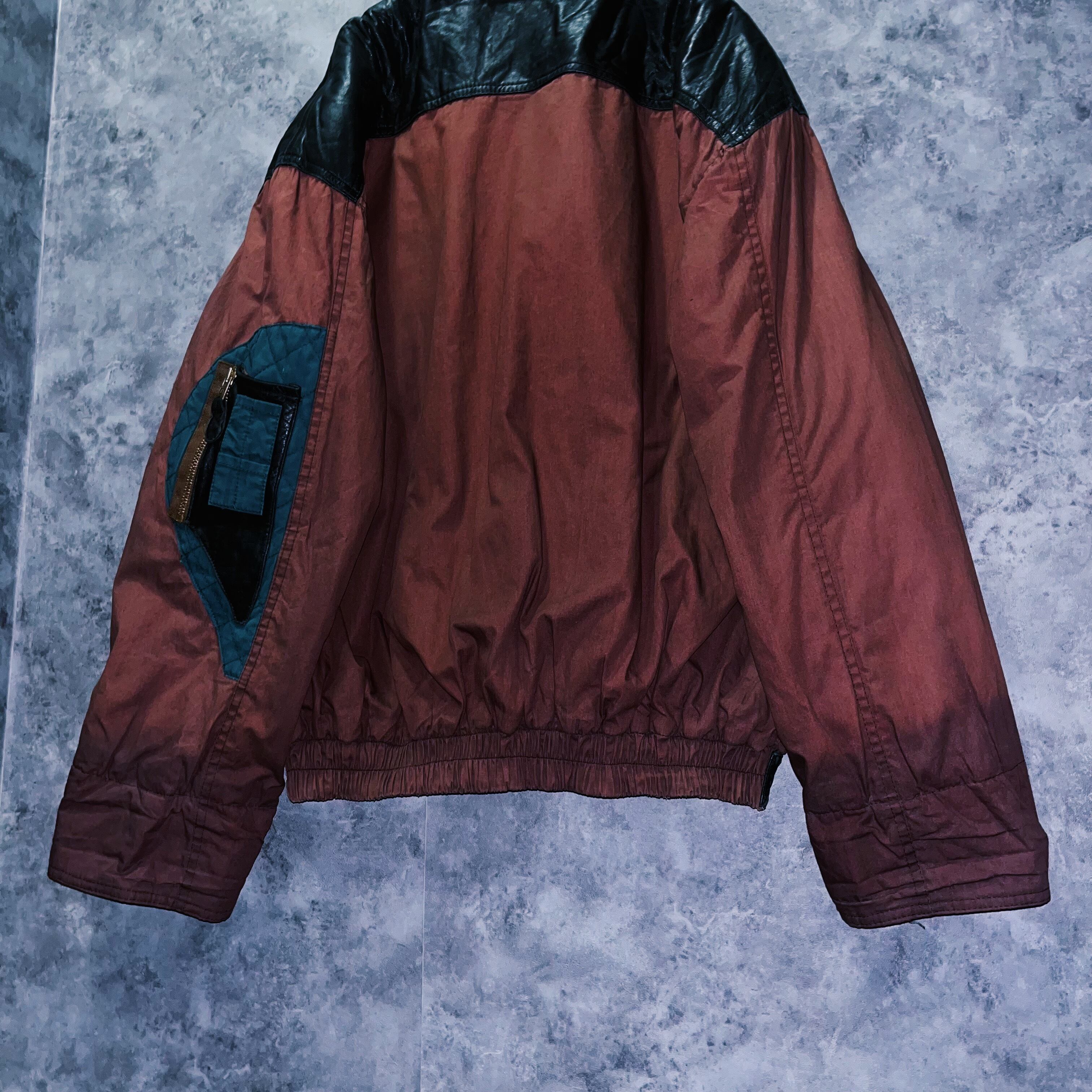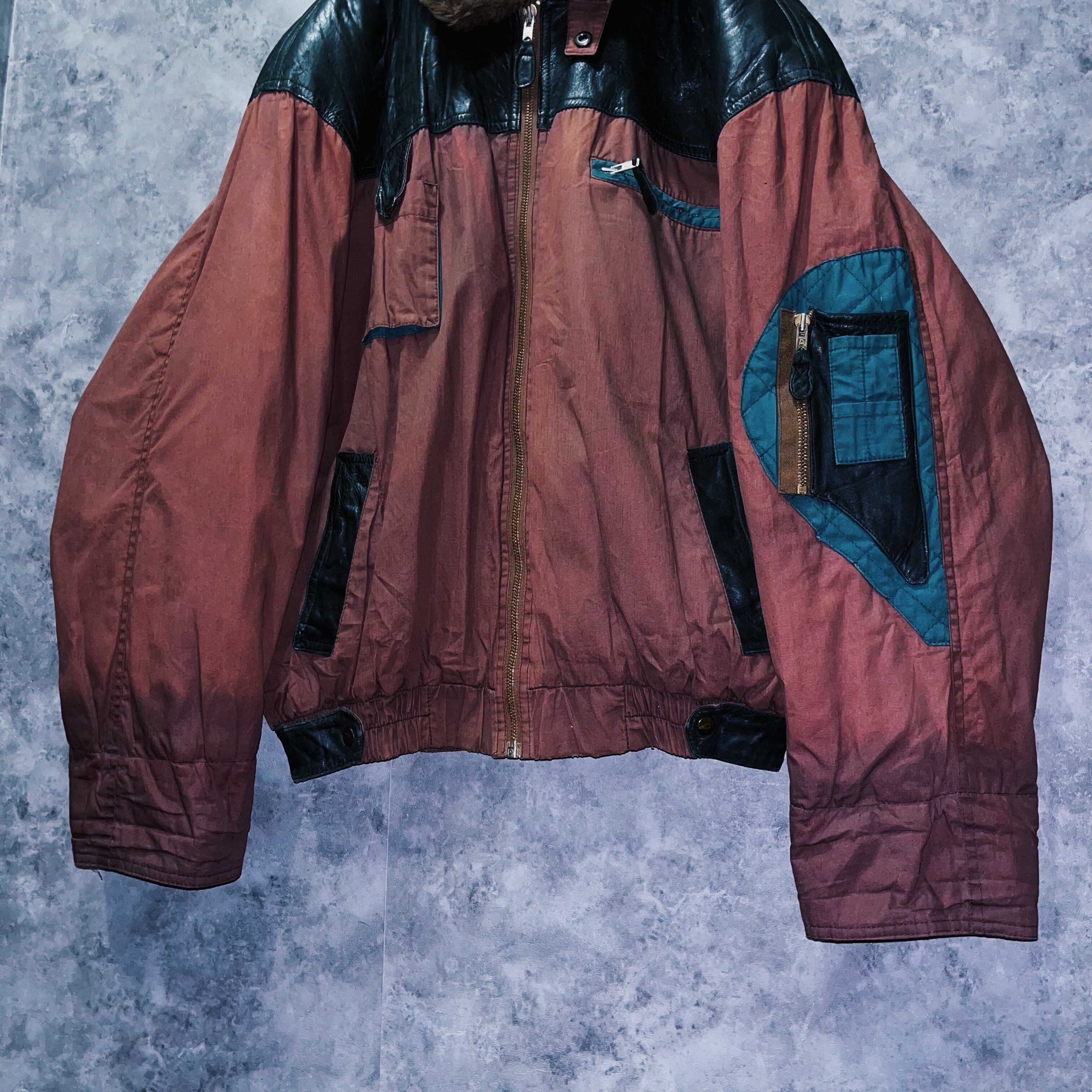 ヴィンテージレザーショルダースイッチングデザインナイロンジャケット