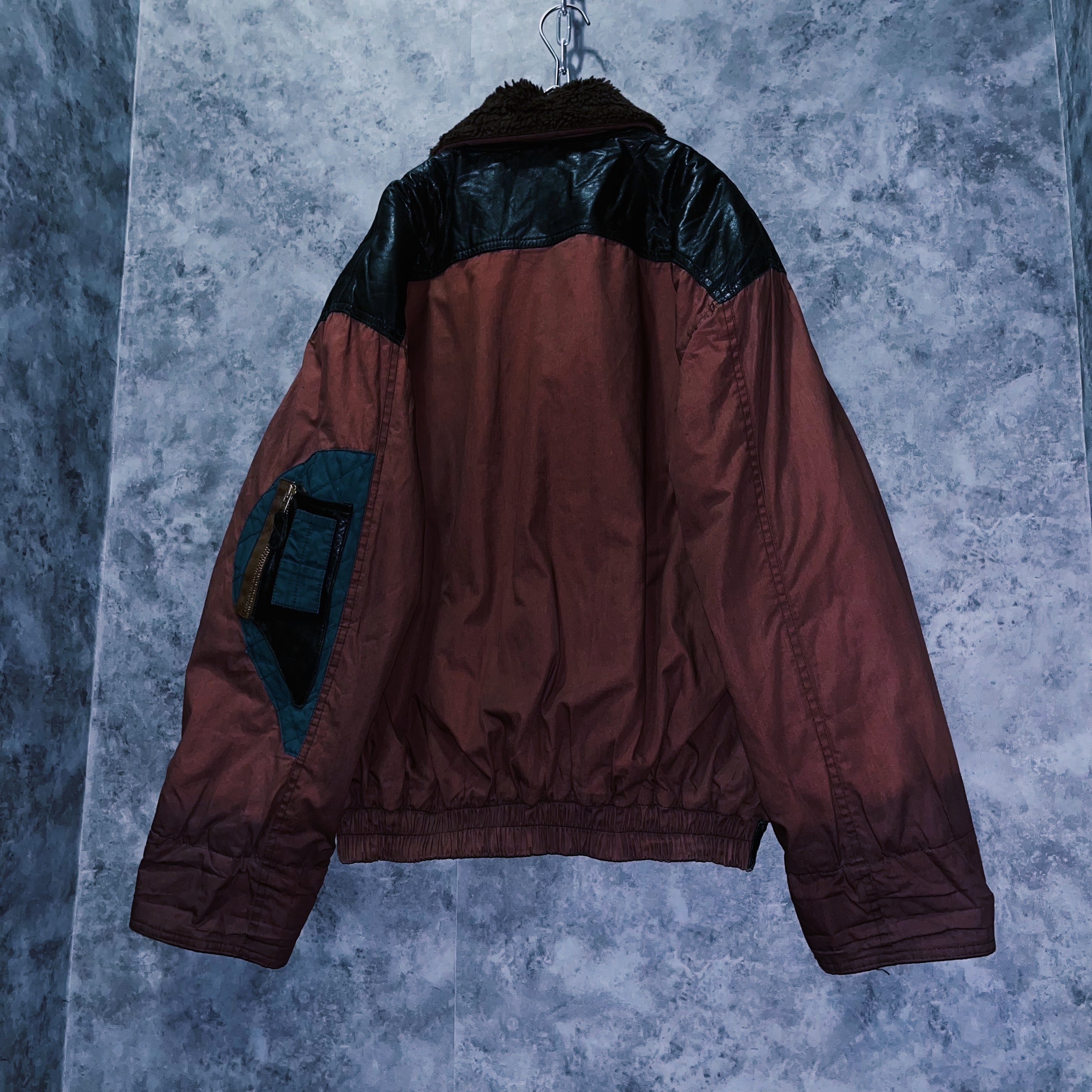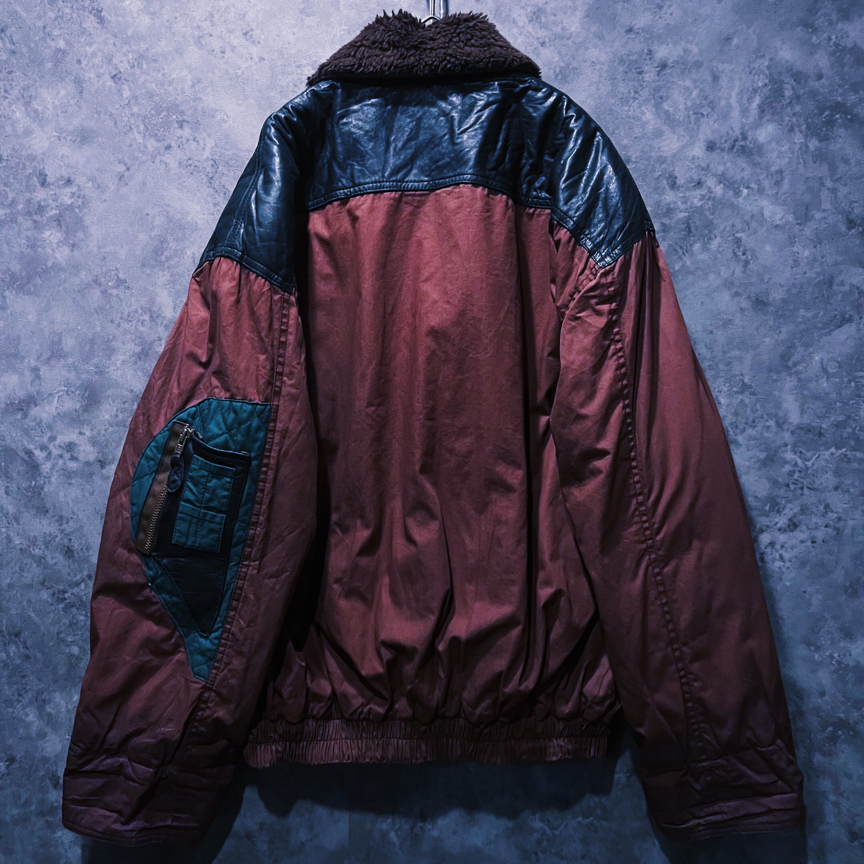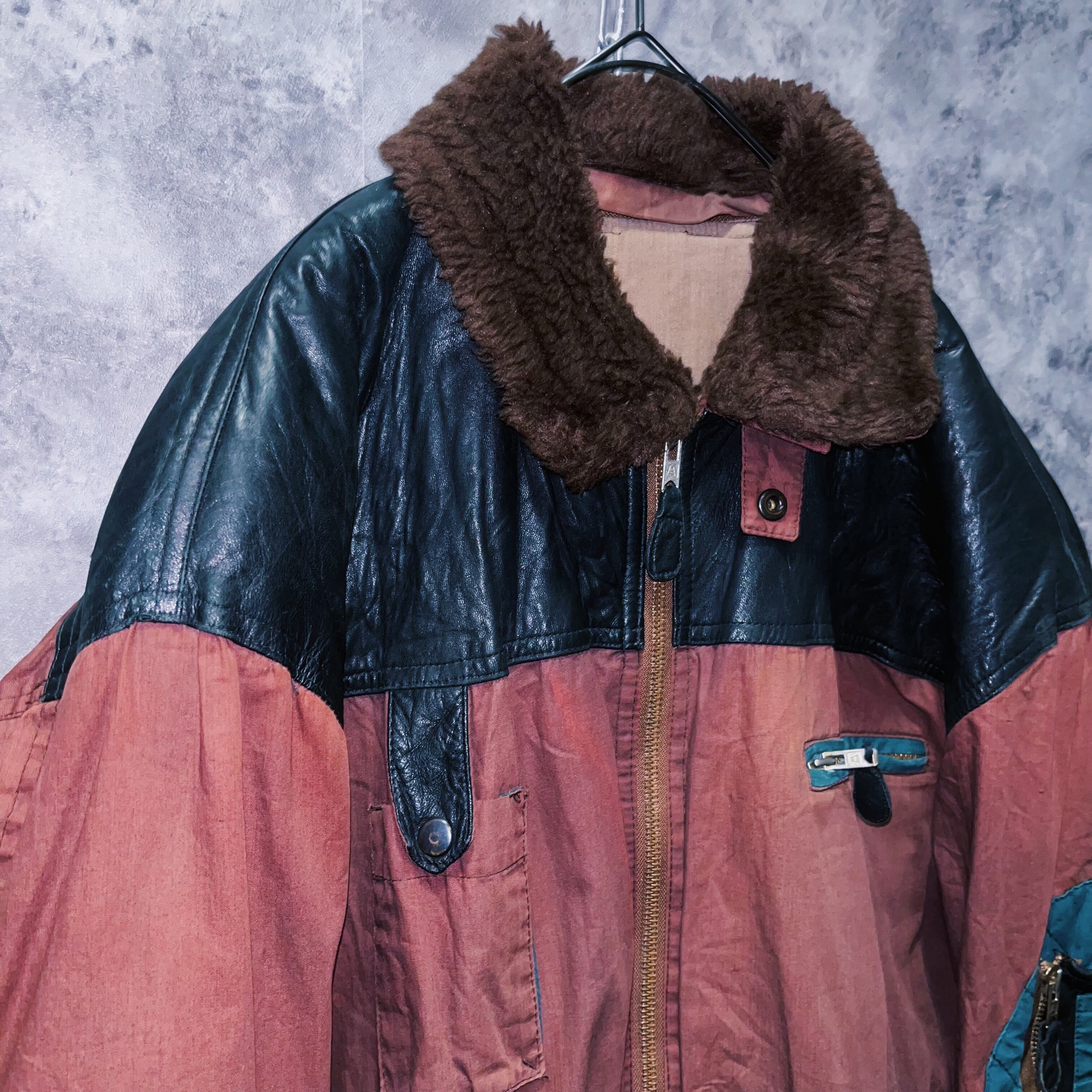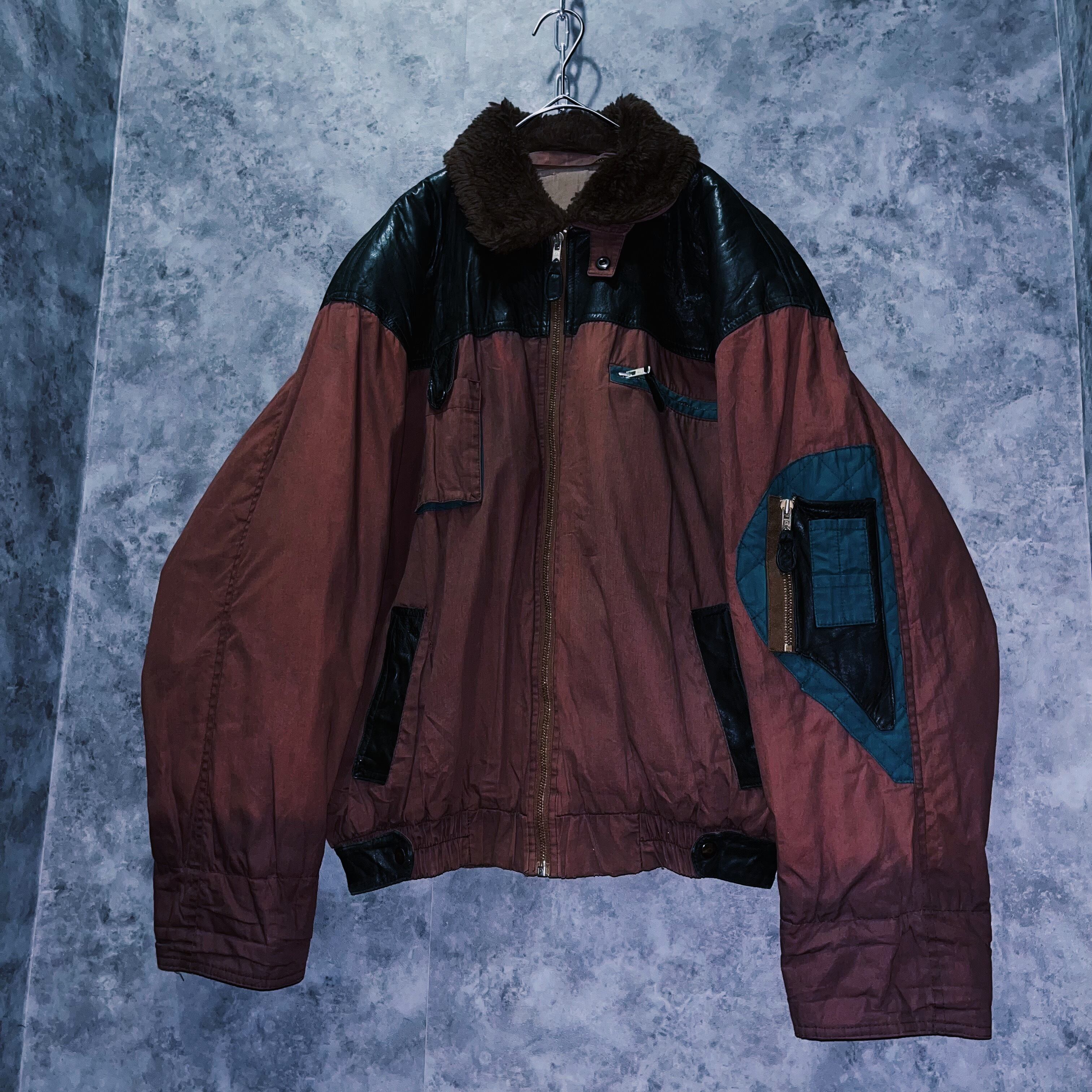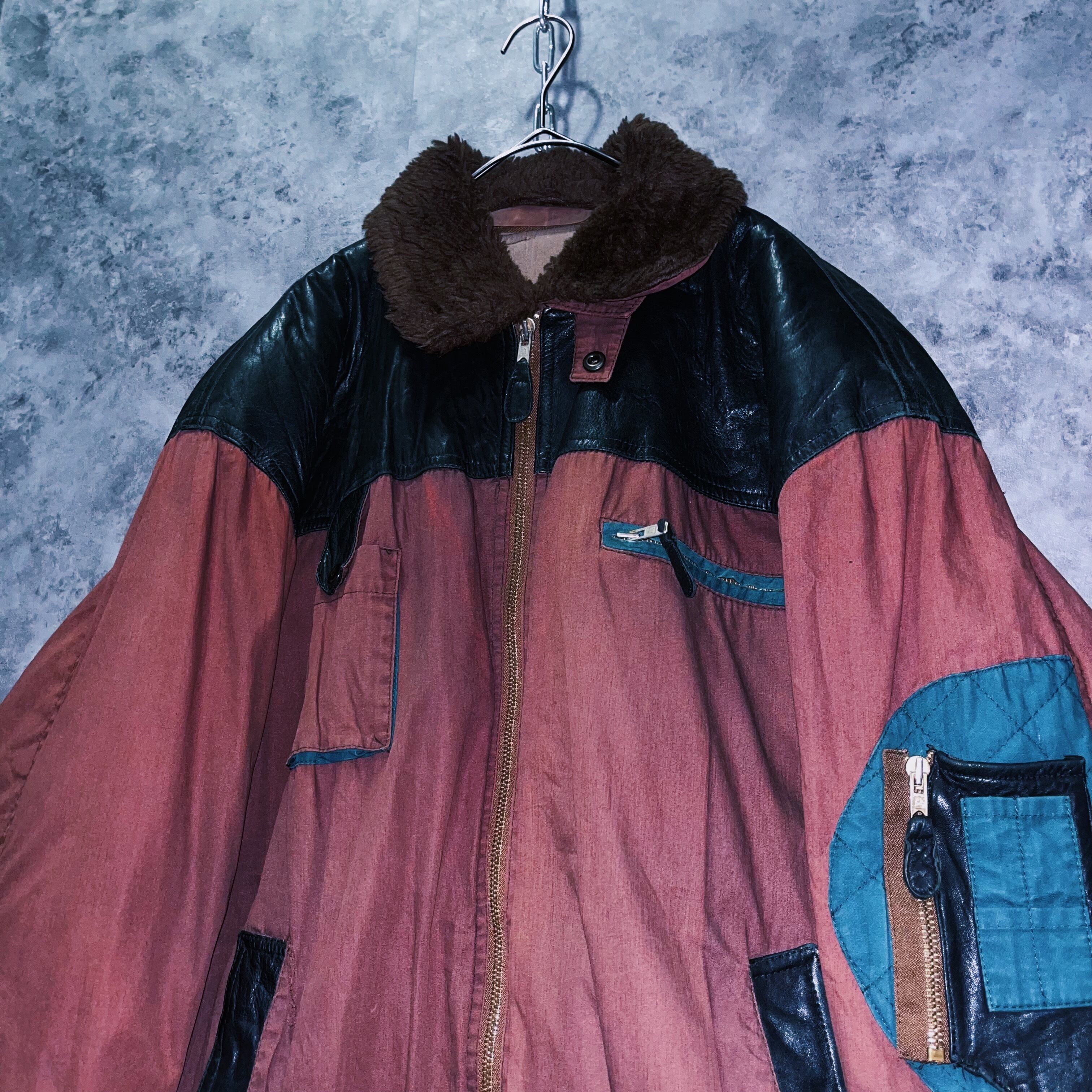 ヴィンテージレザーショルダースイッチングデザインナイロンジャケット