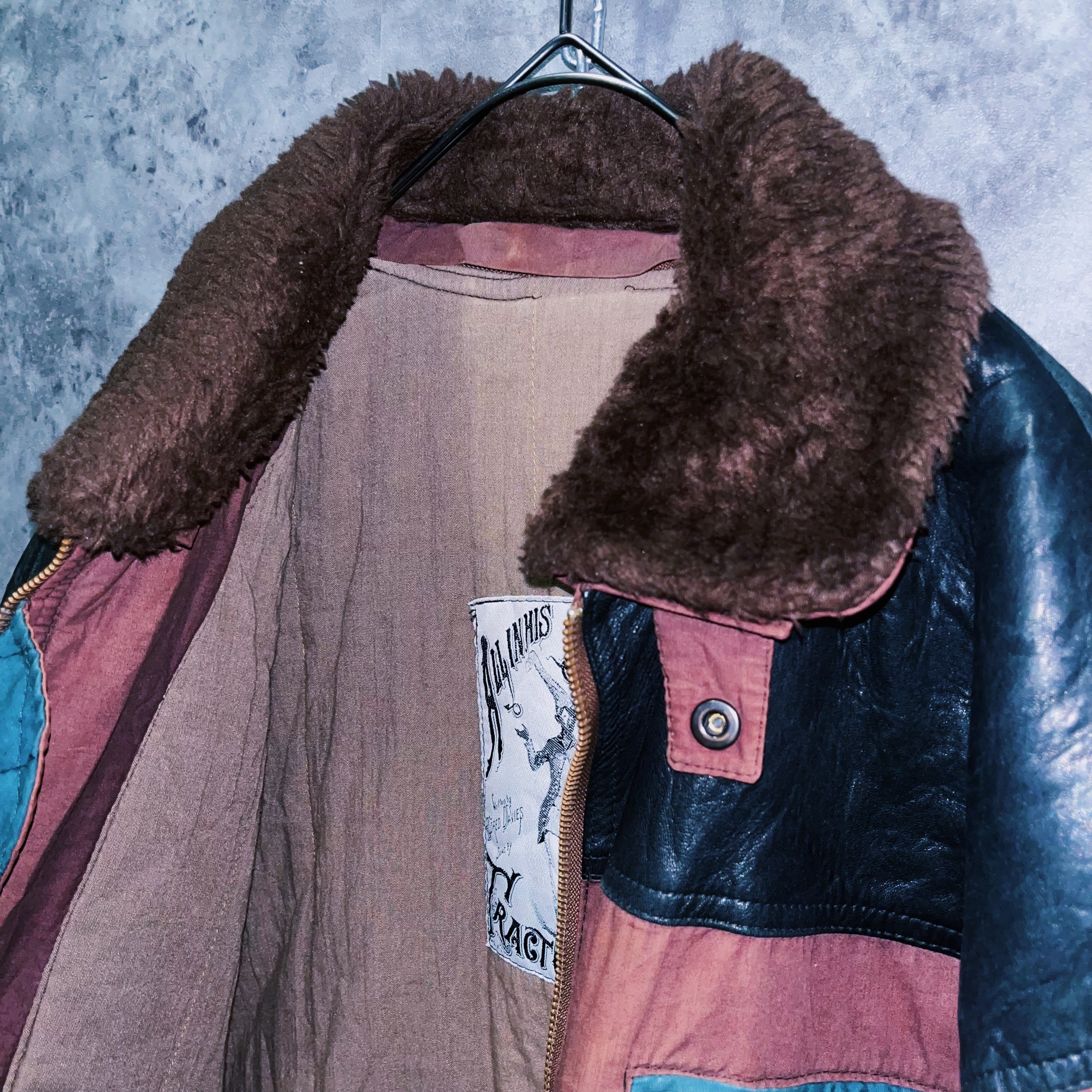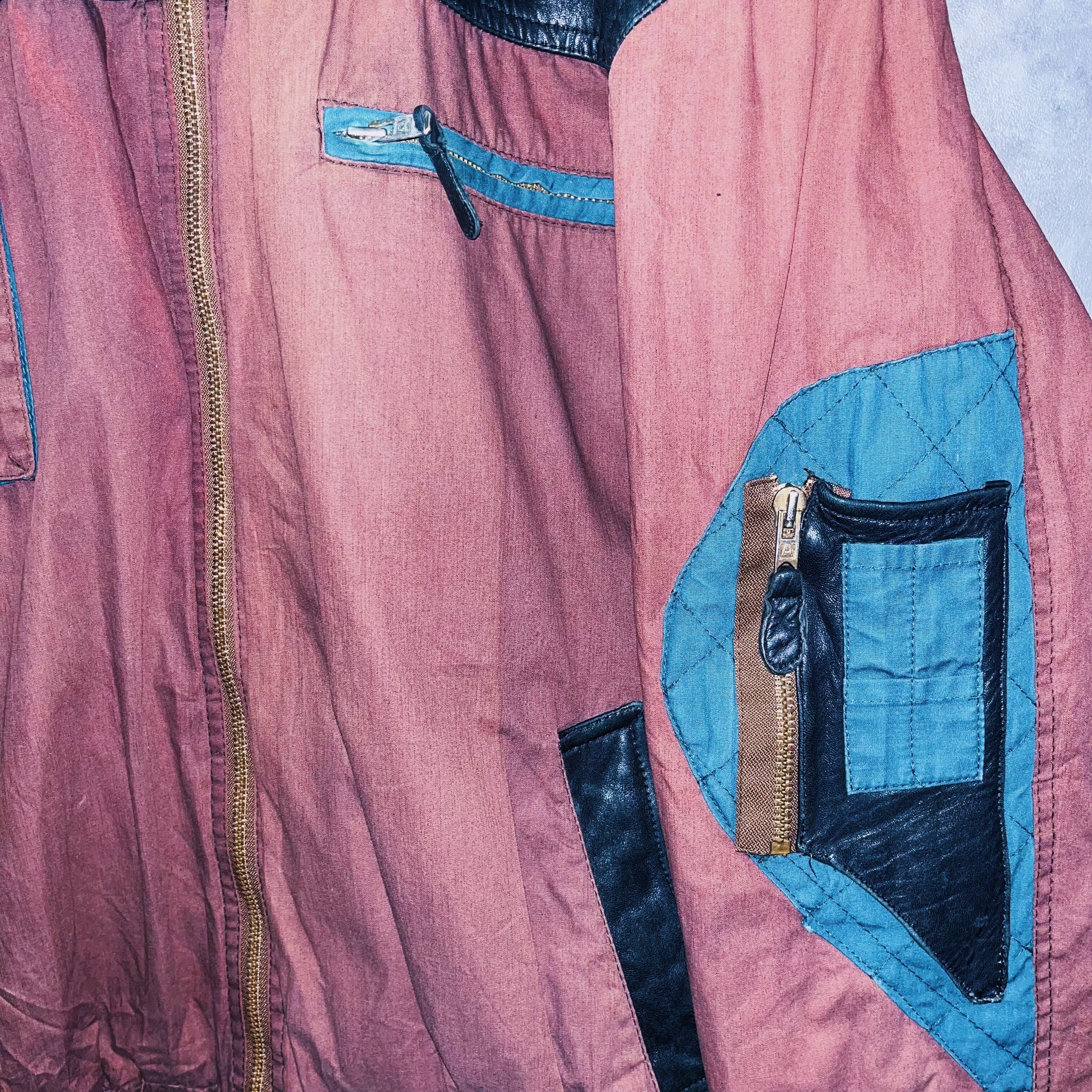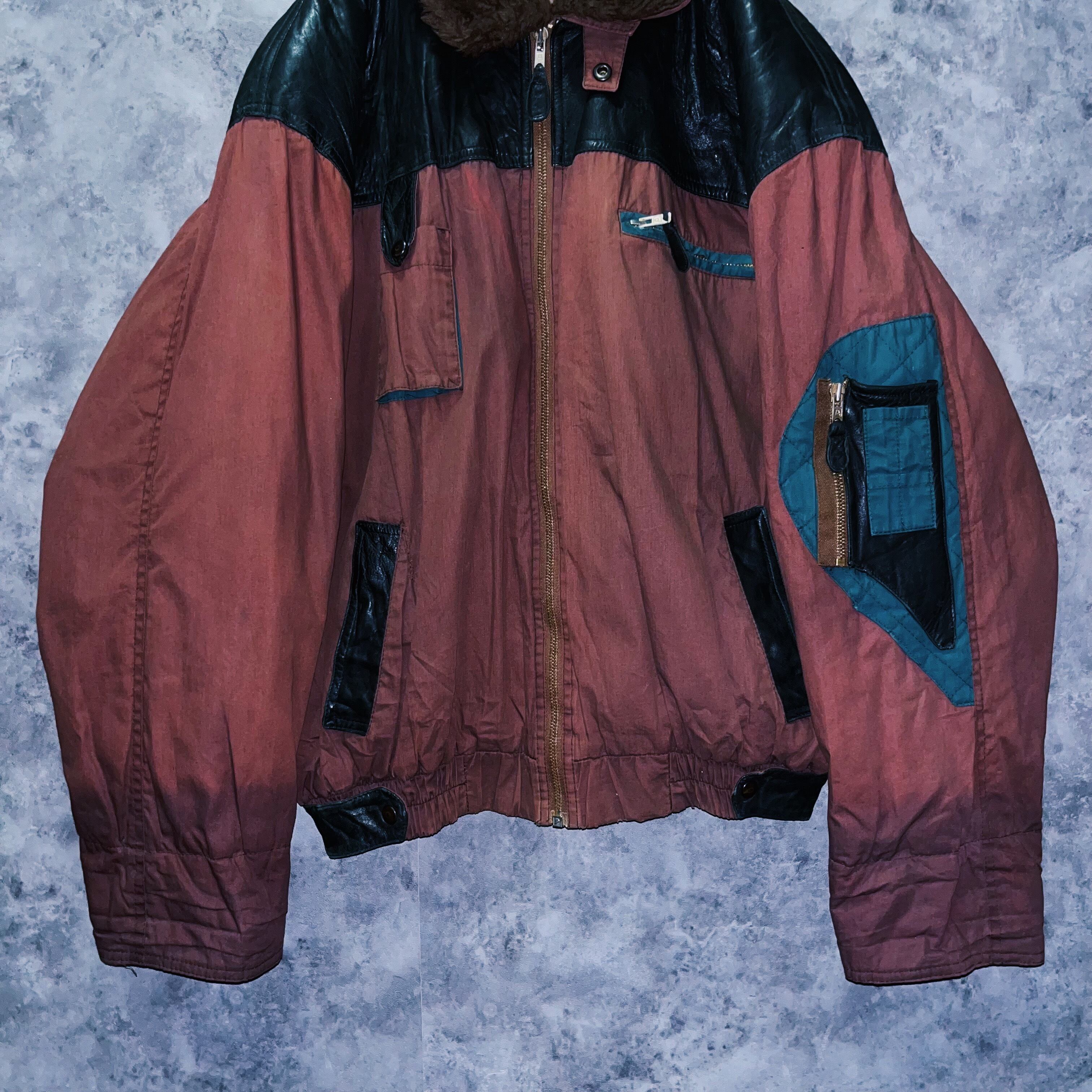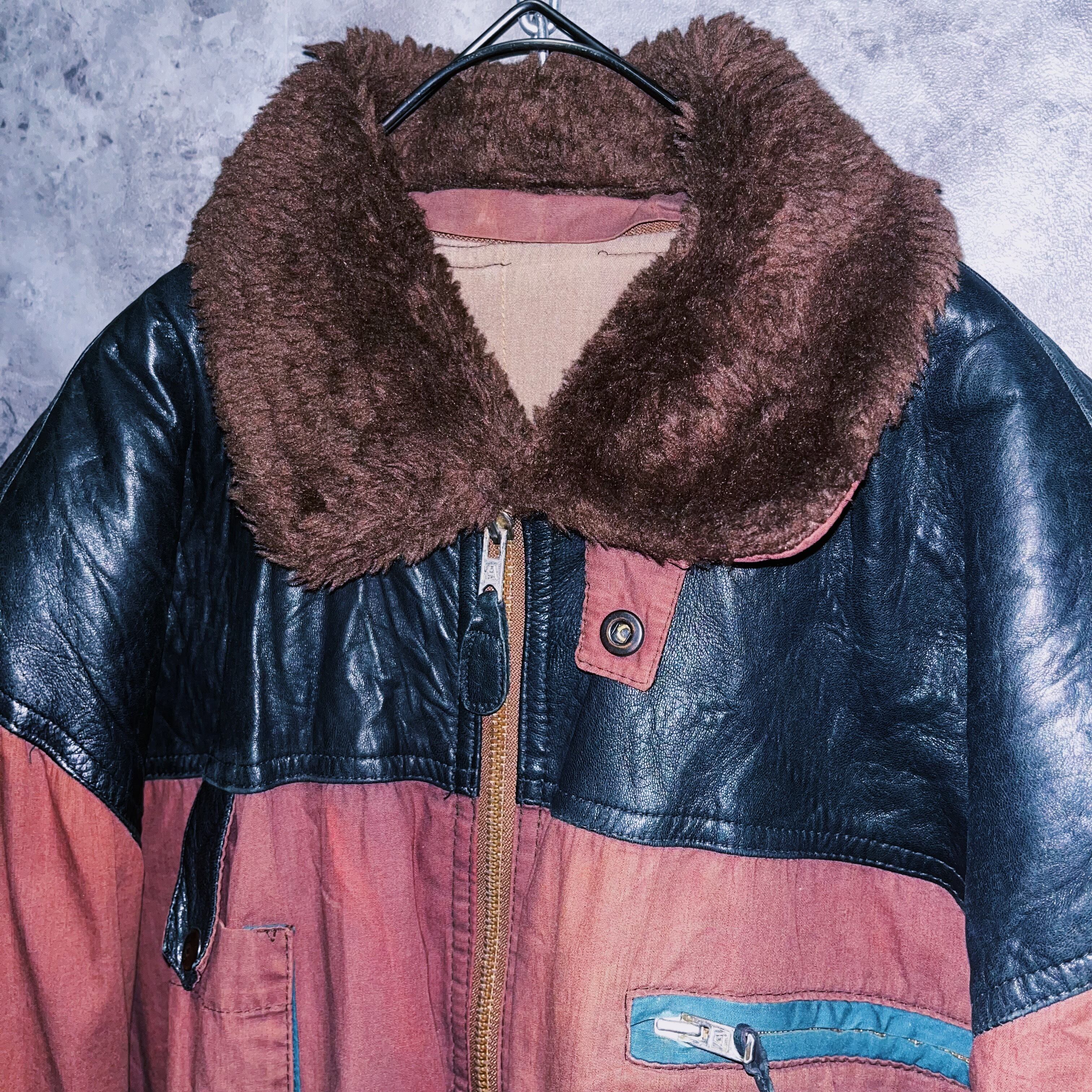 ヴィンテージレザーショルダースイッチングデザインナイロンジャケット