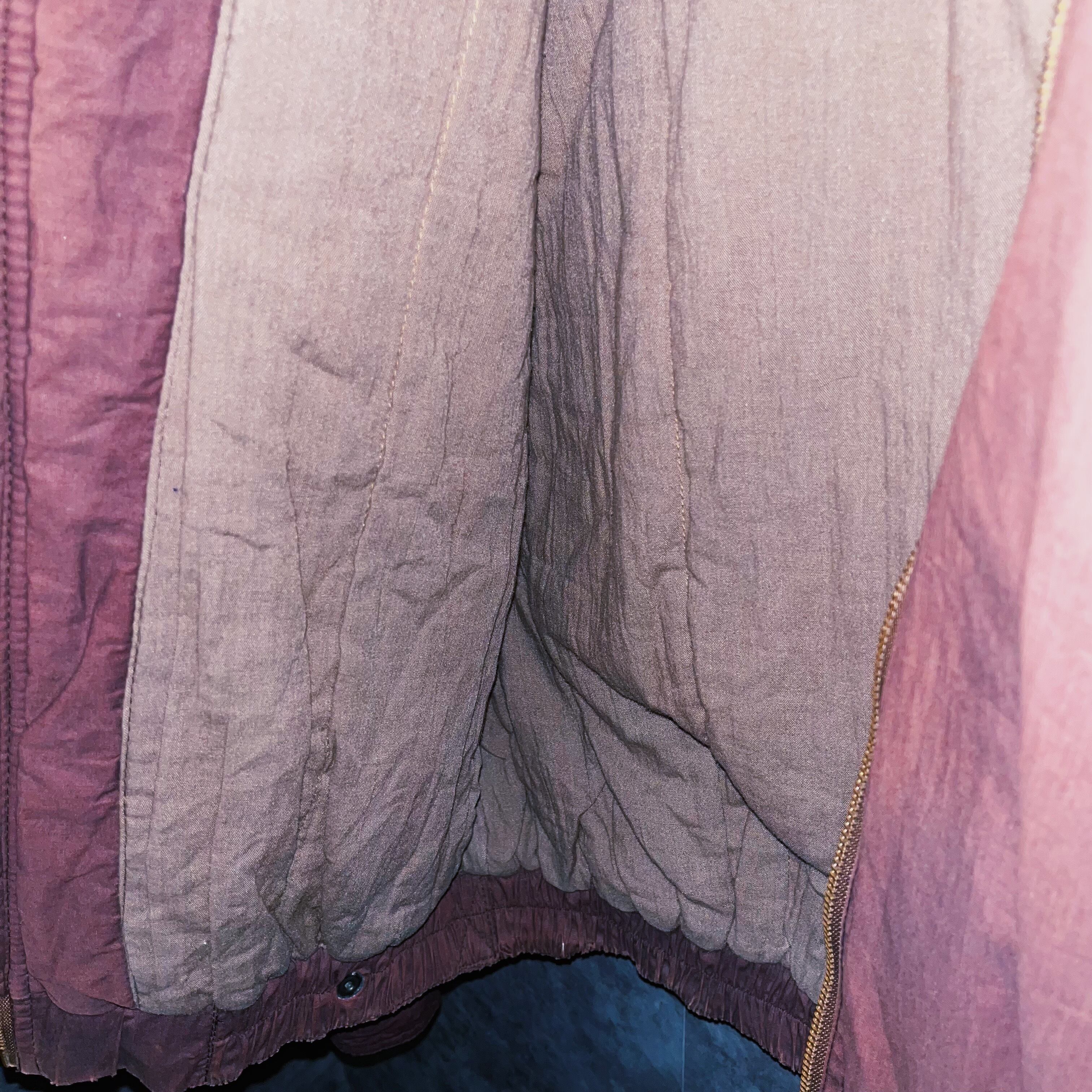 上品なカージナルレッドカラーをメインに、肩やポケットにレザースイッチングを施したことでギラっと光るレザーが特徴的な一枚。