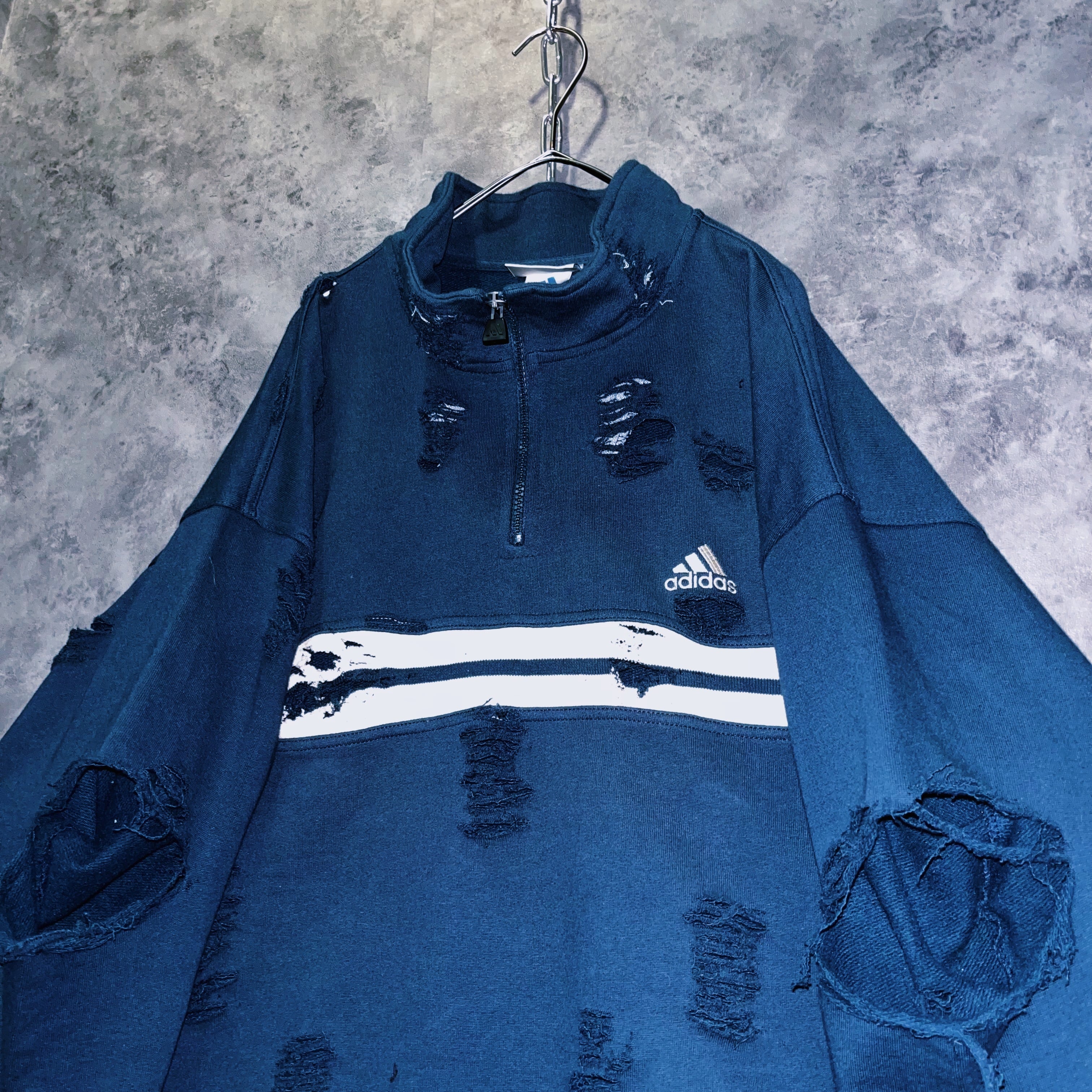 【doppio】90’s vintage “adidas” performance logo design boro custom half zip sweat pullover