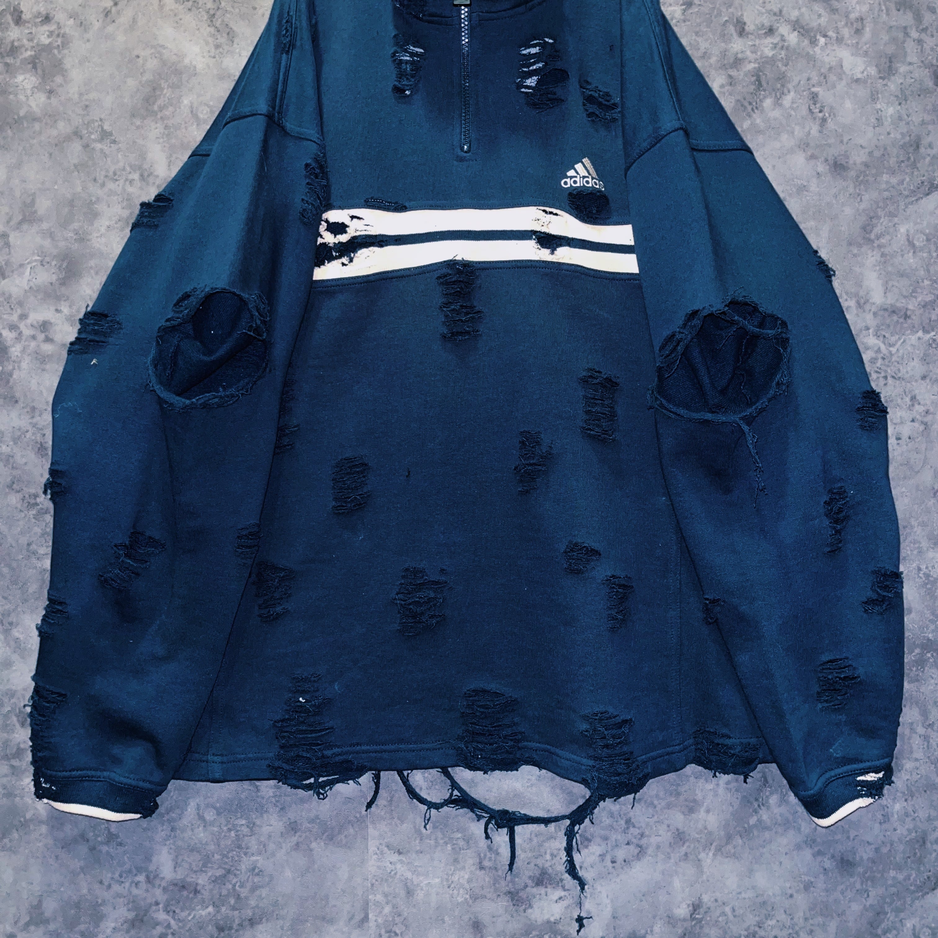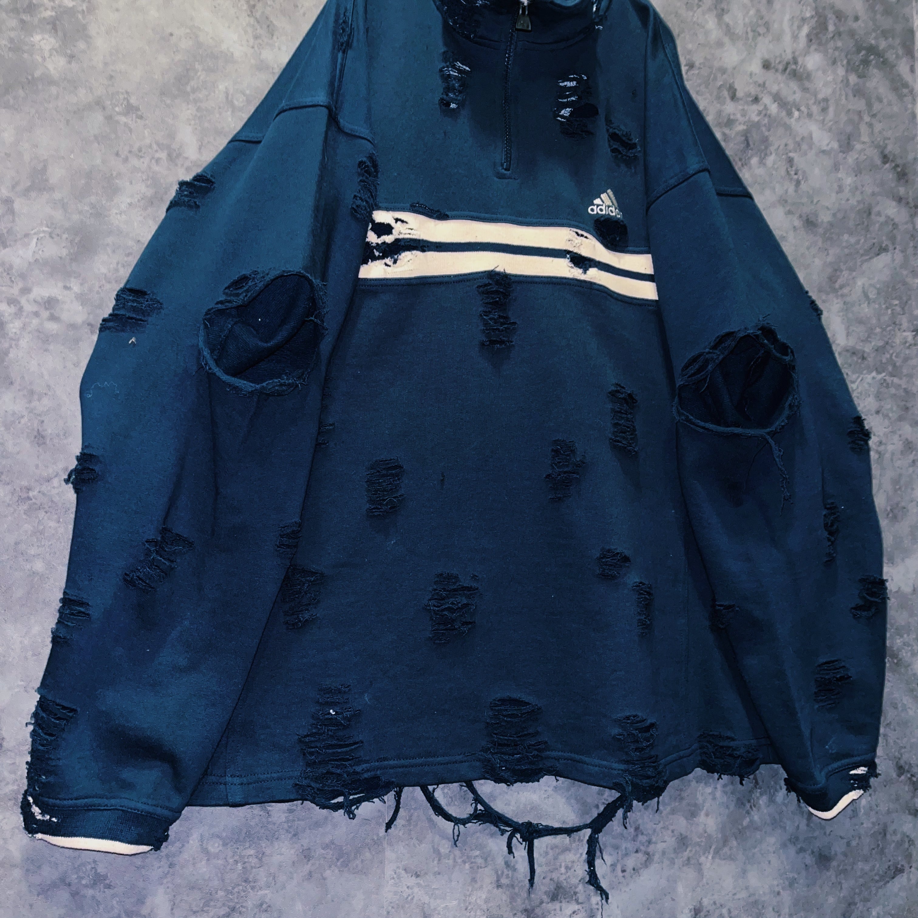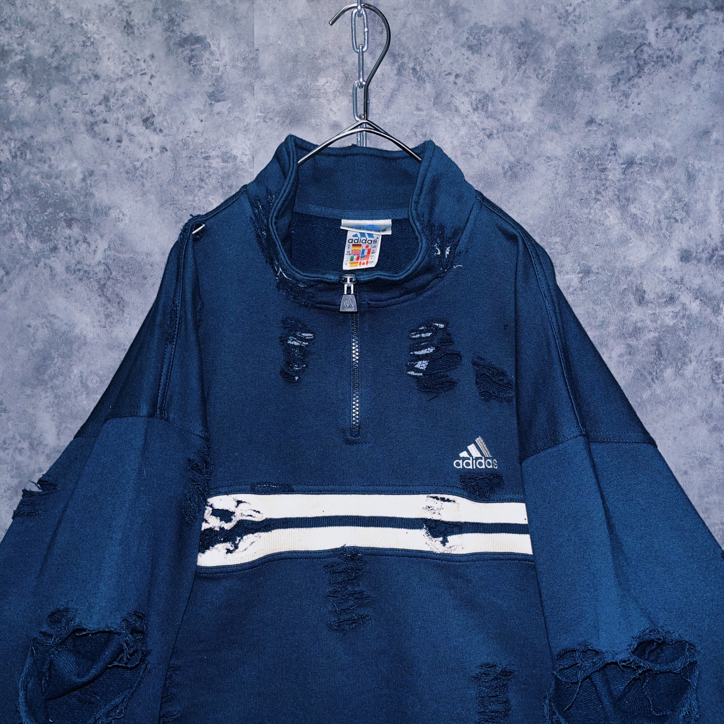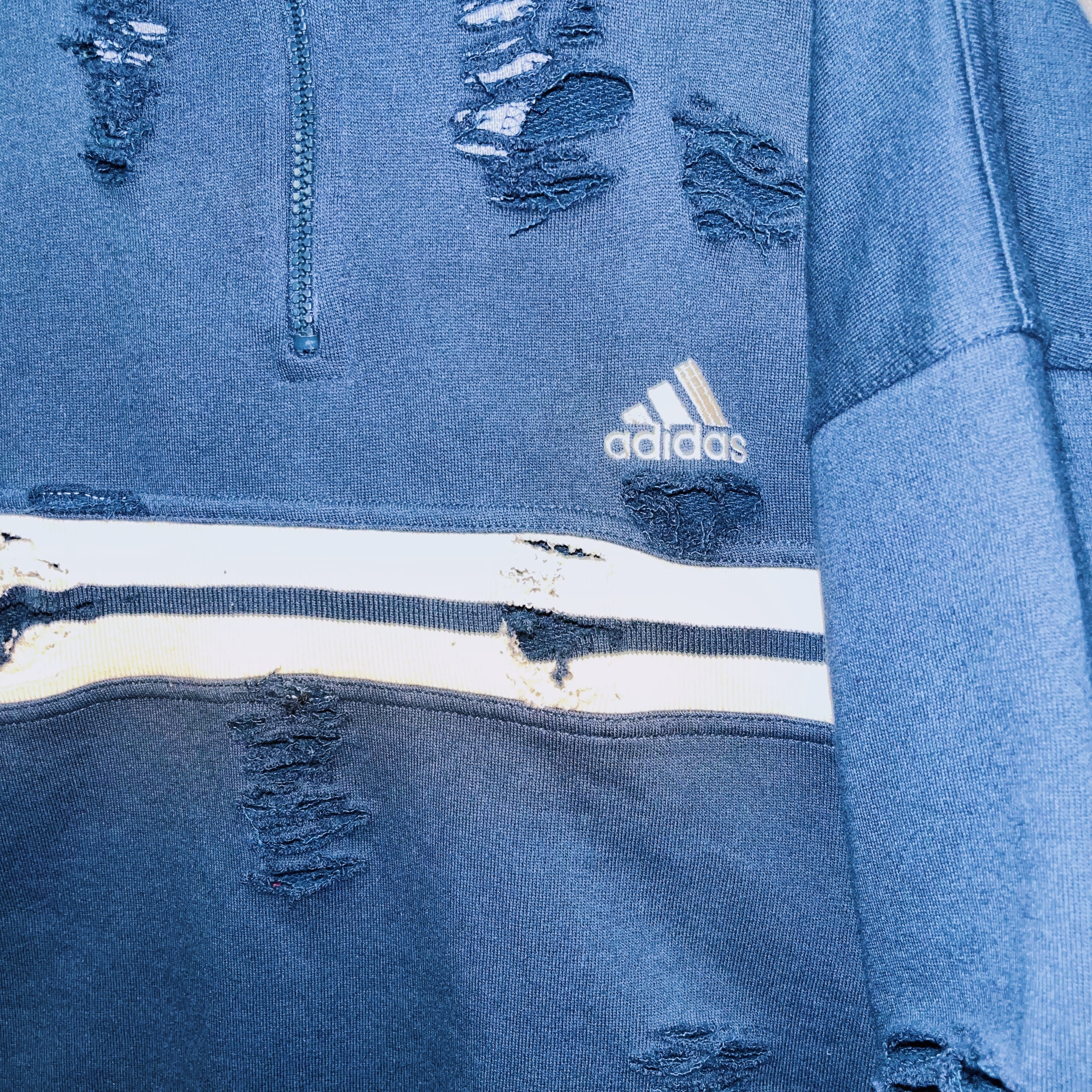 90’s vintage “adidas” performance logo design boro custom half zip sweat pullover