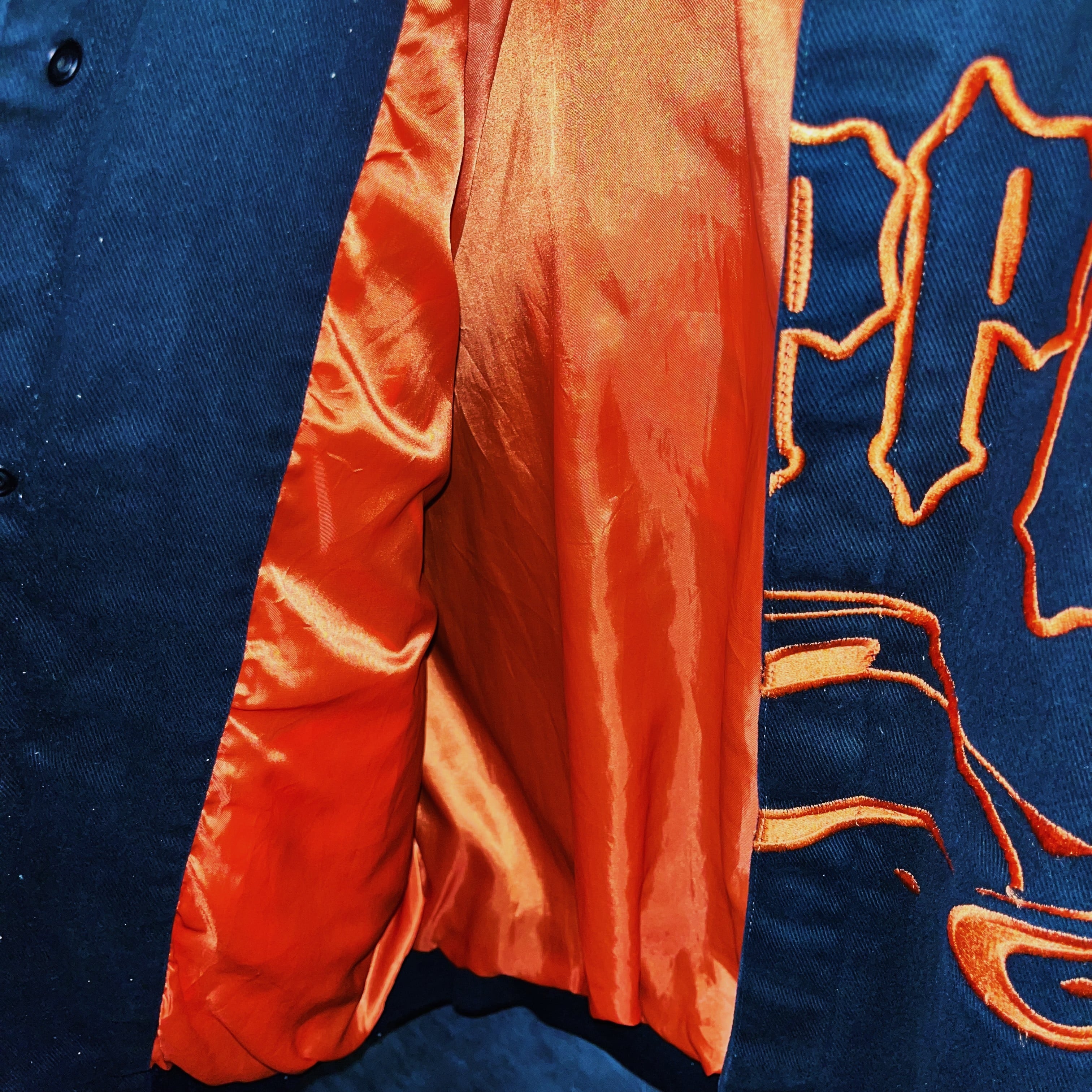 バックにも大きくロゴデザインが施され、全方向死角なしのハイデザイン。アングラな印象を使い、グランジ感のあるコーデにサッと羽織るだけでさらに存在感を出せる逸品。