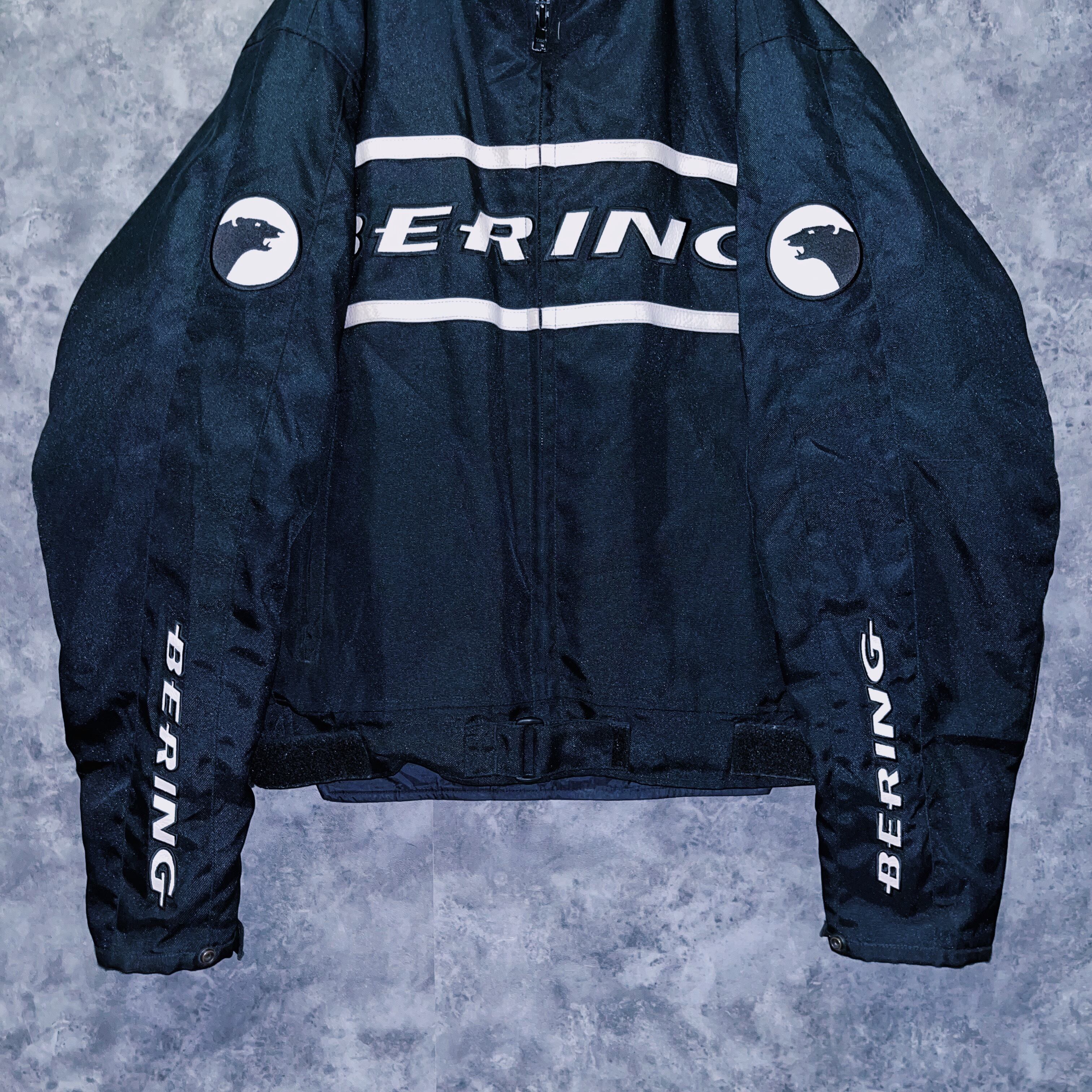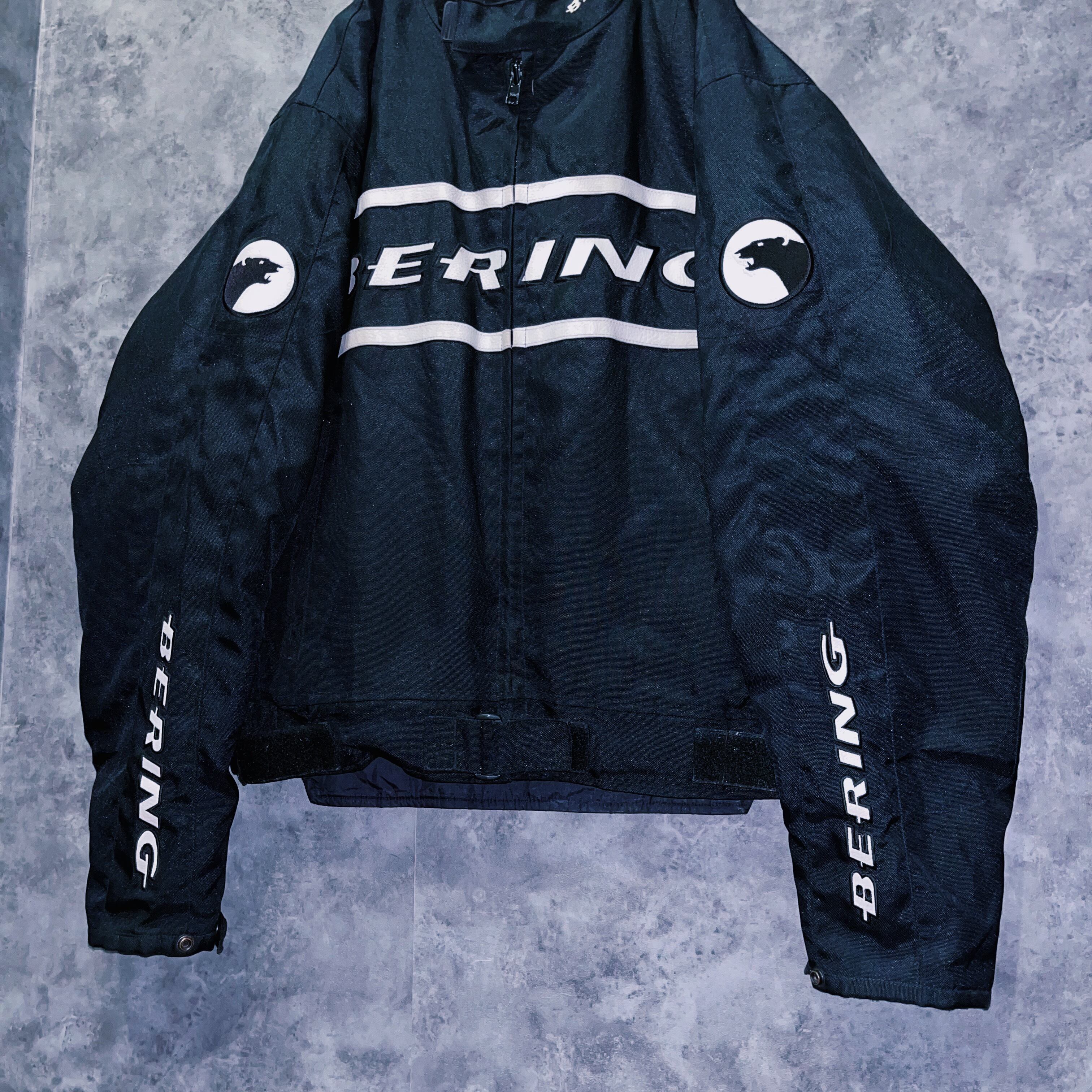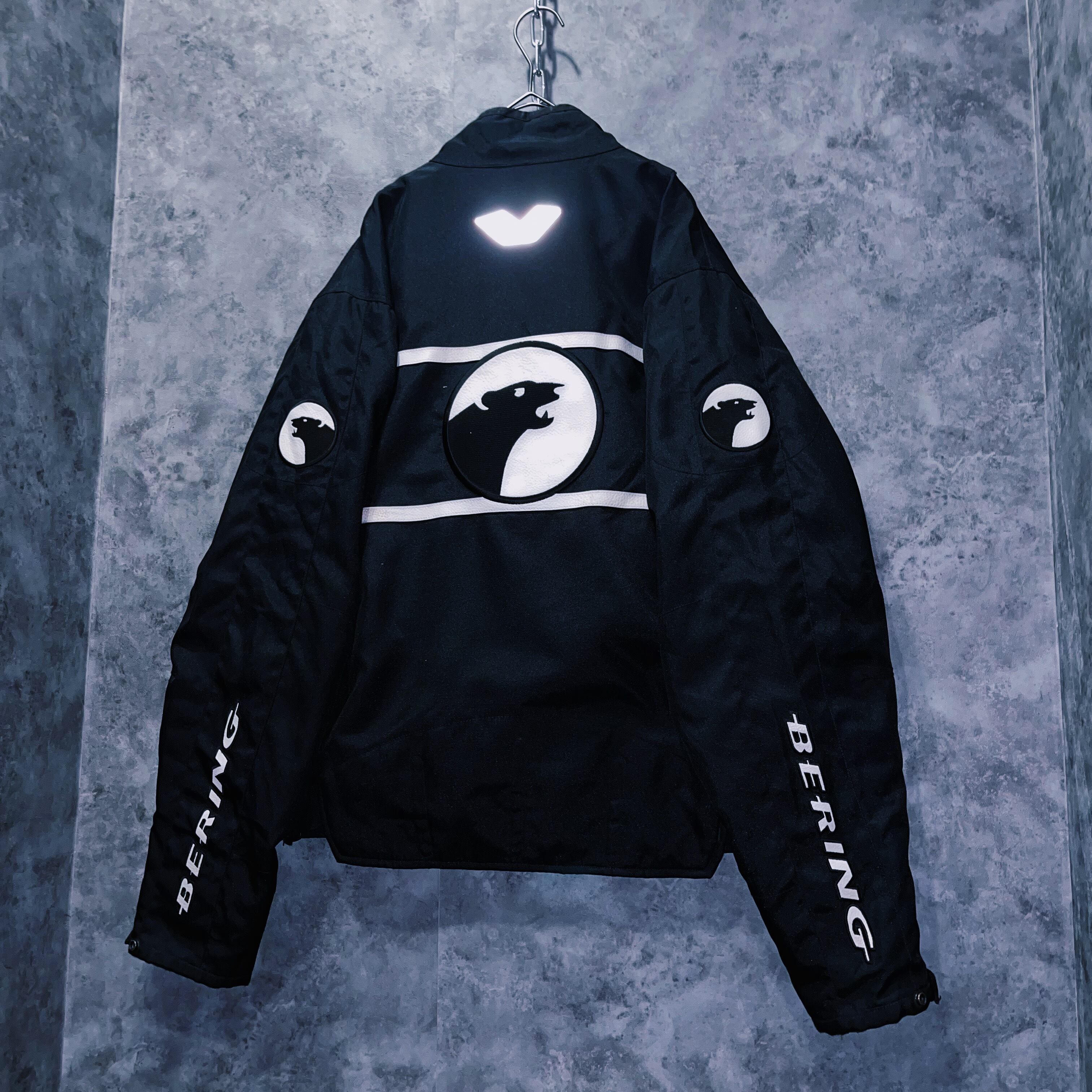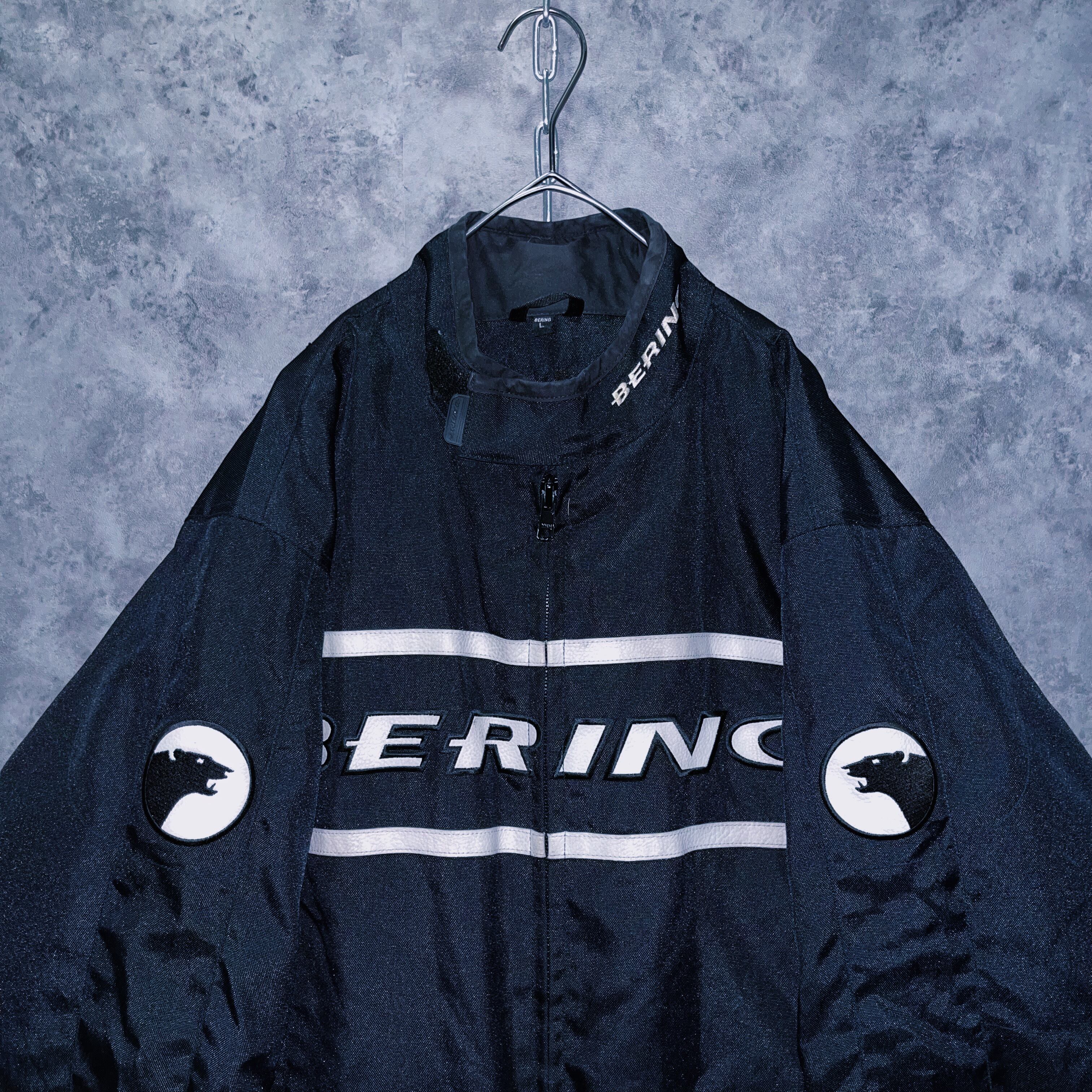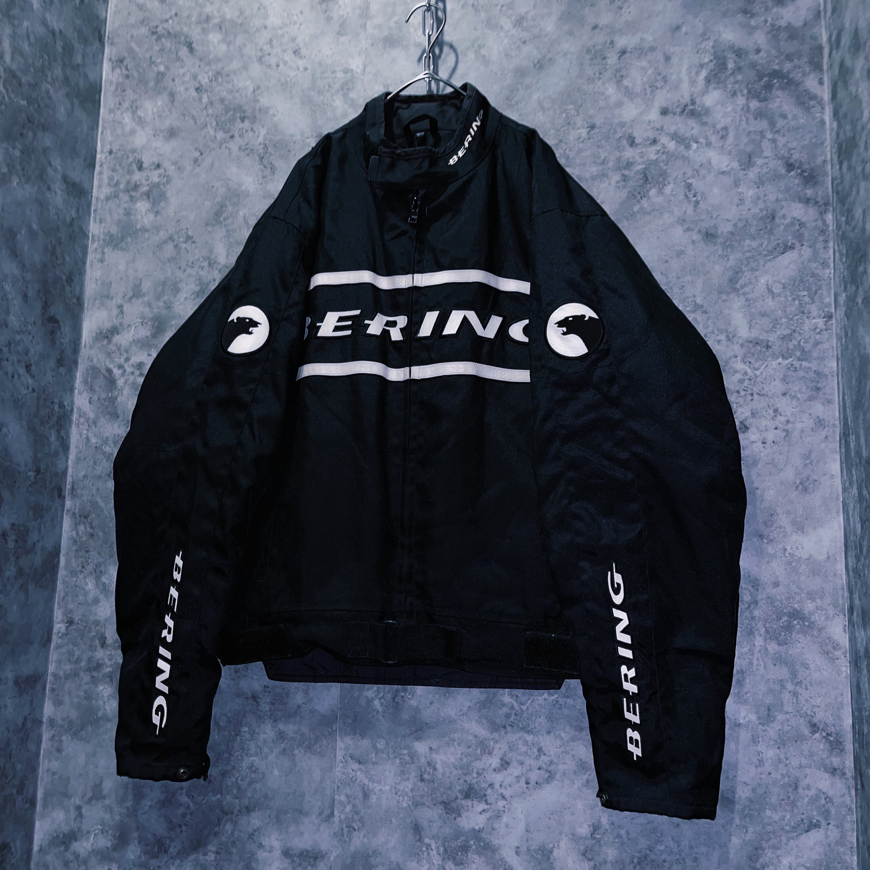 vintage “BERING” logo patch monotone design motorcycle jacket