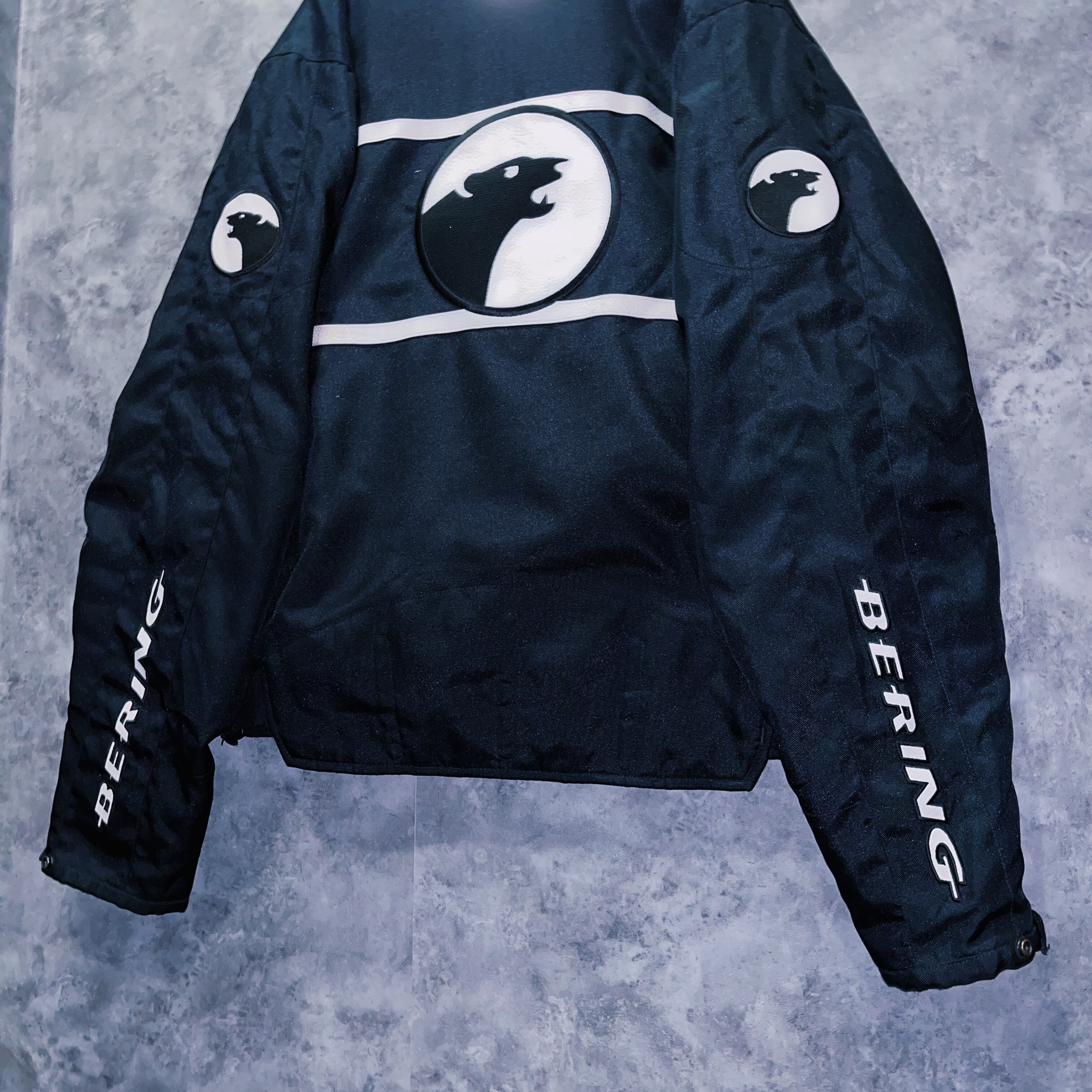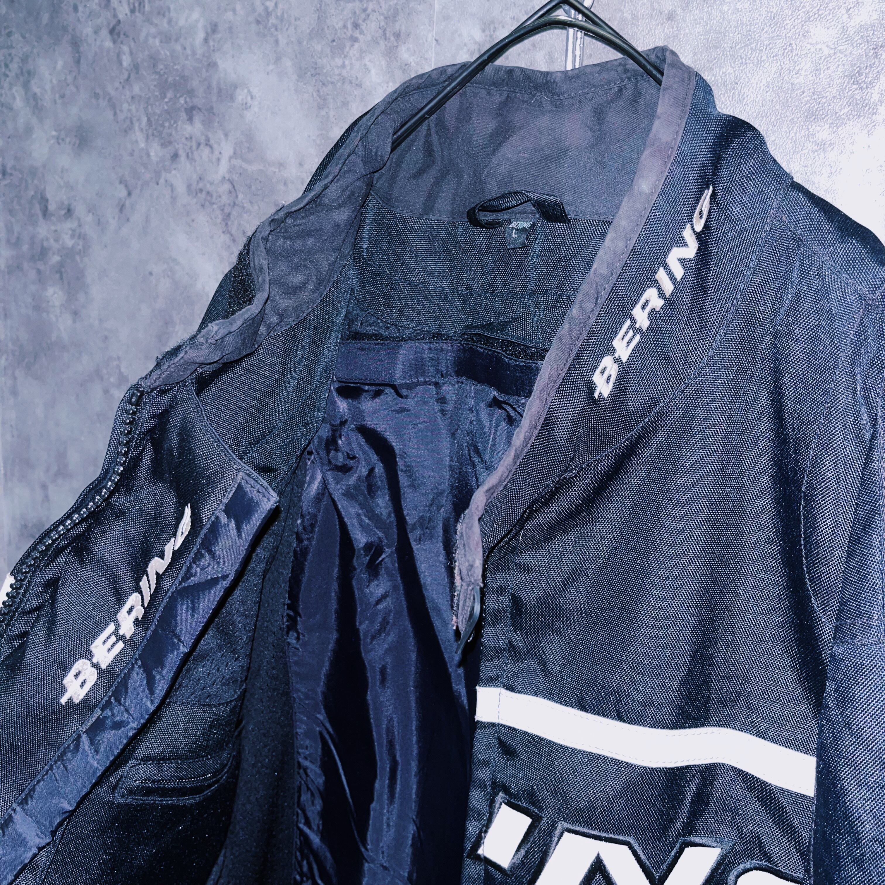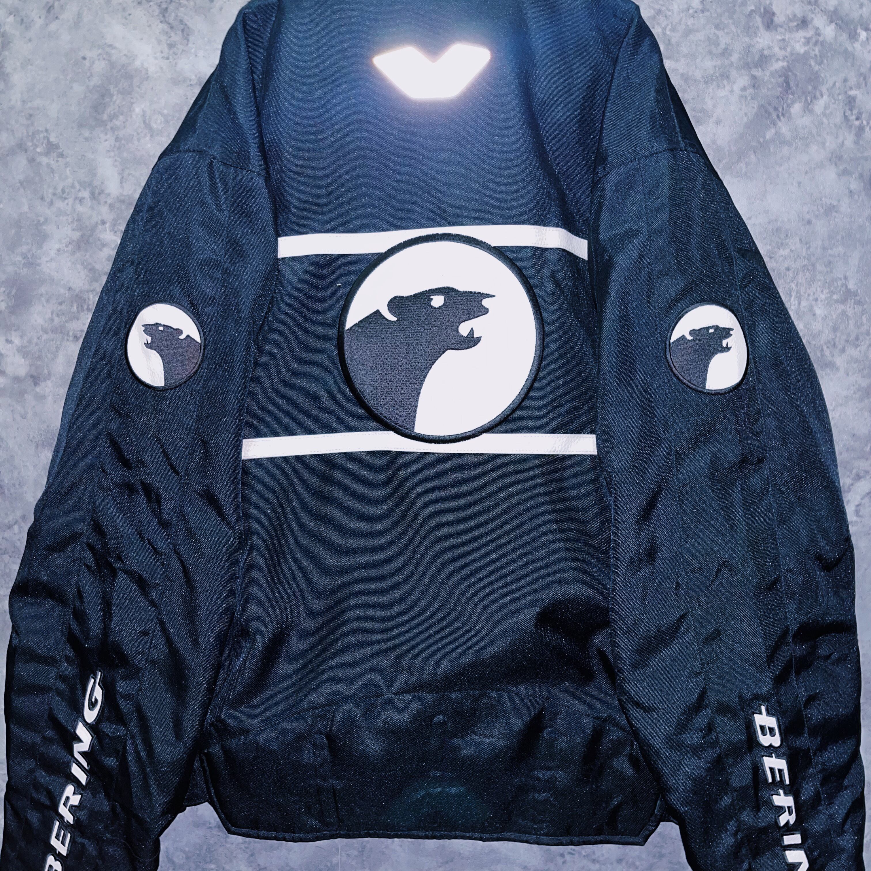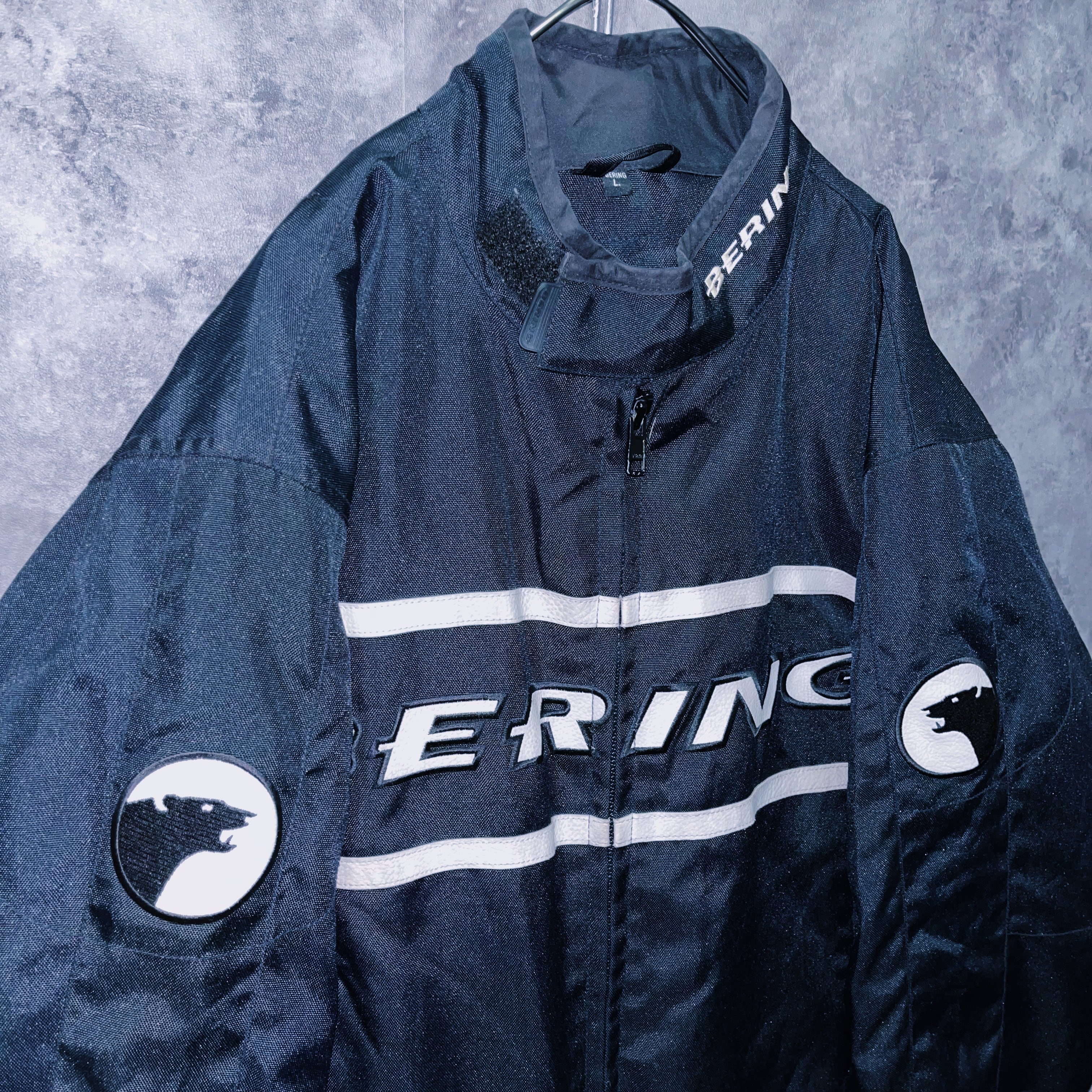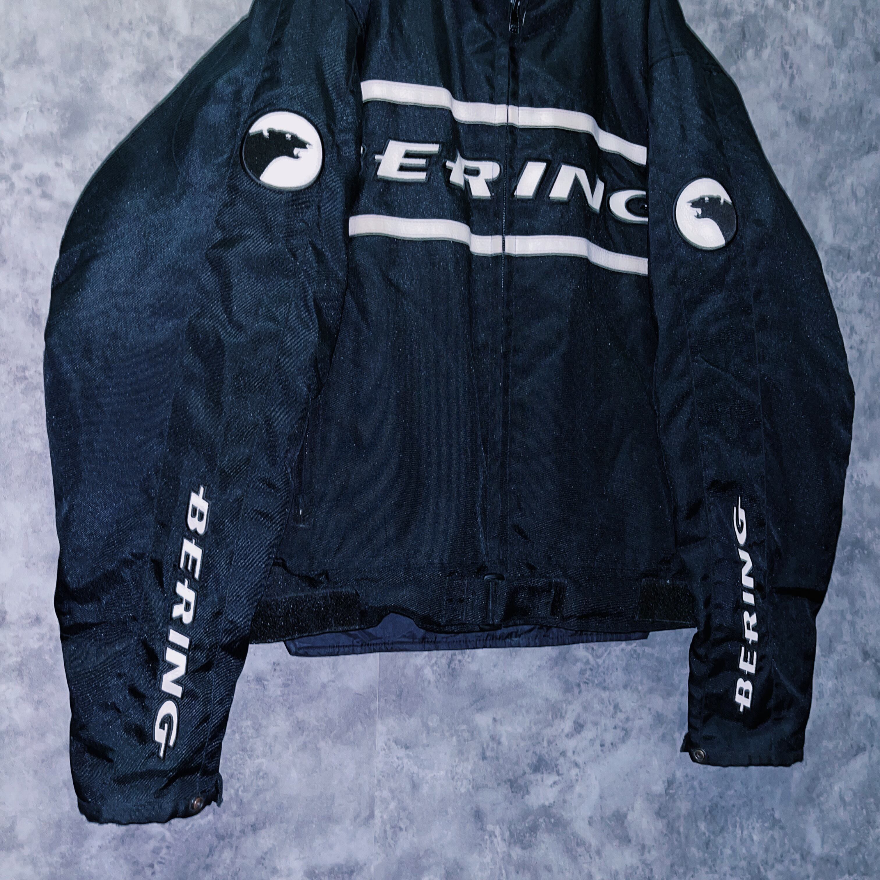 vintage “BERING” logo patch monotone design motorcycle jacket