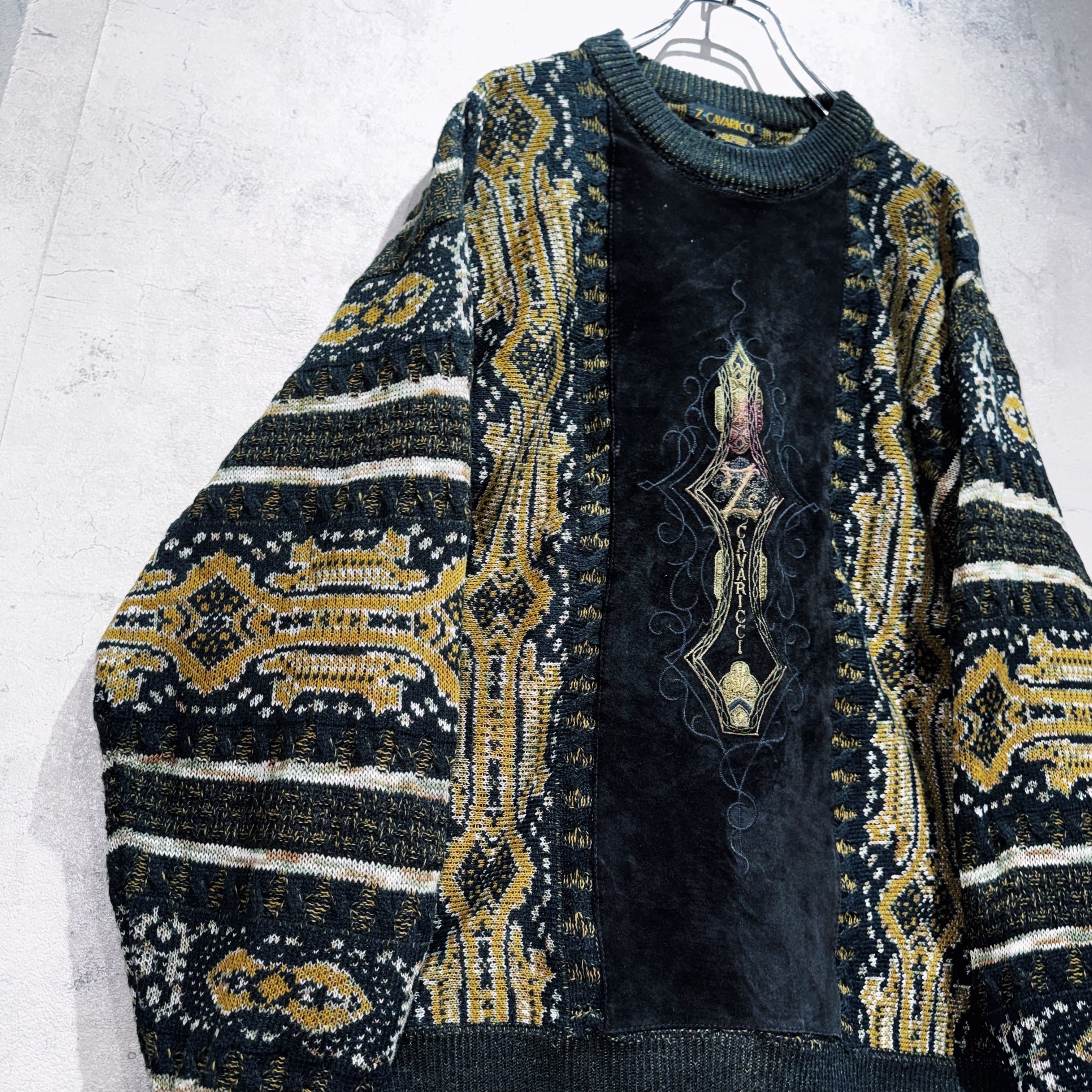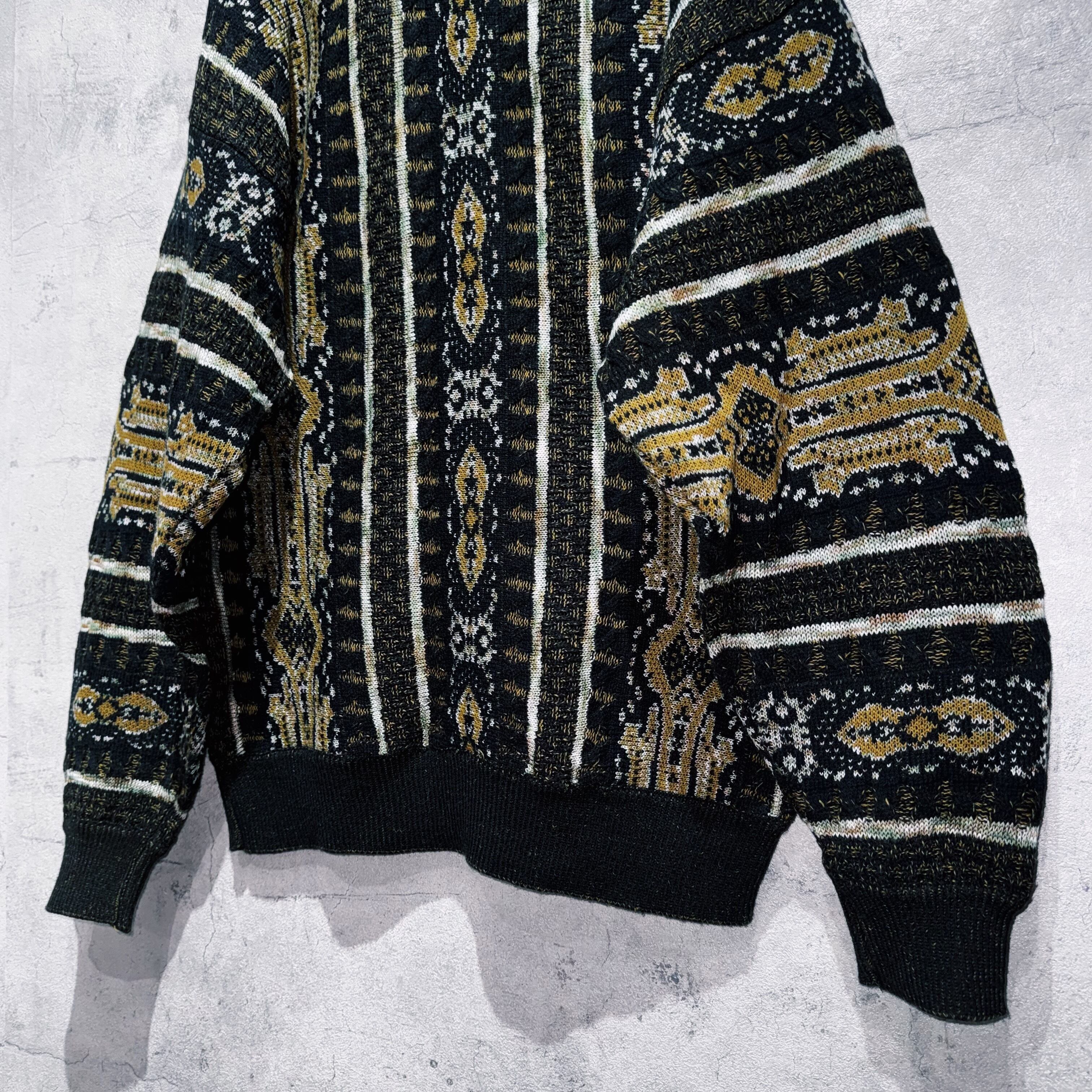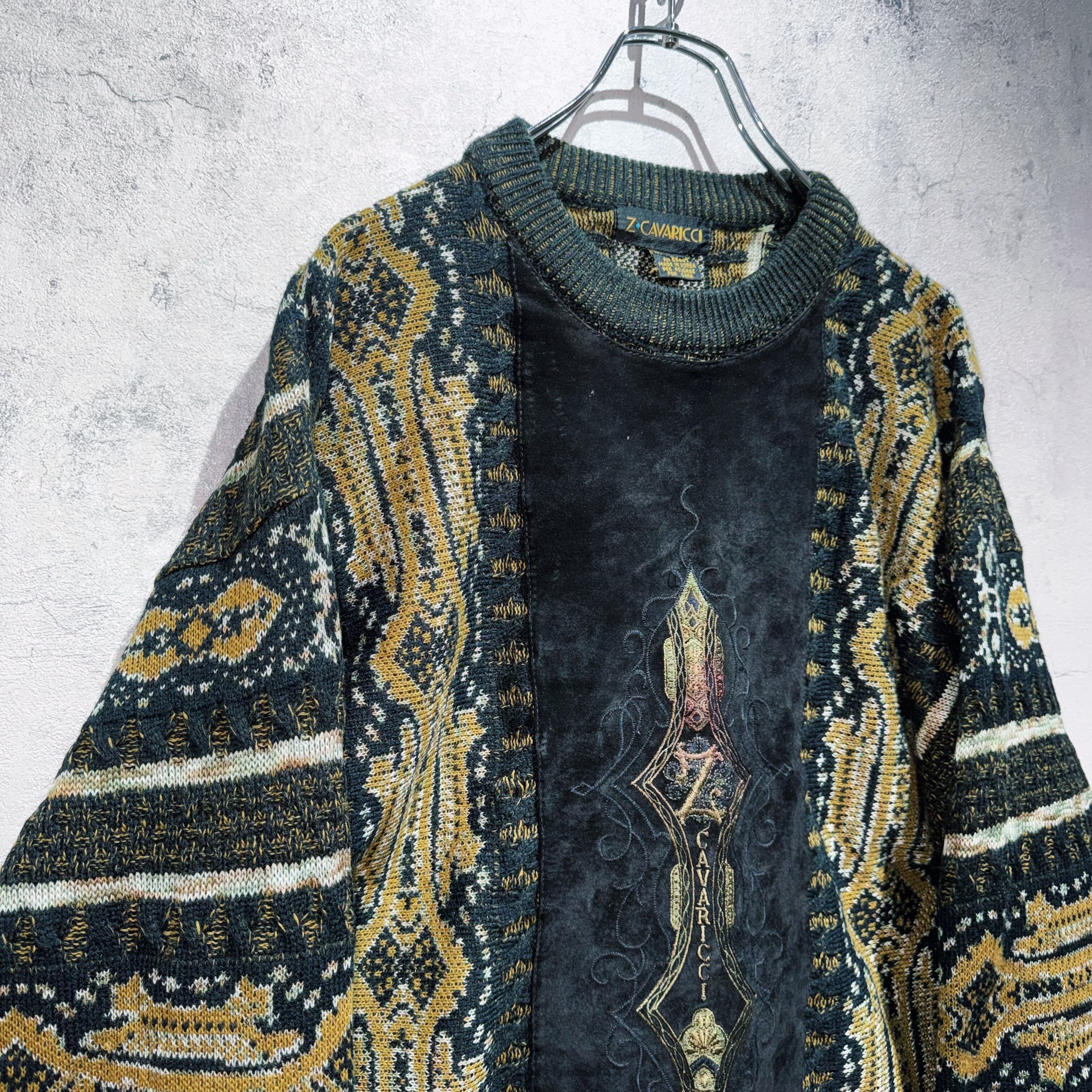 ヴィンテージスエードマテリアルスイッチングデザイントライバルパターンニット
