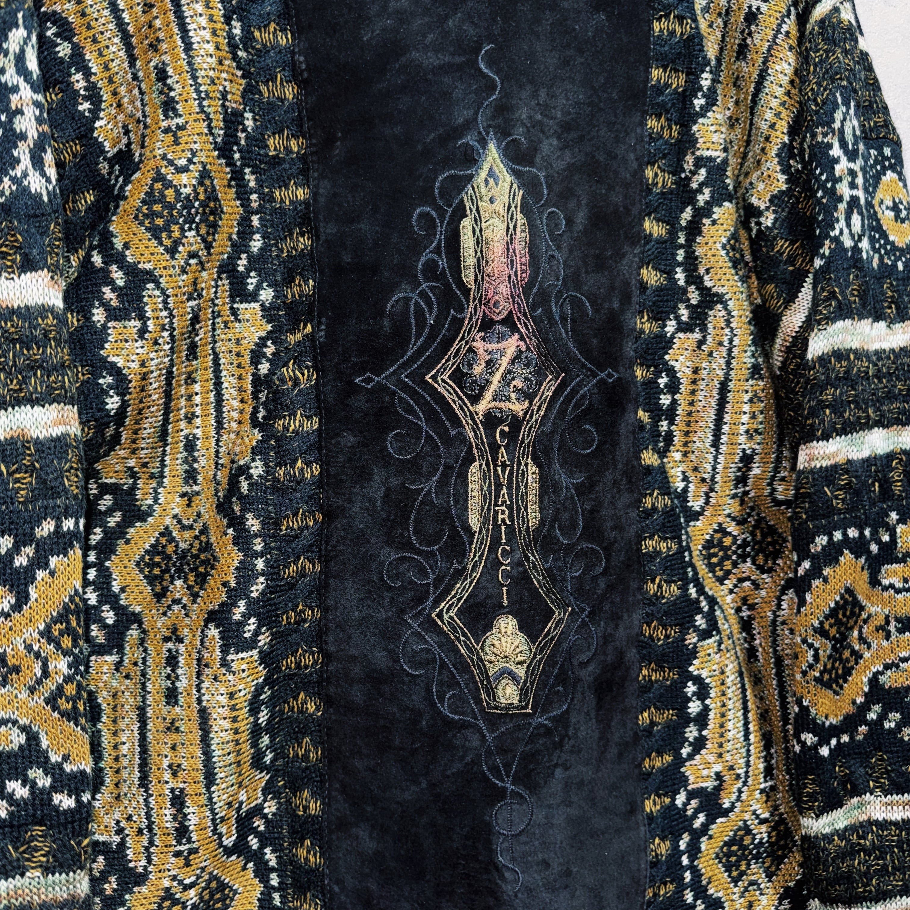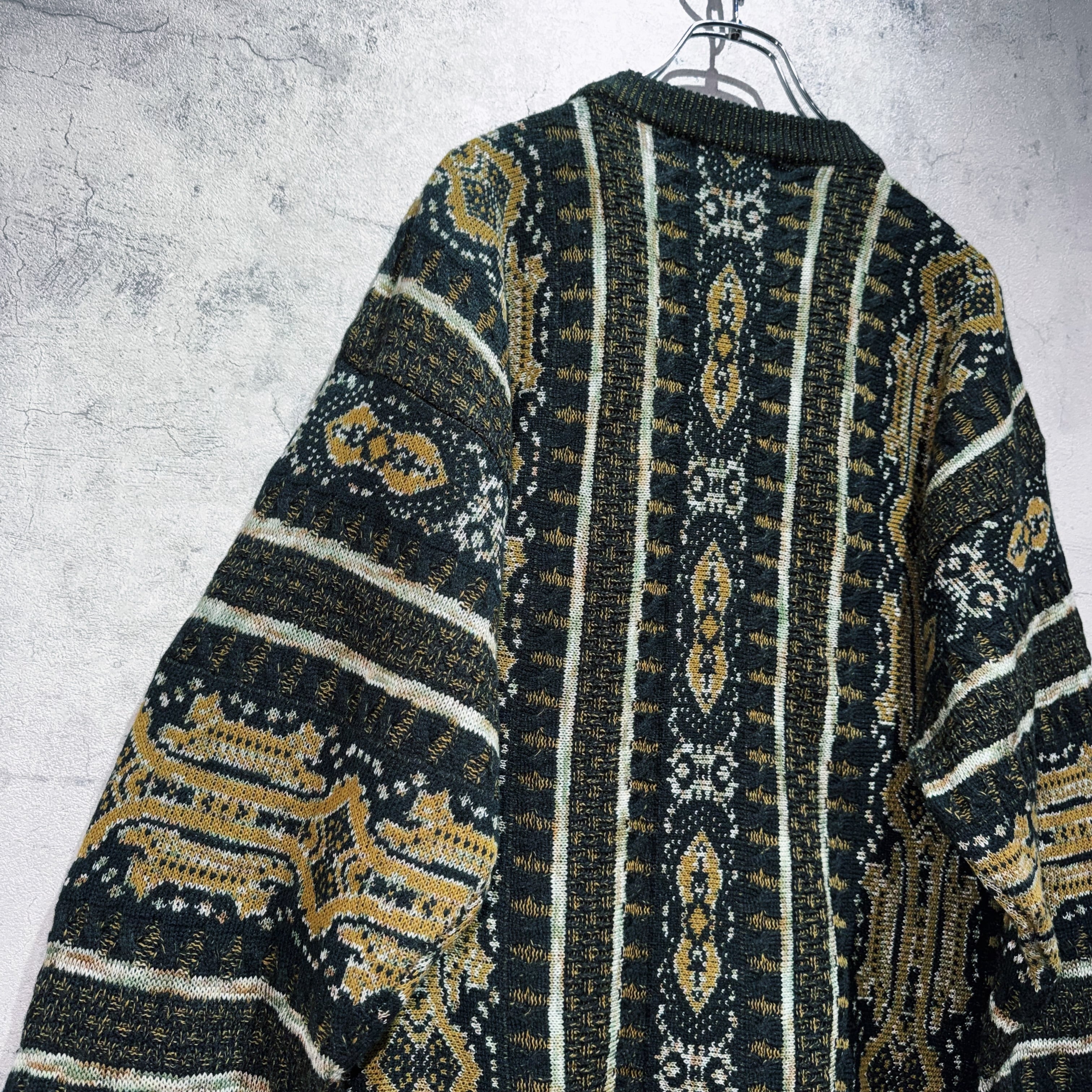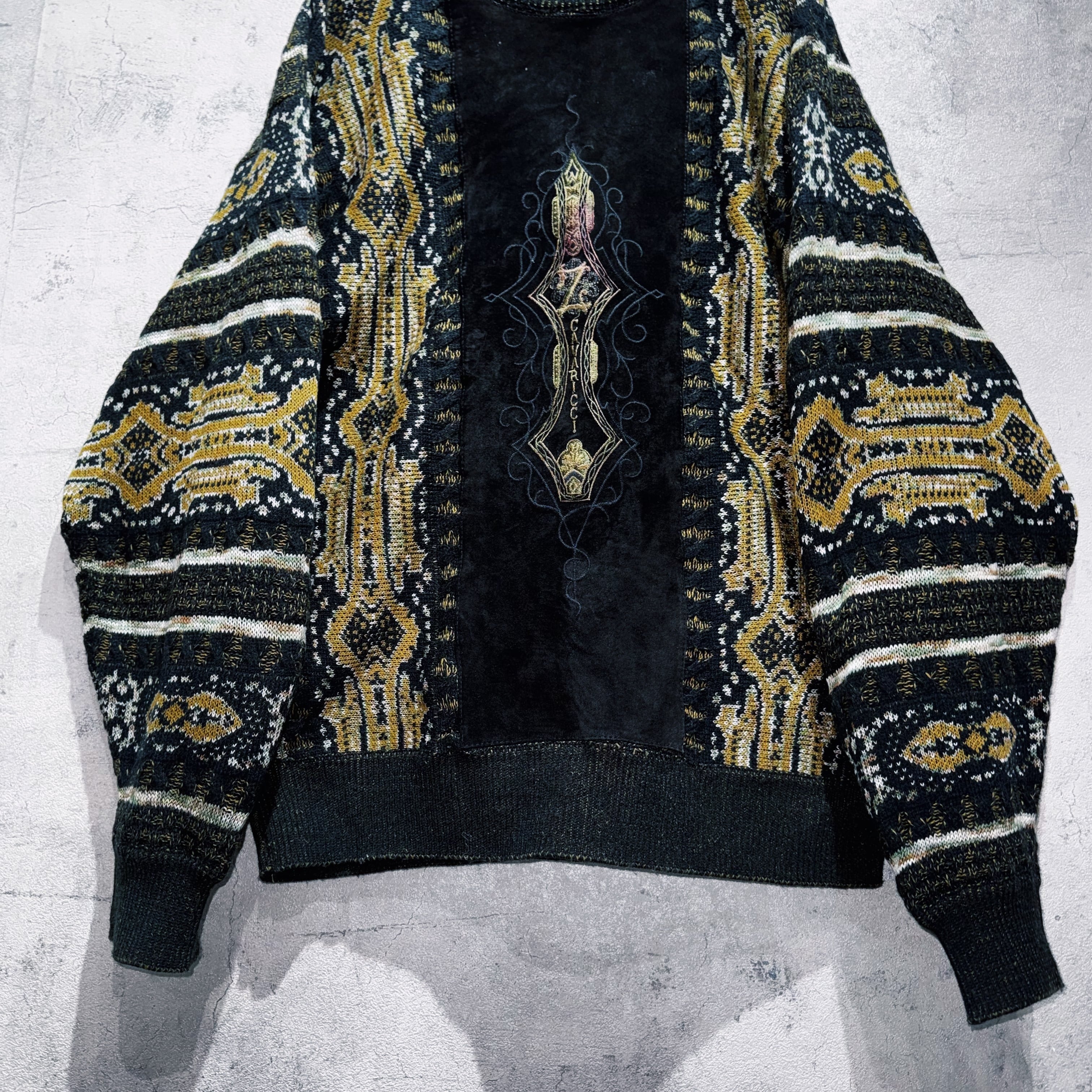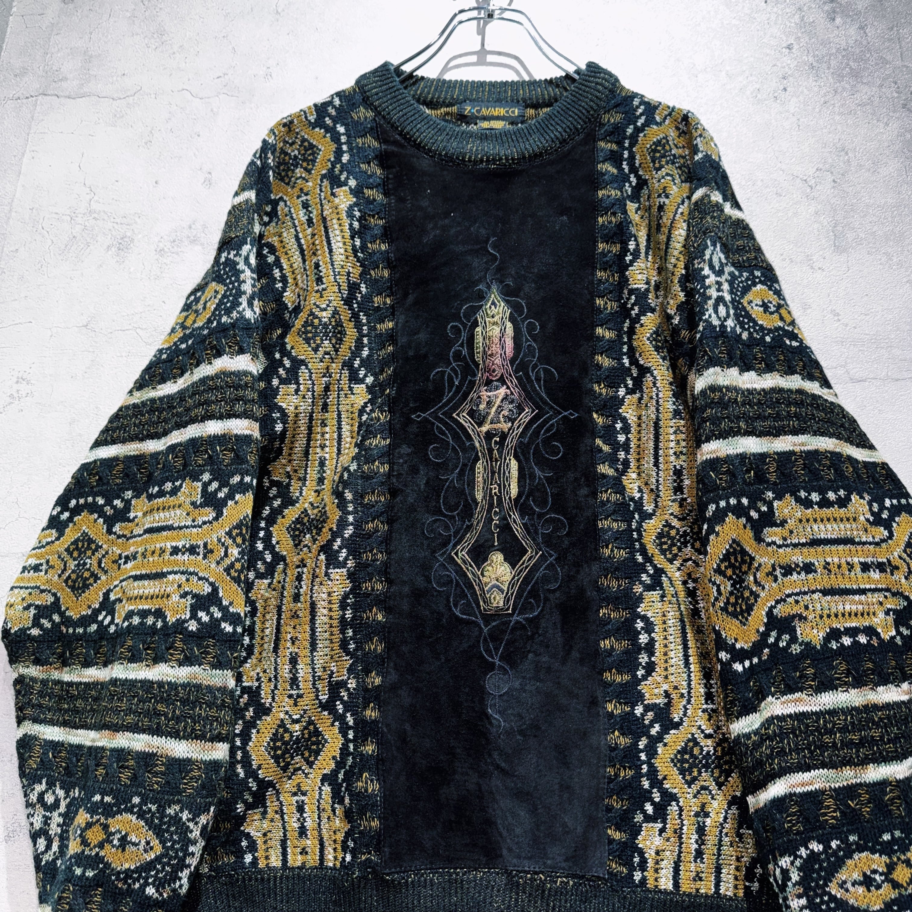 ヴィンテージスエードマテリアルスイッチングデザイントライバルパターンニット