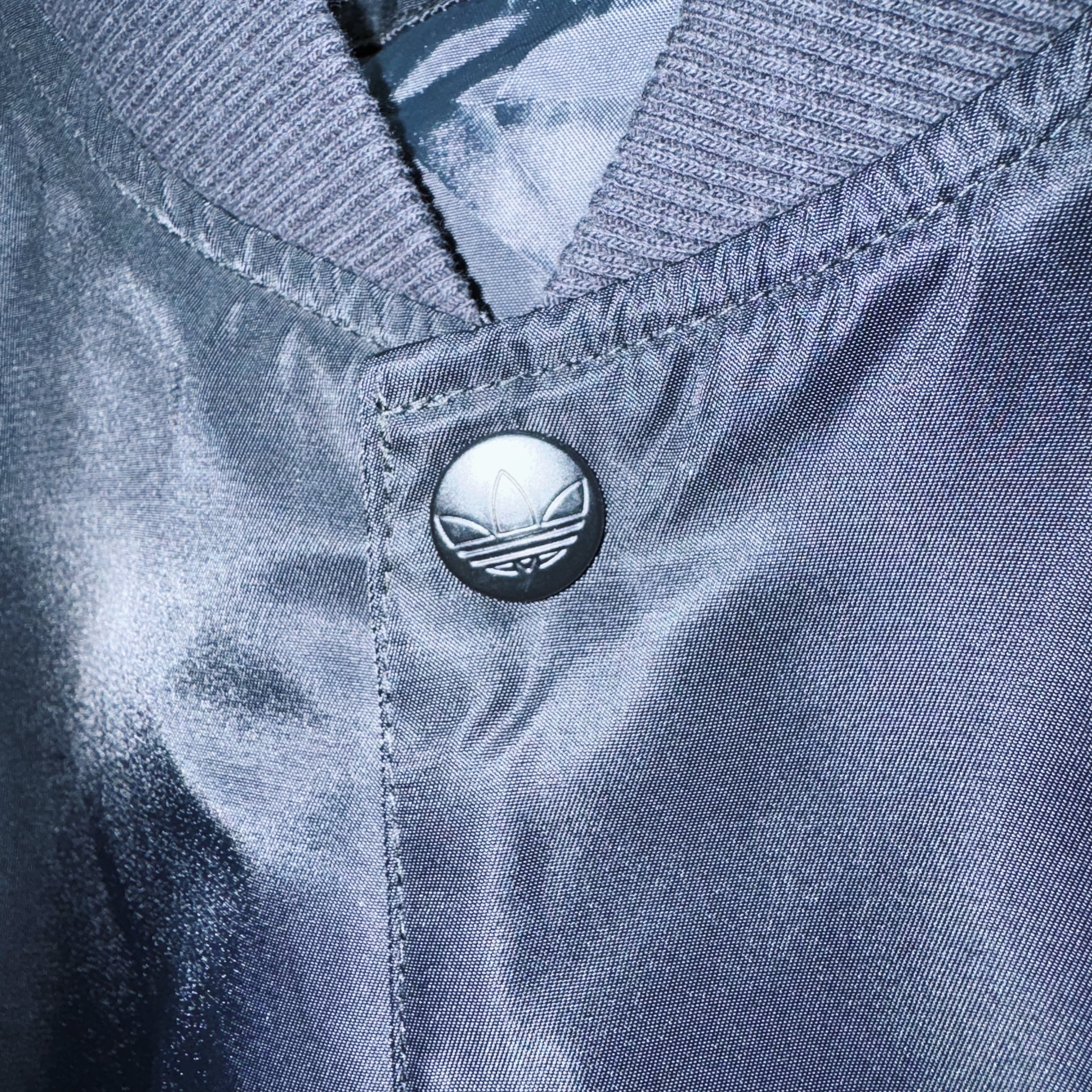 程よい光沢を身に纏い高級感を醸し出す漆黒のボディに、フロントにはアディダスの象徴的なマークであるトレフォイルロゴをあしらったアイコニックなボンバージャケット。
