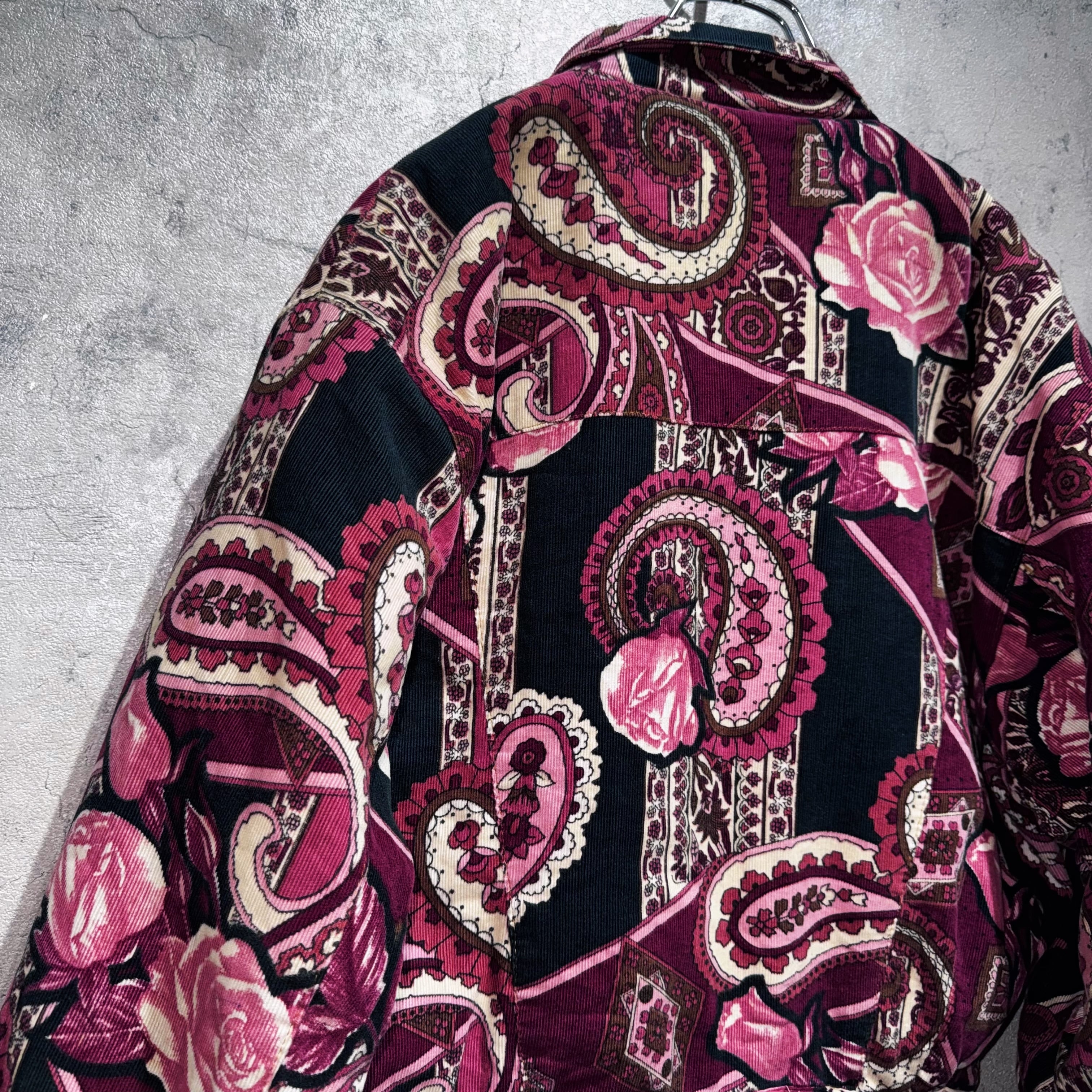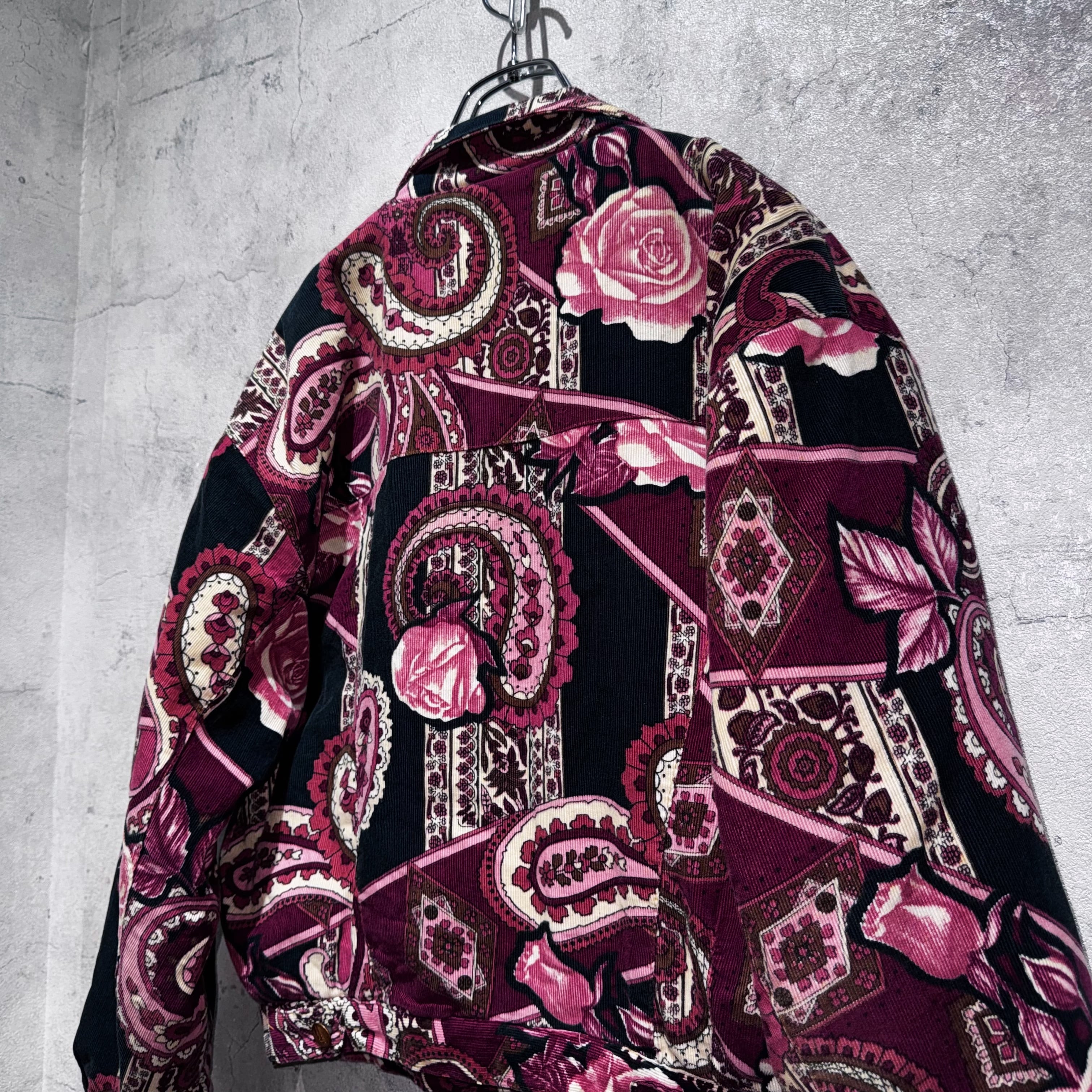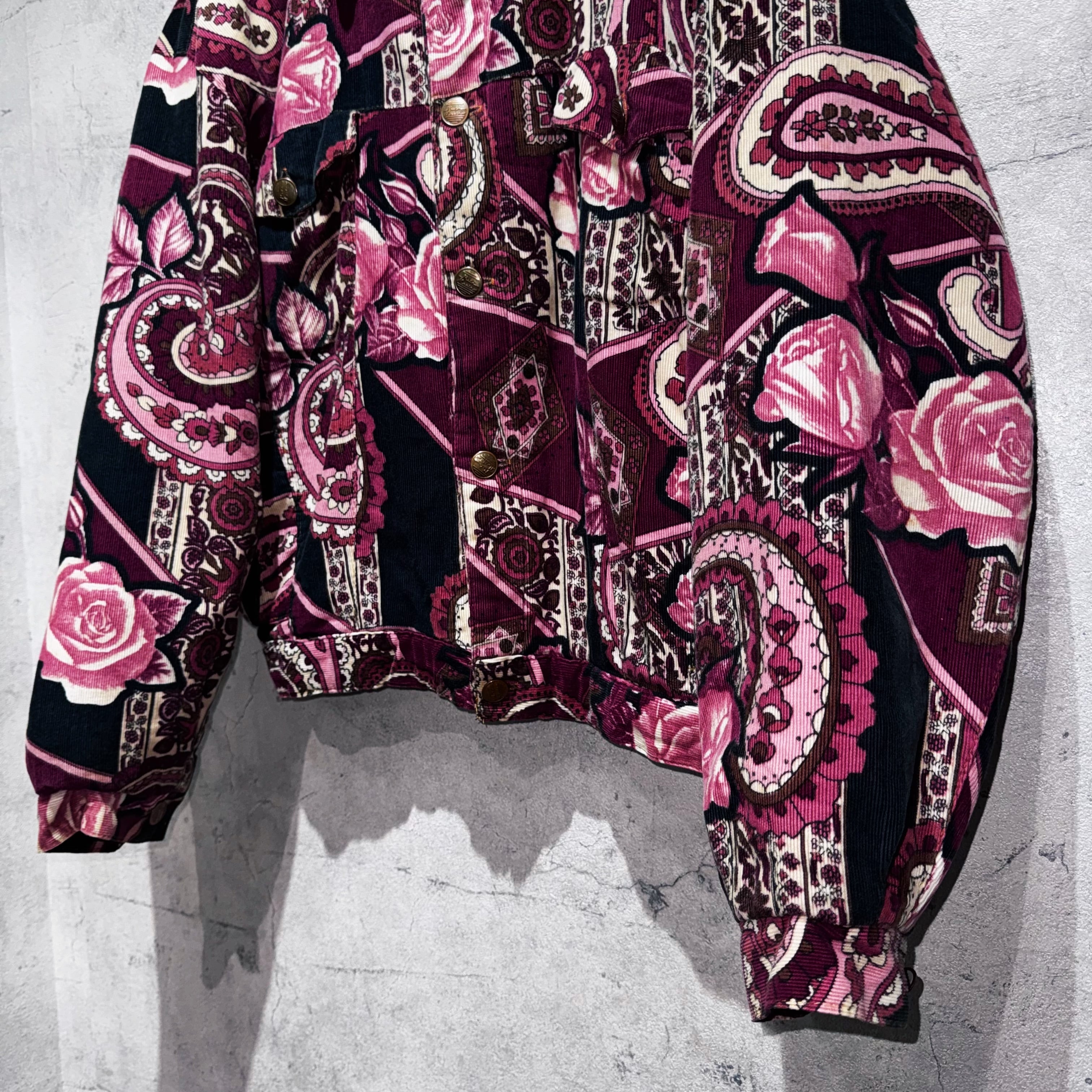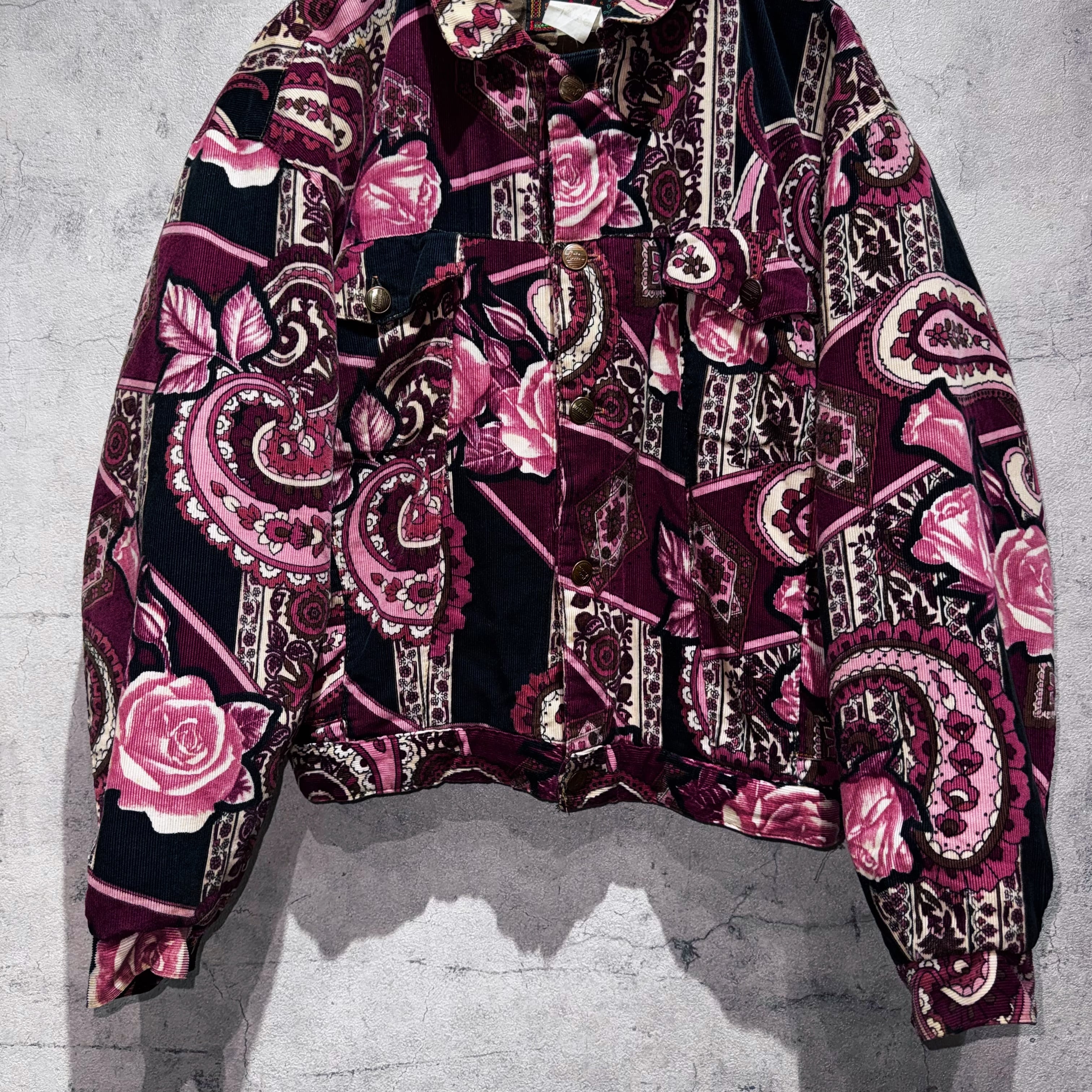 高級感のあるペイズリーと花柄を組み合わせ、美しいカラーリングで仕上げたコーデュロイジャケット。